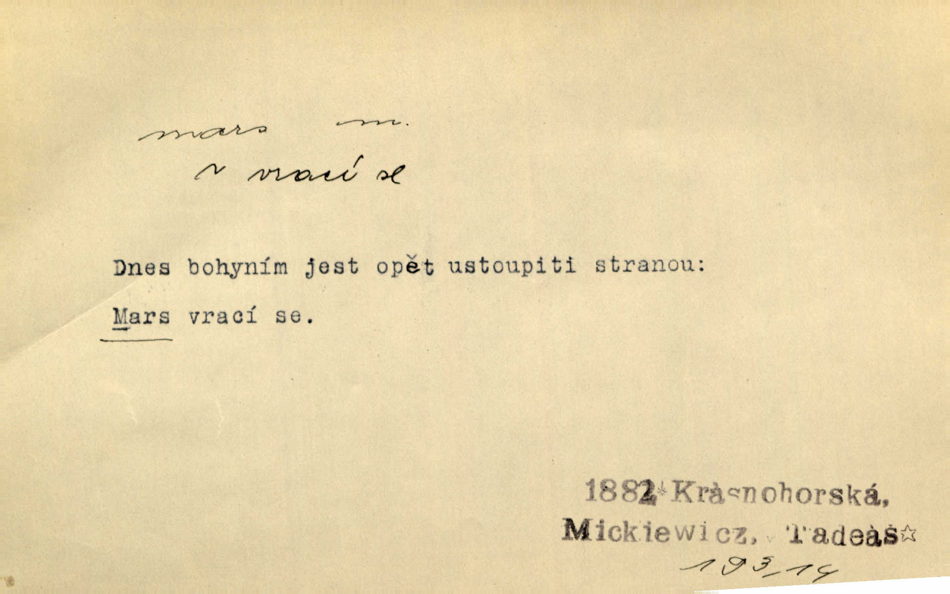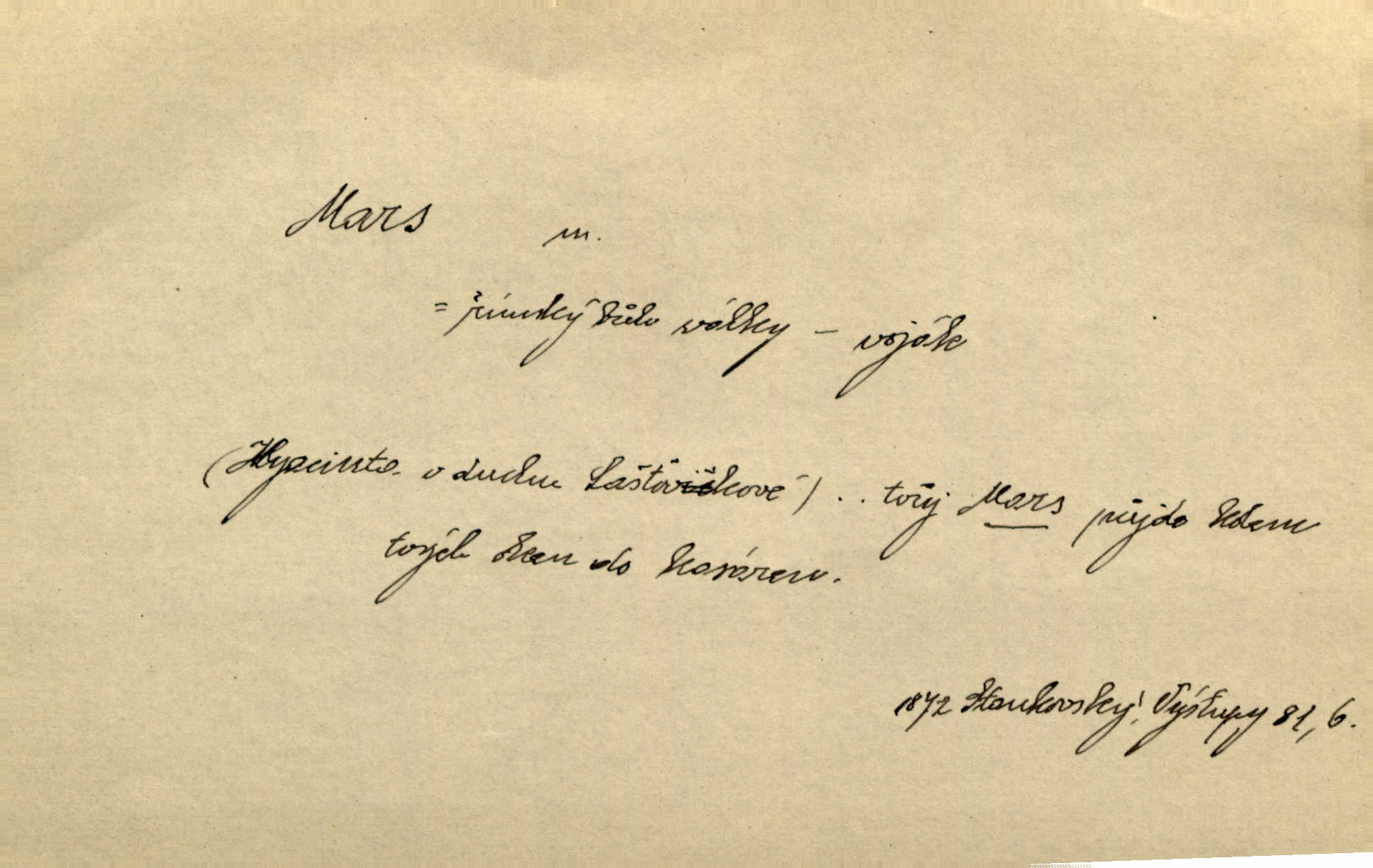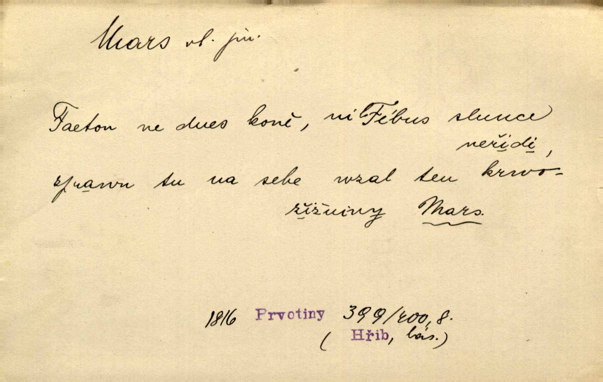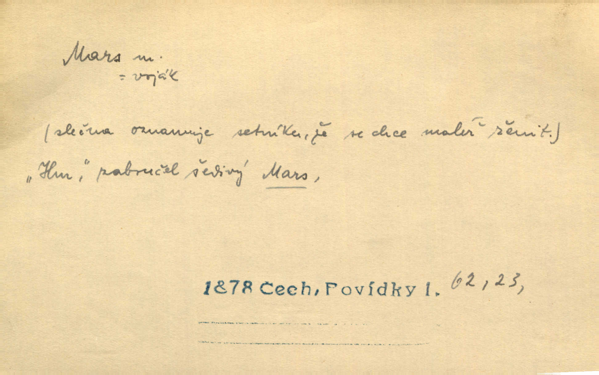 - Mars, Marta m. bůh války u starověkých Římanů. Já dal službě Marta s bohem vojenské službě. Mach. Přen. Mars, Marta n. Marsa, Marse o vojevůdci, vojáku. Starý Mars [generál Conrad v. Hötzendorf] řekl konečně: Ano. Mach. [Kuchařka] rozpředla se mnou esthetickou rozprávku o svém benedekovském Marsovi. Stank. D Mars, Marta n. Marsa jméno jedné z planet. „Ach, kdyby se tak snadno dali dokázati obyvatelé na Martu“, zasmála se slečna Vondrejcová vesele. Čap. Ch. Lev ve znamení Marse. Třeb.