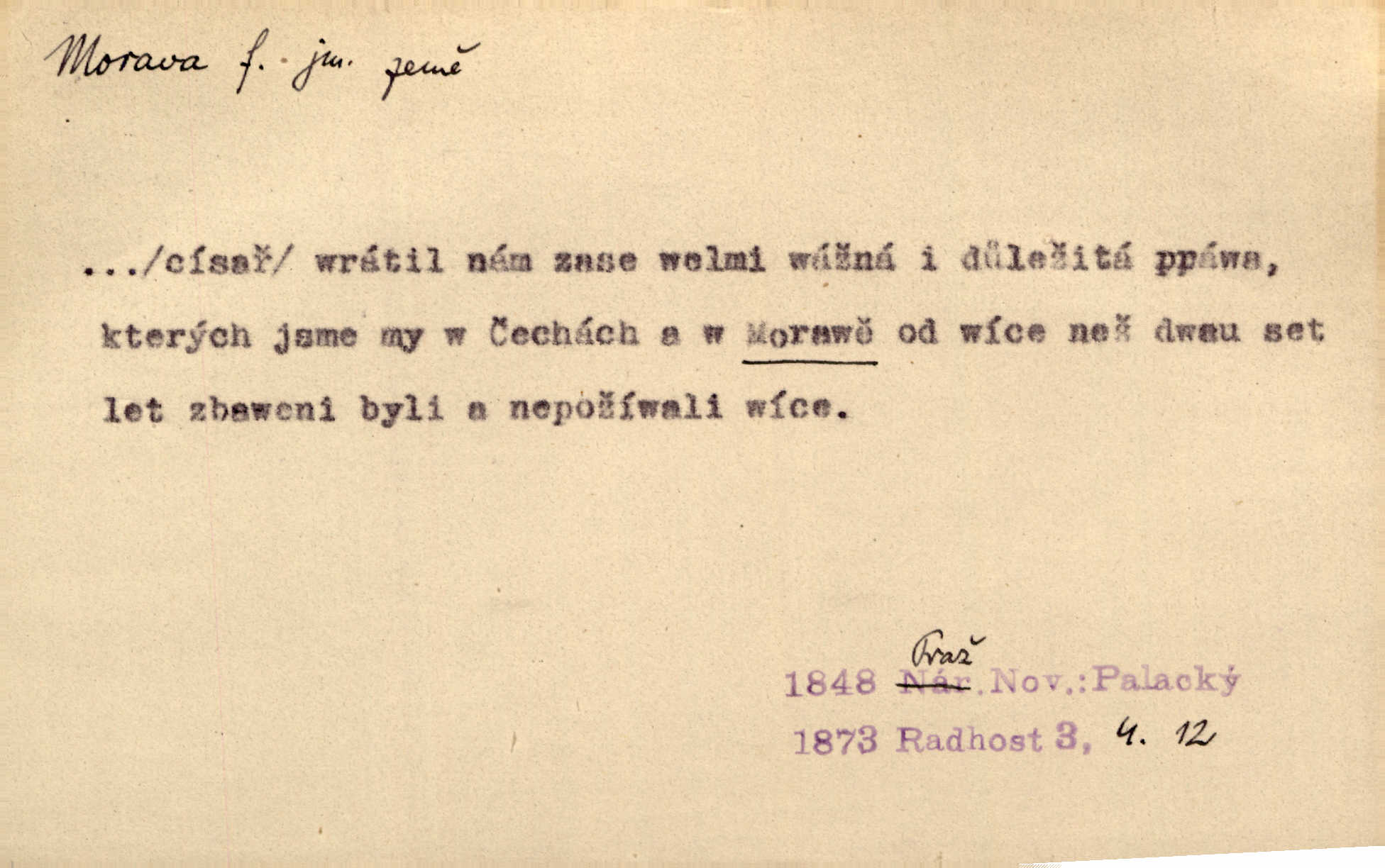 republiky Československé rozkládající se mezi Čechami a Slovenskem; řeka protékající tímto územím.