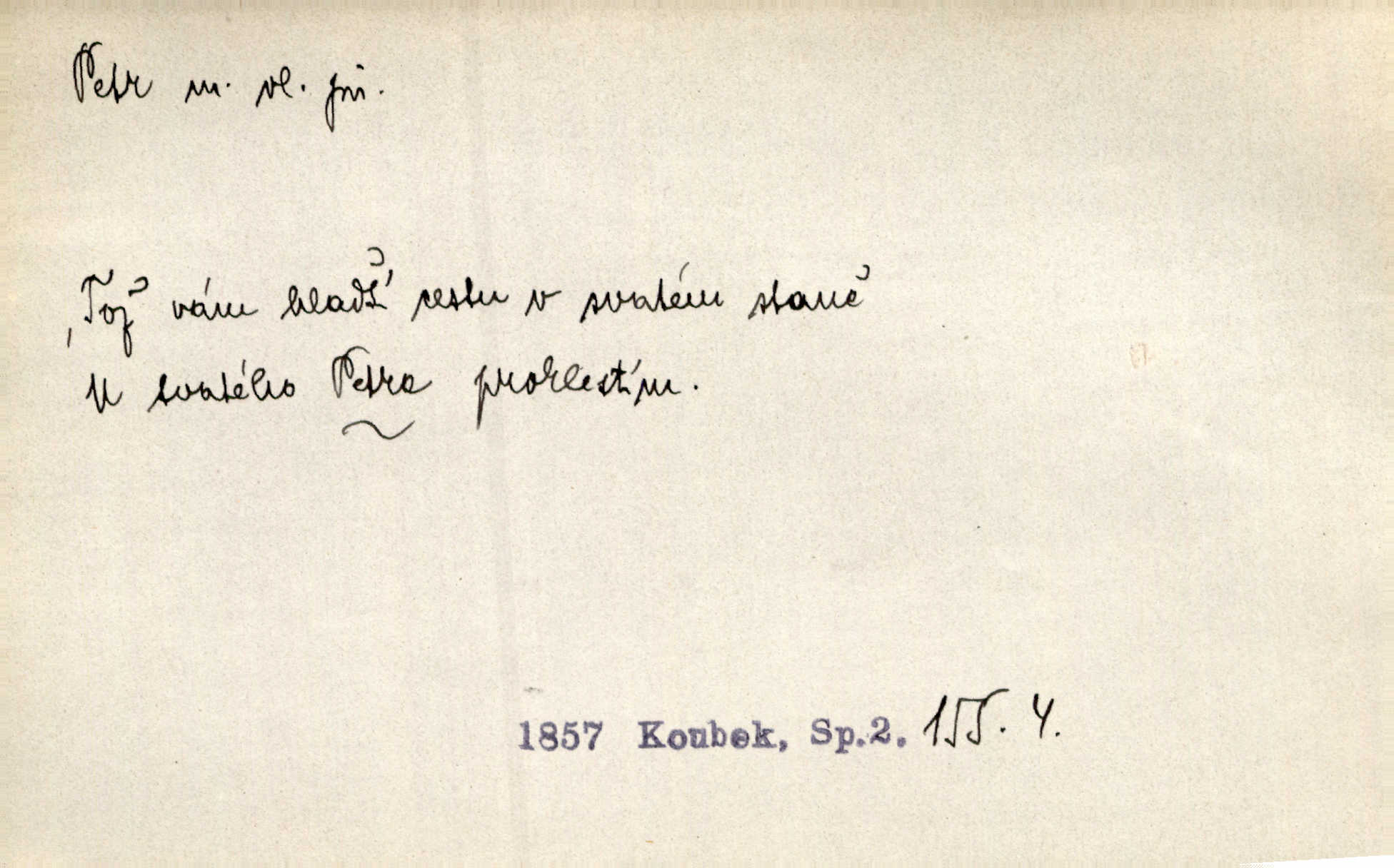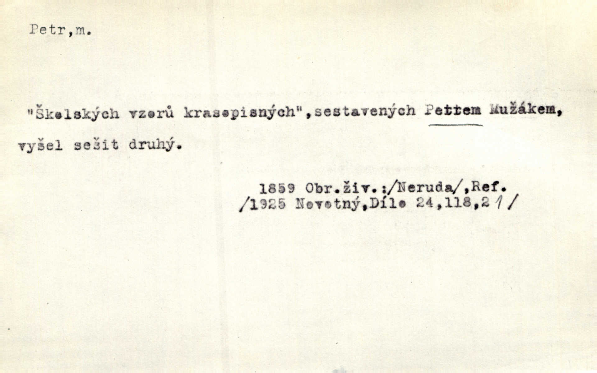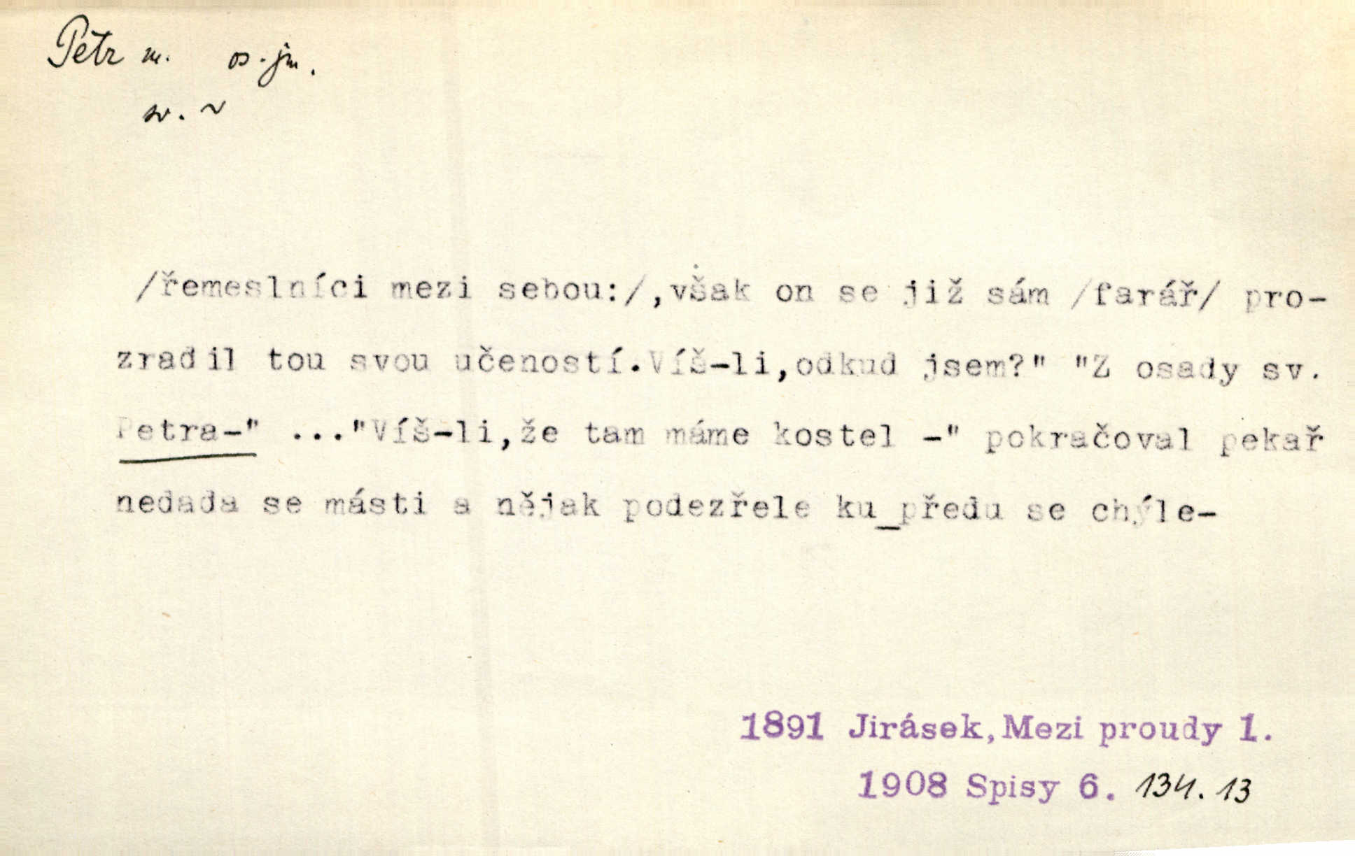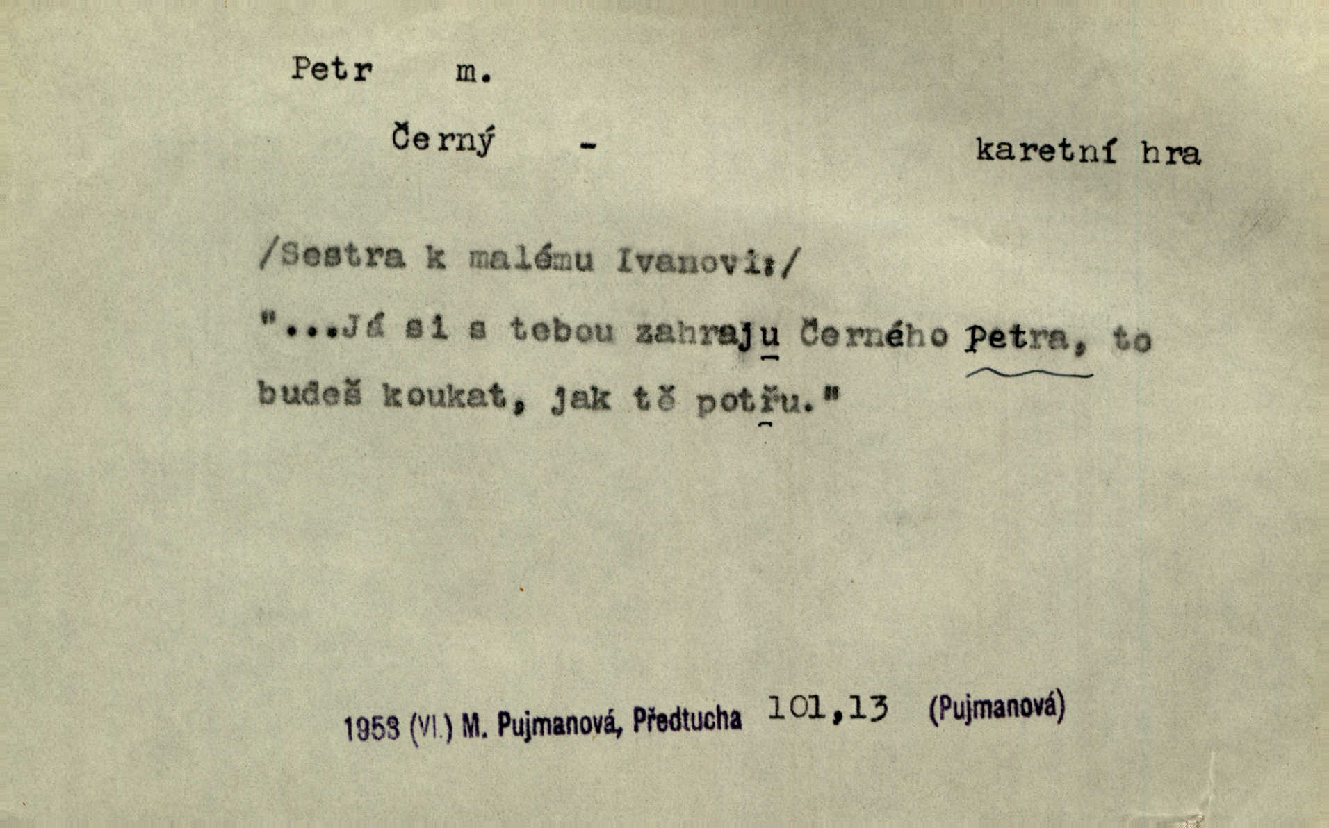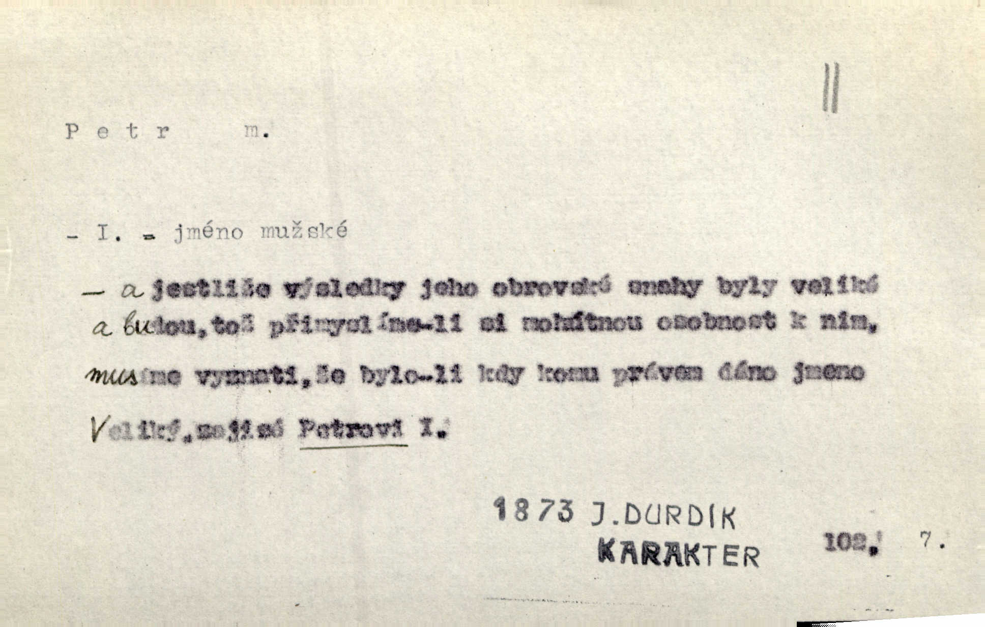 - Petr, -a m. jméno jednoho z apoštolů; osobní jm. mužské. Skála, na níž církev Petrova stojí, odolá věčnosti církev katolická. J. Pichl. Helenka se začervenala a zapřela ho [Ríšu] jako Petr Krista. V. Mrš. [Spravedlnost] vinu stejně trestá, ať jest vinníkem Petr nebo Pavel kdokoli. Hol. Nahlídnul jsem, že jest Petr jako Pavel jeden jako druhý. Havl. Kolísali ti a kolísali oni, opičili se Petr a Pavel ten i onen. Přít. Přen. Plížily se tenkrát [za Václava IV.] děsné doby nejen na lodičku Petrovu, ale i na českou zem na církev. Třeb. Nepomýšlel déle [císař]‚ aby se Petrovu náměstku zachoval papeži. Tyl. D černý petr druh hry v karty; jedna z karet této hry. Sklepnice hrály černého Petra. V. Mrš. Umíval jsem dudáka a černého Petra. Rais.