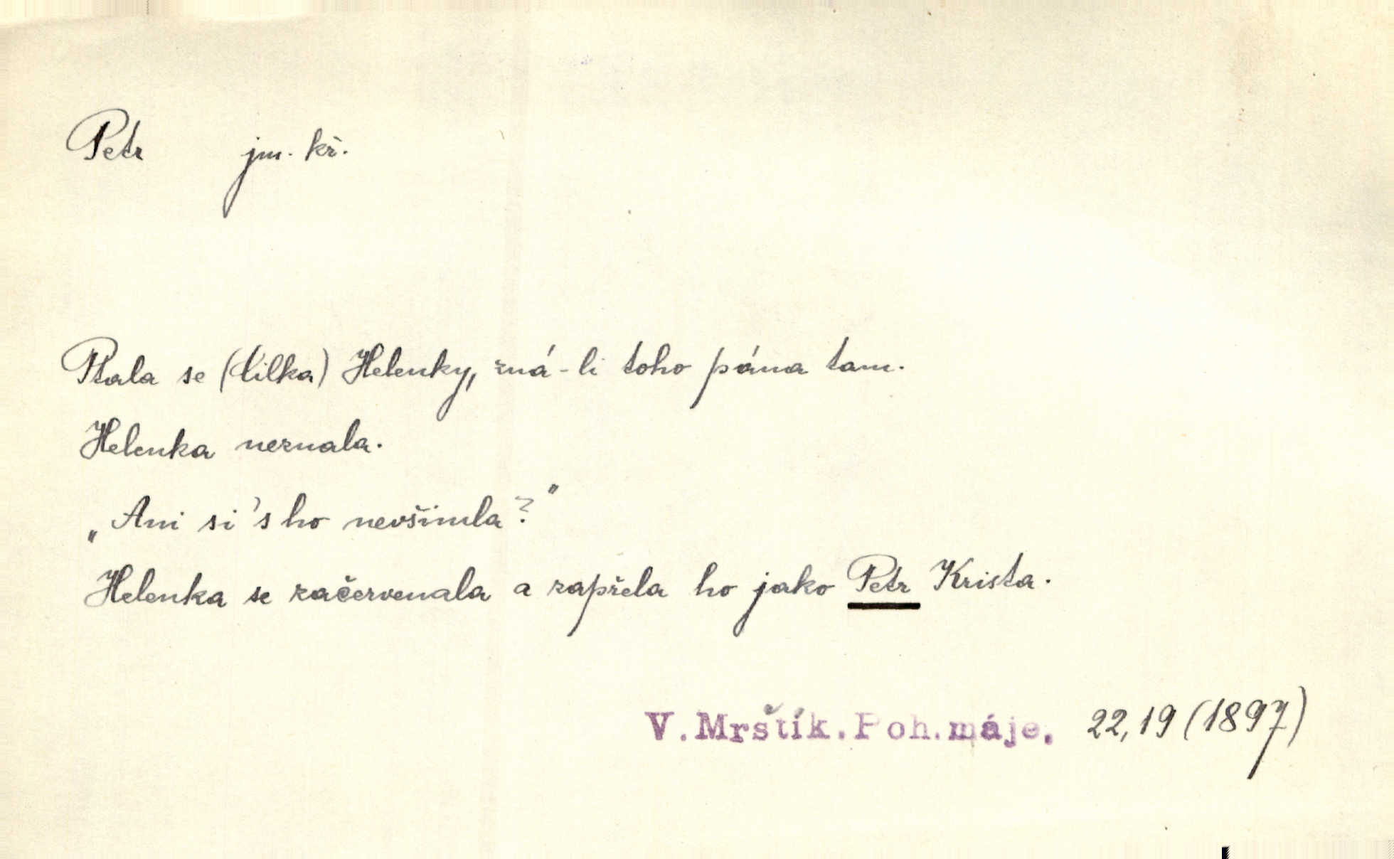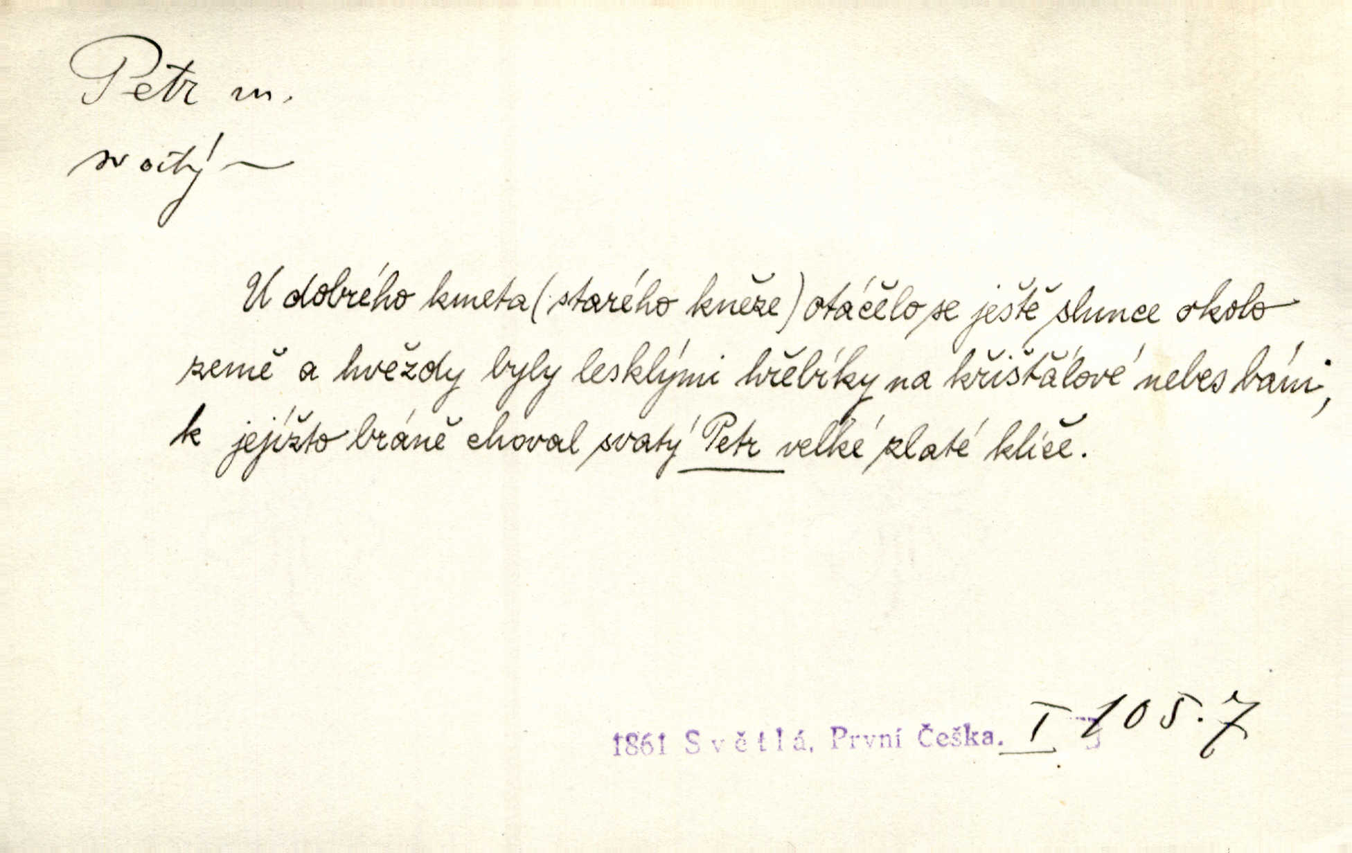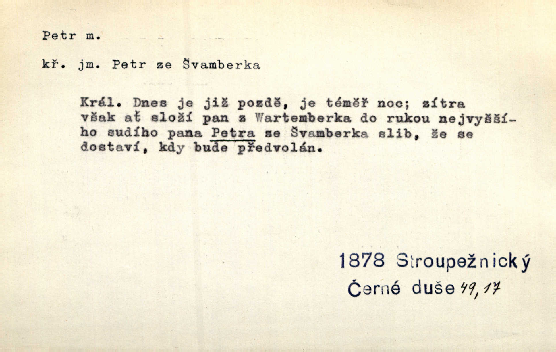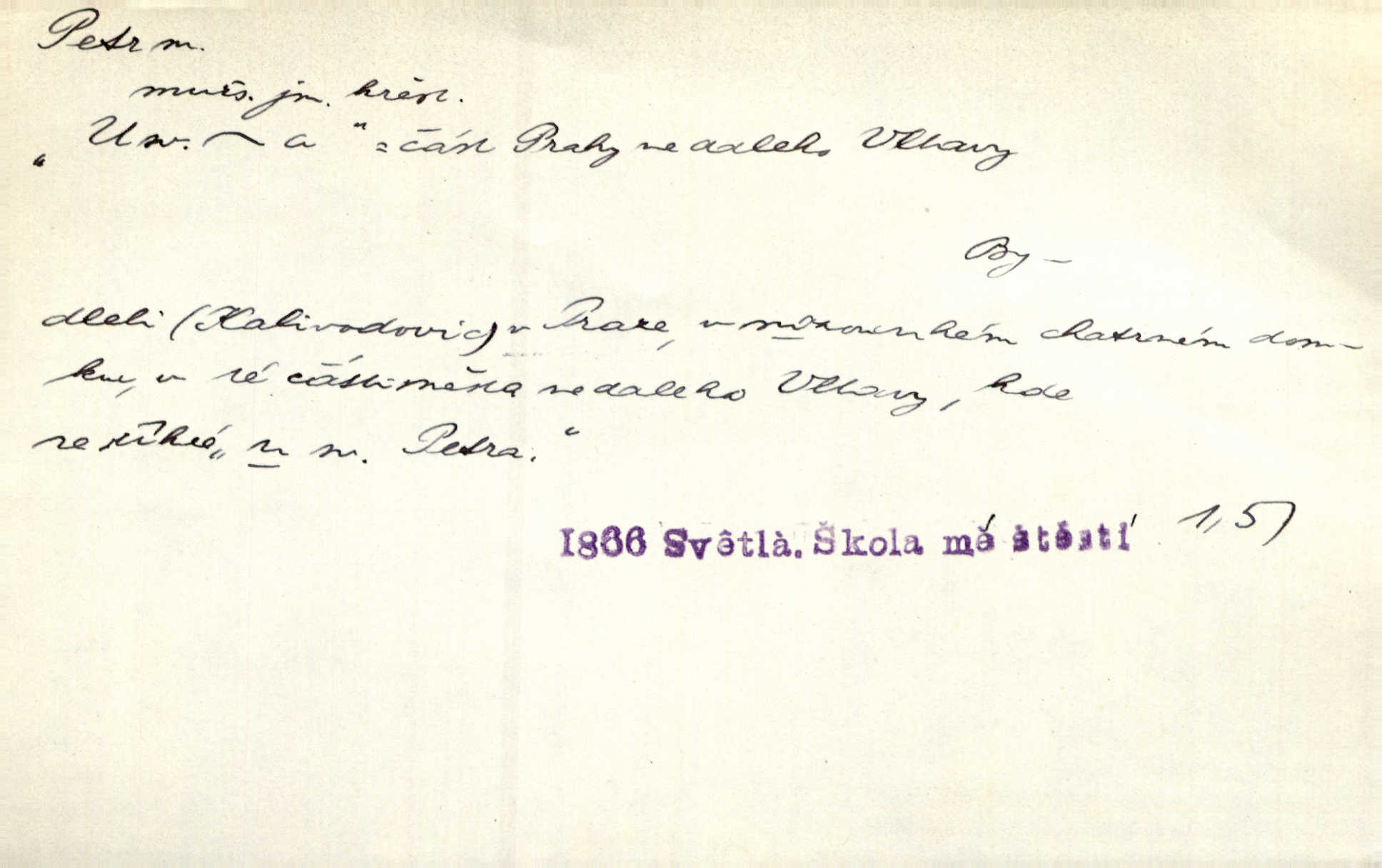 - Petr, -a m. jméno jednoho z apoštolů; osobní jm. mužské. Skála, na níž církev Petrova stojí, odolá věčnosti církev katolická. J. Pichl. Helenka se začervenala a zapřela ho [Ríšu] jako Petr Krista. V. Mrš. [Spravedlnost] vinu stejně trestá, ať jest vinníkem Petr nebo Pavel kdokoli. Hol. Nahlídnul jsem, že jest Petr jako Pavel jeden jako druhý. Havl. Kolísali ti a kolísali oni, opičili se Petr a Pavel ten i onen. Přít. Přen. Plížily se tenkrát [za Václava IV.] děsné doby nejen na lodičku Petrovu, ale i na českou zem na církev. Třeb. Nepomýšlel déle [císař]‚ aby se Petrovu náměstku zachoval papeži. Tyl. D černý petr druh hry v karty; jedna z karet této hry. Sklepnice hrály černého Petra. V. Mrš. Umíval jsem dudáka a černého Petra. Rais.