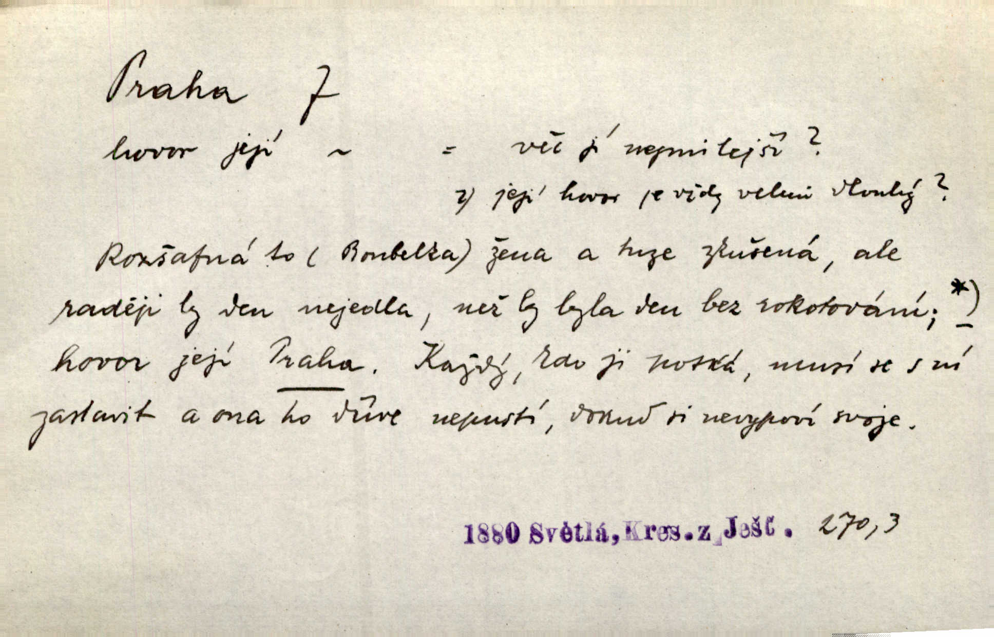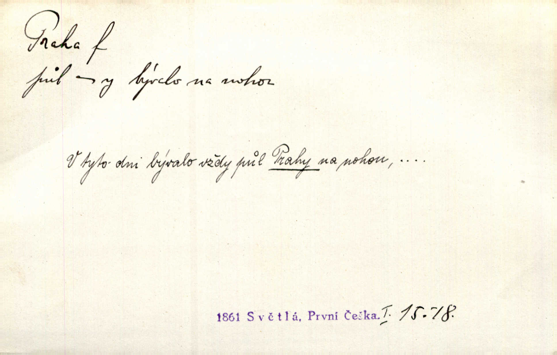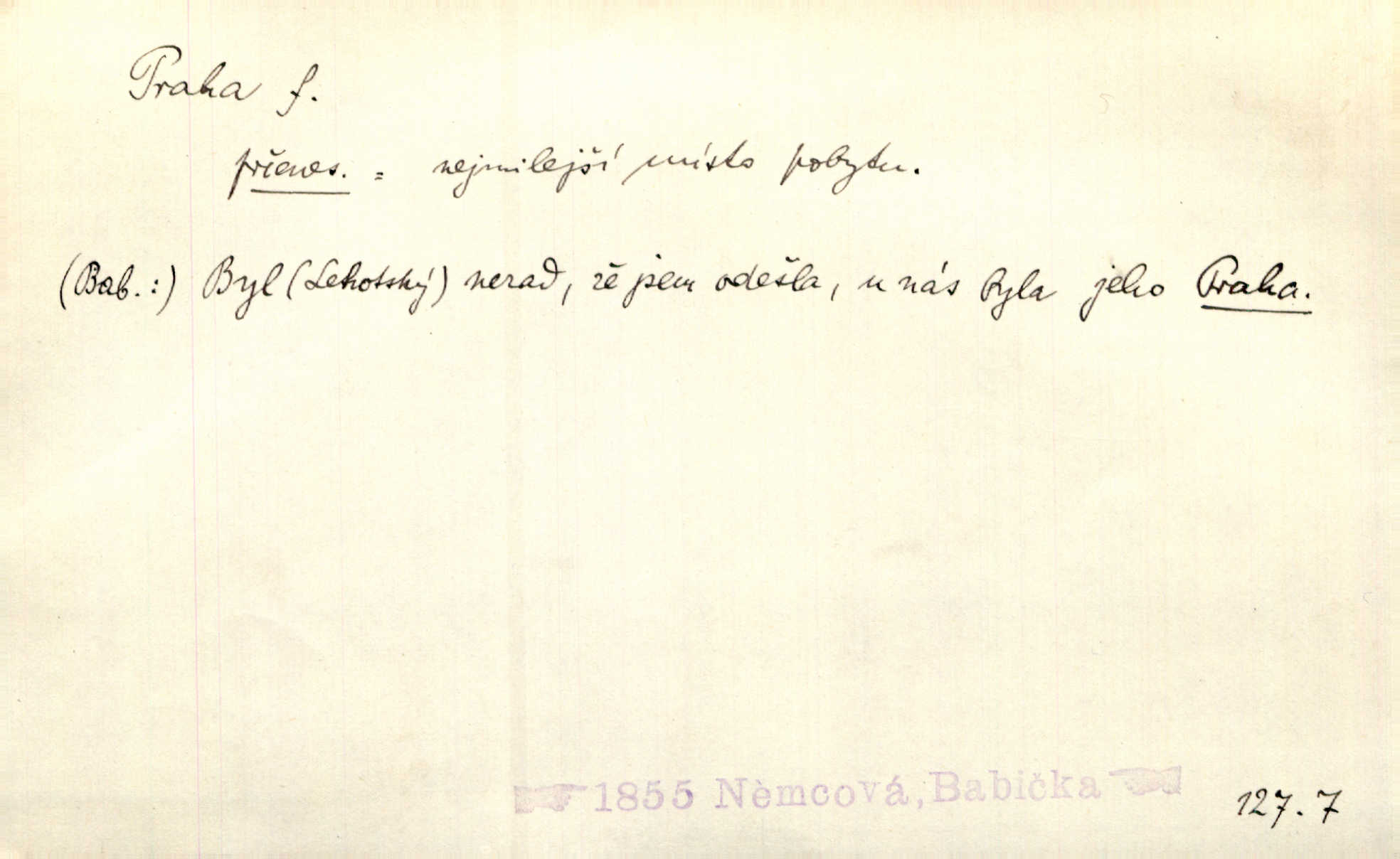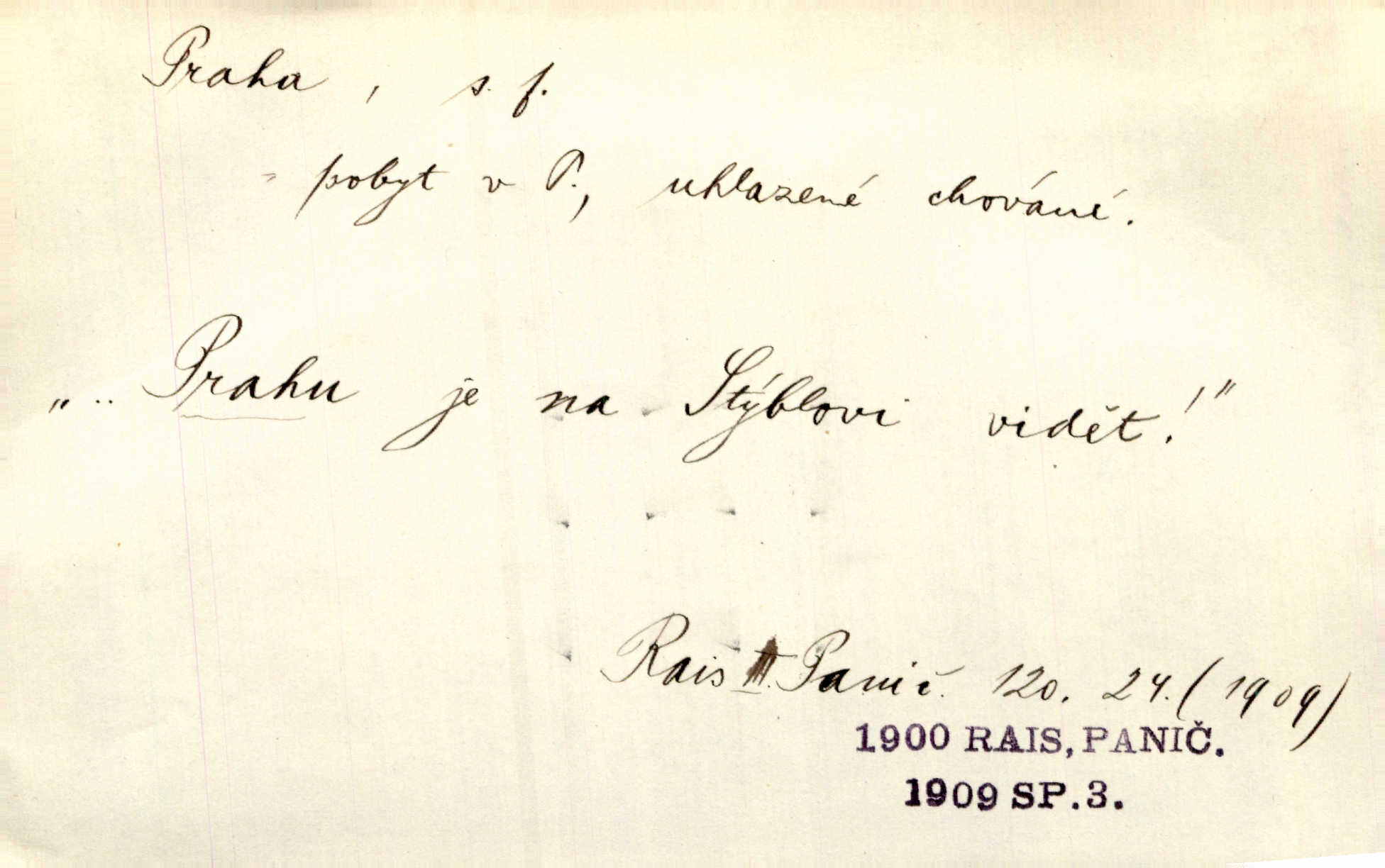 - Praha, -y f. jm. hlavního města v Čechách. Praha přišla se sobě ukázati v bohatých toaletách obyvatelé Prahy. Hlad. Prahu je na Stýblovi vidět! pobyt v Praze, uhlazené chování. Rais. Pacholek hošíkovi „ukazoval Prahu“ vyzdvihl ho do výše uchopením oběma rukama za hlavu. Hol. [Králenec] ukrojil si teninkou skývičku. Prahu by bylo vidět velmi tenounkou. Hol. Tak takové ono to je! No tak, už jsme z Prahy doma! konečně tomu rozumíme. Mor. Byl nerad, že jsem odešla, u nás byla jeho Praha nejmilejší místo pobytu. Něm. Divadlo bylo od jakživa moje Praha největší potěšení, radost. Šmil. U Hlaváčků mají pašeráci svou Prahu své oblíbené středisko. Jir. Velká Praha Praha s bývalými předměstími a nejbližším okolím. Přen. Nastaviv si celé Prahy zlatých nadějí do budoucnosti ubíral se zvolna k domovu množství. Šmil.