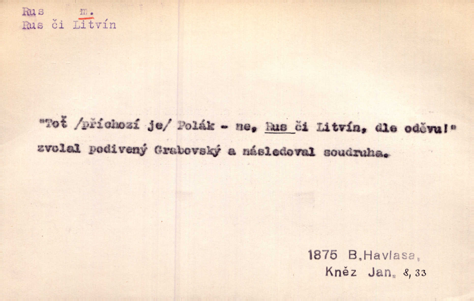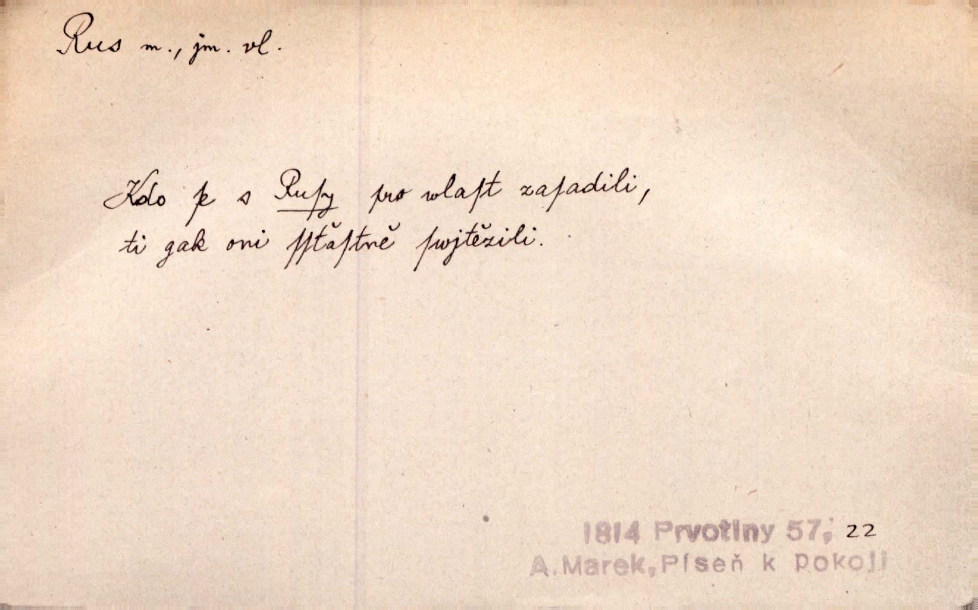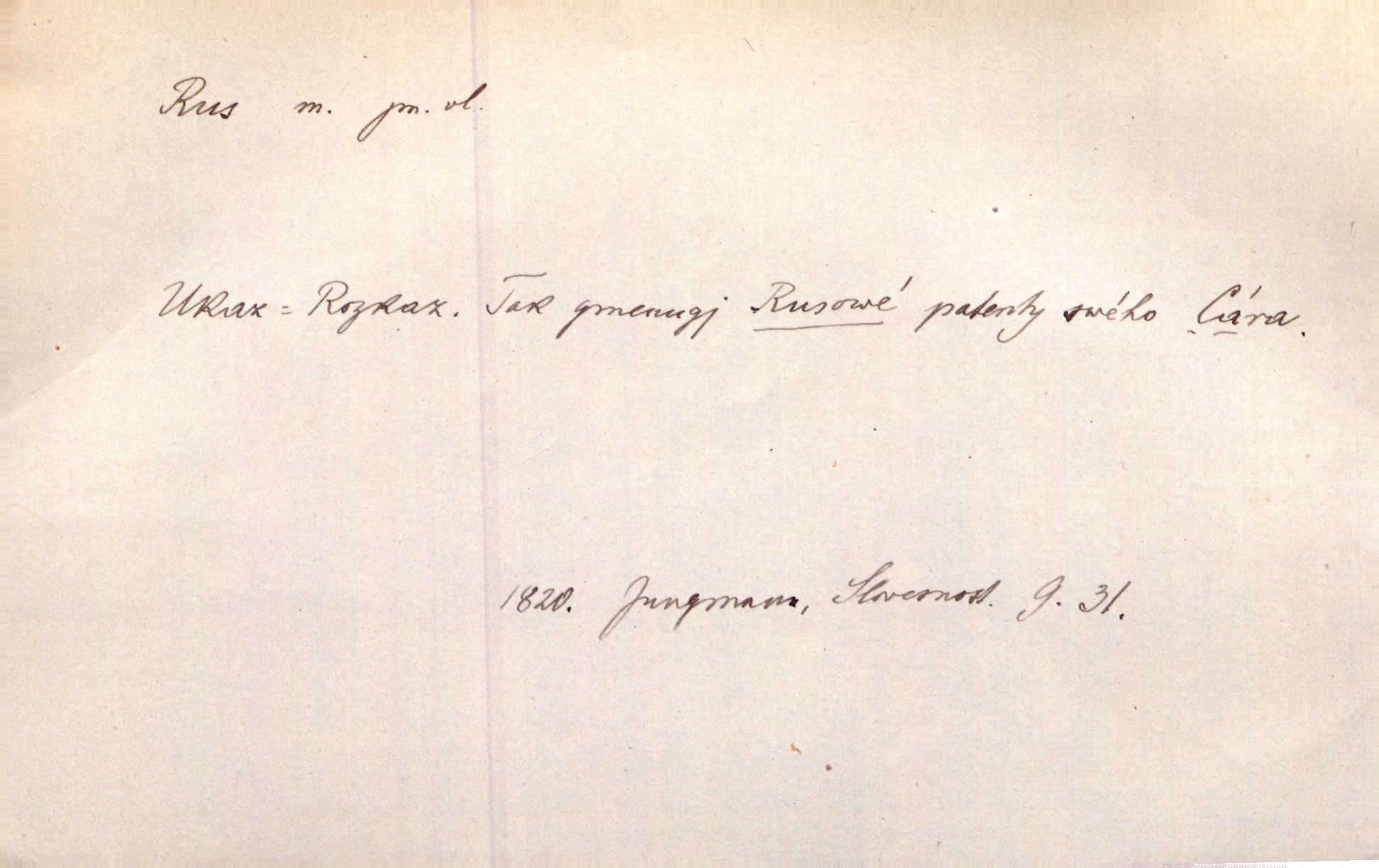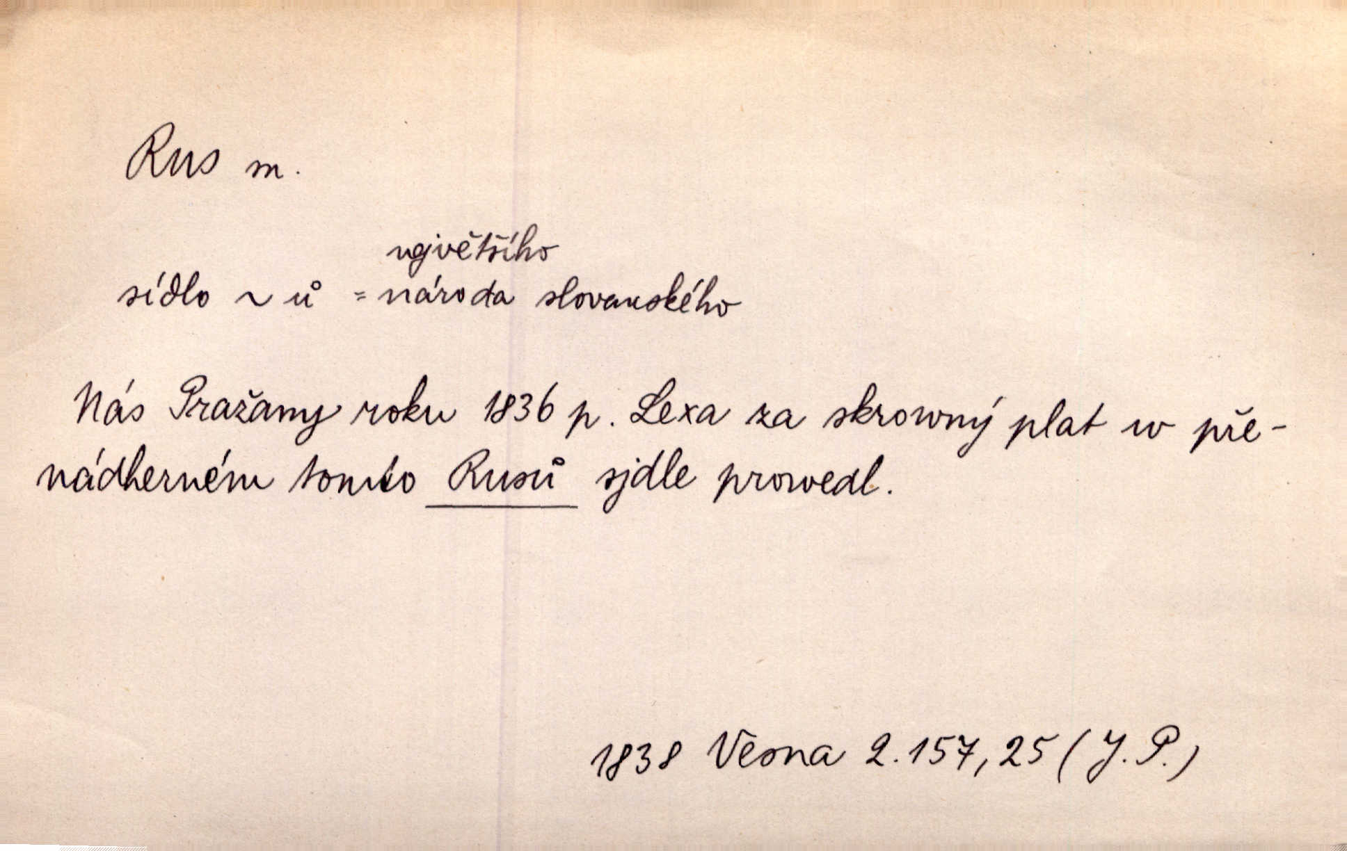 - Rus, -a m. člen největšího slovanského národa. Tudy táhli Rusové postupujíce proti Napoleonovi I. Jir. Rus pošle [do boje] dvakrát sto tisíc mužů Rusové, ruský národ. Jir. Zdraví měl jak Rus a mysli byl veselé pevné. Herb. Váš schovanec jest mnohem statnější [nežli Pavel] a zdravý jako Rus. Leg.