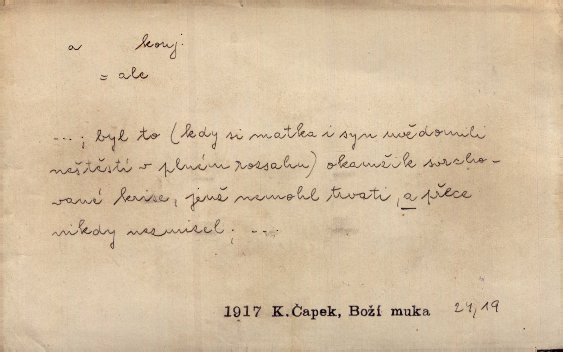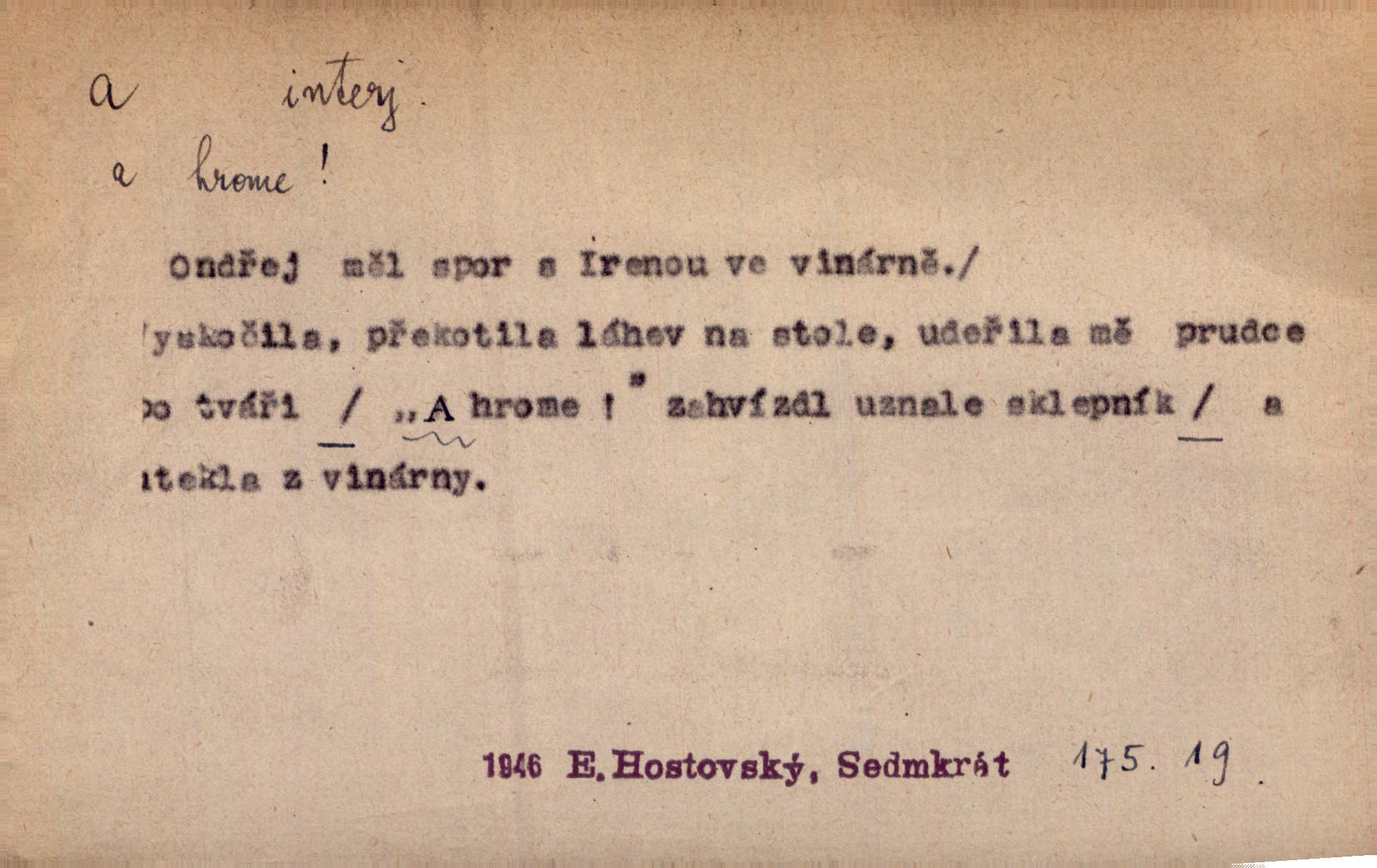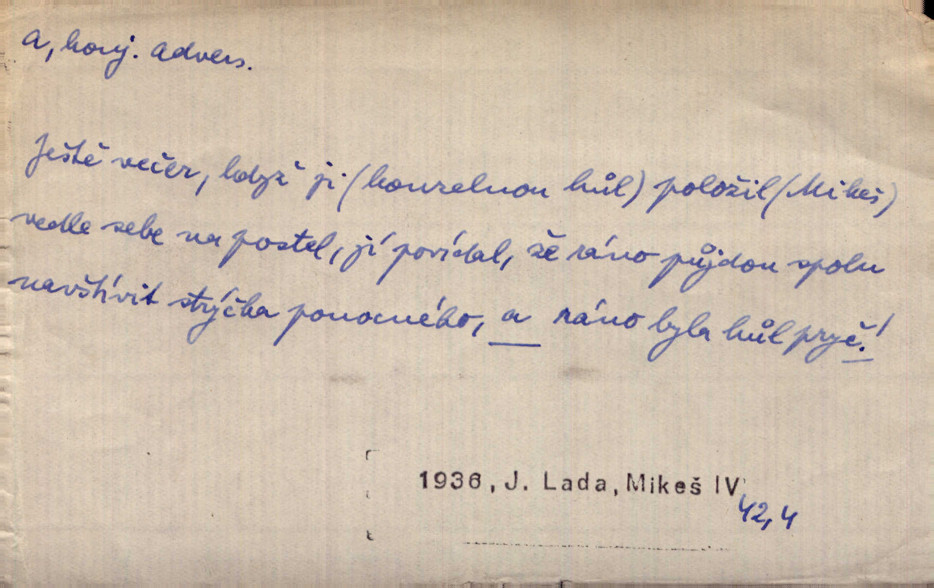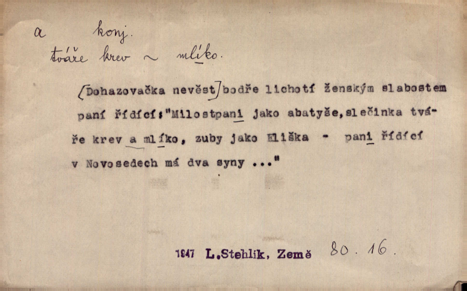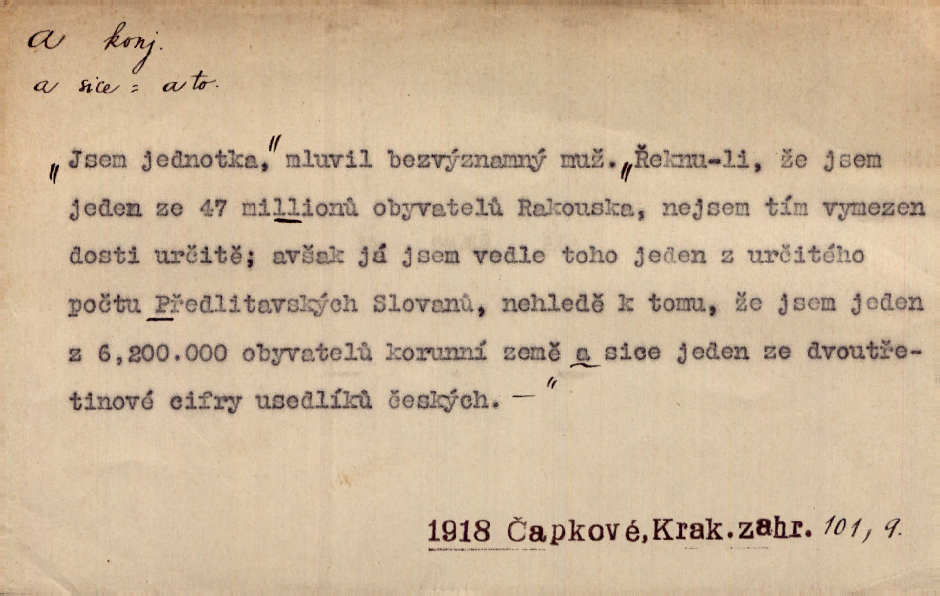 - a, á citosl. obyč. značí překvapení. „A!“ zvolal jen pan Pilňáček, až to škviklo, ale v tom „a!“ bylo vše: podivení, úžas, překvapení a také trochu nedůvěry. Herrm. „Aaa?!“ divil se Don Juan. Mach. Vyjadřuje uspokojení. Ááá — to to voní! bolest, stenání. Dech básníkův provázen jest sotva znatelným zastenáním: „A… a… a…“ Čap. Ch. rozmrzelost. „Co to, že vy nejste dnes v úřadě?“ „A, zpozdil jsem se dnes.“ Herb. Naznačuje zívání. Faust se nudí a já se nudím také! Aá! Zákr.