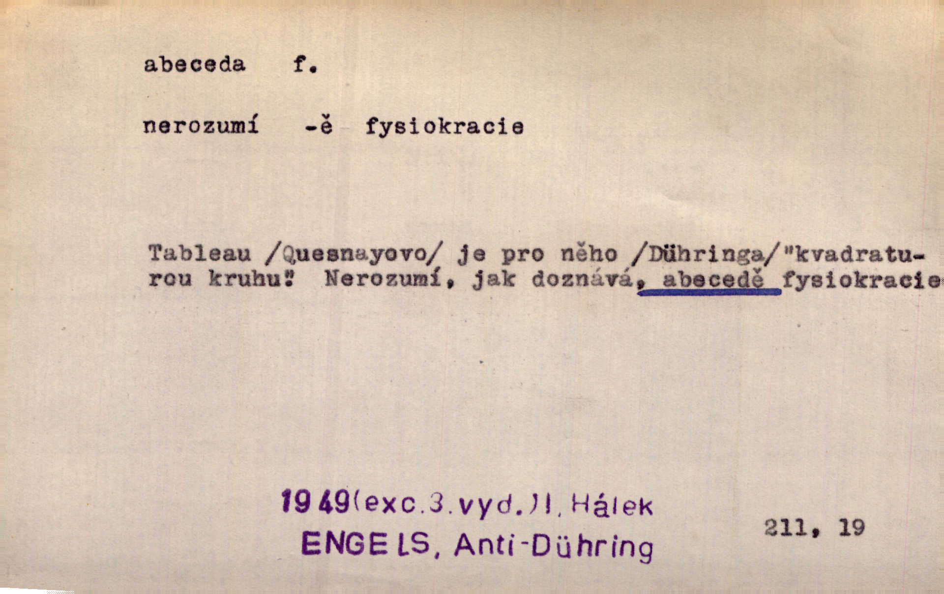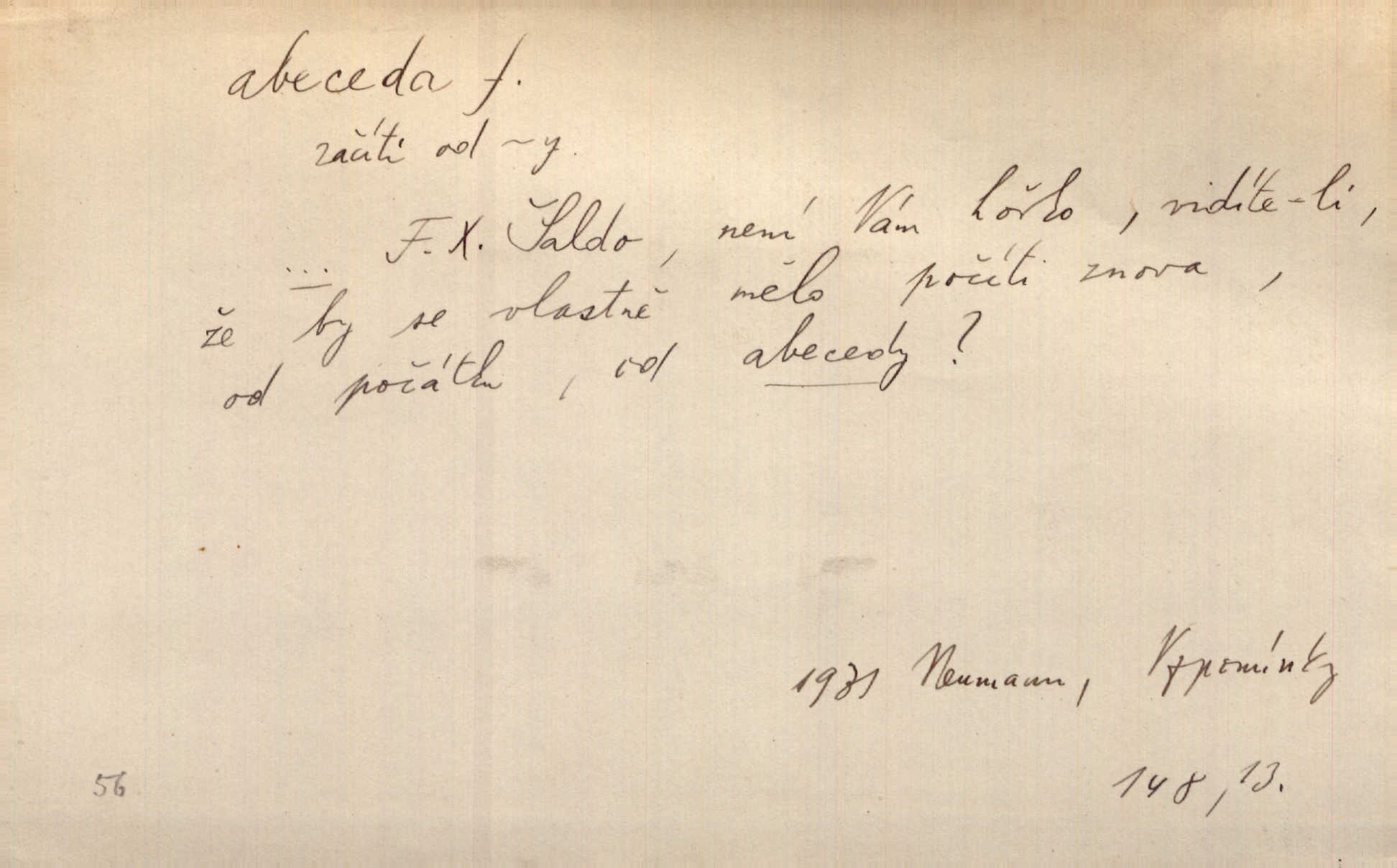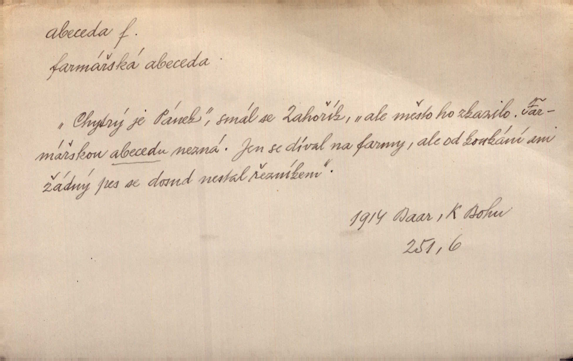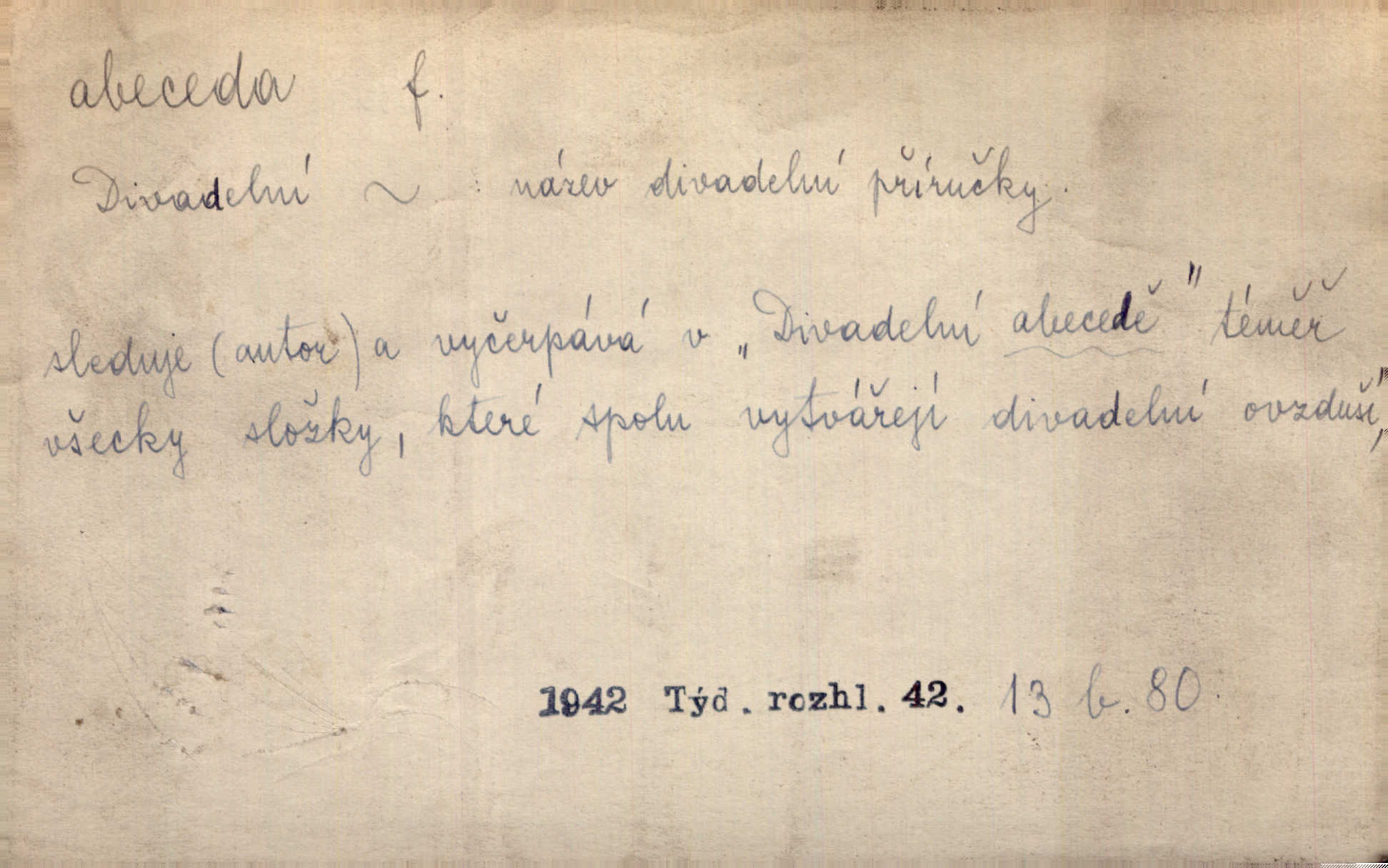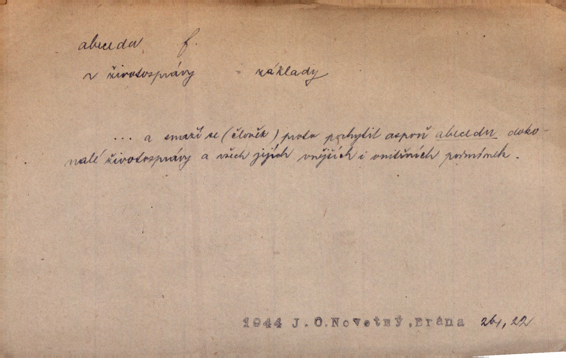 - abeceda, -y f. ustálený pořádek písmen psací soustavy. Abeceda česká, ruská (azbuka), řecká atd. D základní poznatky některého oboru. Správnost dikce je poslední v žurnalistické abecedě. Dyk. základ, počátek. Začínati od abecedy.