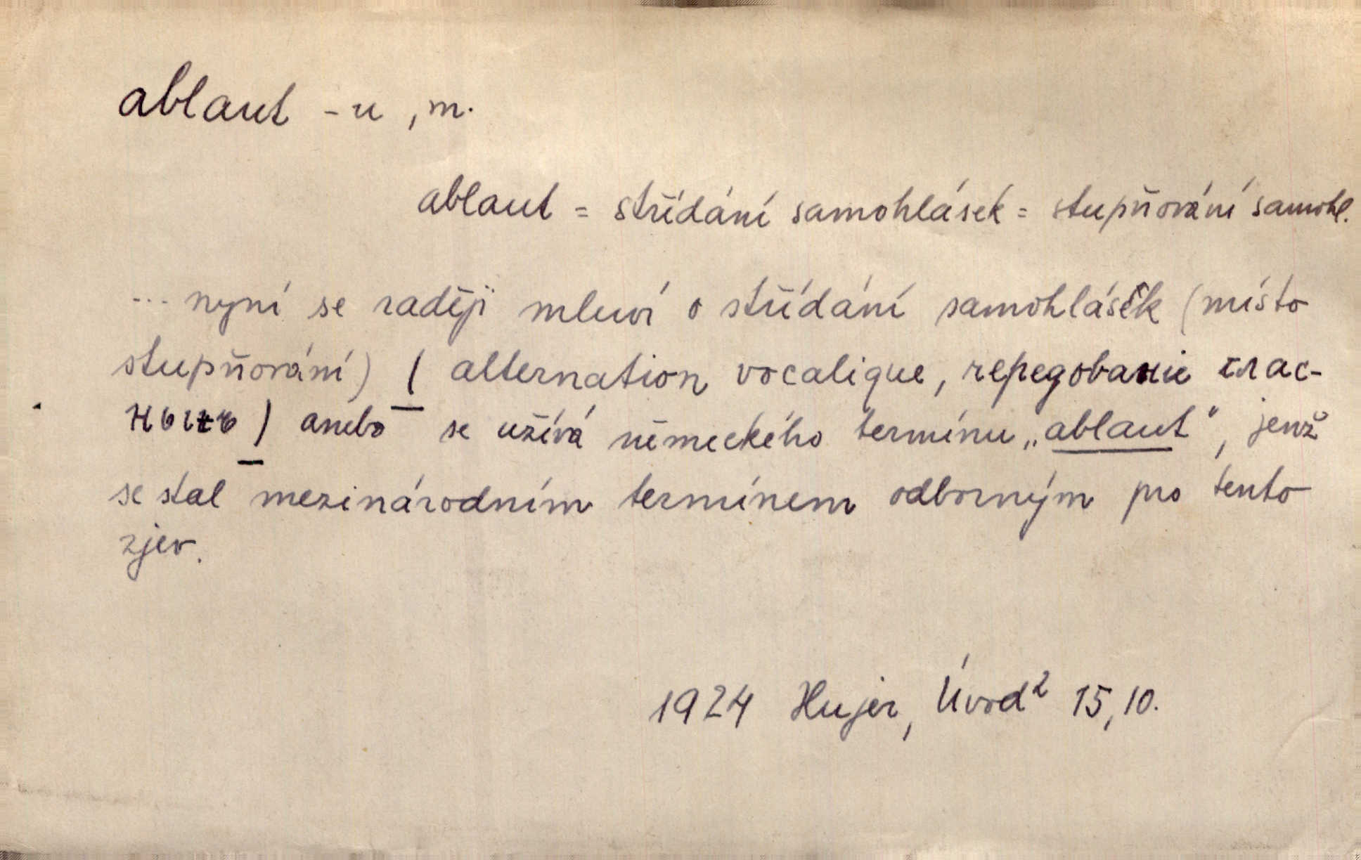 pravidelné střídání samohlásek v slabikách etymologicky totožných (na př. nesu — nositi — snášeti).