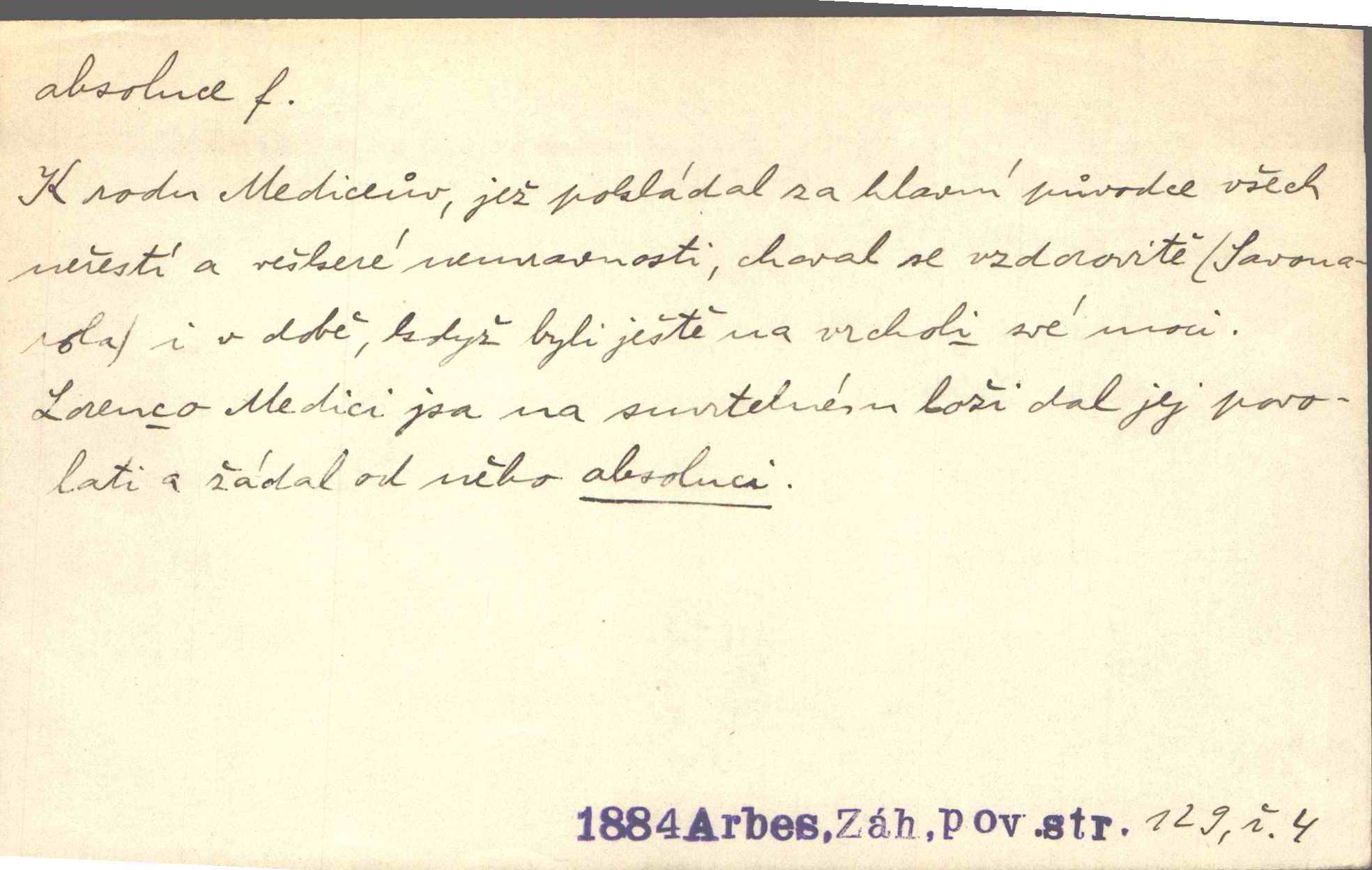 Lorenzo Medici jsa na smrtelném loži žádal od Savonaroly absoluci.