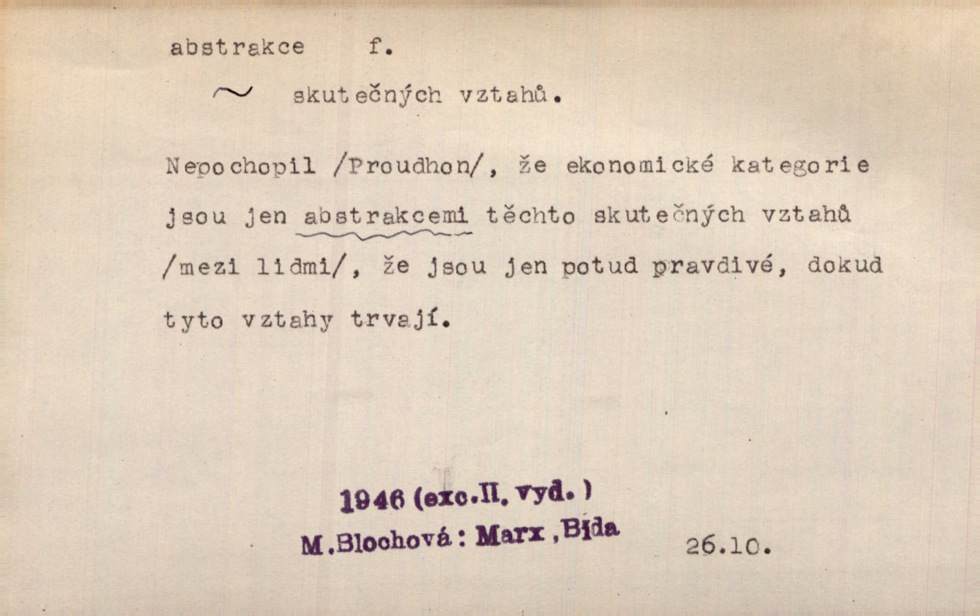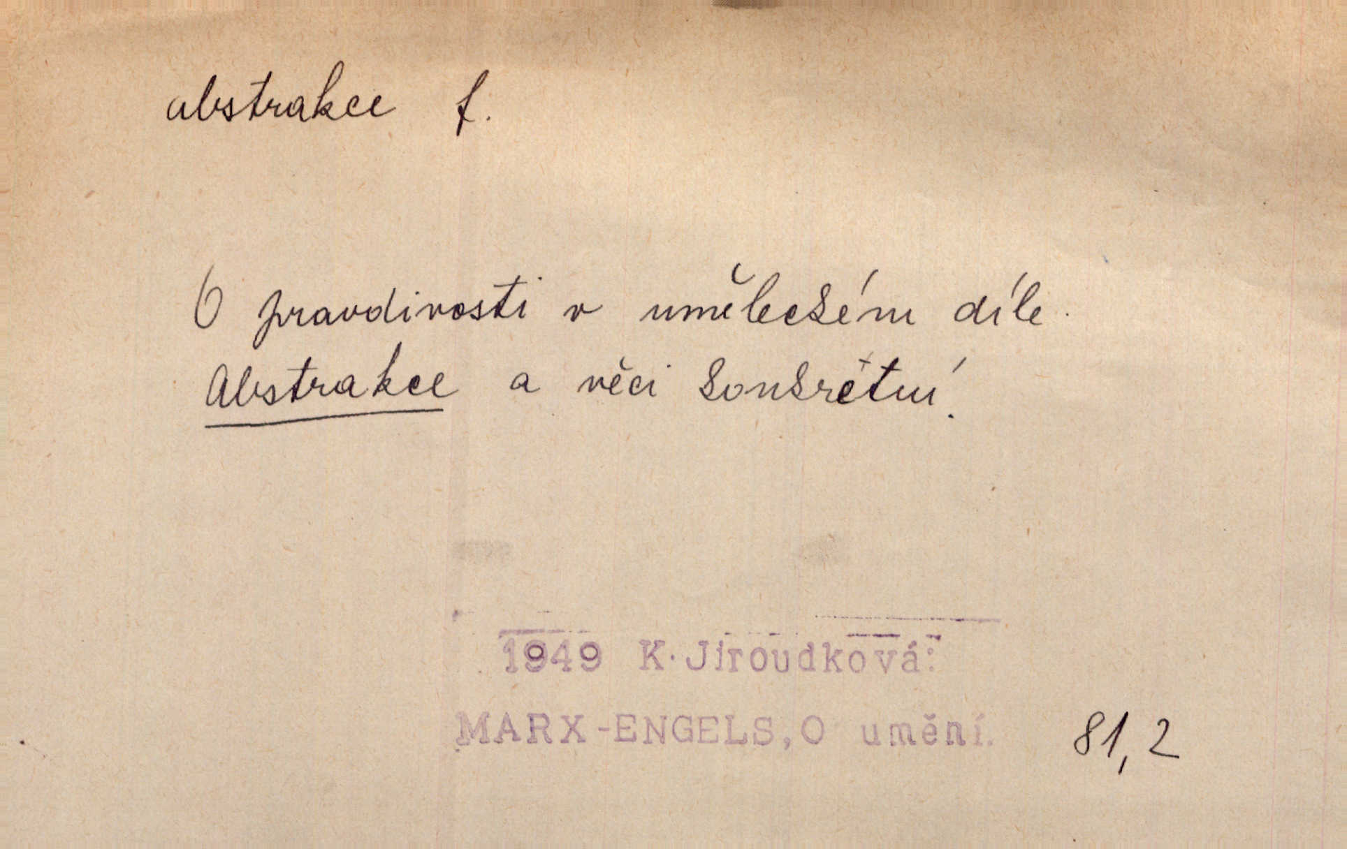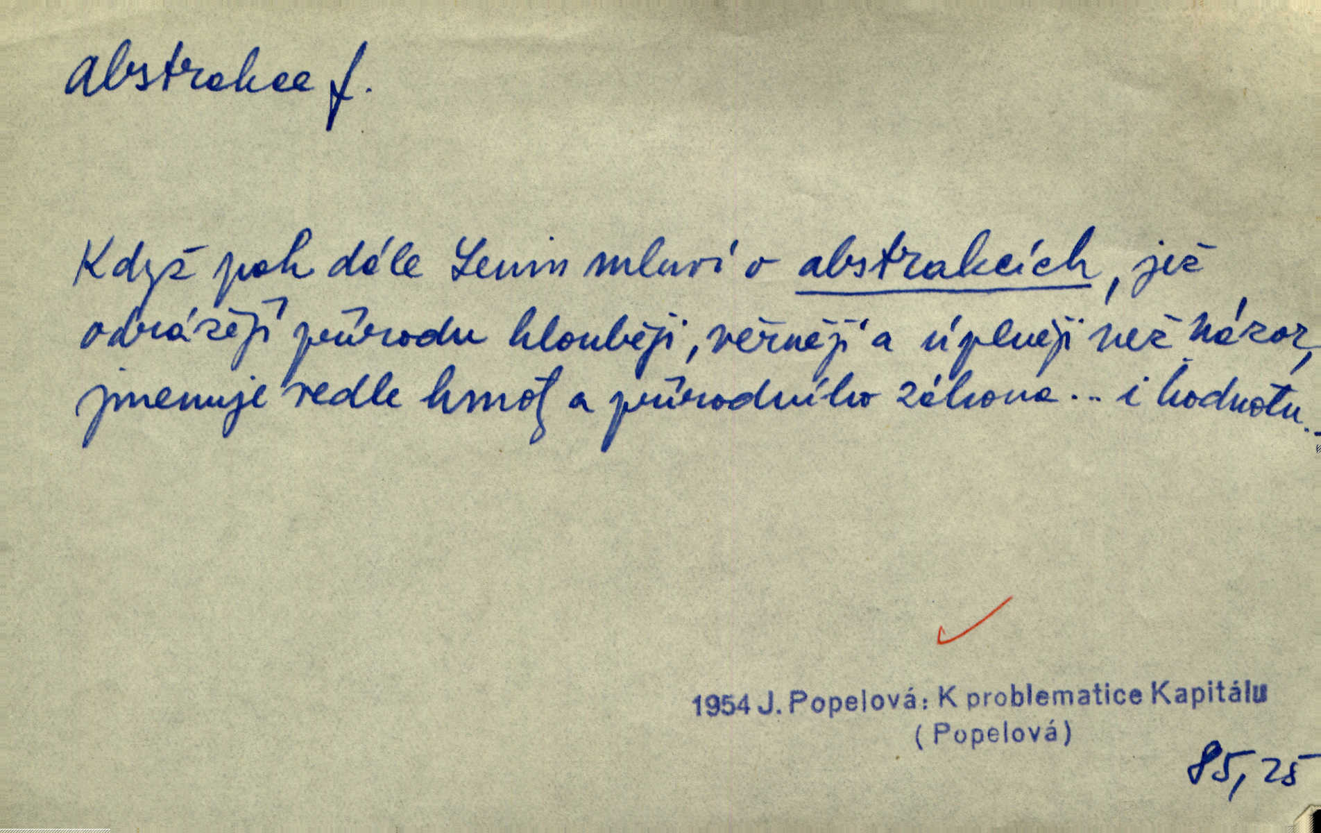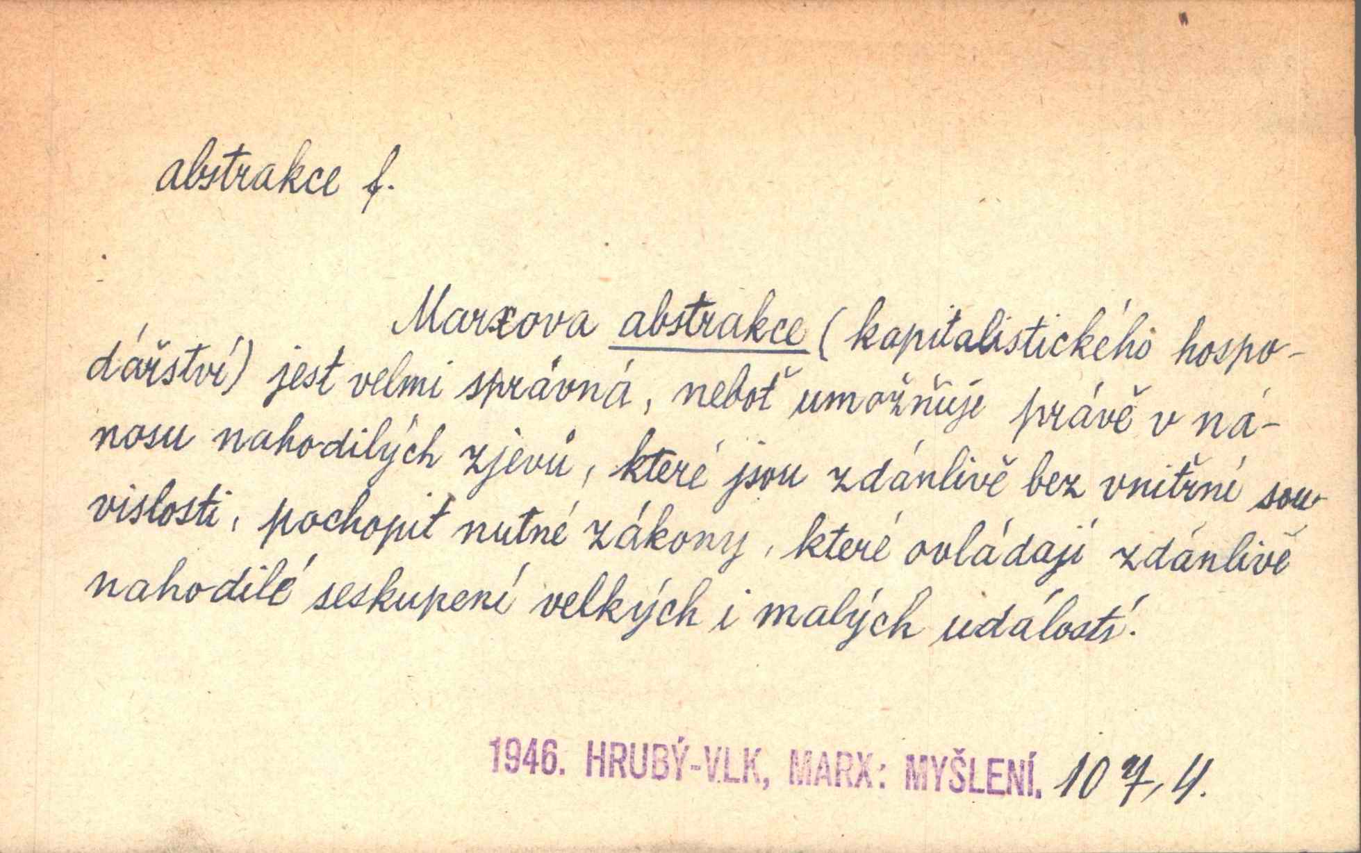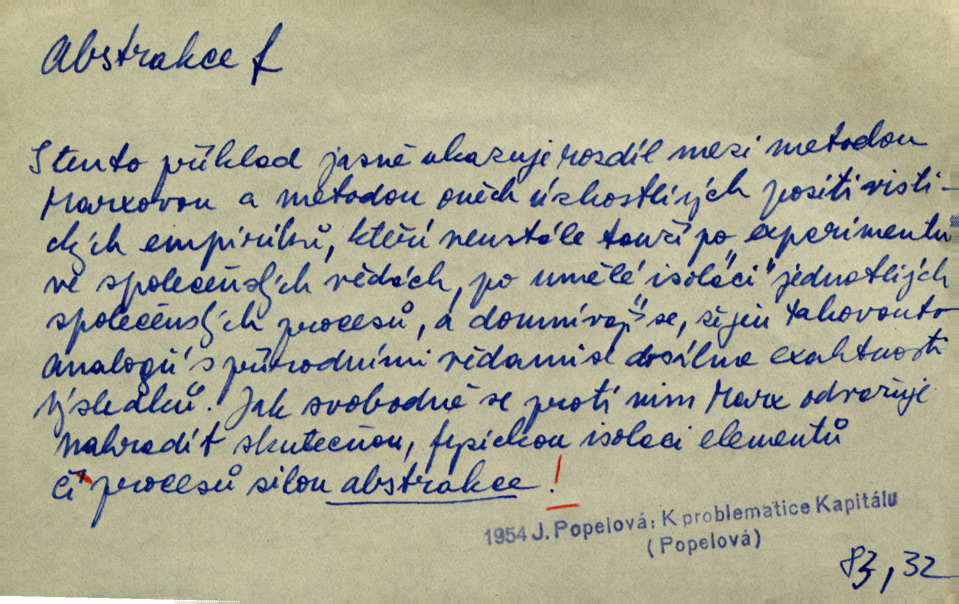 - abstrakce, -e f. filos. pomysl (op. konkretnost). Individuum vědě jest jen abstrakcí, pravou skutečninou jest člověčenstvo. Mas. Neodb. s vedlejším význ. nemožnosti, neskutečnosti. Otázka, zdali národnost má do sebe skutečnou realitu aneb je-li pouhým toliko pomyslem, jalovou abstrakcí. Pal. Úmyslně se vyhýbal rozumné konkretnosti a místo dával prázdné abstrakci. V. Mrš.