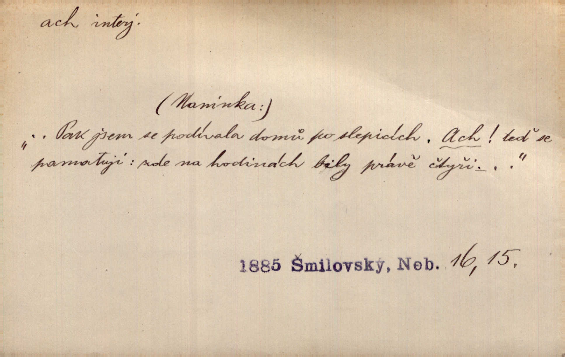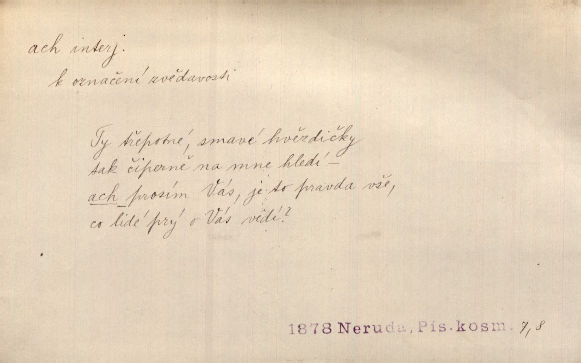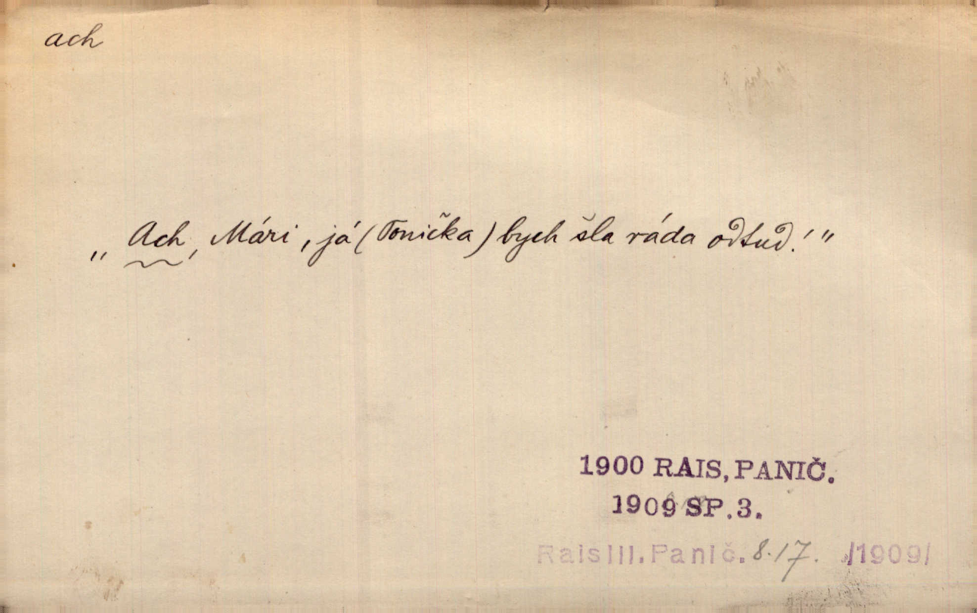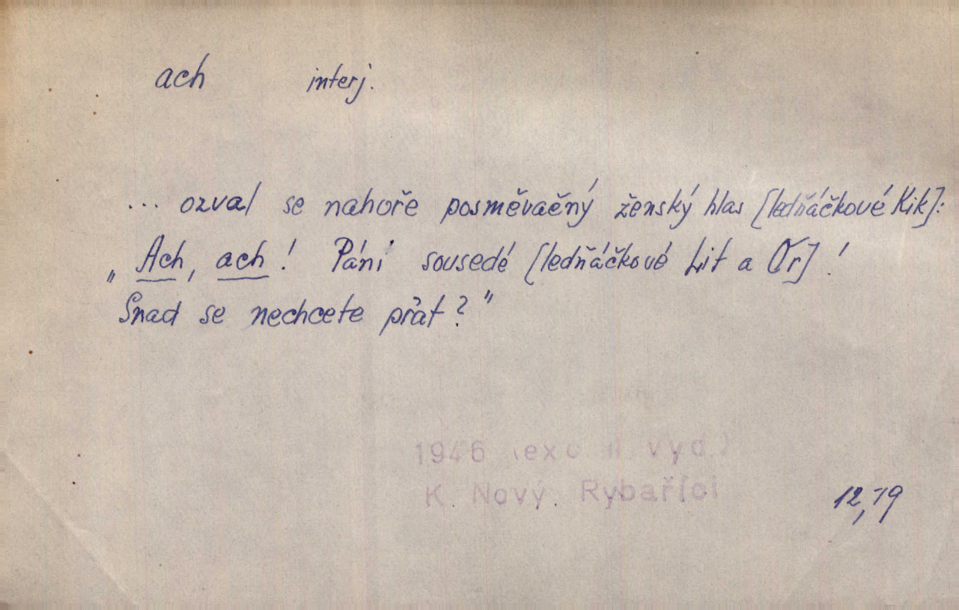 - ach citosl. vyjadřující rozmanité pocity příjemné i nepříjemné (bolest, zármutek, touhu, příjemné překvapení, obdiv a j.). Ach, to je s mužem trápení, to je s ním trápení! Rais. Ach, moře, já je slýchal duněti kdys v mládí v slokách Childe-Harolda. Mach. Každý nám chvějně přišeptne, že hřešit je ach tak hezké! Ner. Voní vám to tu jak u biskupa. Ááách! Herrm. D substantivováno: Hospodyně si stále stěžovala a pro stálé achy a ochy vůbec k ničemu nepřicházela. Klost. D Redupl. achach, achachach a j. Každý chce být jen pánem s pérem za uchem — zatím — achach, známe to panství! Rais.