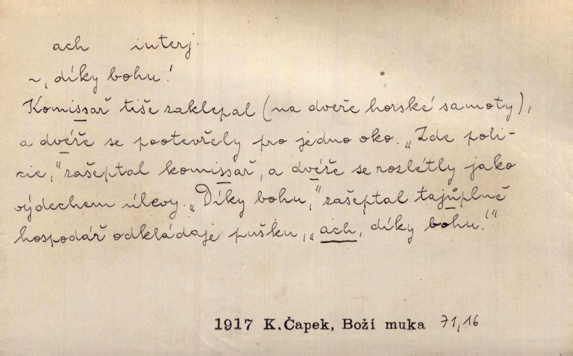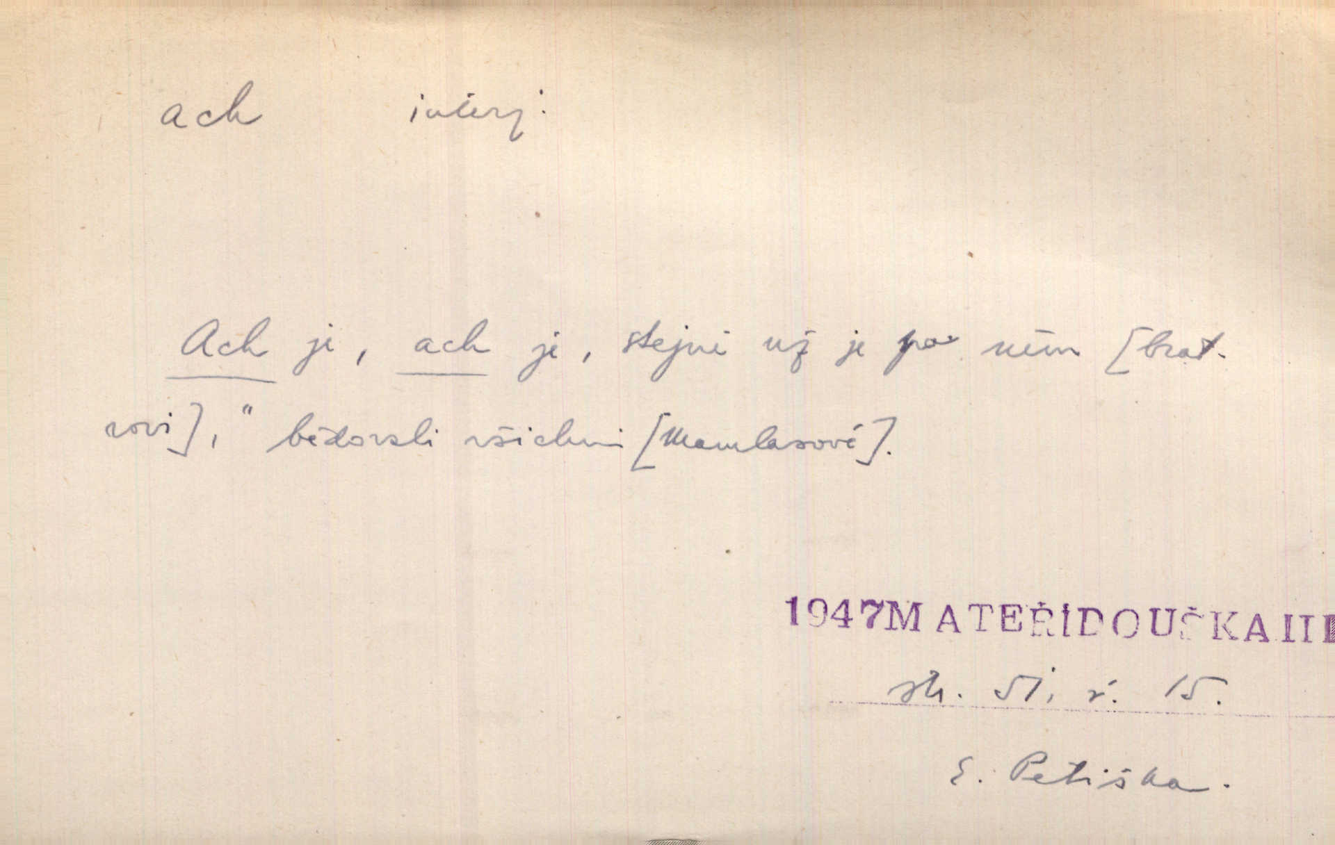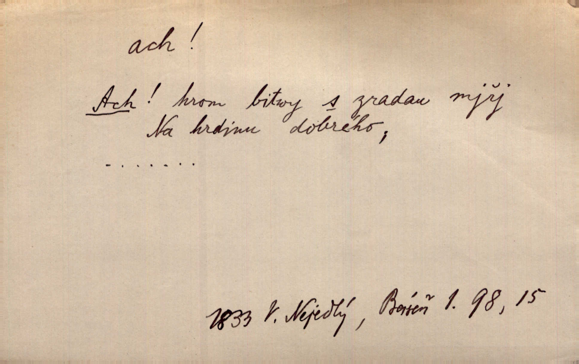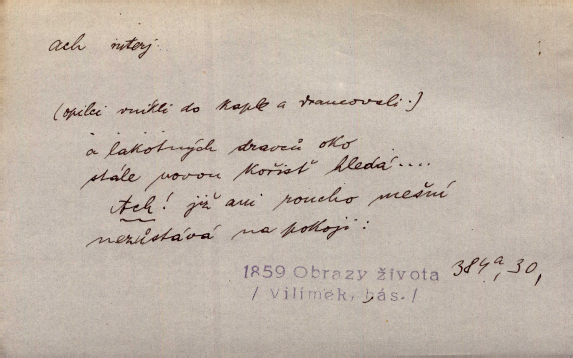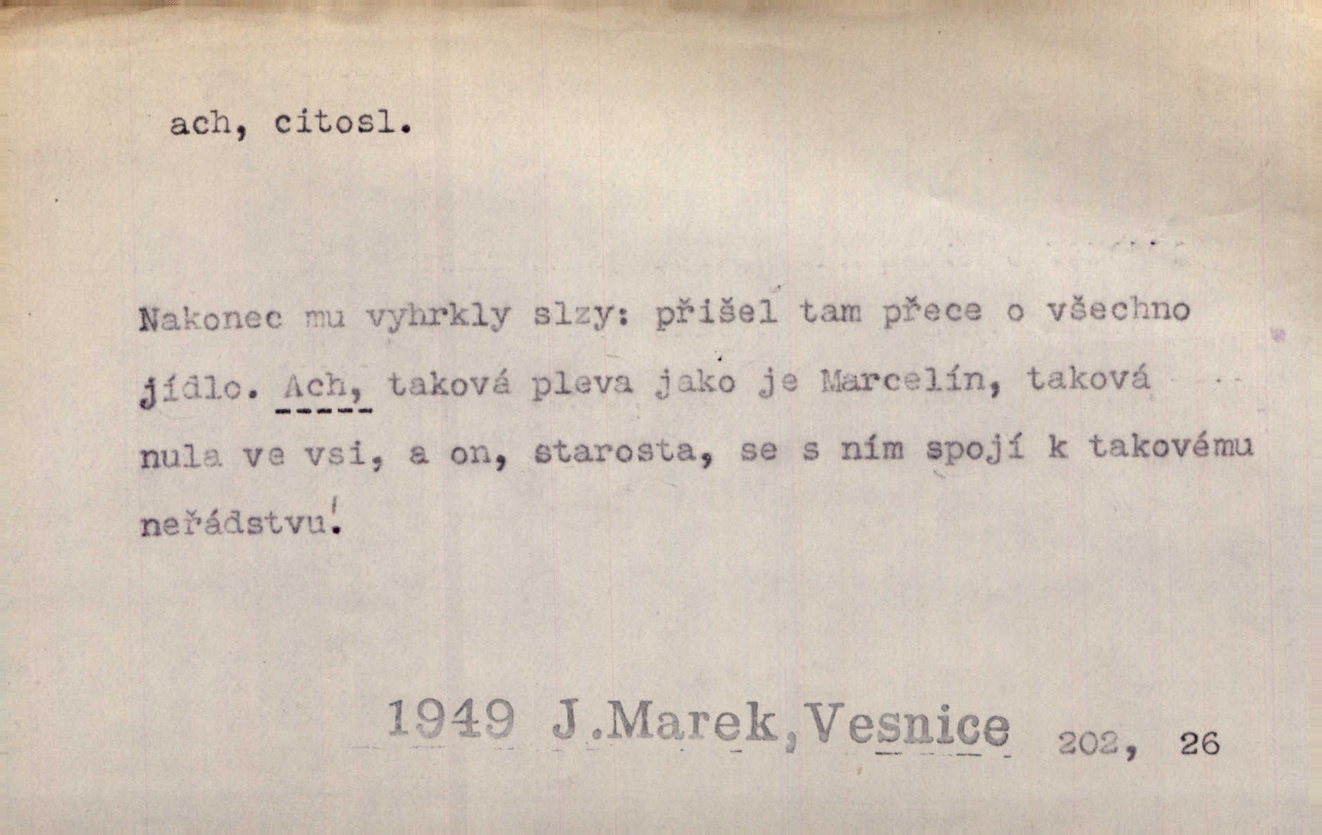 - ach citosl. vyjadřující rozmanité pocity příjemné i nepříjemné (bolest, zármutek, touhu, příjemné překvapení, obdiv a j.). Ach, to je s mužem trápení, to je s ním trápení! Rais. Ach, moře, já je slýchal duněti kdys v mládí v slokách Childe-Harolda. Mach. Každý nám chvějně přišeptne, že hřešit je ach tak hezké! Ner. Voní vám to tu jak u biskupa. Ááách! Herrm. D substantivováno: Hospodyně si stále stěžovala a pro stálé achy a ochy vůbec k ničemu nepřicházela. Klost. D Redupl. achach, achachach a j. Každý chce být jen pánem s pérem za uchem — zatím — achach, známe to panství! Rais.