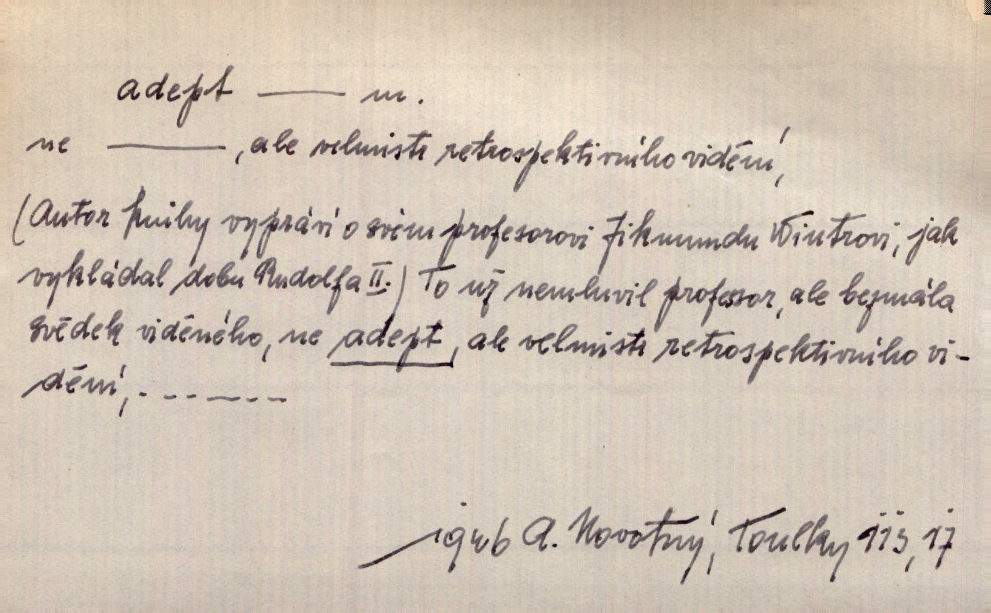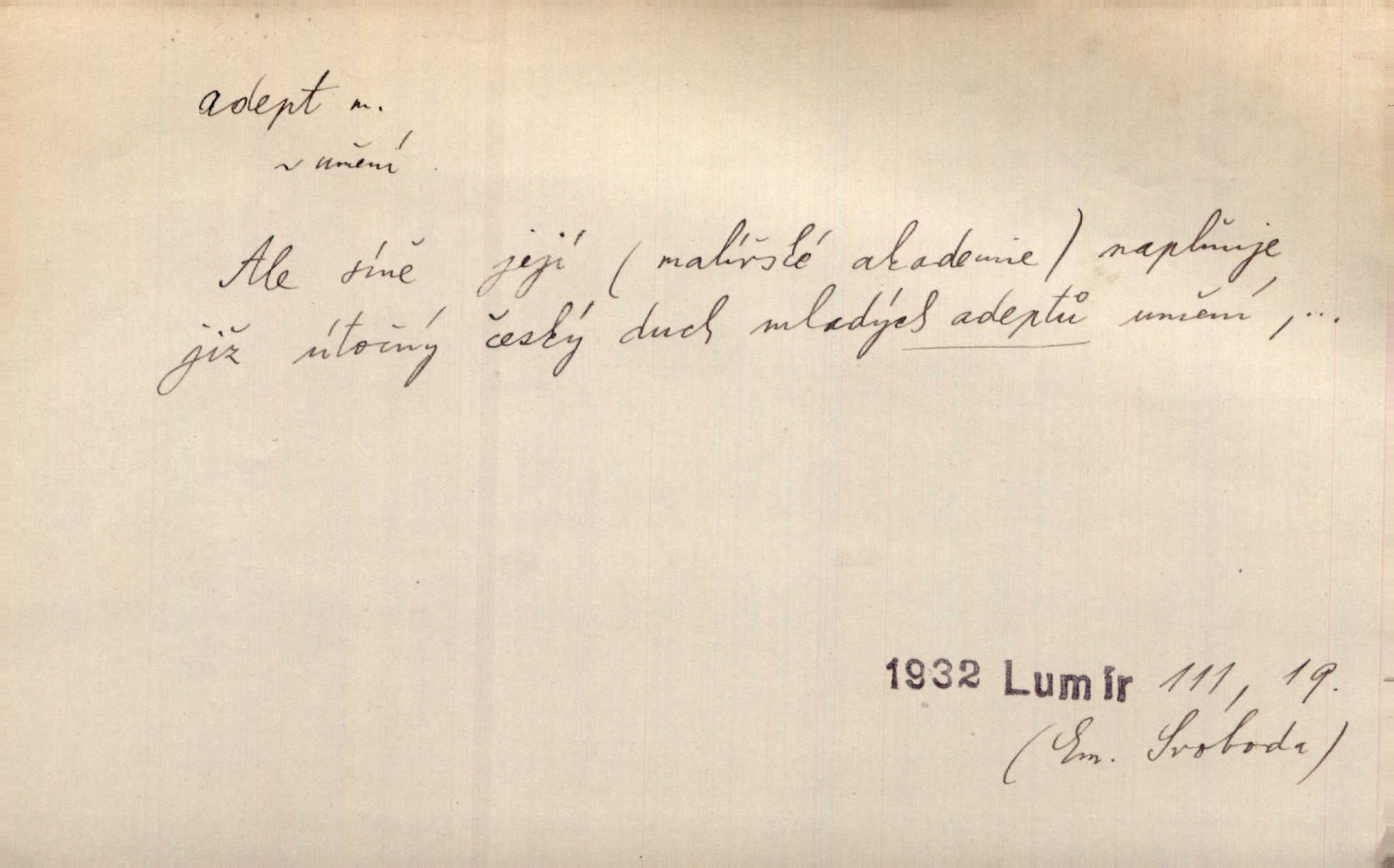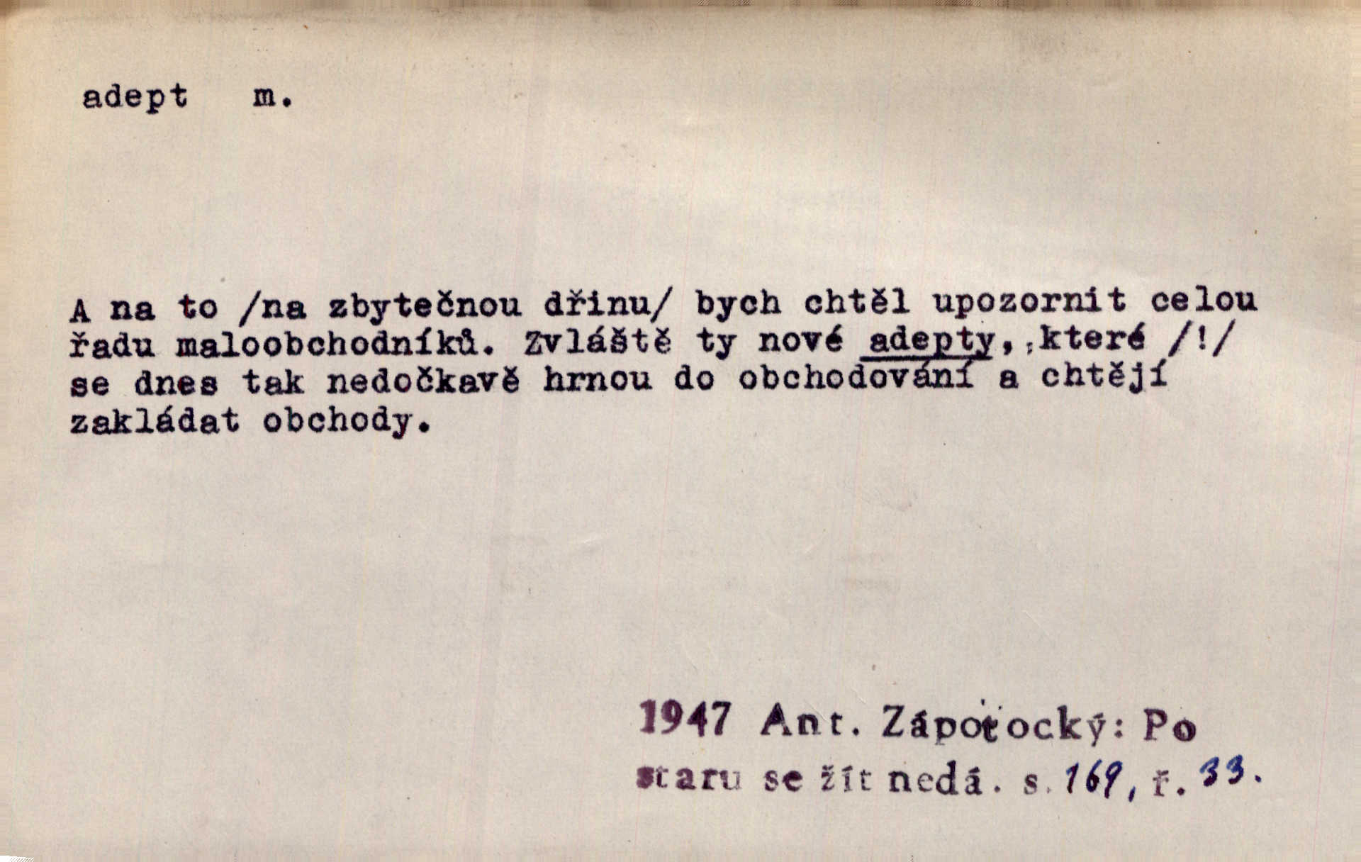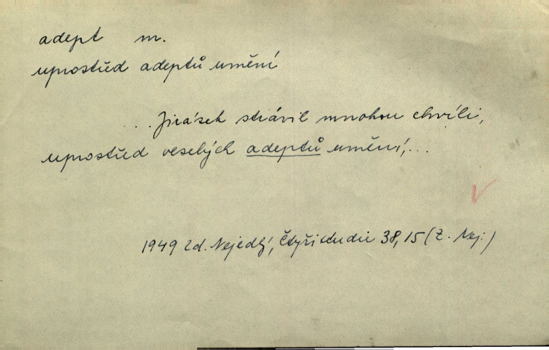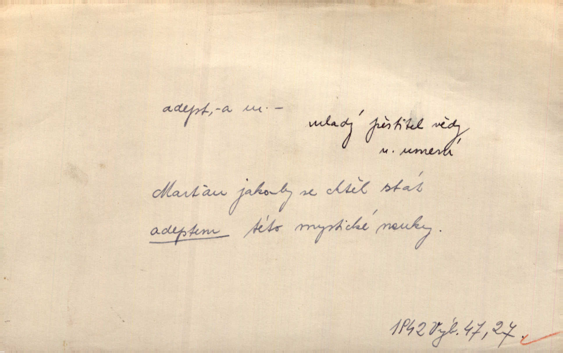 - adept, -a m. kdo vniká do nějakého učení, oboru vědního, uměleckého n. i praktického a chce se oddati jeho pěstování, zpravidla začátečník. Adept vědy, umění. D přivrženec, následovník. Neodsuzuji ani Zolu ani ostatní naturalisty, jeho adepty a nohsledy. Klost.
