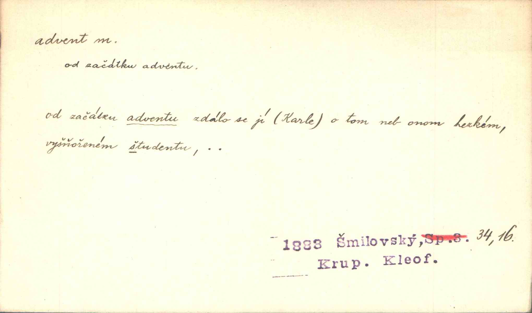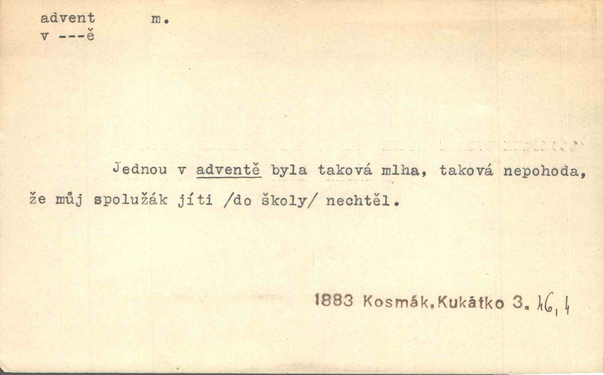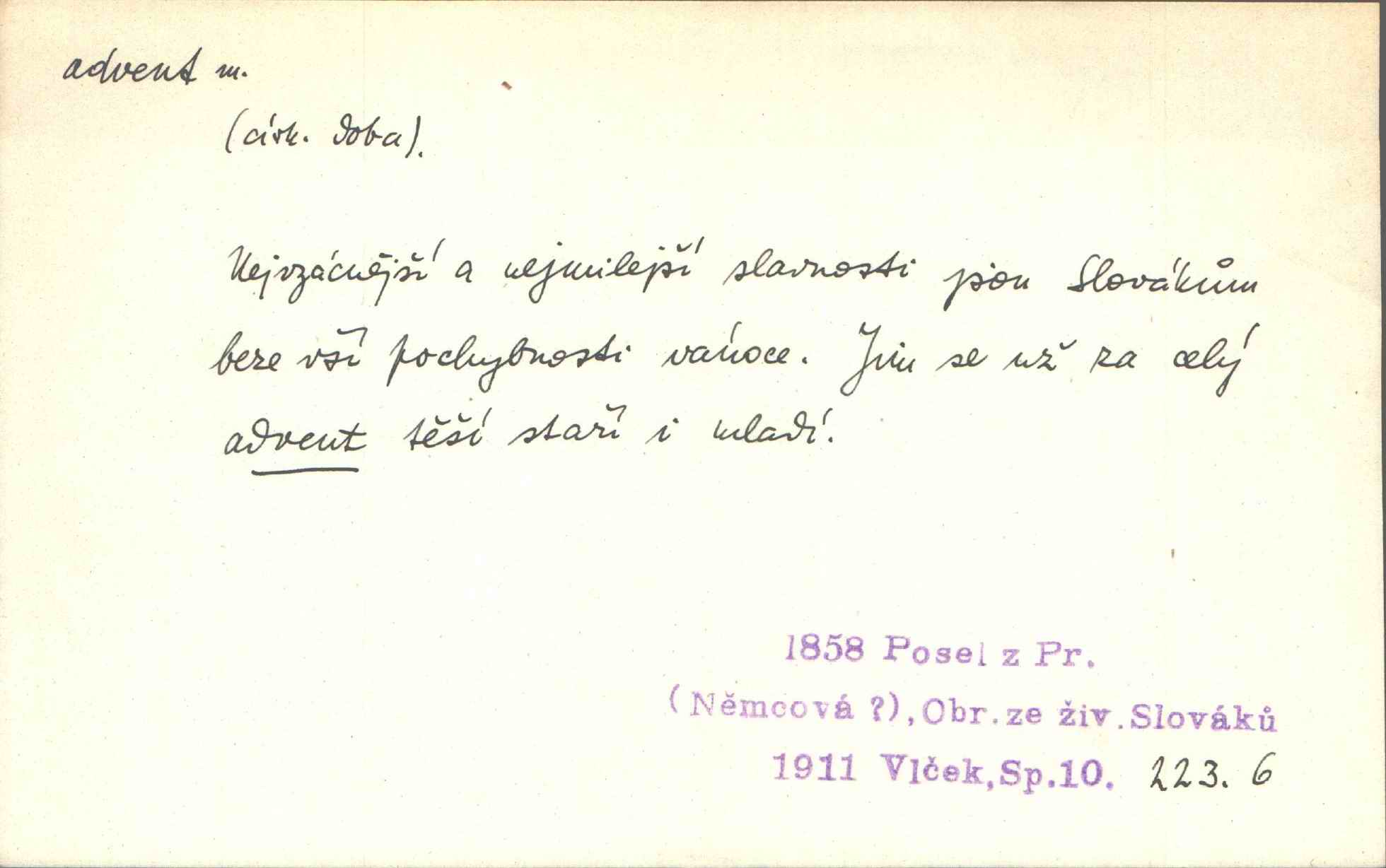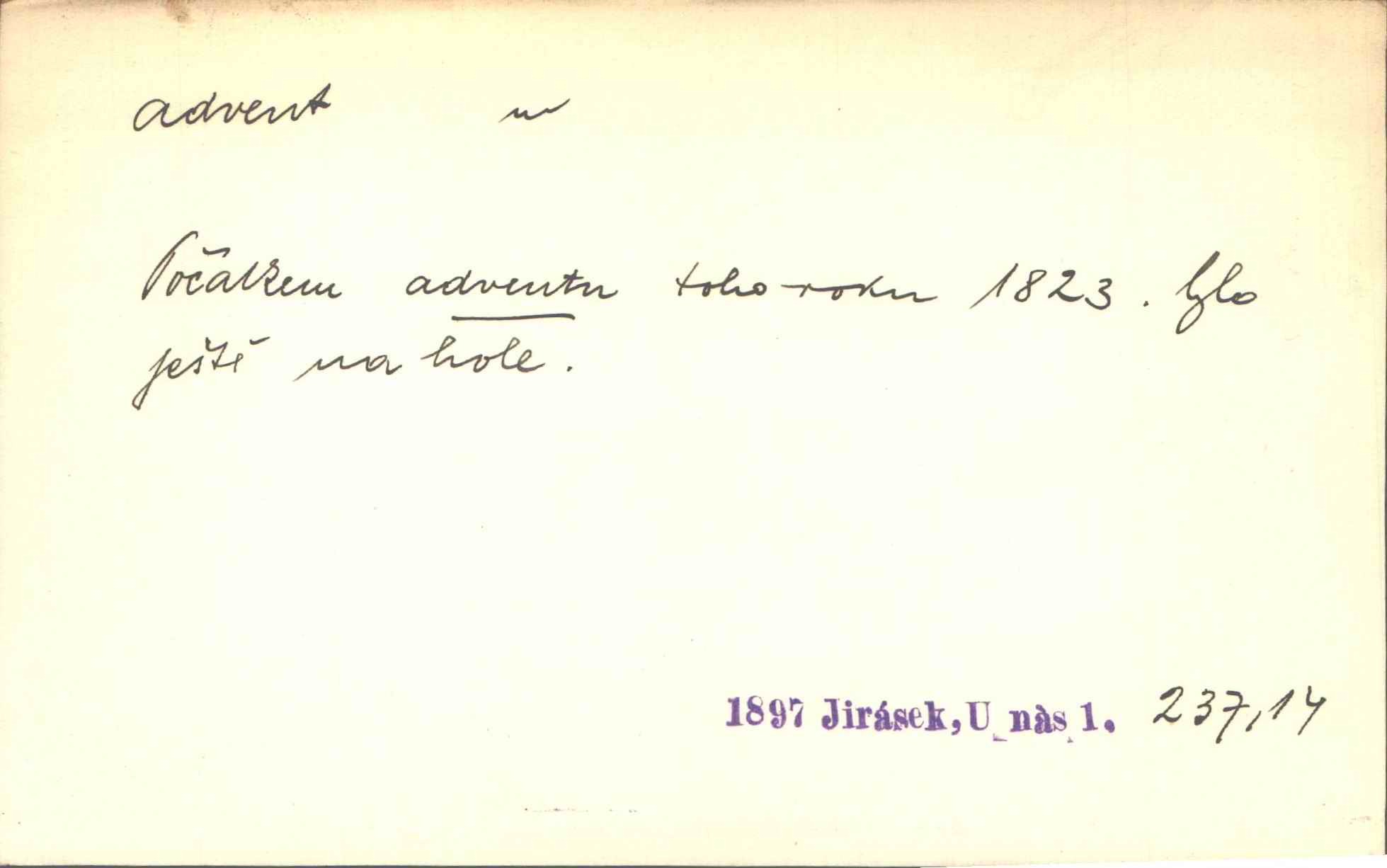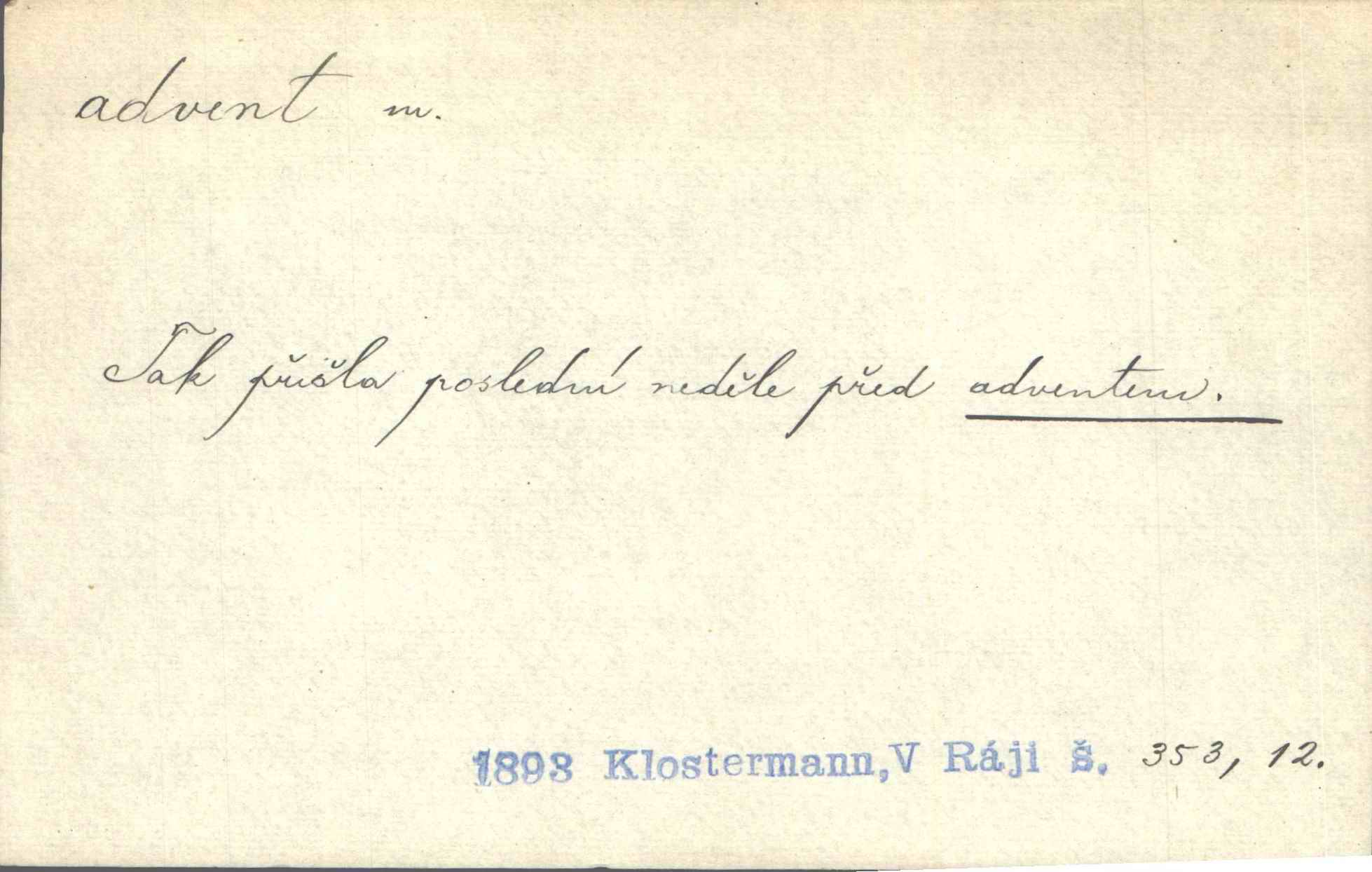 - advent, -u m. círk. doba čtyř neděl před vánocemi, doba předvánoční. V adventě jsem chodíval s otcem na rorate. Rais. Přen. Oč potom budou krásnější vzpomínky na onen čas očekávání a doufání, na onen advent lásky! Wojk.