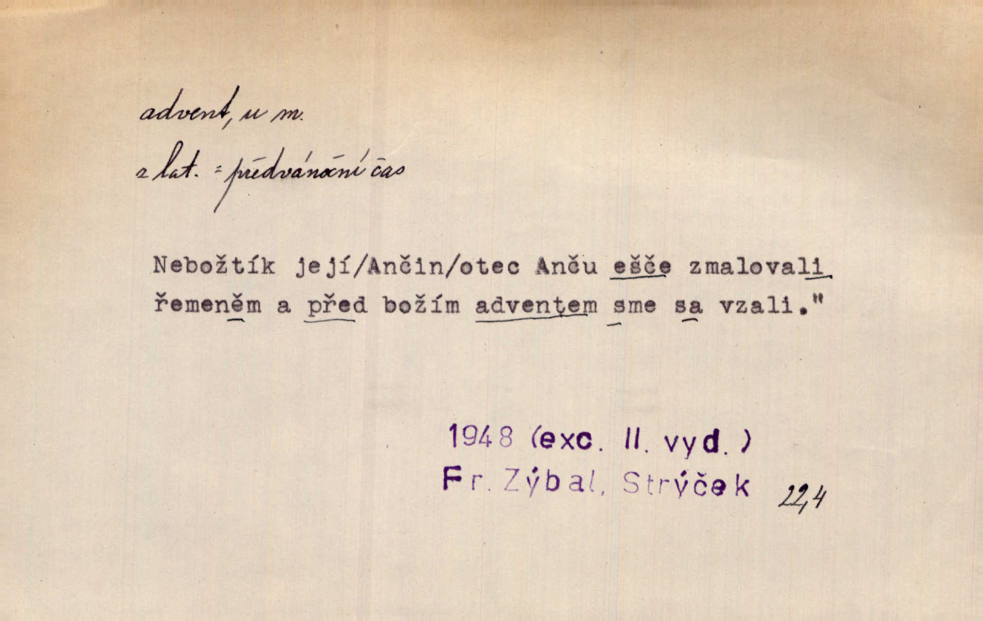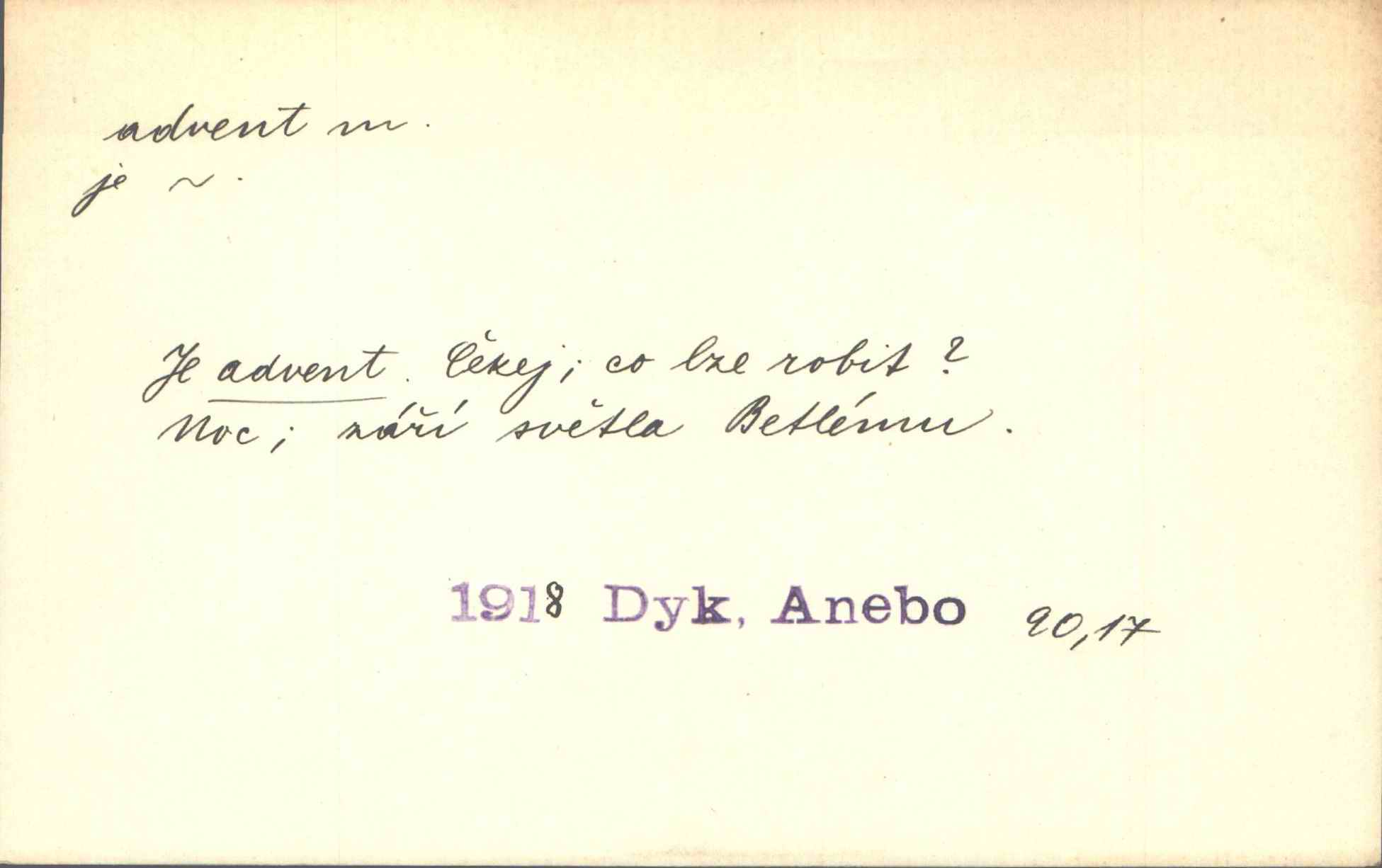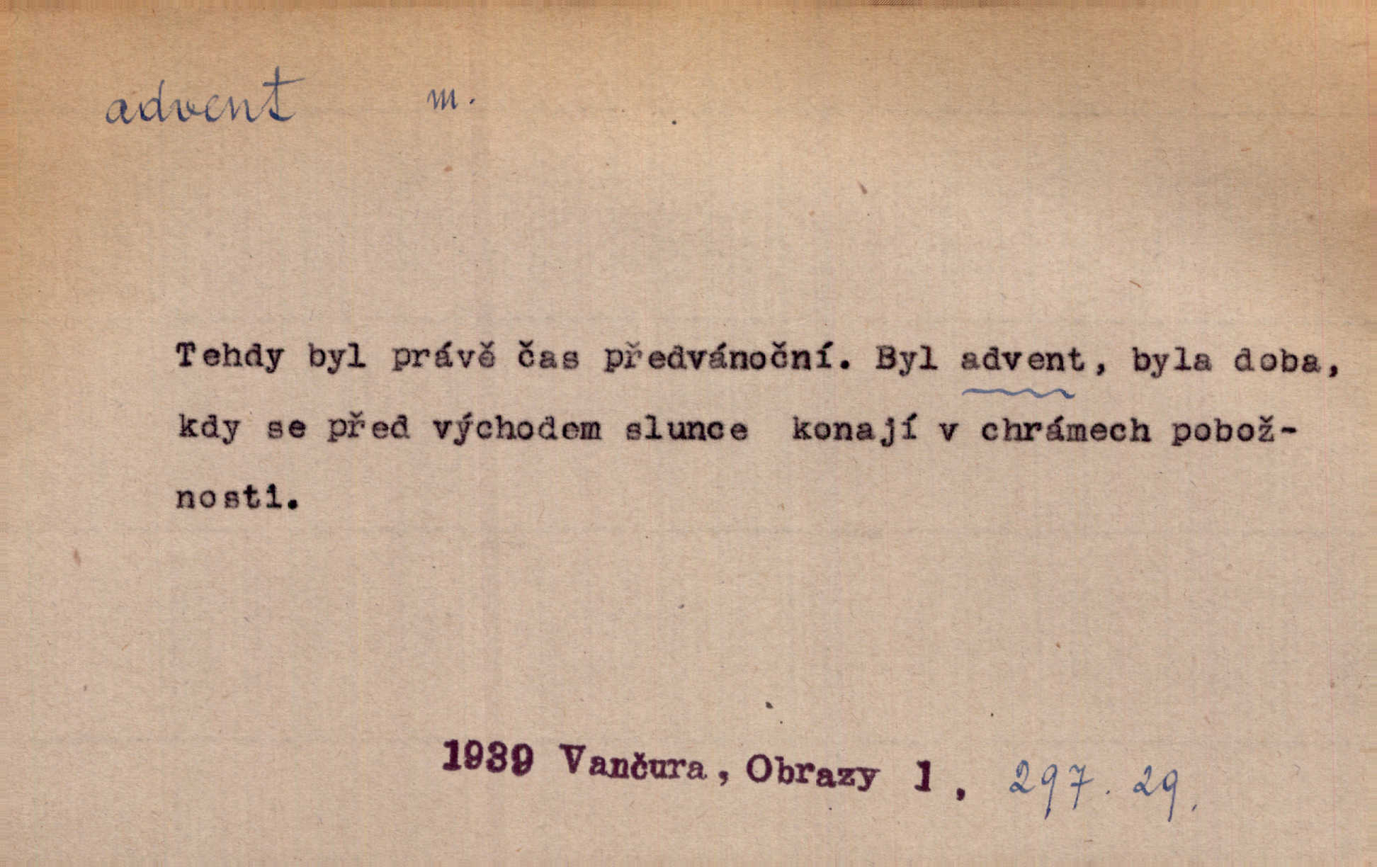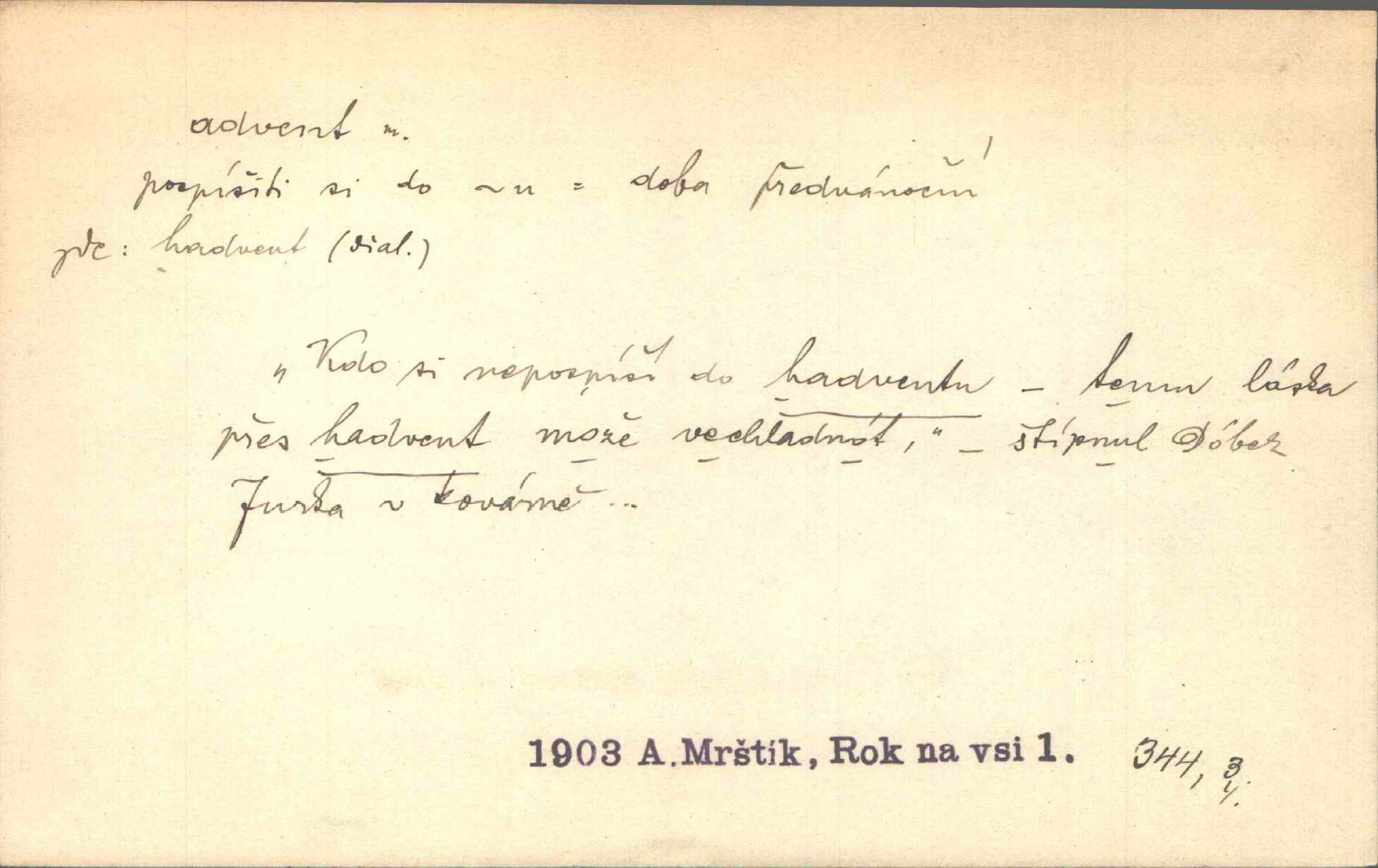 - advent, -u m. círk. doba čtyř neděl před vánocemi, doba předvánoční. V adventě jsem chodíval s otcem na rorate. Rais. Přen. Oč potom budou krásnější vzpomínky na onen čas očekávání a doufání, na onen advent lásky! Wojk.
