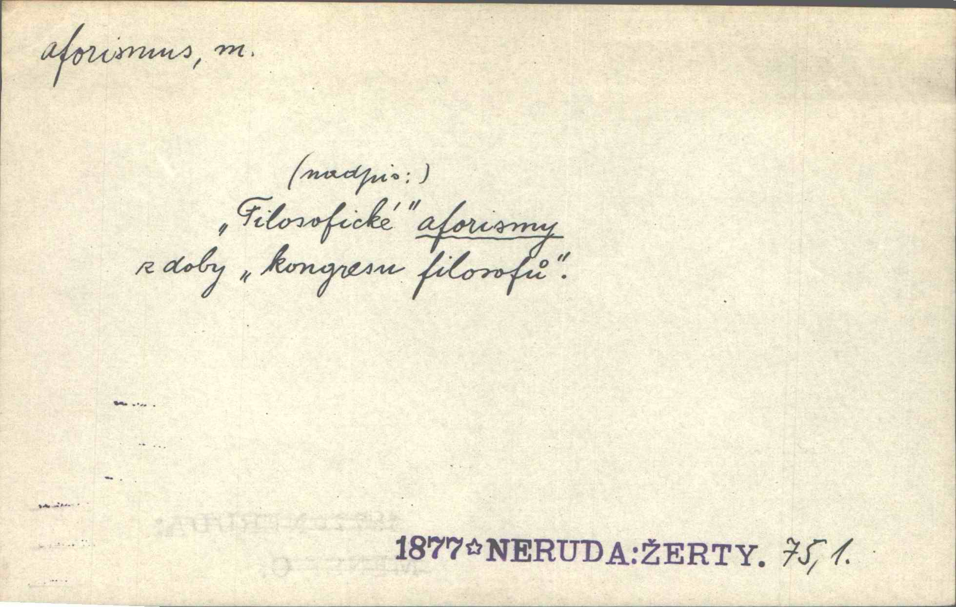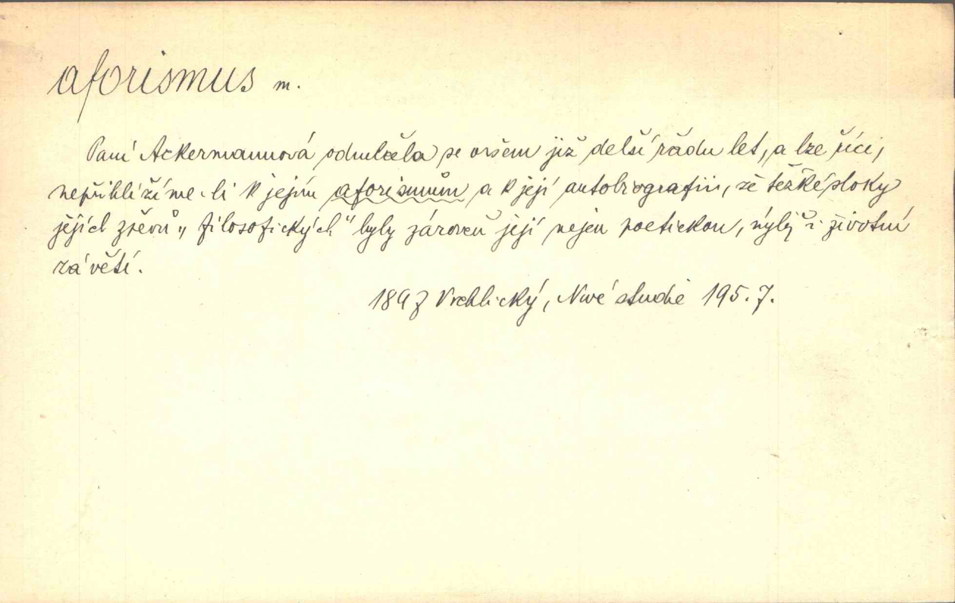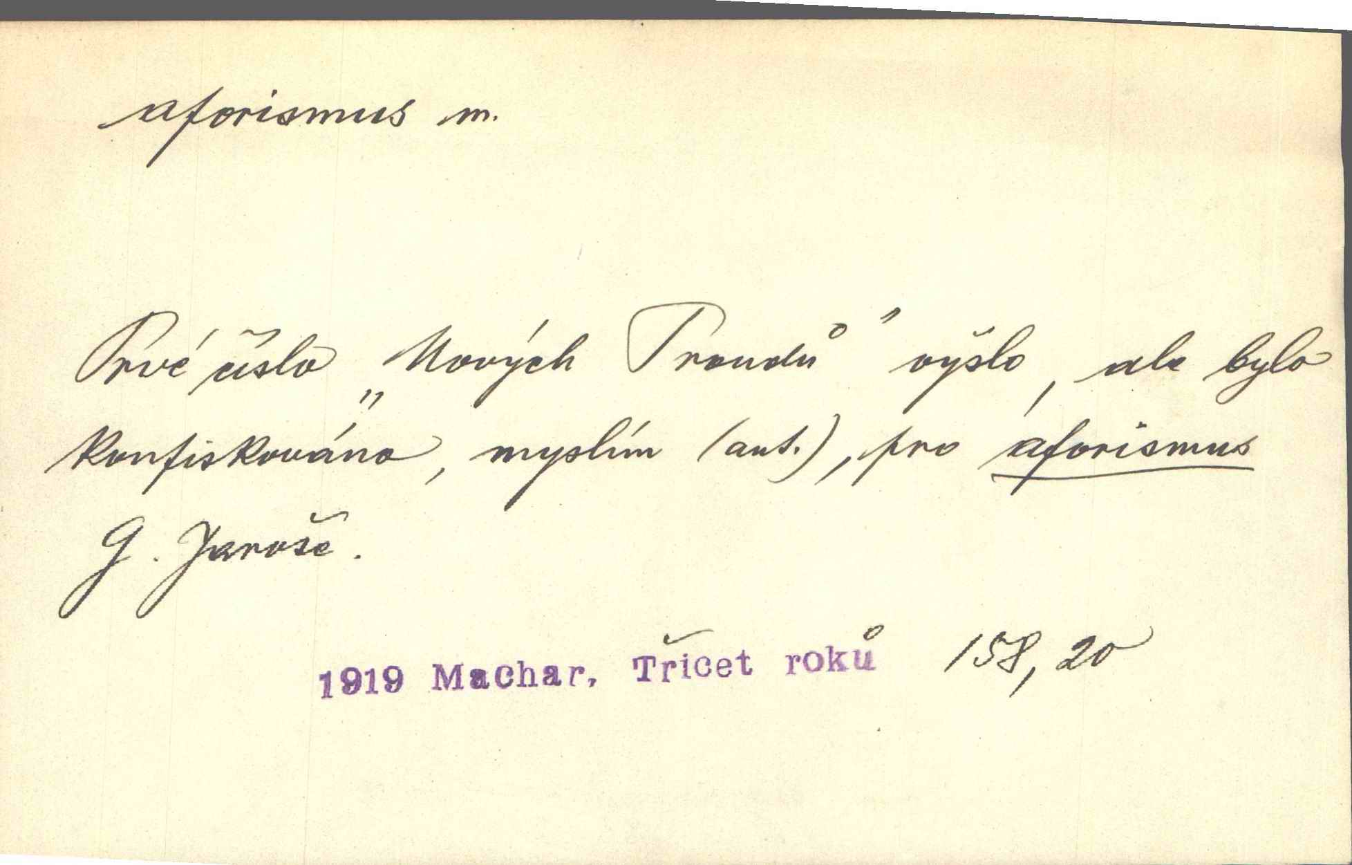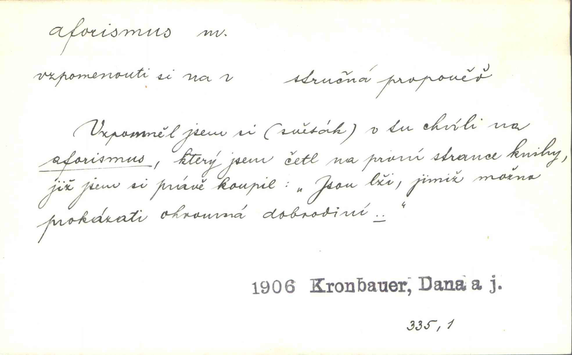 - aforismus, aforism, -ismu m. stručná, jadrná propověď obsahující vtipnou myšlenku. Vzpomněl jsem si v tu chvíli na aforismus, který jsem četl na první stránce nové knihy: „Jsou lži, jimiž možno prokázati ohromná dobrodiní.“ Kronb.„Také nejíš pomeranče se slupkou, docela jako já!“ A pan Frey se zasmál svému aforismu Čap. Ch. Aforismus filosofický, politický atd.