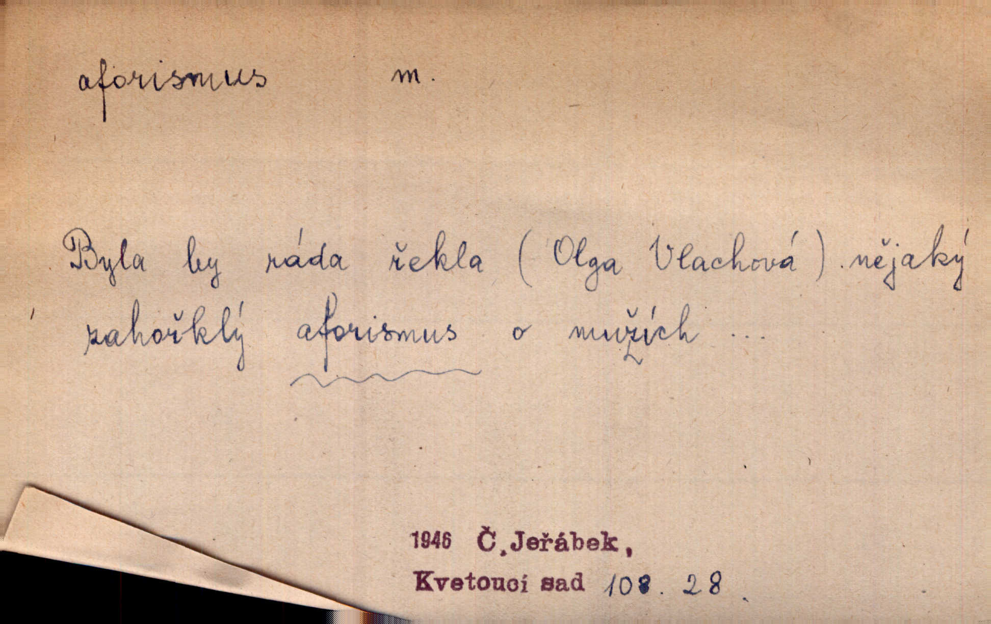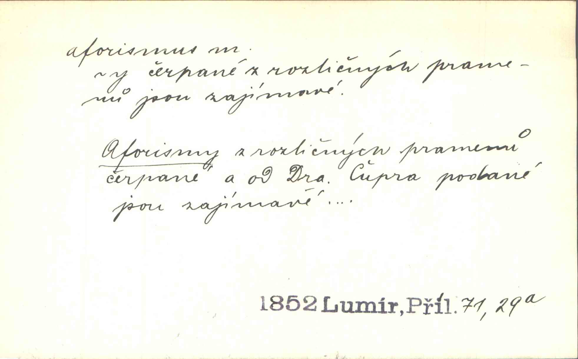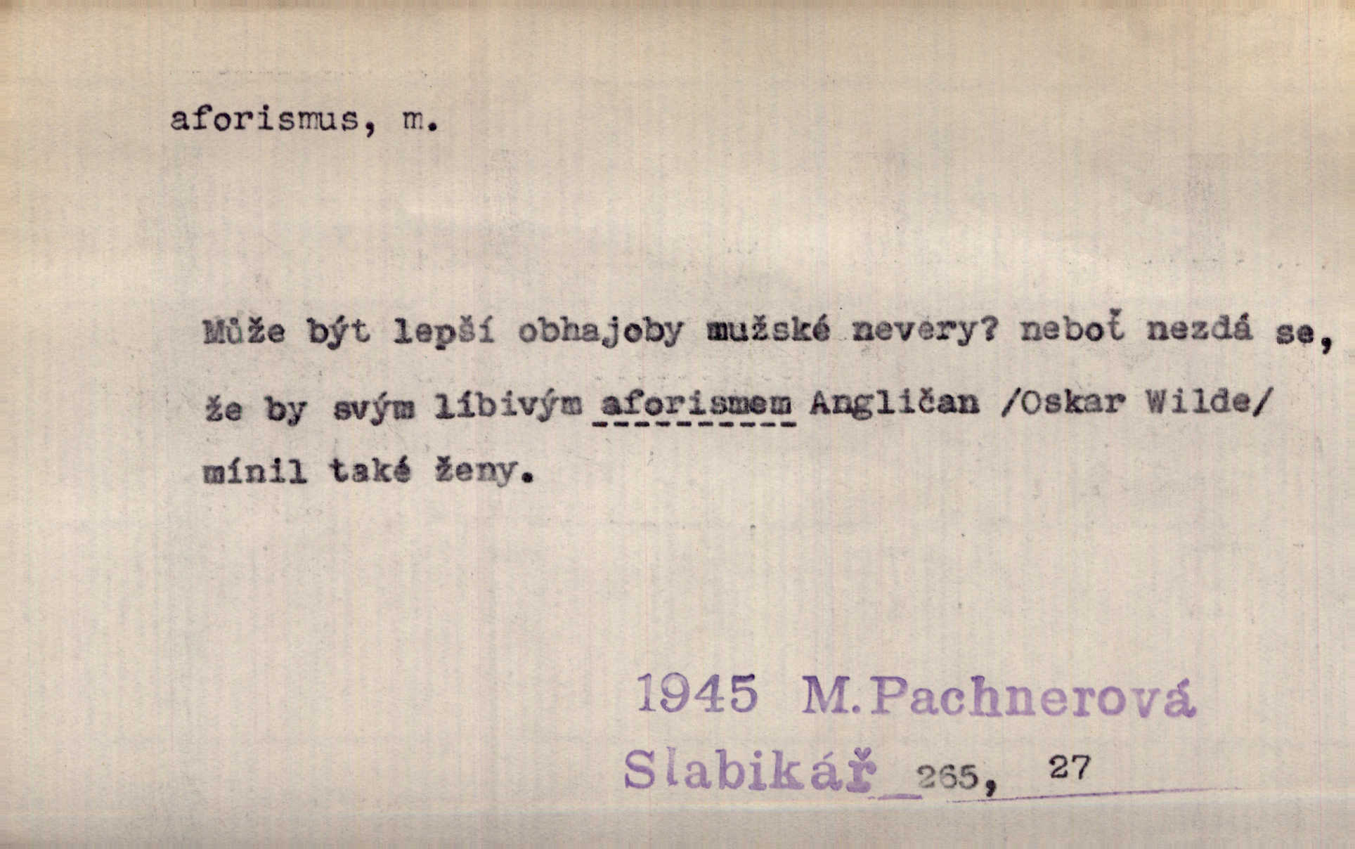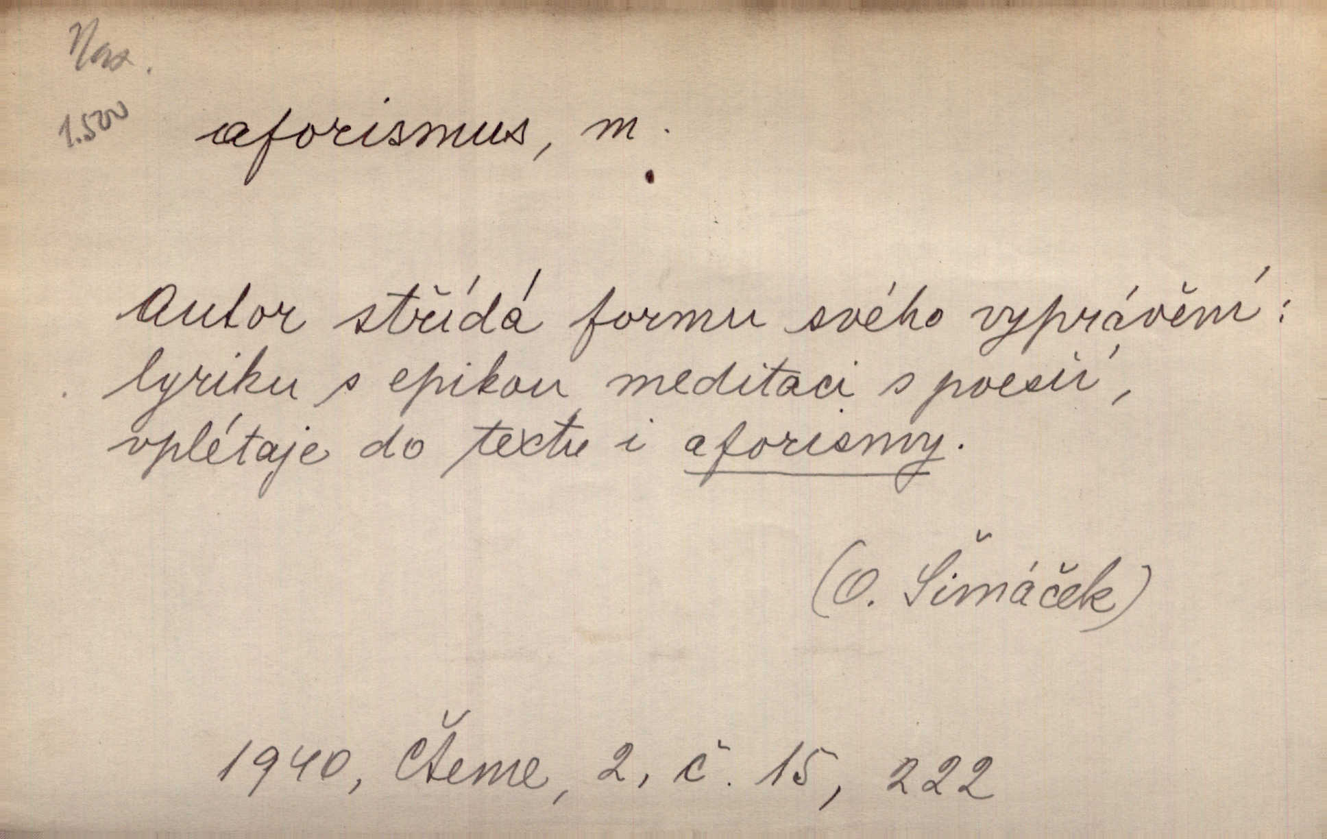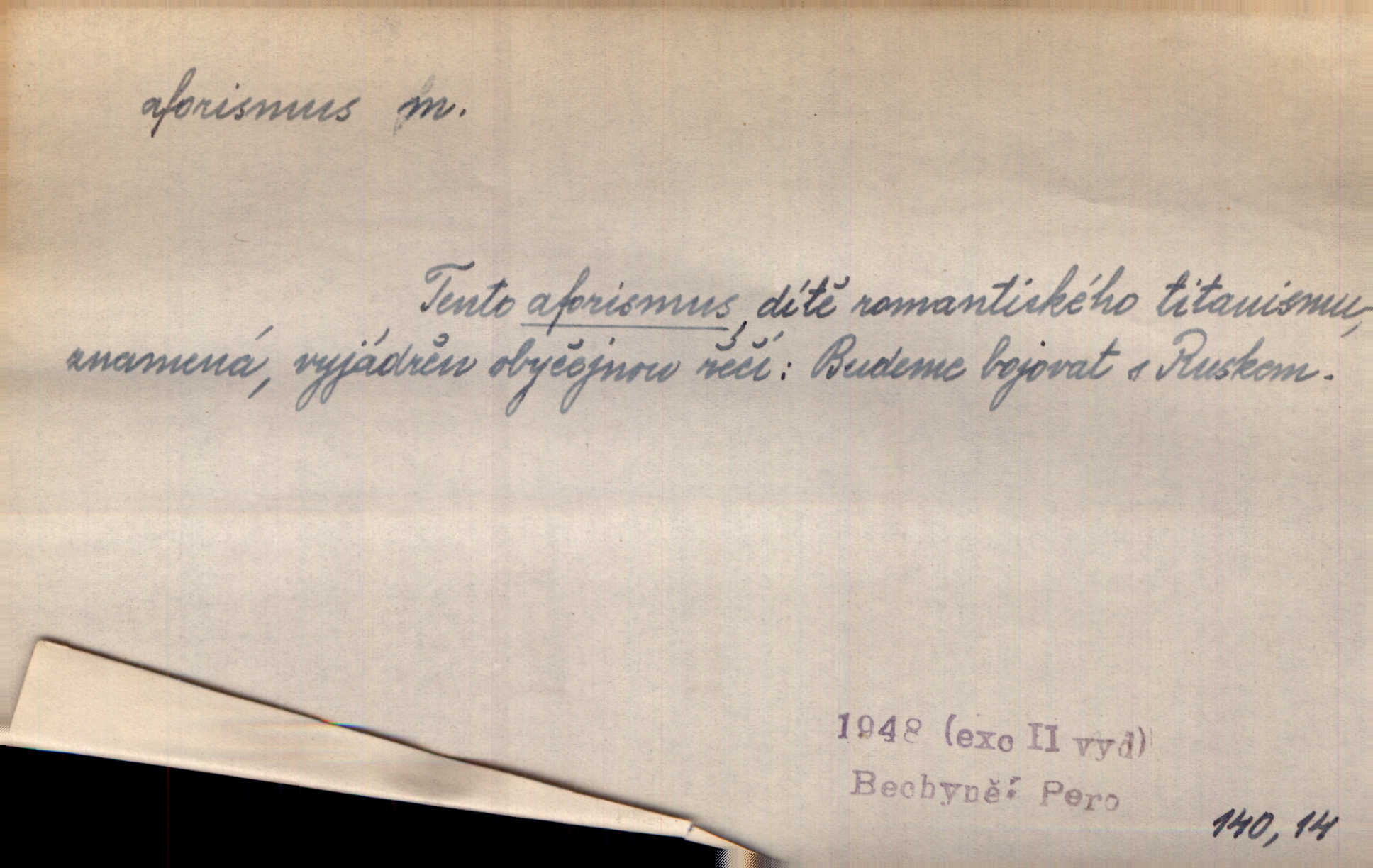 - aforismus, aforism, -ismu m. stručná, jadrná propověď obsahující vtipnou myšlenku. Vzpomněl jsem si v tu chvíli na aforismus, který jsem četl na první stránce nové knihy: „Jsou lži, jimiž možno prokázati ohromná dobrodiní.“ Kronb.„Také nejíš pomeranče se slupkou, docela jako já!“ A pan Frey se zasmál svému aforismu Čap. Ch. Aforismus filosofický, politický atd.