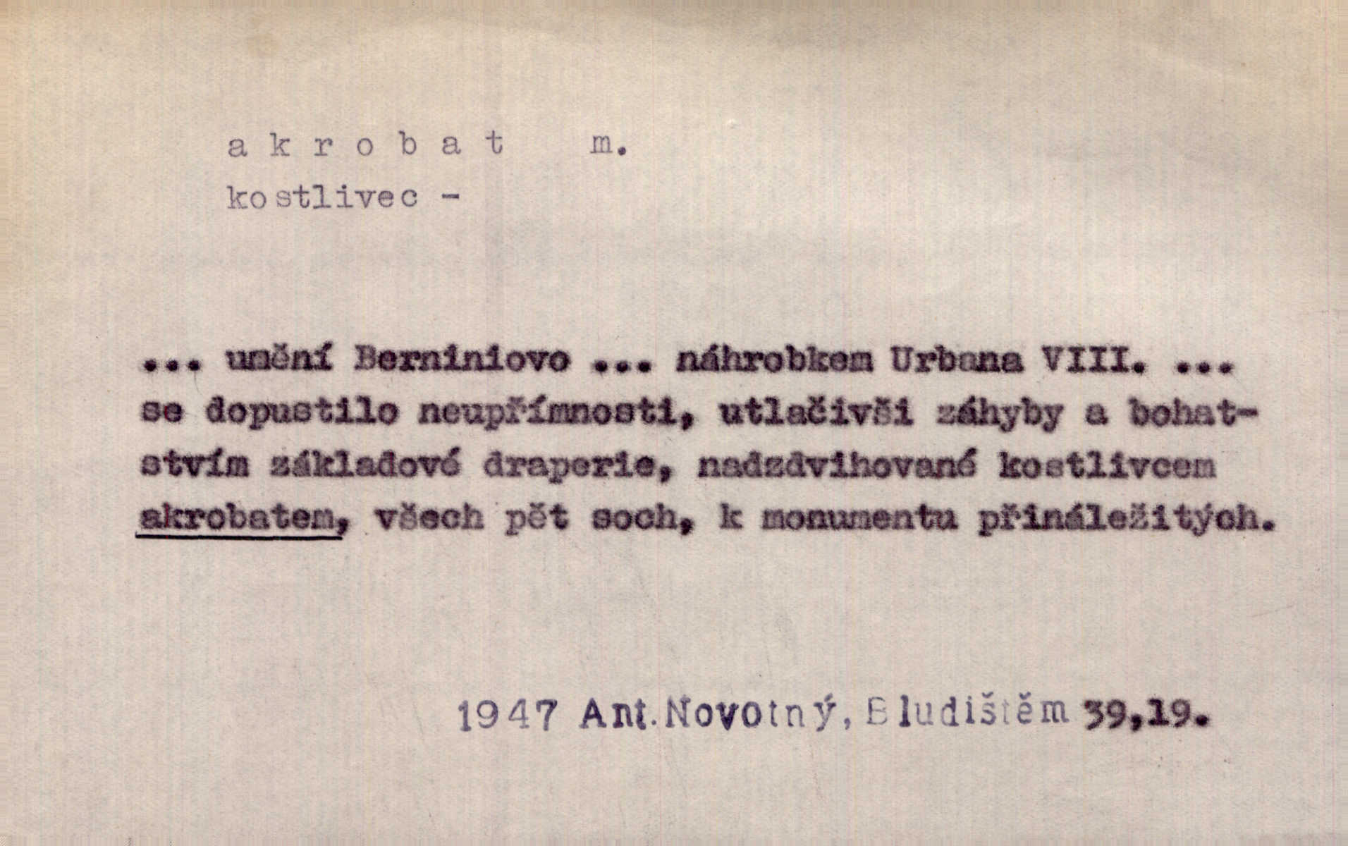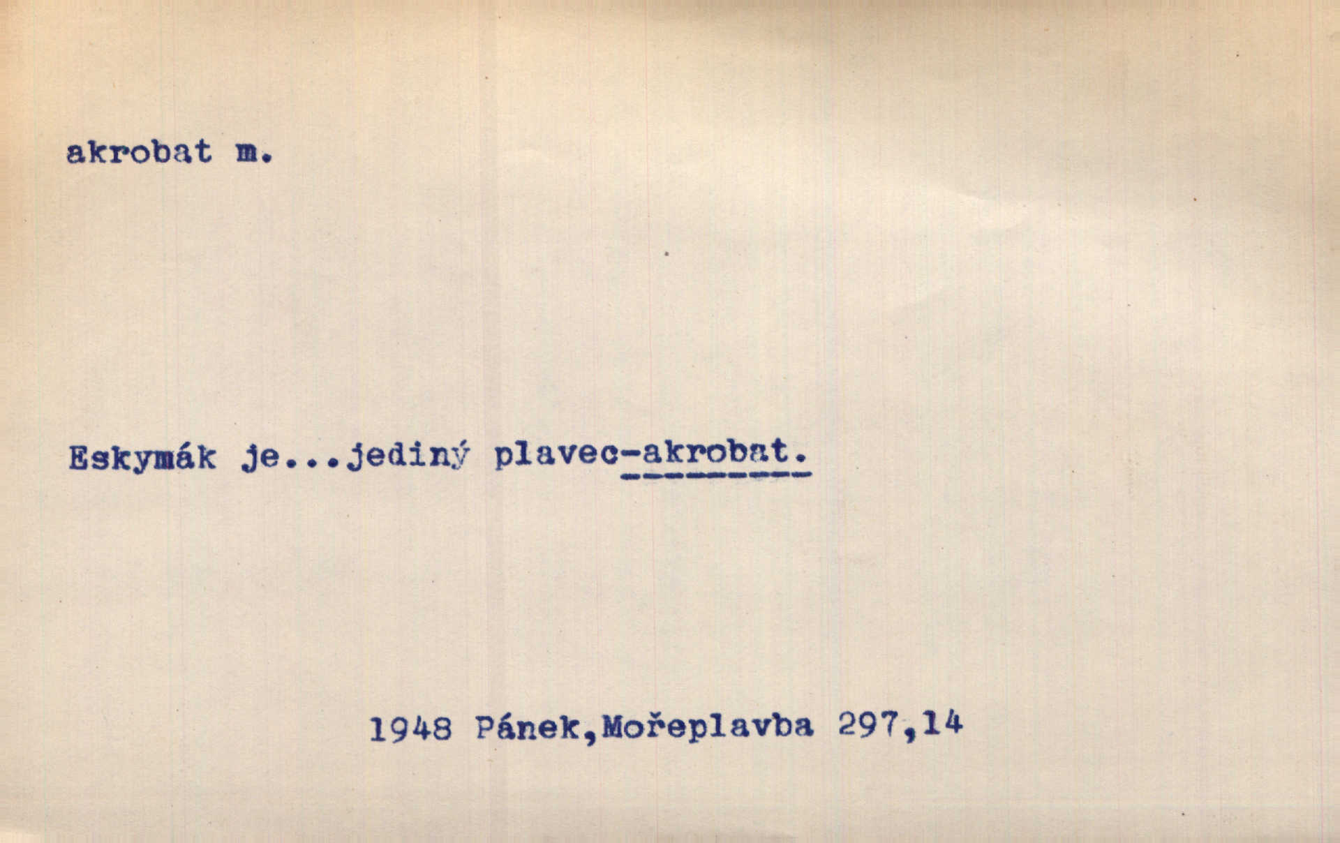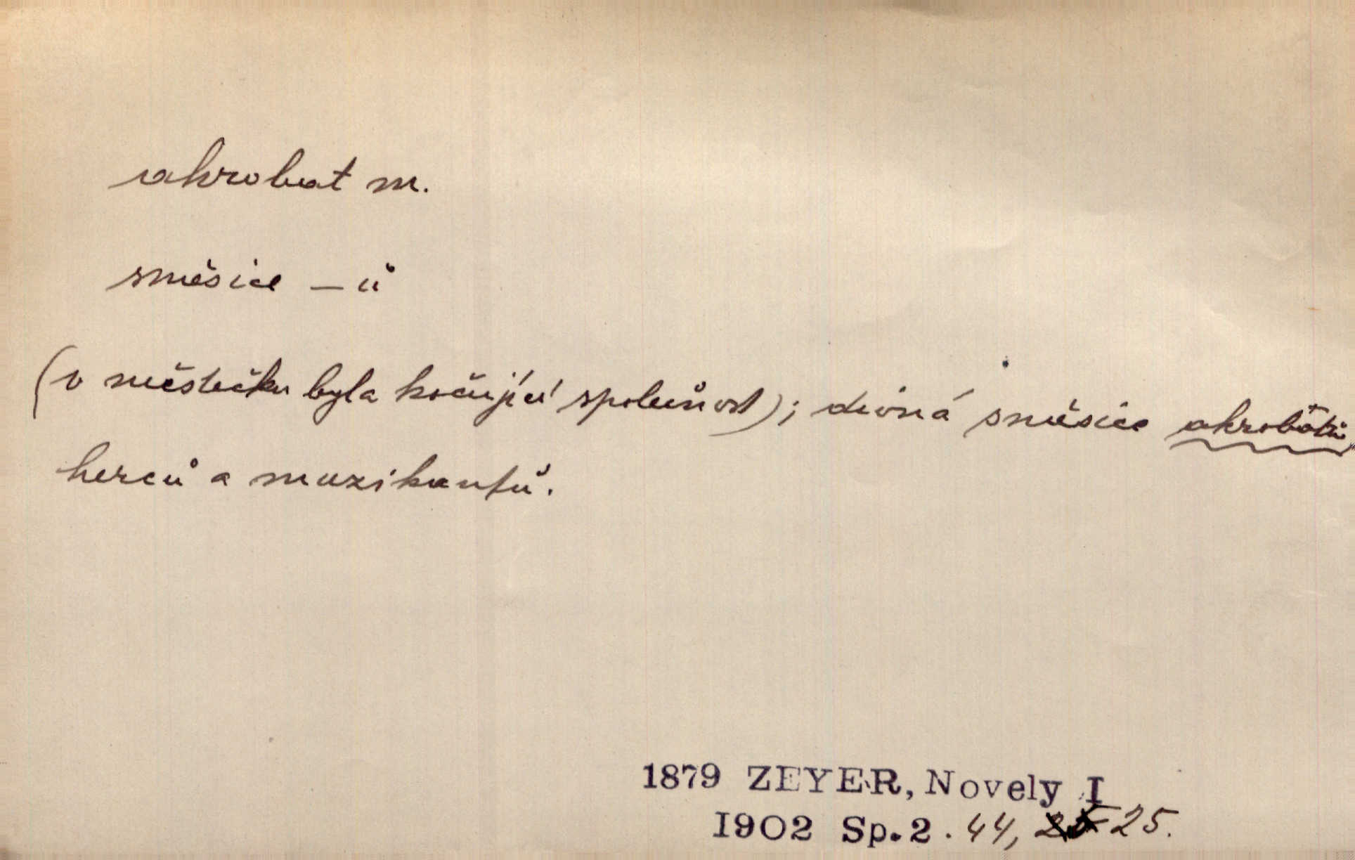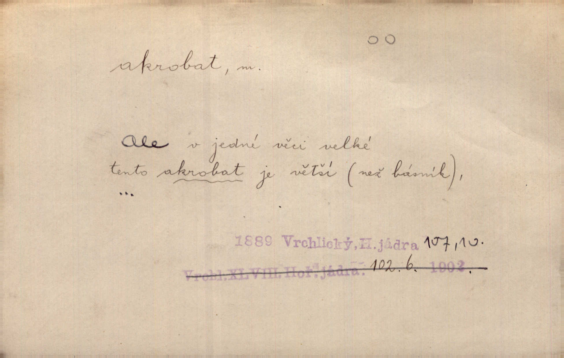 - akrobat, -a (pl. akrobati) m. cirkusový umělec, zvl. provazolezec. D přen. pejor. o umělcích dbajících jen o stránku technickou a okázalost. Jde, třeba v básních, za obratem, kde básník je už akrobatem. Mach. Básník s duší a vkusem akrobata, cítícího potřebu sensace a dychtícího po chvále ulic. Baar.