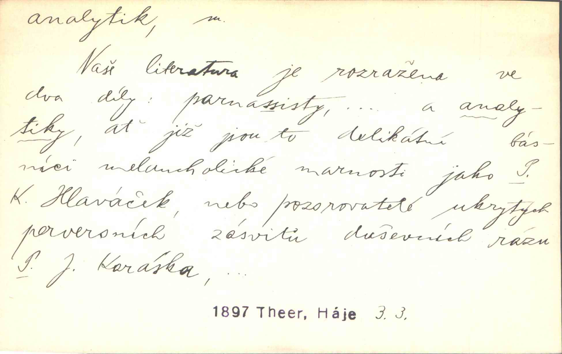 Zeyer není umělcem vnitřním, není analytikem vášně.