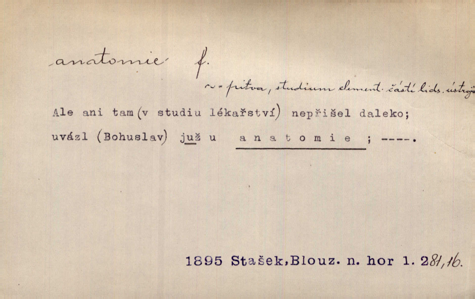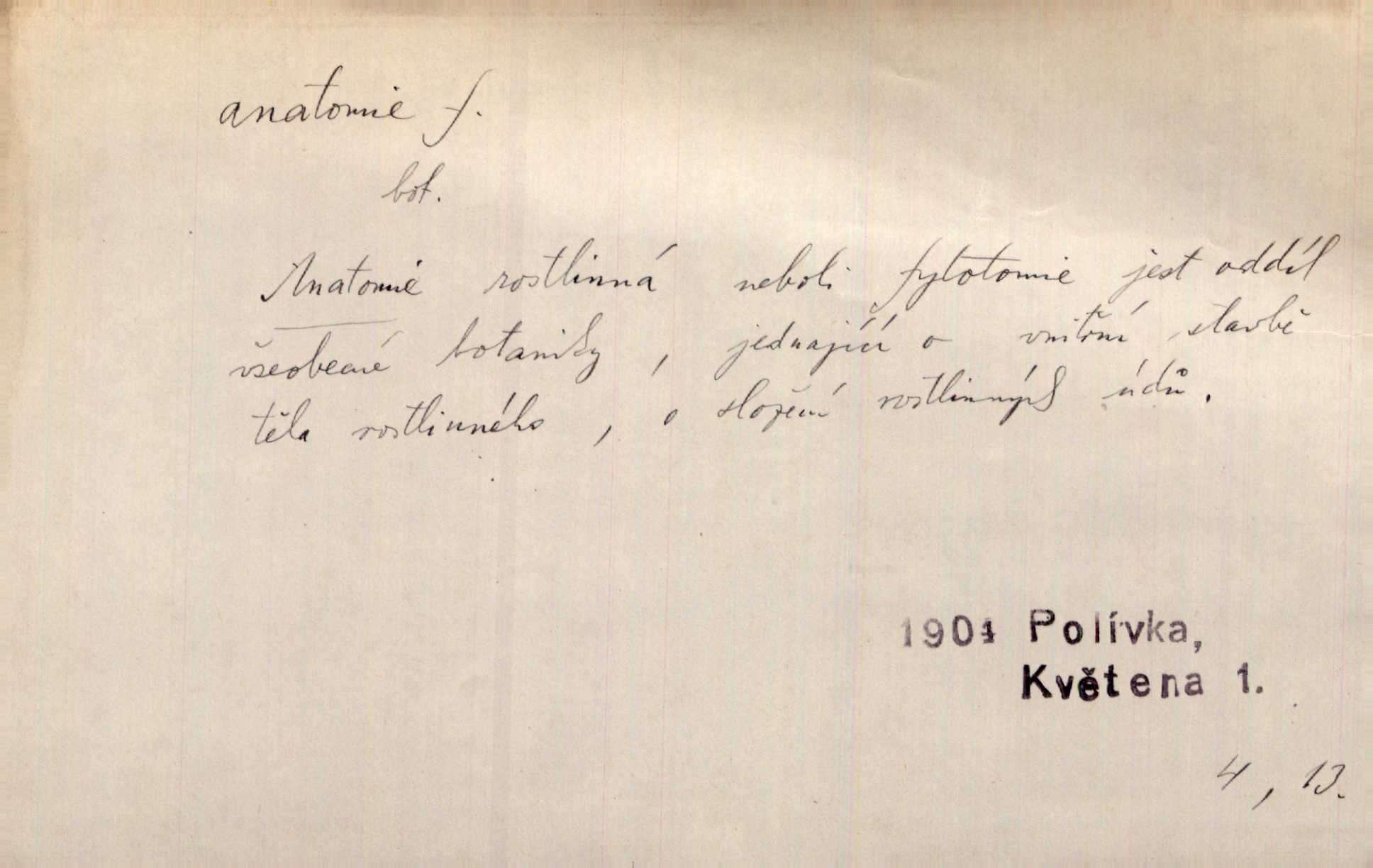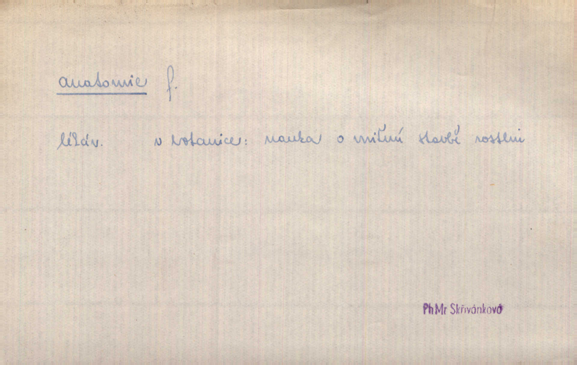 nauka o stavbě a skladbě organismů lidských, zvířecích a rostlinných.