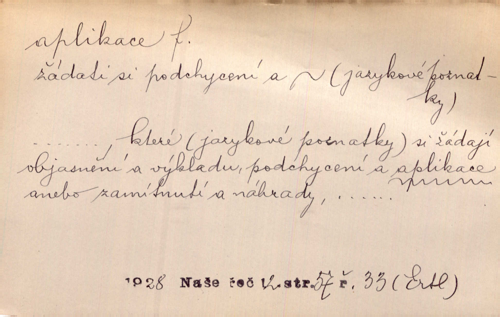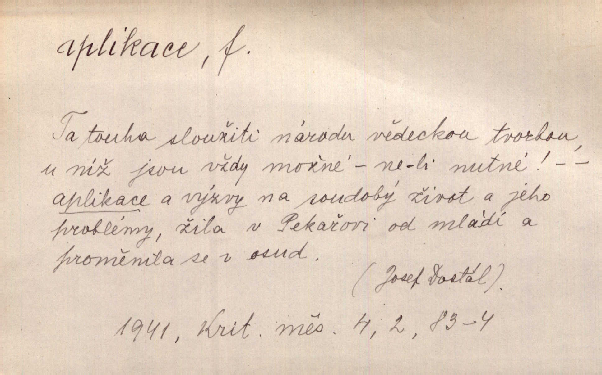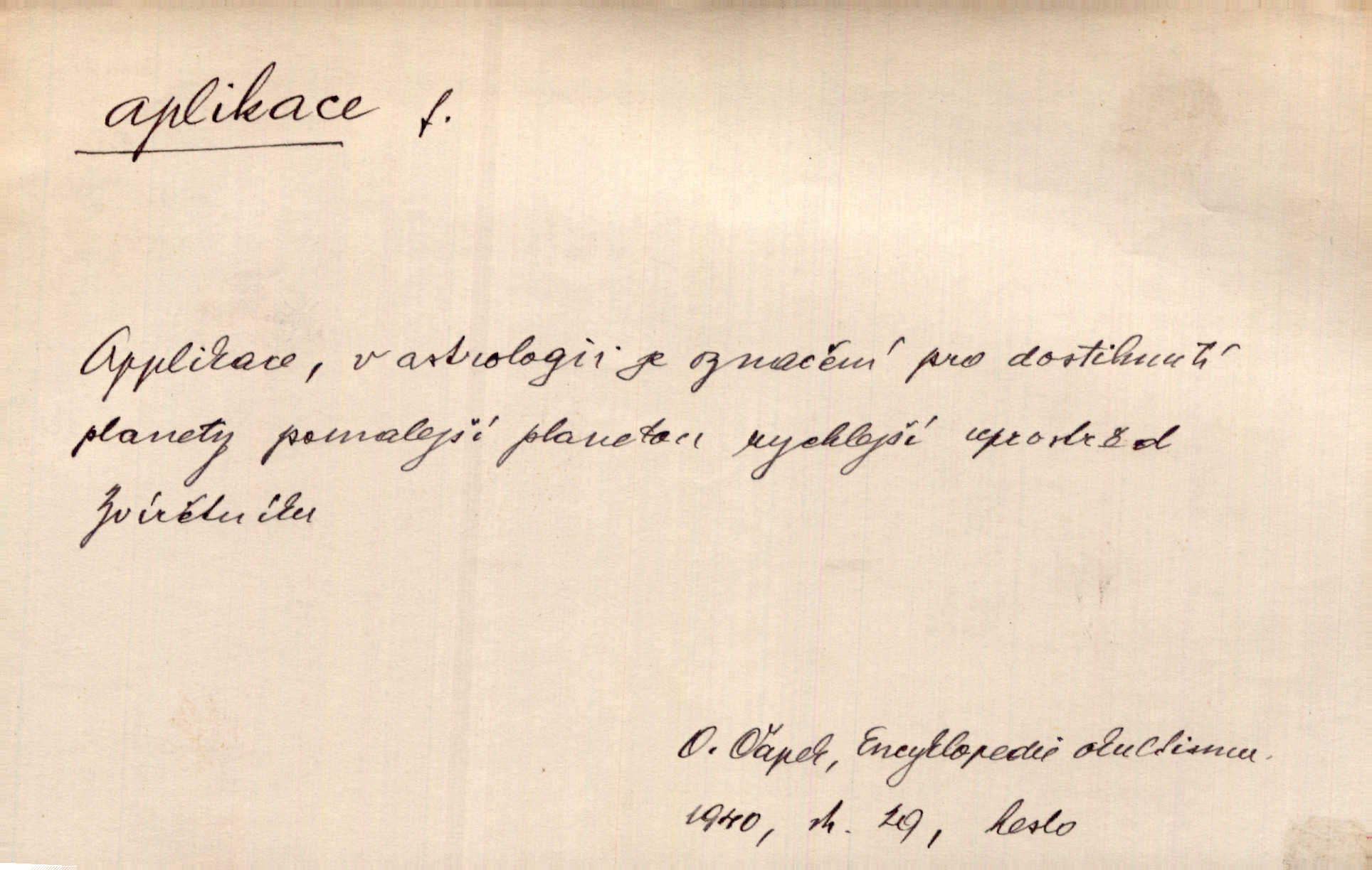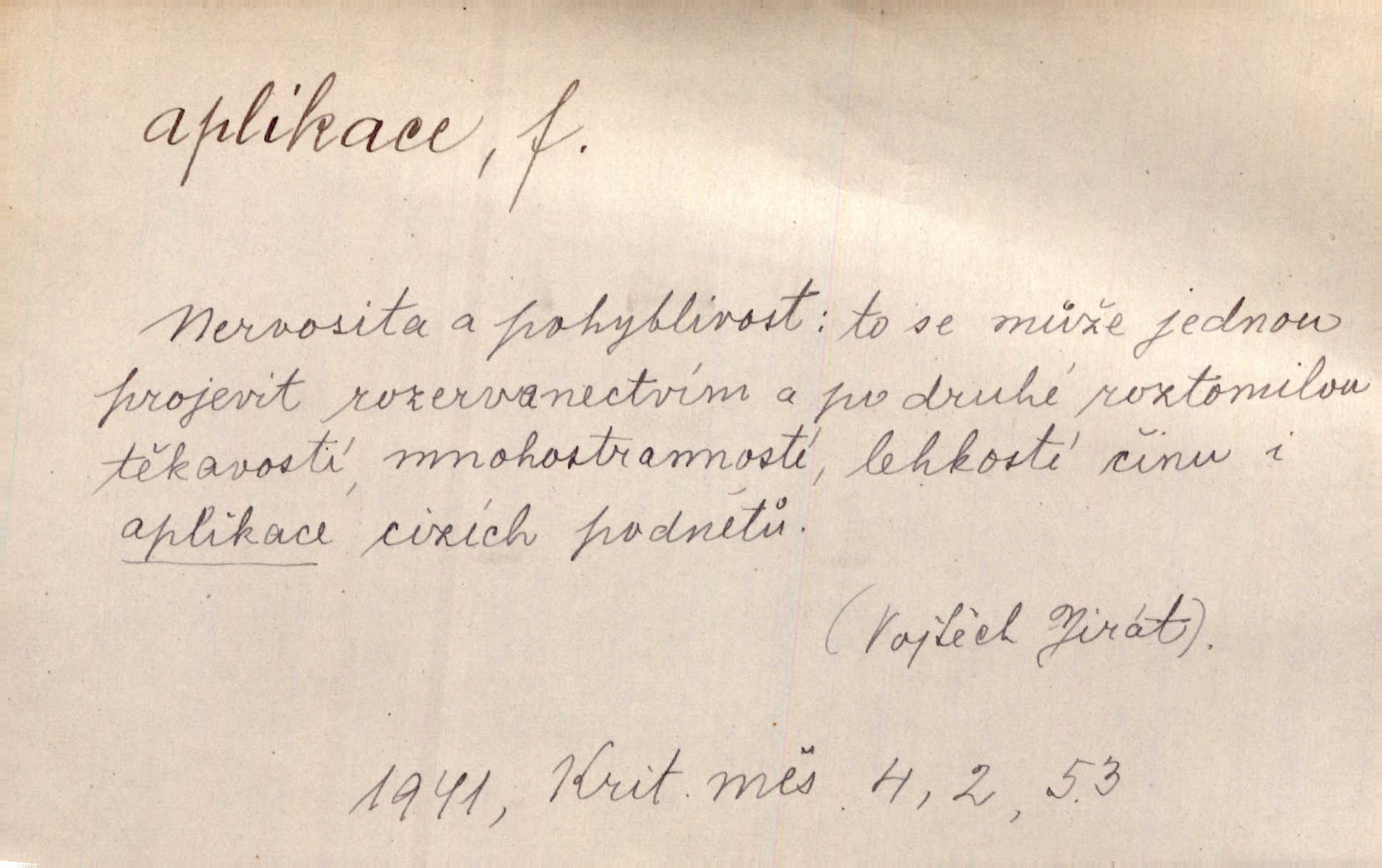 - aplikace, -e f. upotřebení, použití. Naturalismus neměl by býti užitím, aplikací hotových a nalezených poznatků vědeckých, nýbrž skutečným a reálným hledáním jich. Šal. Aplikace mythologie na přírodní jevy. přizpůsobení. Aplikace ke skutečným poměrům. Lék. aplikace léků použití; aplikace obkladů přikládání. D ozdoba svrchu kladená. Krejč. aplikace na šatech látková ozdoba připevněná na podklad z jiné látky. Výtv. ornamenty a aplikace na balustrádě a j.