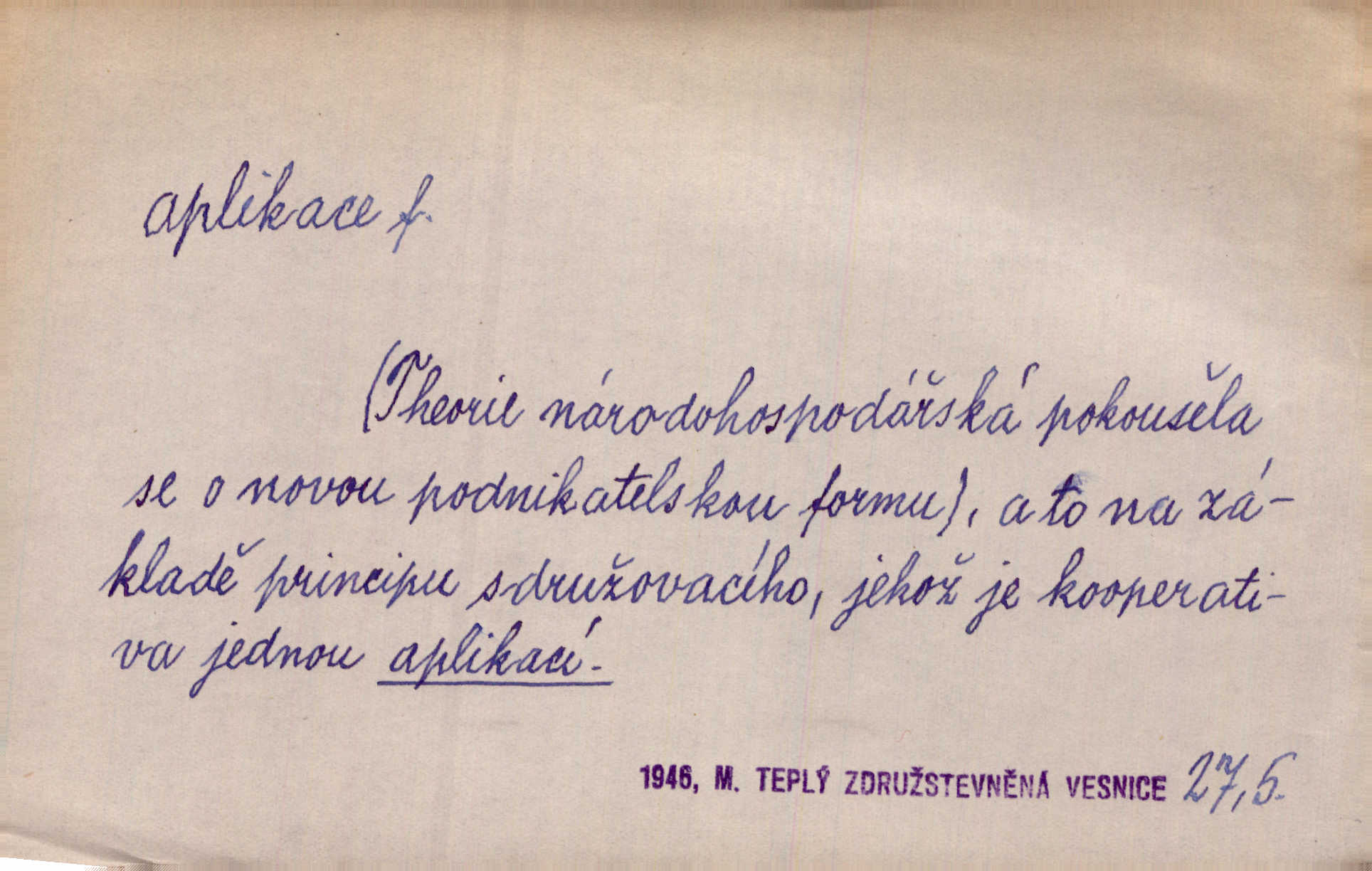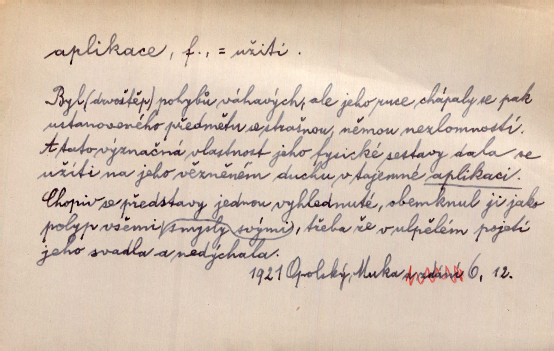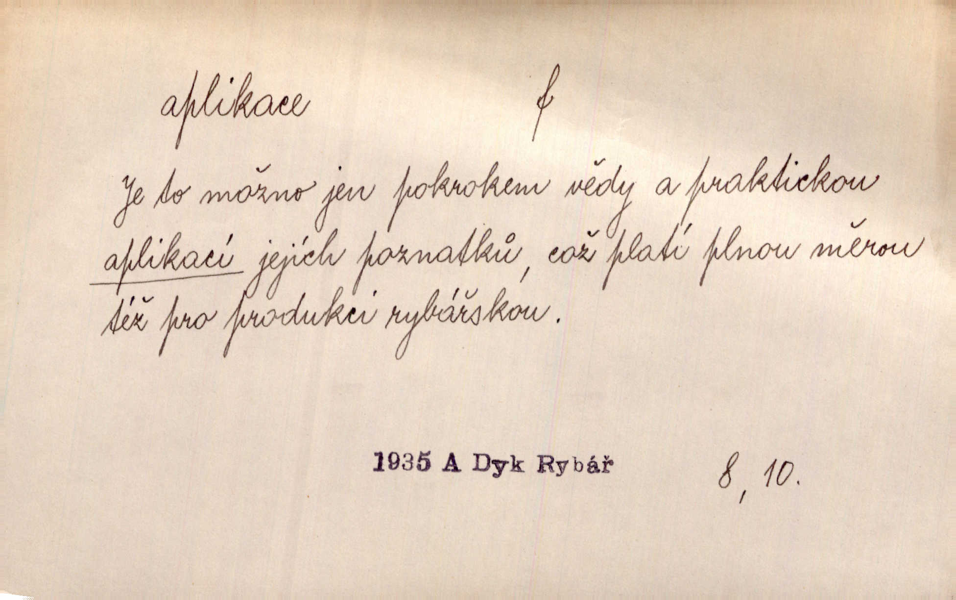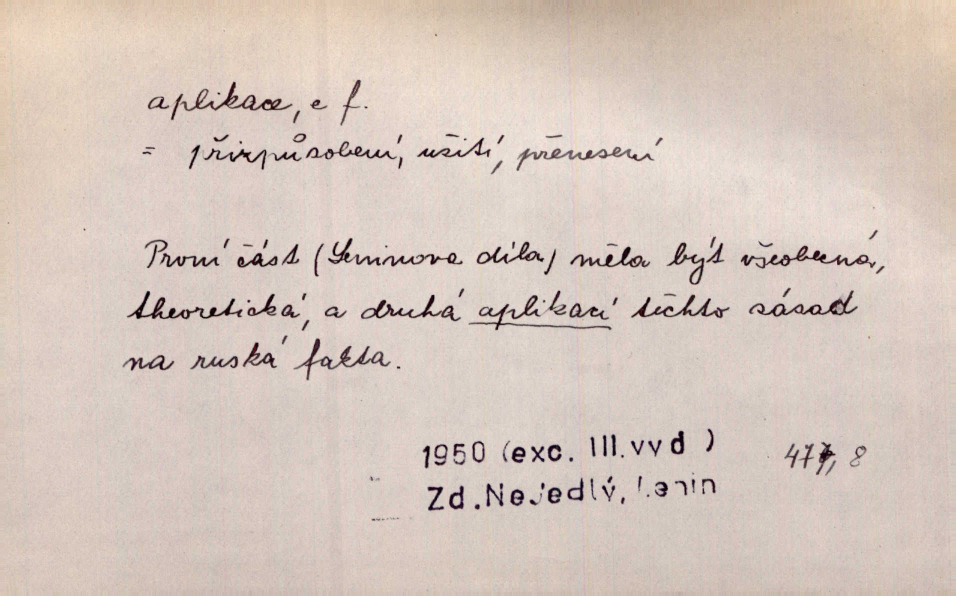- aplikace, -e f. upotřebení, použití. Naturalismus neměl by býti užitím, aplikací hotových a nalezených poznatků vědeckých, nýbrž skutečným a reálným hledáním jich. Šal. Aplikace mythologie na přírodní jevy. přizpůsobení. Aplikace ke skutečným poměrům. Lék. aplikace léků použití; aplikace obkladů přikládání. D ozdoba svrchu kladená. Krejč. aplikace na šatech látková ozdoba připevněná na podklad z jiné látky. Výtv. ornamenty a aplikace na balustrádě a j.