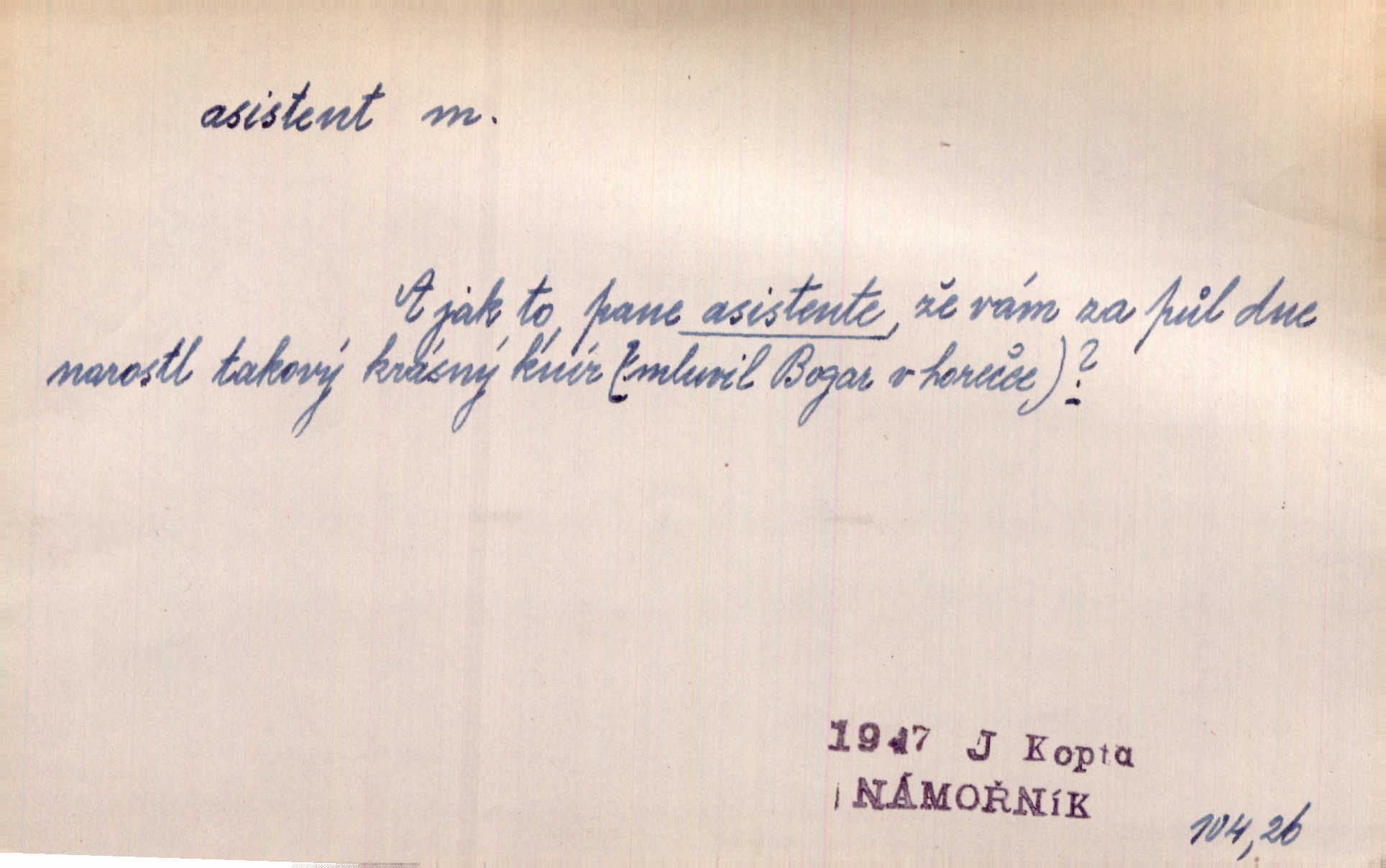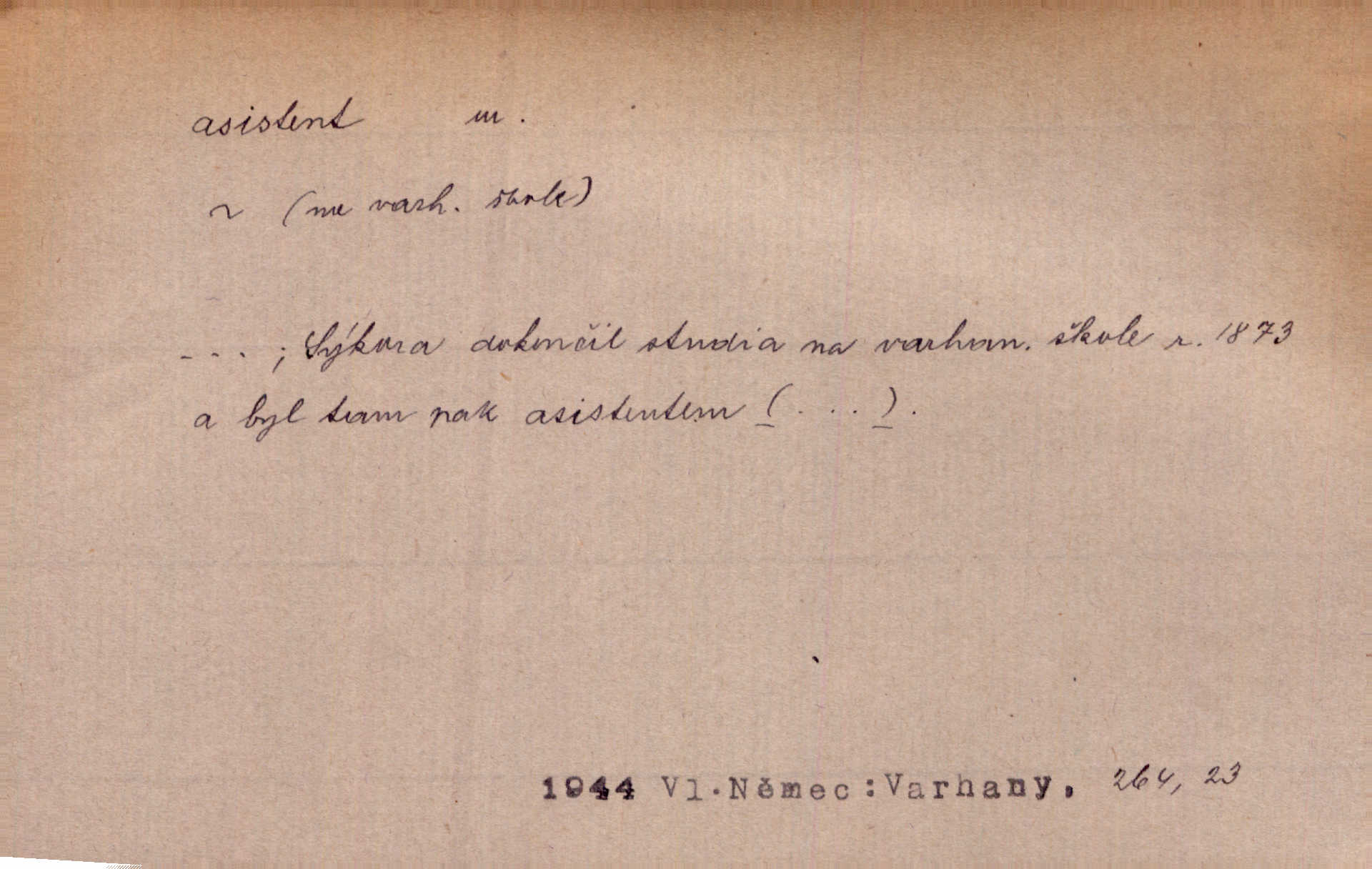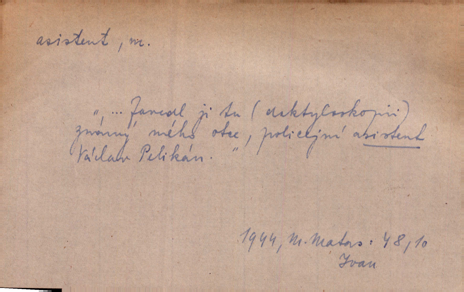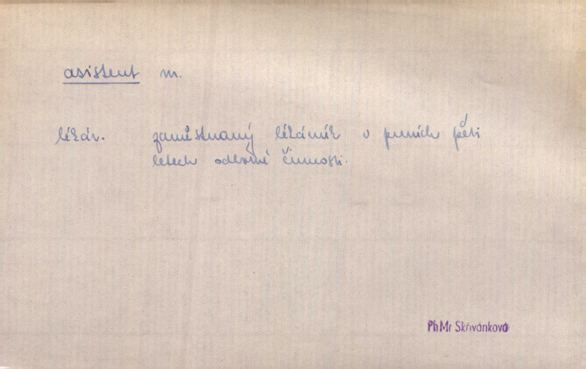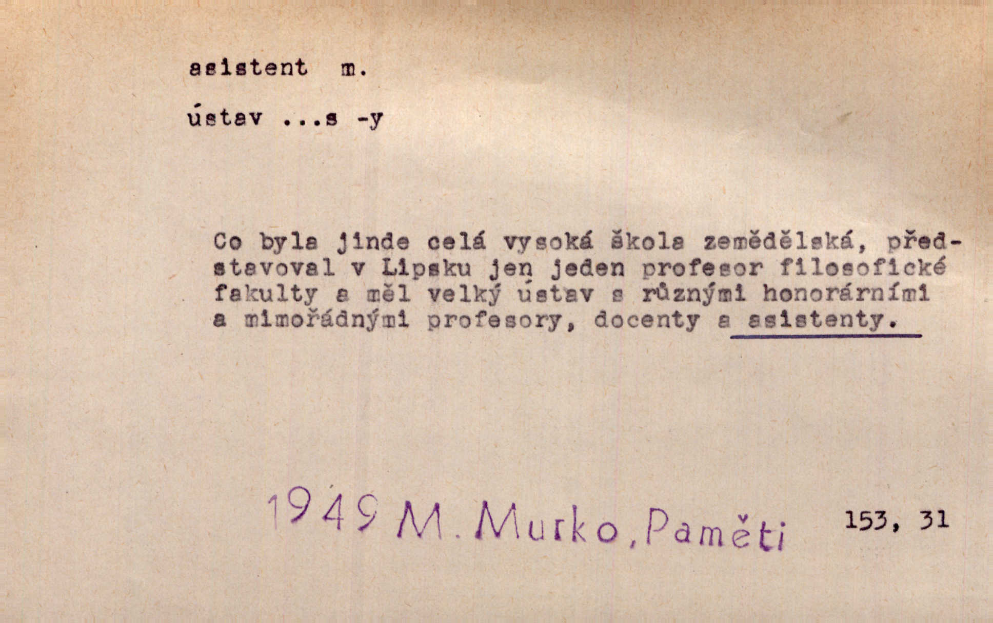 - asistent, -a m. kdo při nějakém výkonu přisluhuje, pomáhá; titul nižších úředníků; pomocná síla na školách a zvl. při ústavech vědeckých. Asistent stavitelský, lesní, soudní, poštovní; asistent kreslení, tělocviku (na střed. škole); asistent knihovny, musea, kliniky, semináře, laboratoře (na vysoké škole).