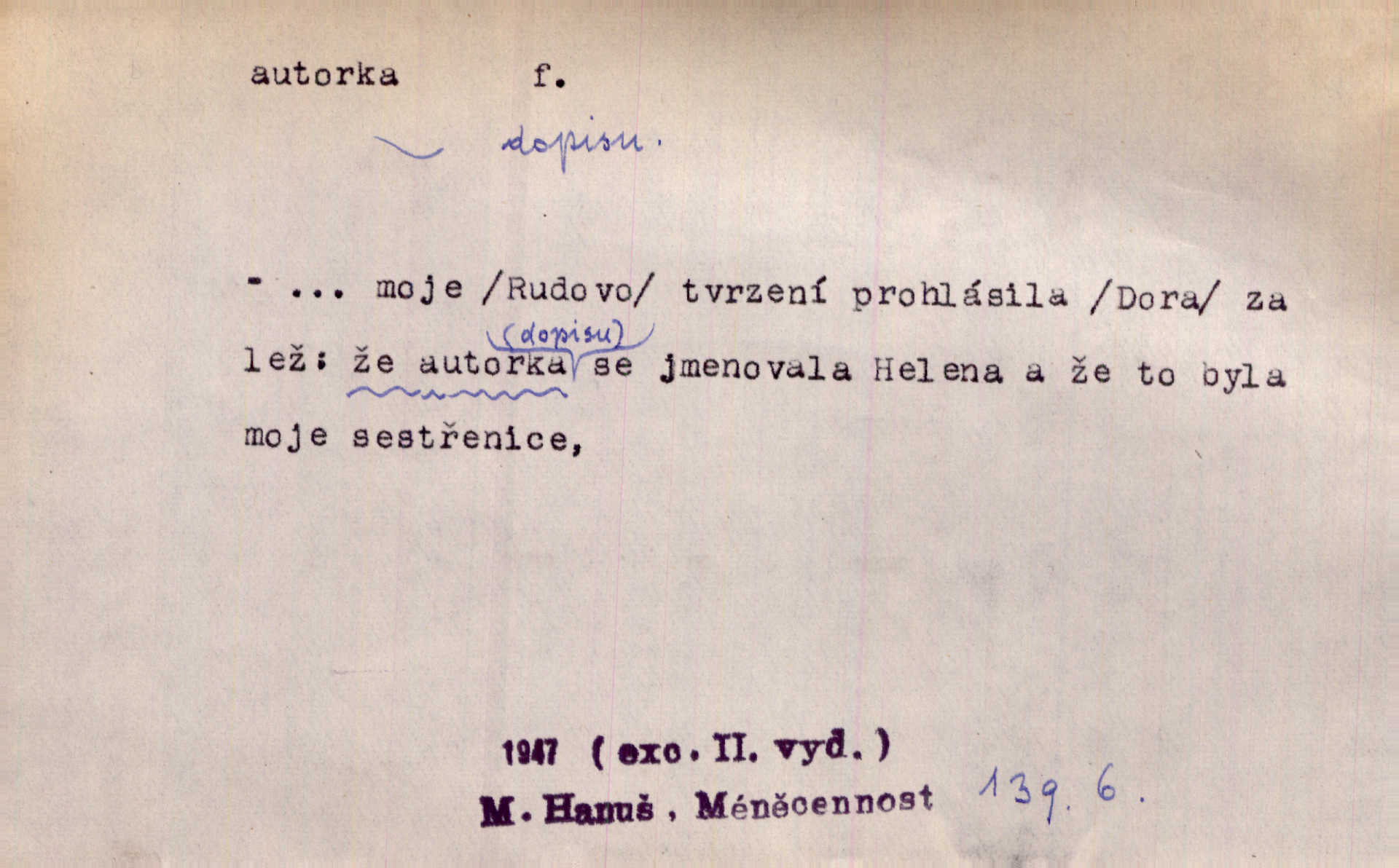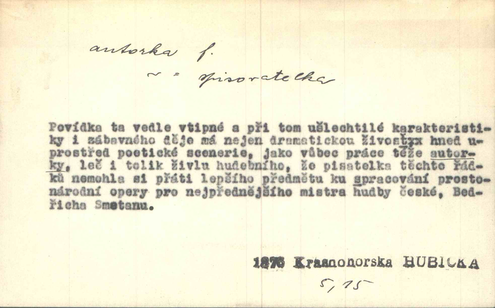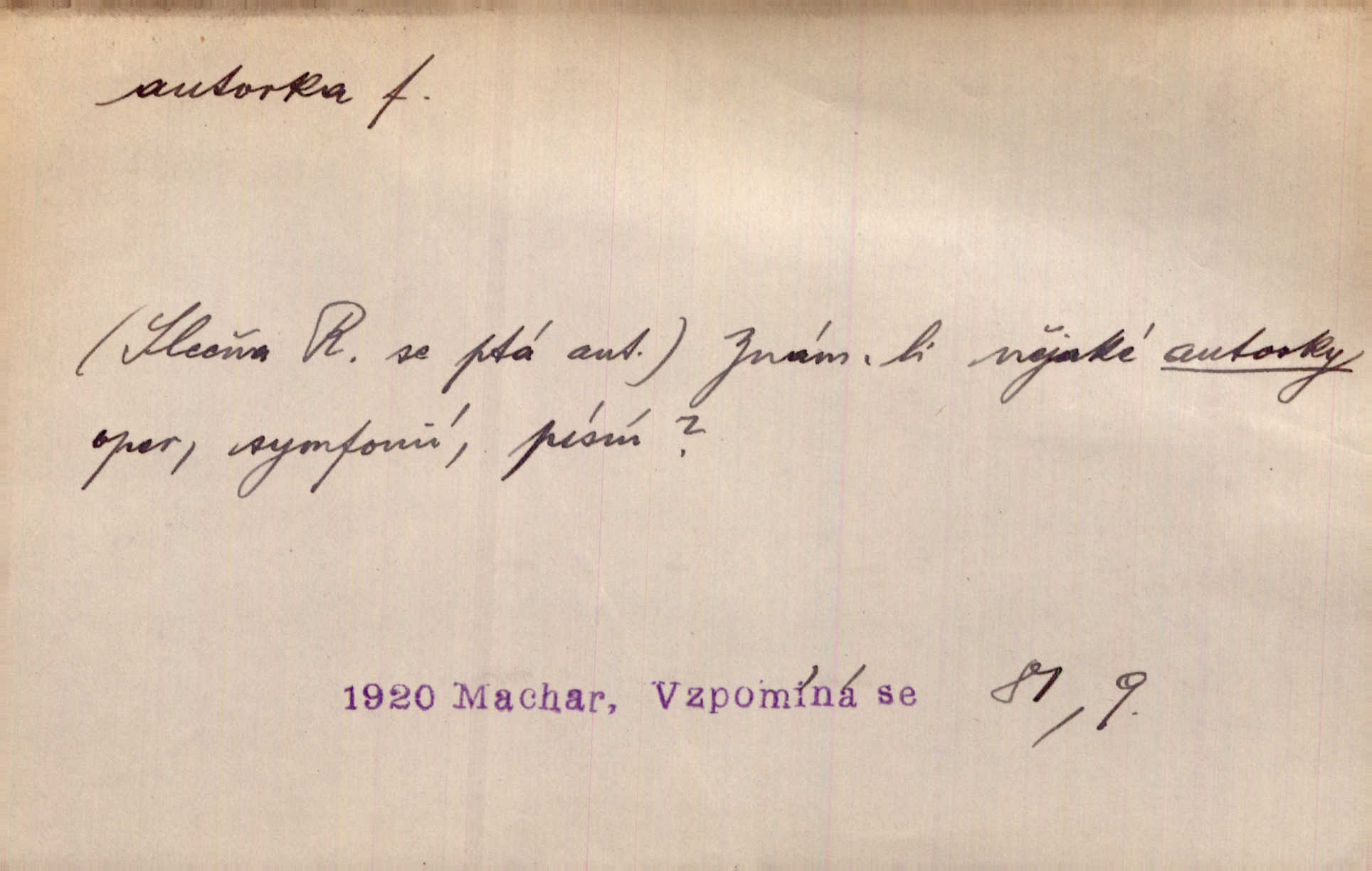 Autorka povídky. Autorka hudební skladby, myšlenky
