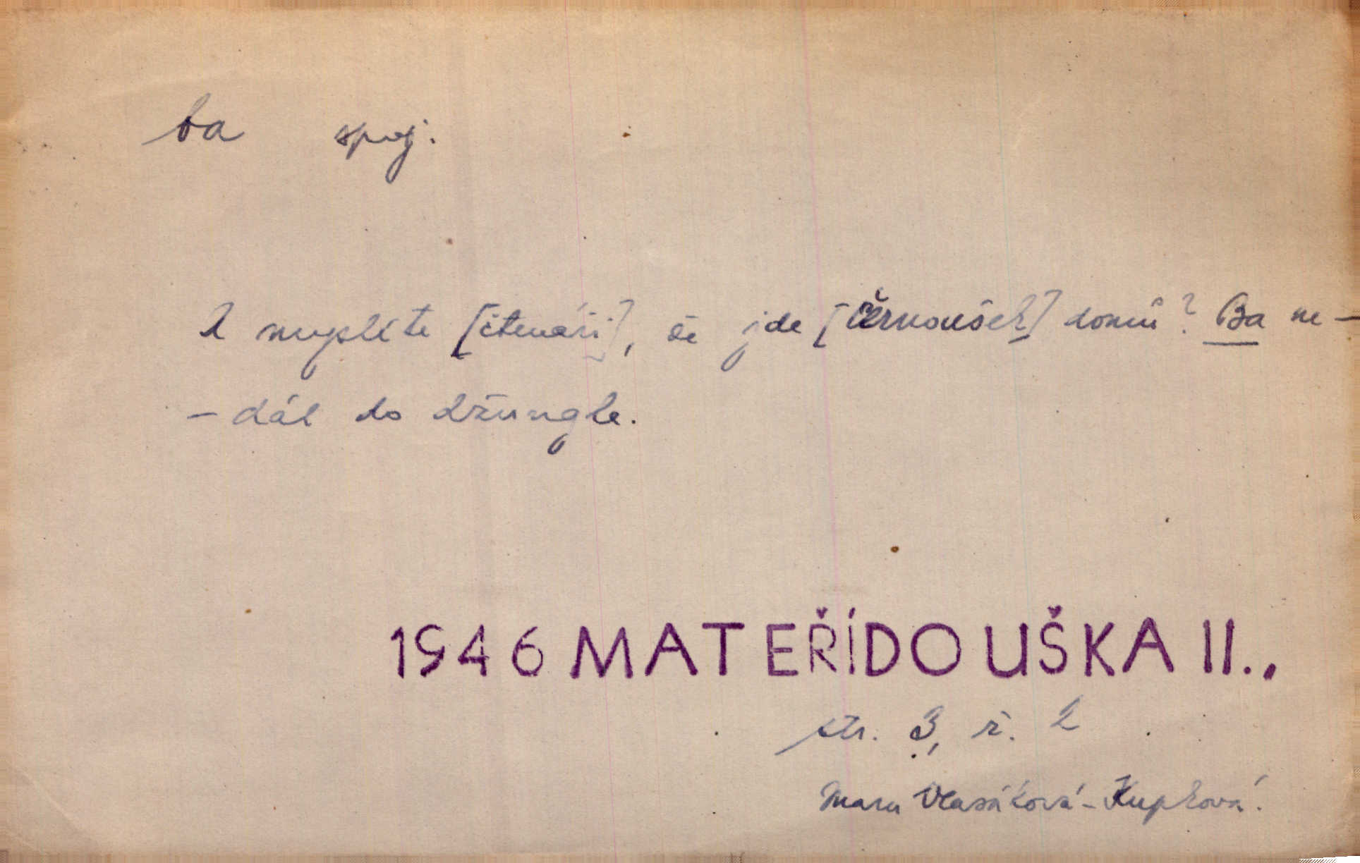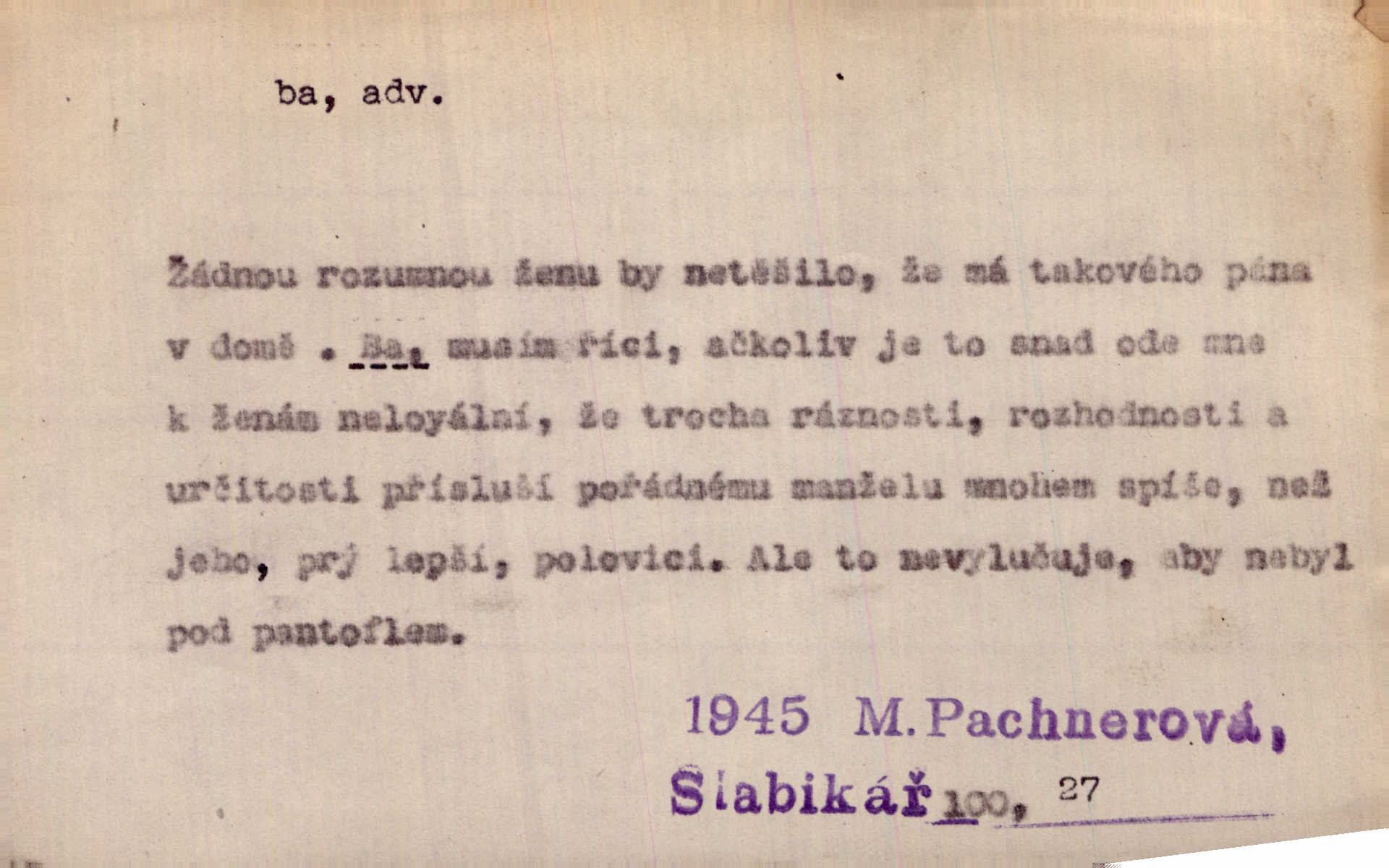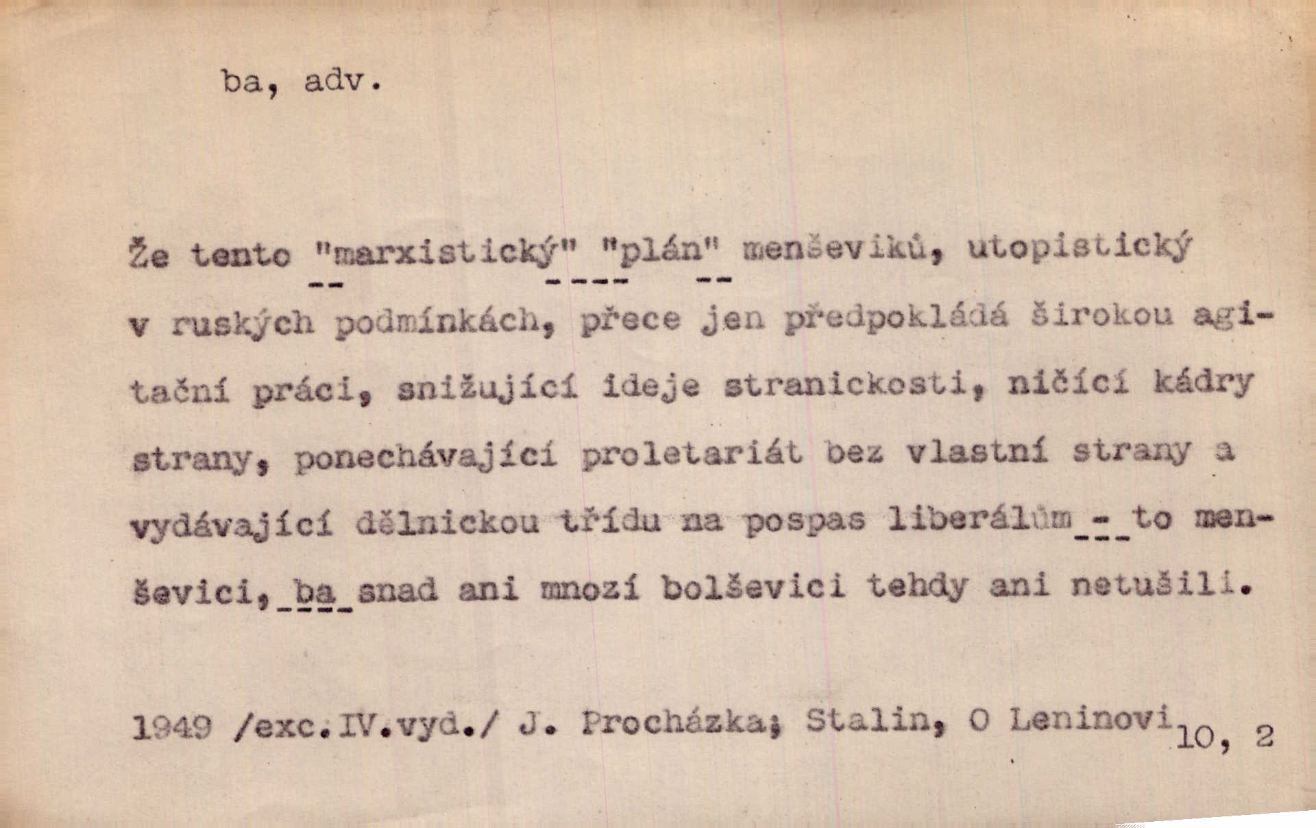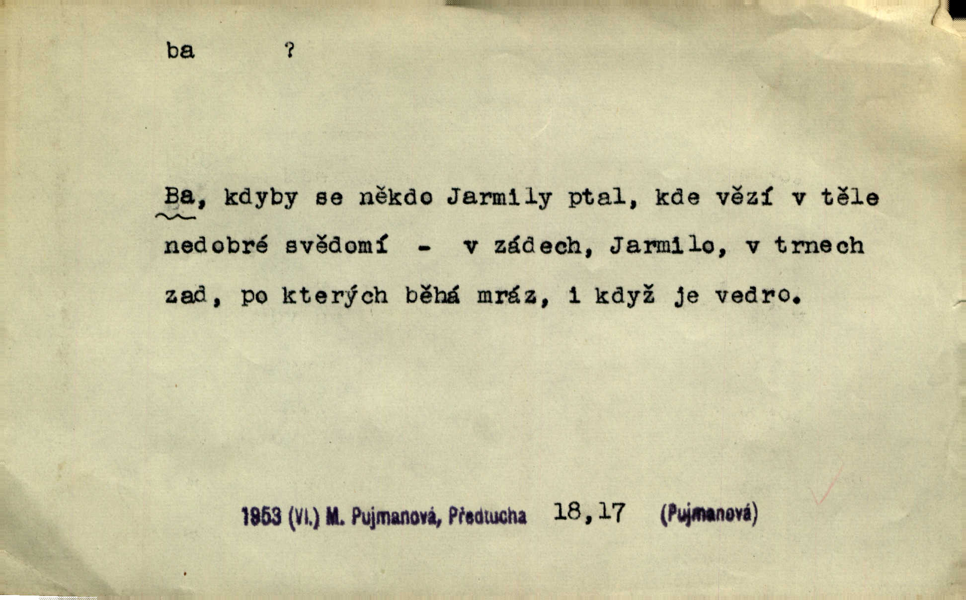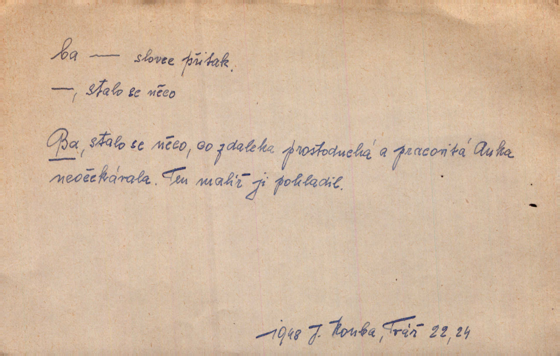 - ba adv. lid. potvrzuje samo nebo ve spojení s jinými slovy (ba ano, ba arci, ba ba, ba ovšem, ba pravda, ba právě, ba to že, ba věru, ba že, ba žeť, i ba, no ba, nu ba). „A lidé umírají hladem.“ zahučel Baltazar… „Ba že, kmotře, umírají.“ Jir. „Máš sčesáno?“ „I ba, nemám.“ Rais. Jaká je úroda? Ba špatná. Herb. D sp. s význ. zesilovacím. Domácnost ho pořád těšila, ba snad čím dále tím více. Jir.