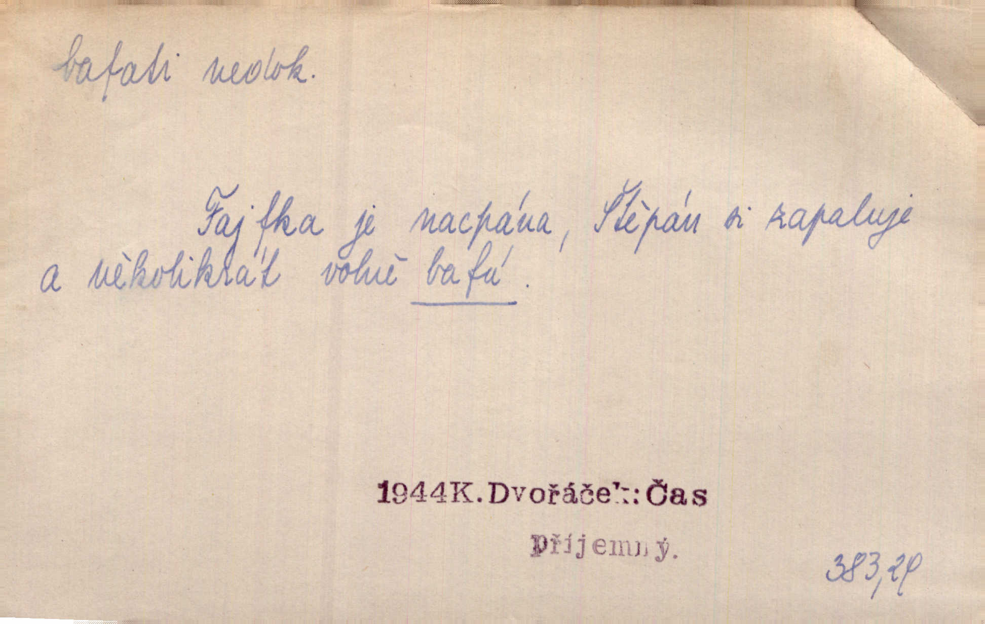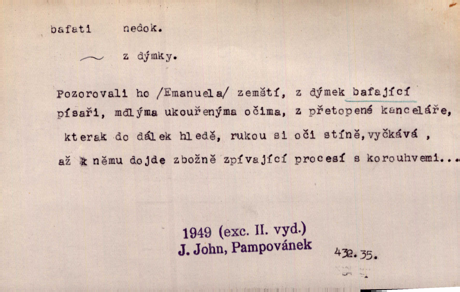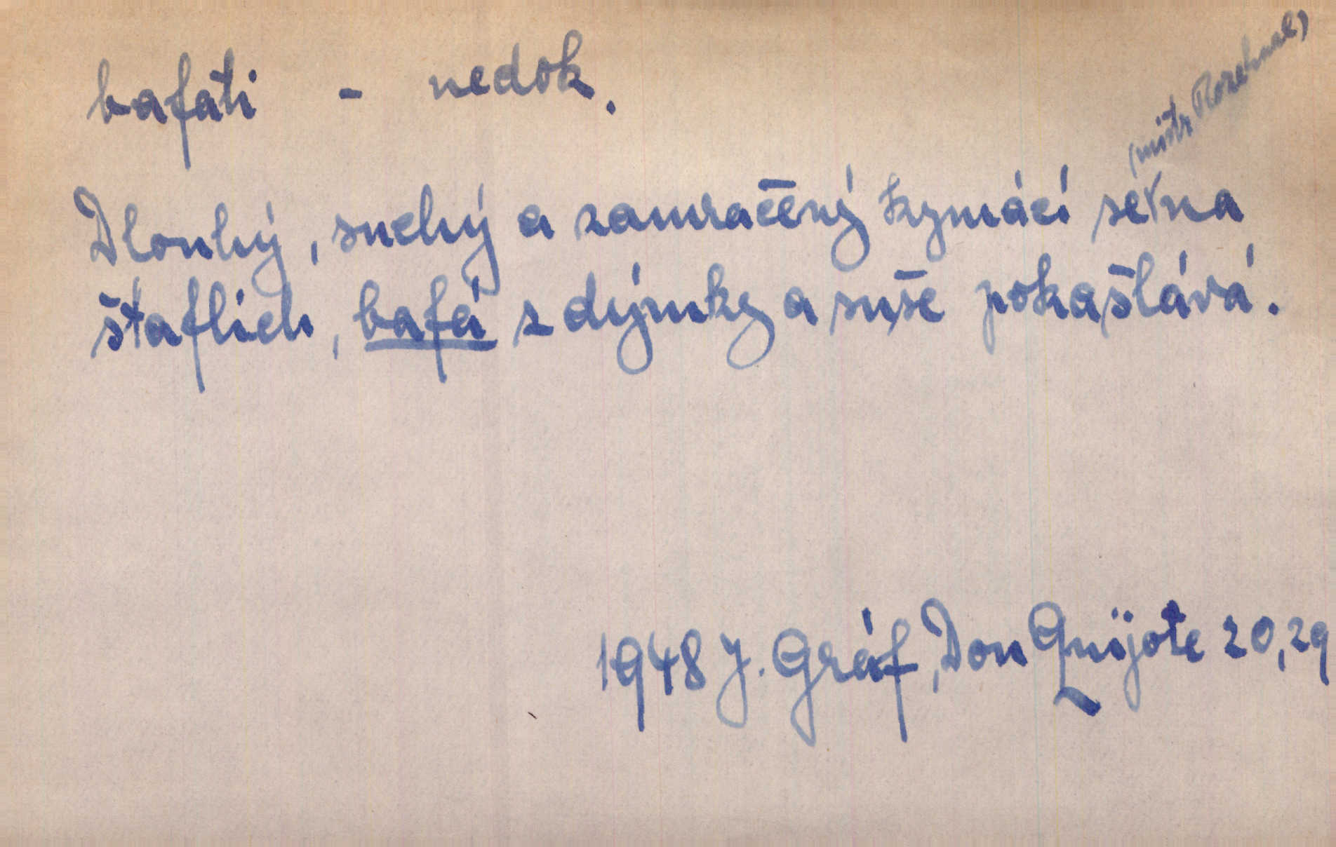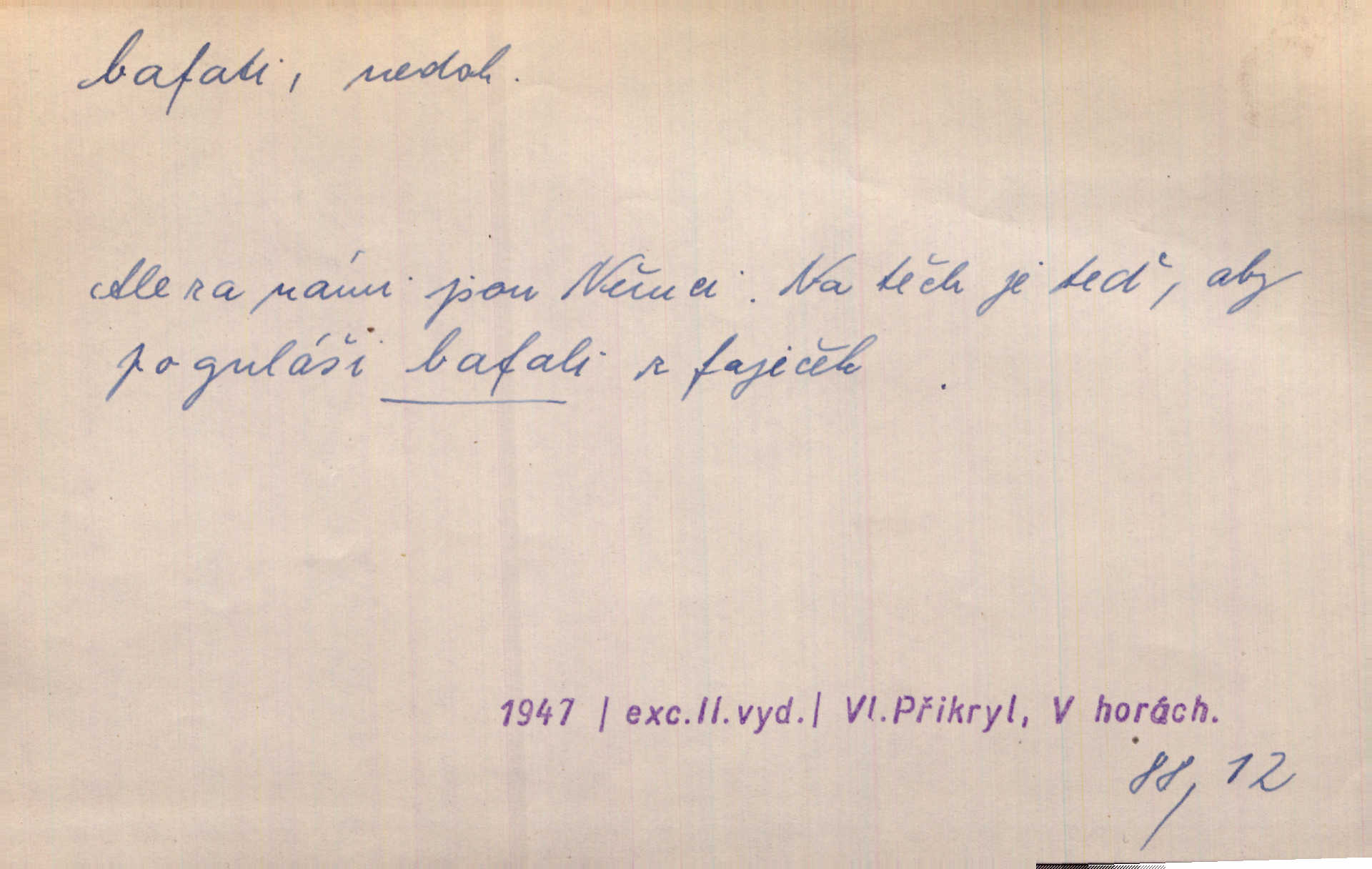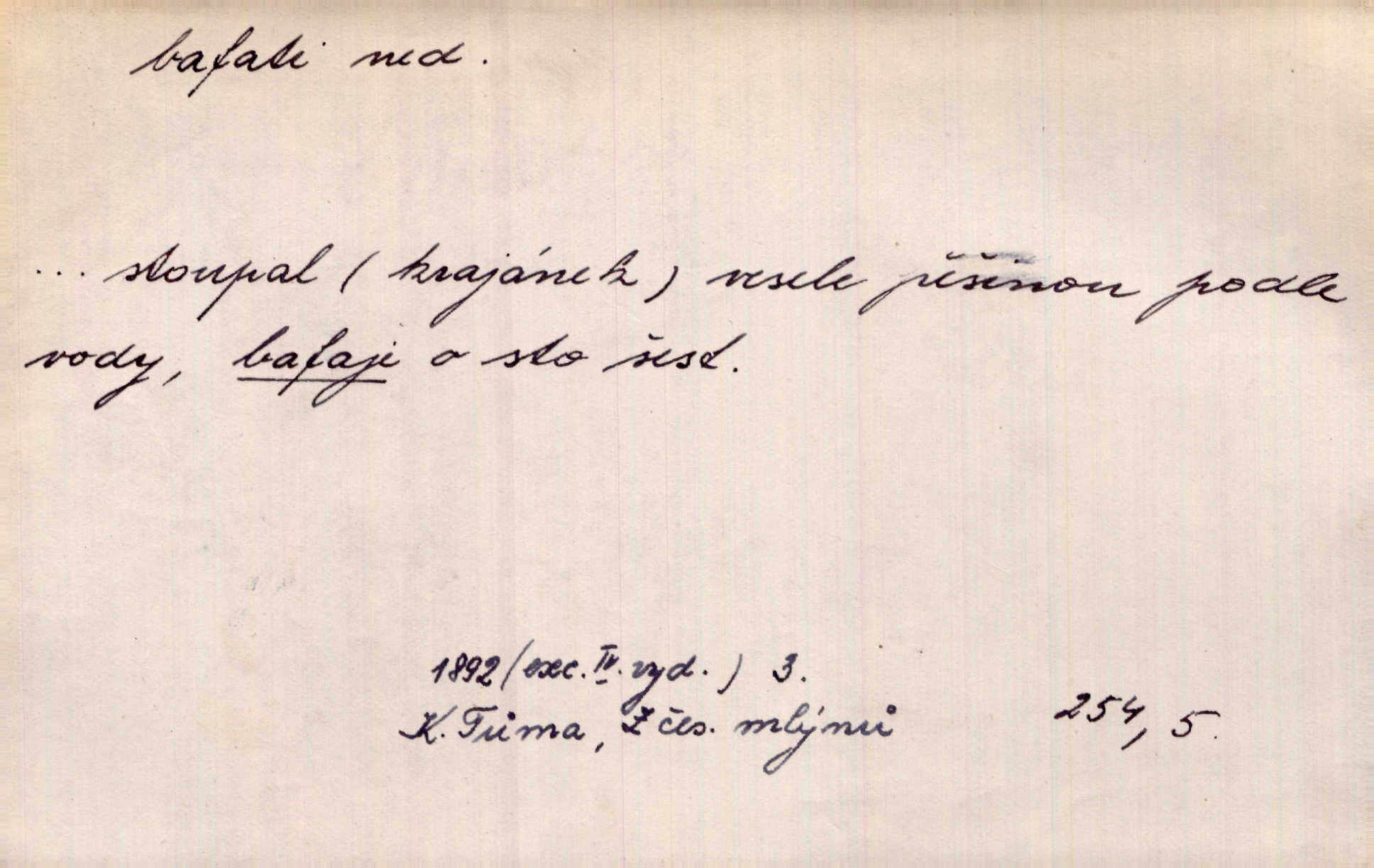 - bafati ned. štěkati. Pejsek bafal na každého. Sova. D vulg. na někoho křičeti. D vydávati retní zvuky při kouření, vypouštěti kouř s těmito zvuky; fam. kouřiti. V měkkém bílém kouři rychle bafají Hrouzkovy rty. V. Mrš. Nastalo ticho sotva rušené bafáním kouřících. Vrch. Starý bafal jako komín, když se smrkovým roštím zatopí. Rais. Tím bafáním to nespravíš. Leda bys hosty vykouřit chtěl do posledního. V. Mrš.