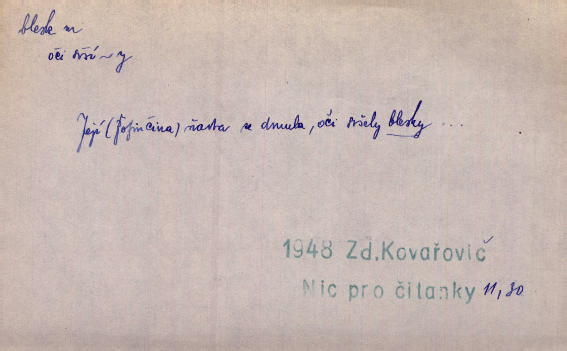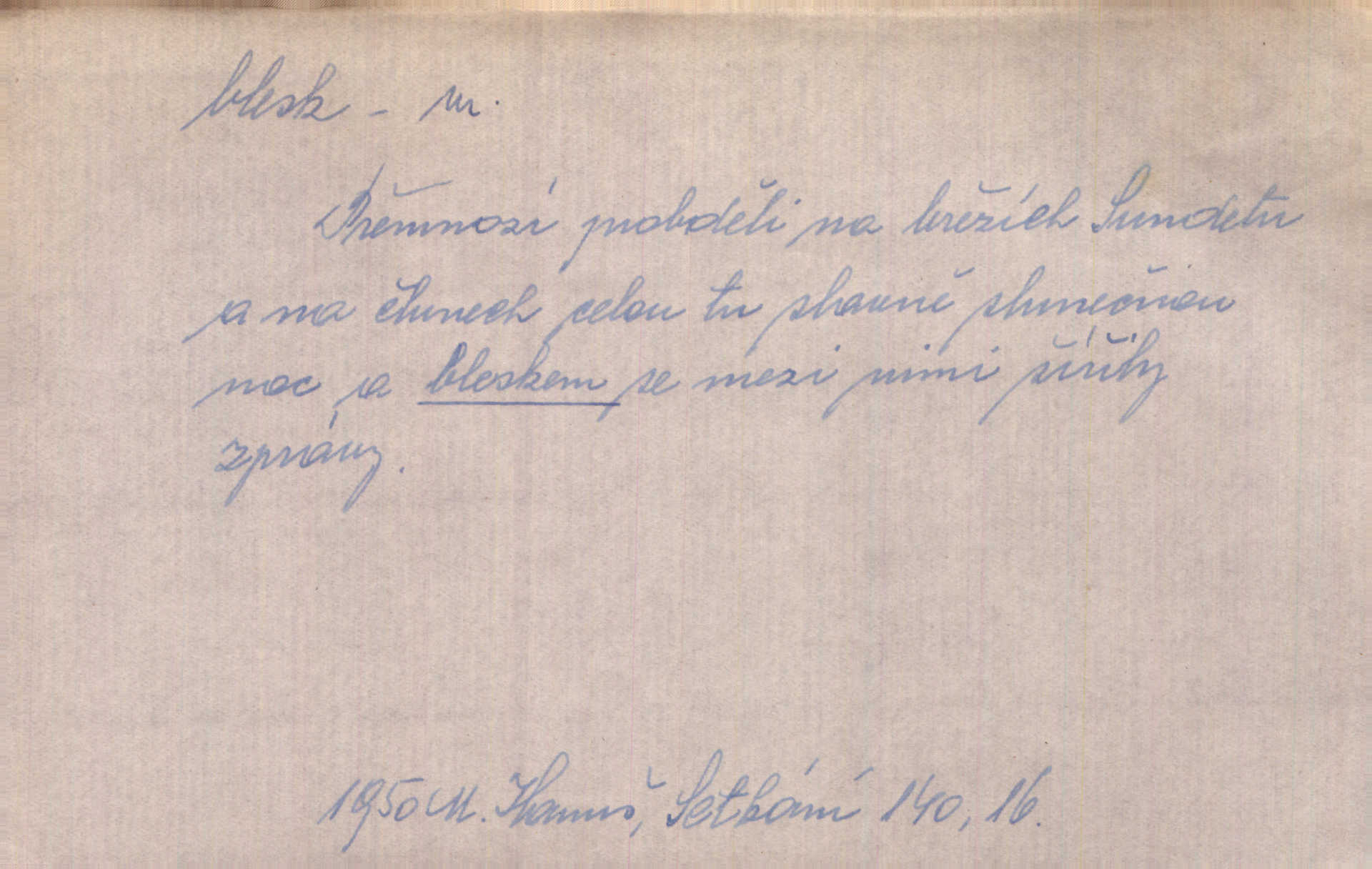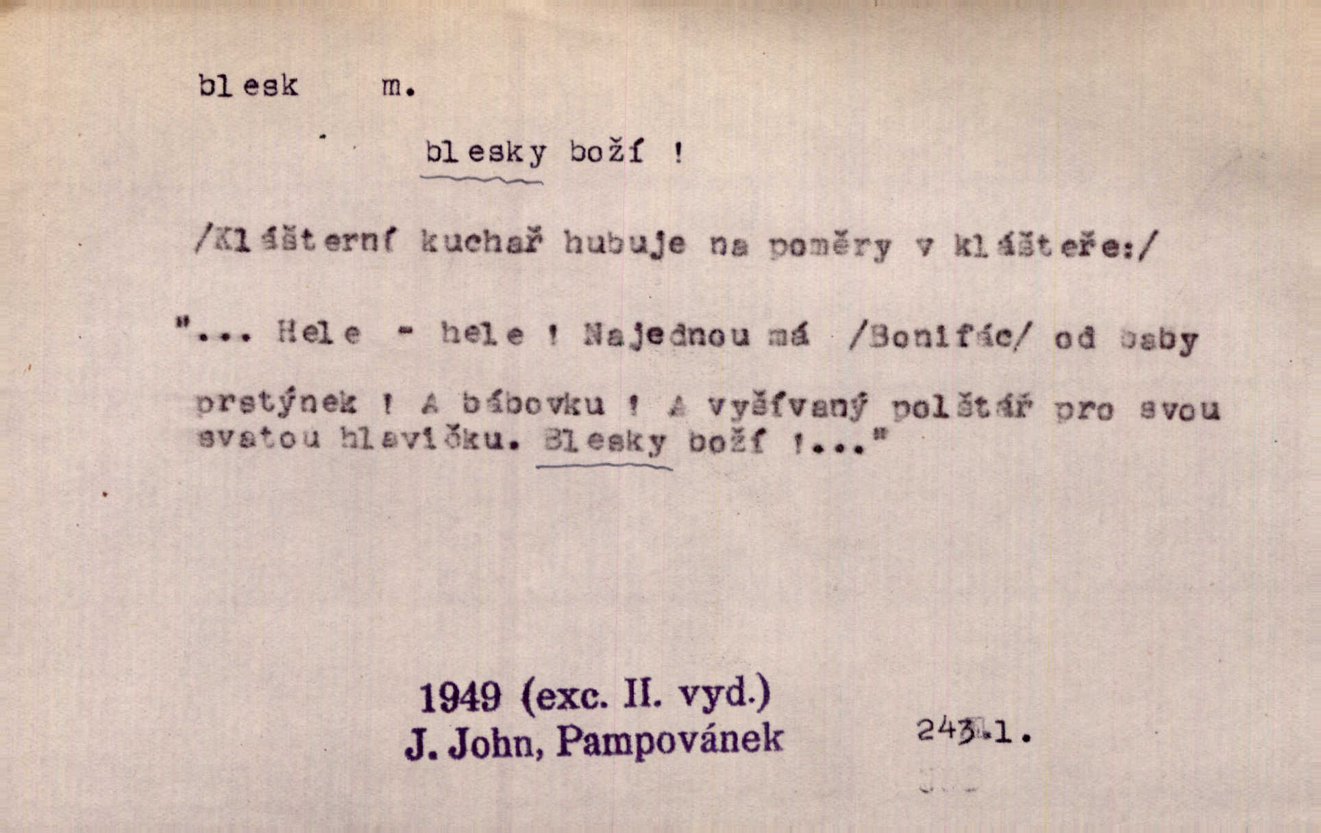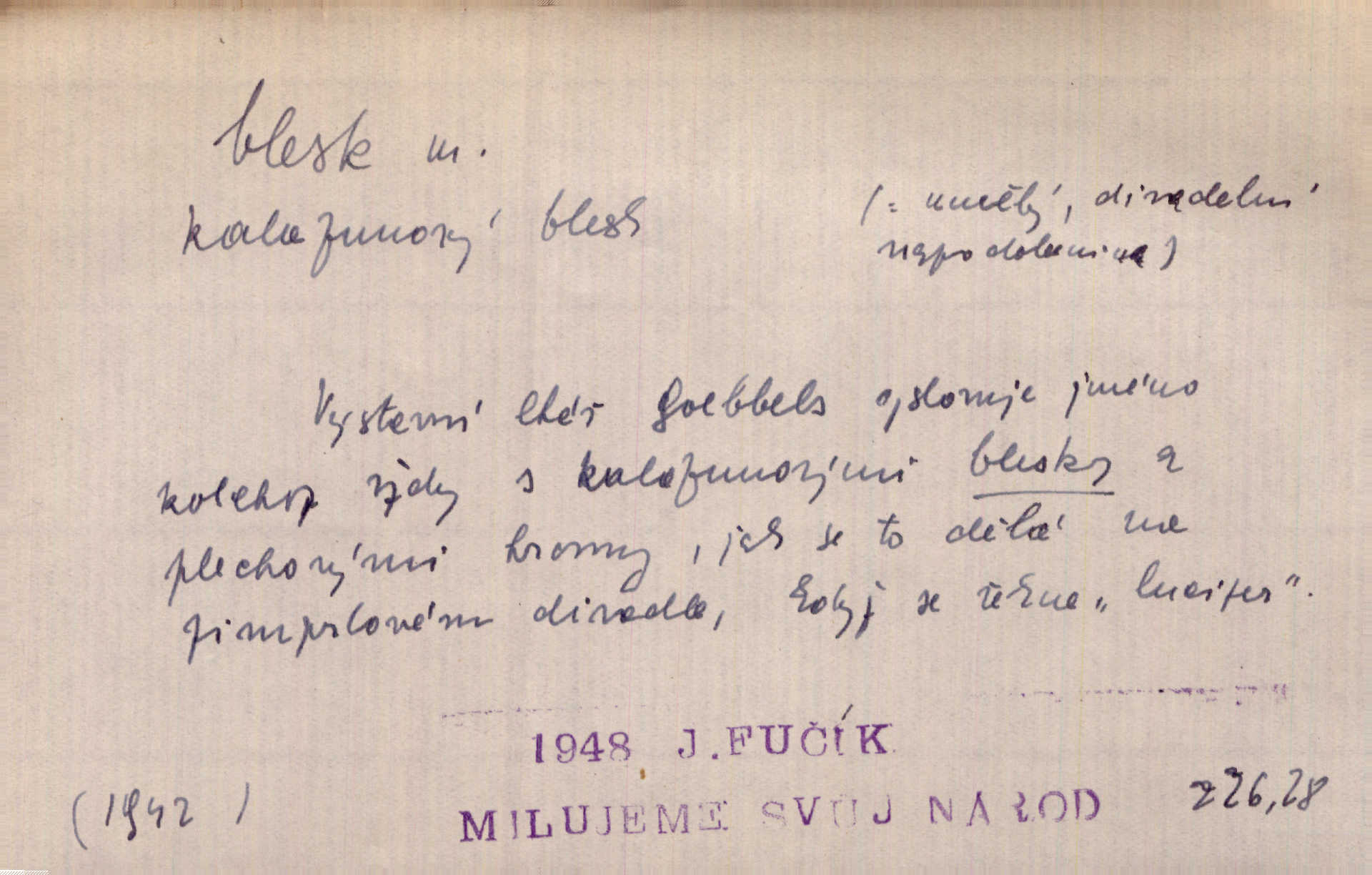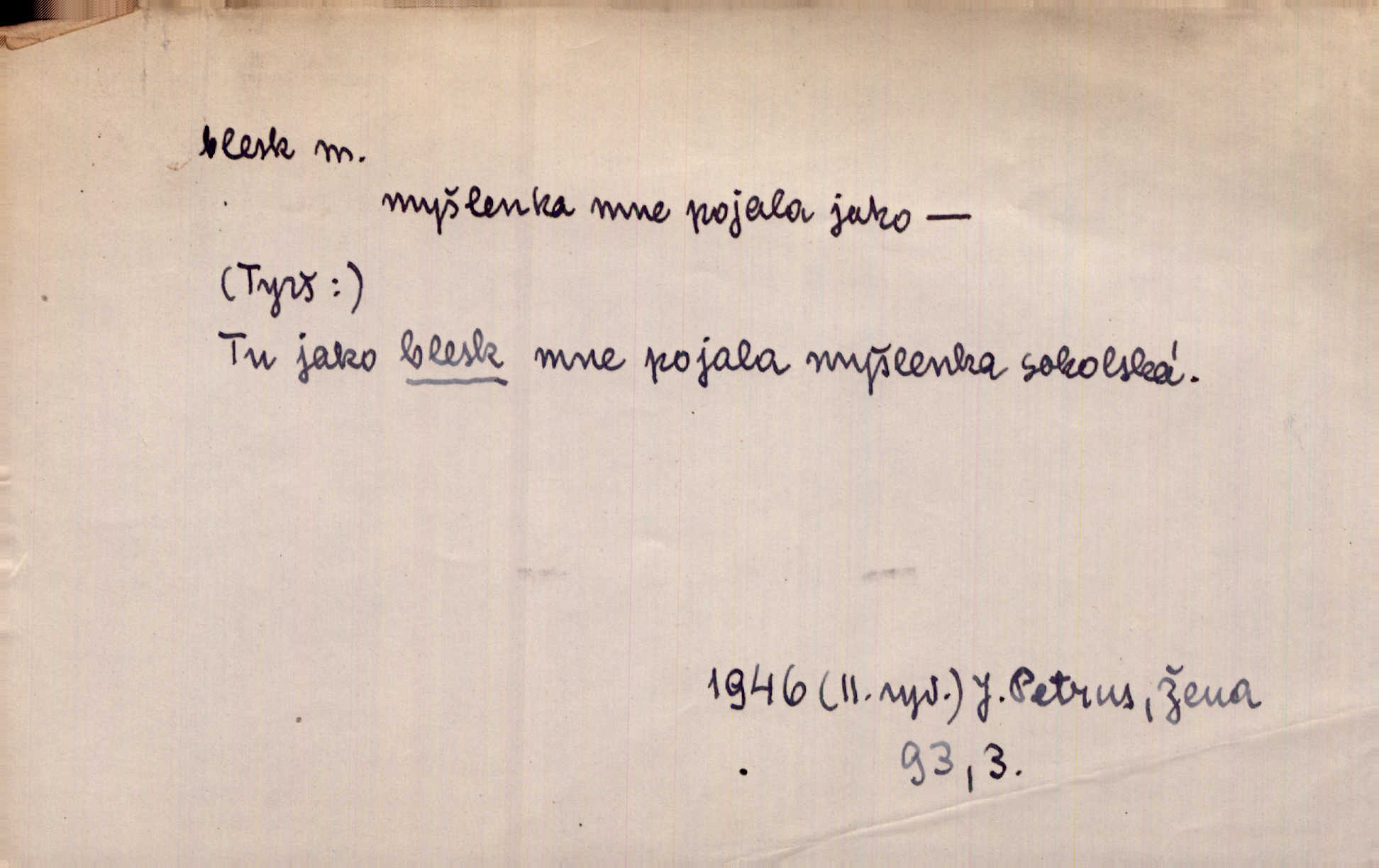 - blesk, -u m. světelný jev při bouřce způsobovaný výbojem elektřiny. Nebe se otvíralo v blescích. Podl. Vichřice duje, blesk se s bleskem stíhá. Krás. Blesky se křižují. Blesk udeřil. Blesk kulový, jiskrový, plošný. V tom jí jako blesk projela hlavou myšlenka, že snad Havel musí na vojnu. Prav. Koně ucítivše volnost, letěli nyní ne již šípem, ale bleskem, šíleně. Zey. Tu se mu však panna Adlička bleskem, jako úhoř, z rukou vyvinula. Jir. D ostré, prudké světlo; intensivní lesk, třpyt. Oči mu zářily v blesku měsíce. A. Mrš. Zlatý, bitý pás, v němž zářilo a blesky metalo drahé kamení, Jir. Blesk oceli se šerou síní mih’. Zey. Podívá se a blesk vyšlehne z černých žhavých očí jejích. Baar. Lev potřásá svou hřívou, blesky hází z očí. Vrch. D náhlé zaplanutí očí jako projev prudkého citu. Má milá přišla, v očích smavých jí radostí blesk jasně plál. Mach. Okem šlehl blesk nevýslovné zášti, ruka jela po noži v pasu. Ner. Tu blesk prudkého vzdoru se jí zaskvěl v očích. Dur. Z oček sršely blesky jízlivosti. Arb. D Přen. Oslňoval je rád bleskem svého ducha. Čech. Bás. Jak upoutati libelulu, která, modrý blesk, se míhá nad vodou u věčném pohybu jak vítr? Zey. D lesk a blesk vnější okázalost, nádhera. Marný, mizerný svět, po lesku a blesku baživá směsice bez ladu a skladu. Tyl. Slečna Julinka stála před zrcadlem v plném lesku a blesku. Kosm. D při zvolání a klení: blesky boží!, živé blesky!, hromy a blesky! Blesky boží! proklatí ti ptáci. Staš. Hromy a blesky, pusťte mne, nebo zapomenu všecky rytířské zákony. Stroup. Na hromech líhá a na blescích vstává kleje celý den. Sez.