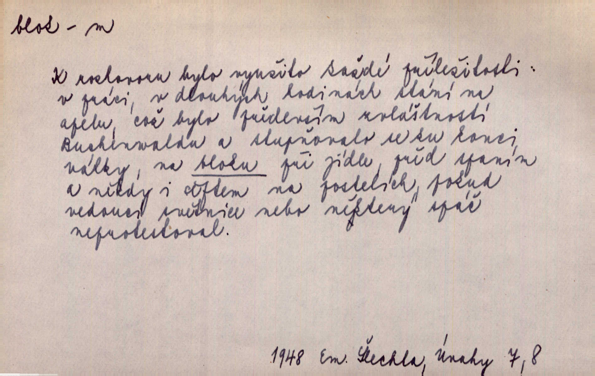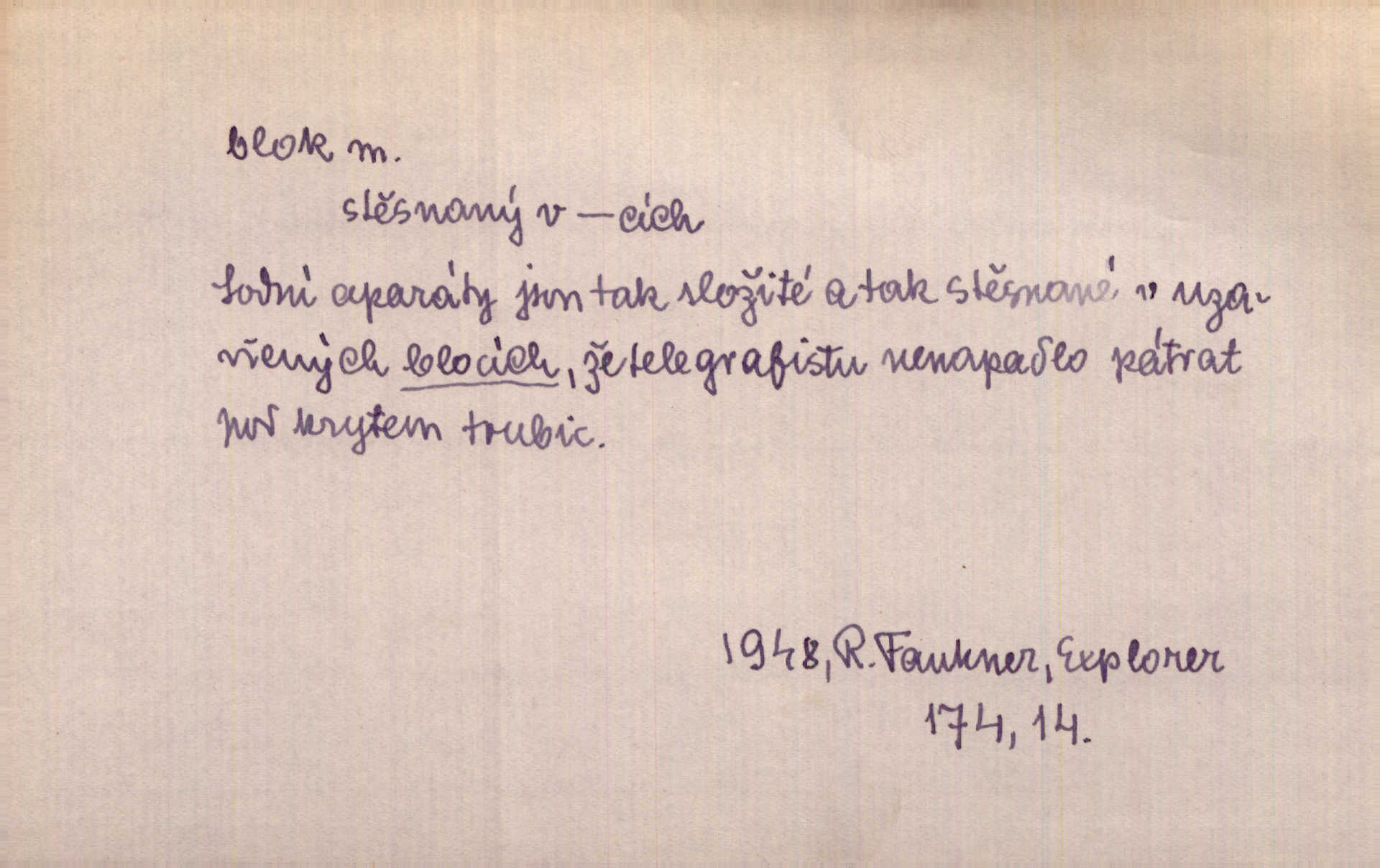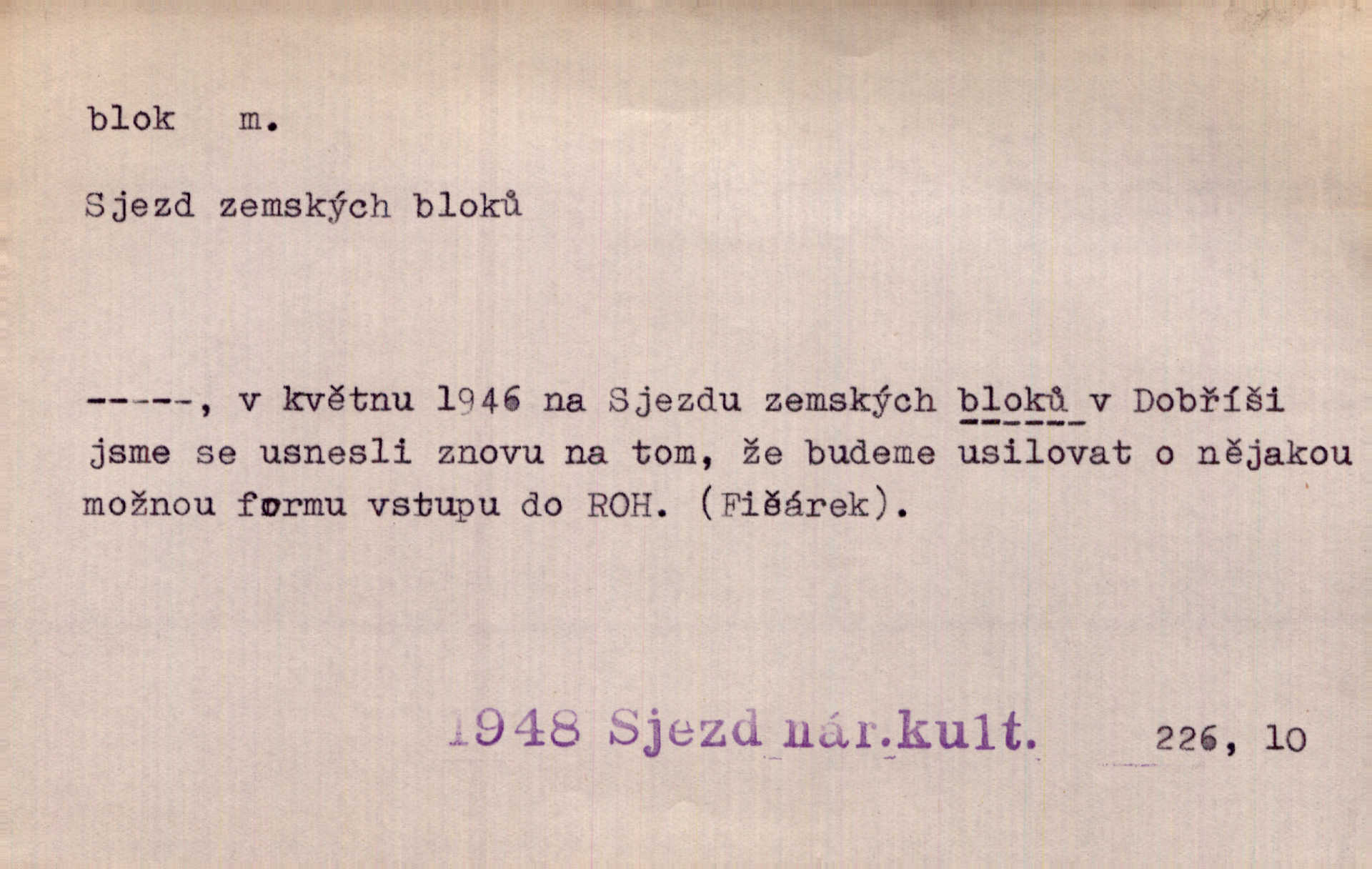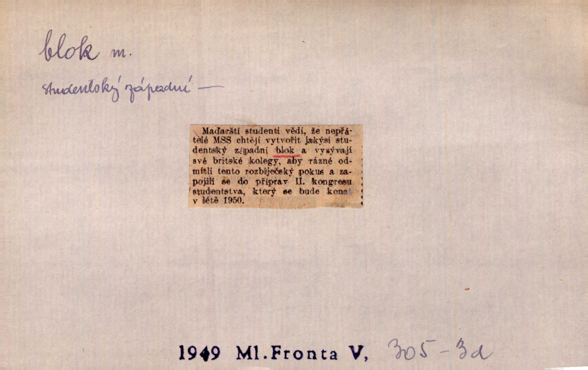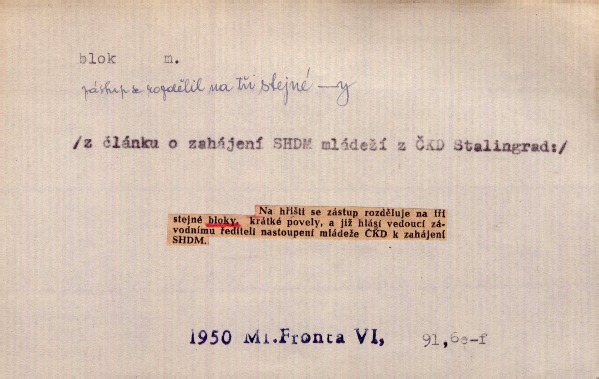 - blok, -u m. skupina domů. Stavěti dům vedle domu, bloky, ulice, město. Lang. D seskupení jistých samostatných organisací se stejnými zájmy, na př. politických stran a pod. Zlatý blok skupina států, které setrvávají při zlaté měně. Země se zlatou měnou se měly státi zároveň blokem hospodářským. Nár. l. První útok vyjde ze socialistického bloku. Mach. D svazek listů papíru a p. Vyňav plnicí pero a blok, jal se psáti recept. Čap. Ch. Blok pokladní, blok poštovních známek. Blok předplatní (v divadle). D Námoř. kladkovnice. Žel. jeden z úseků, na něž je rozdělena trať mezi dvěma stanicemi pro zvýšení bezpečnosti vlaků. Také zařízení, jímž se elektricky uzavírá a uvolňuje vjezd na jistý úsek trati.