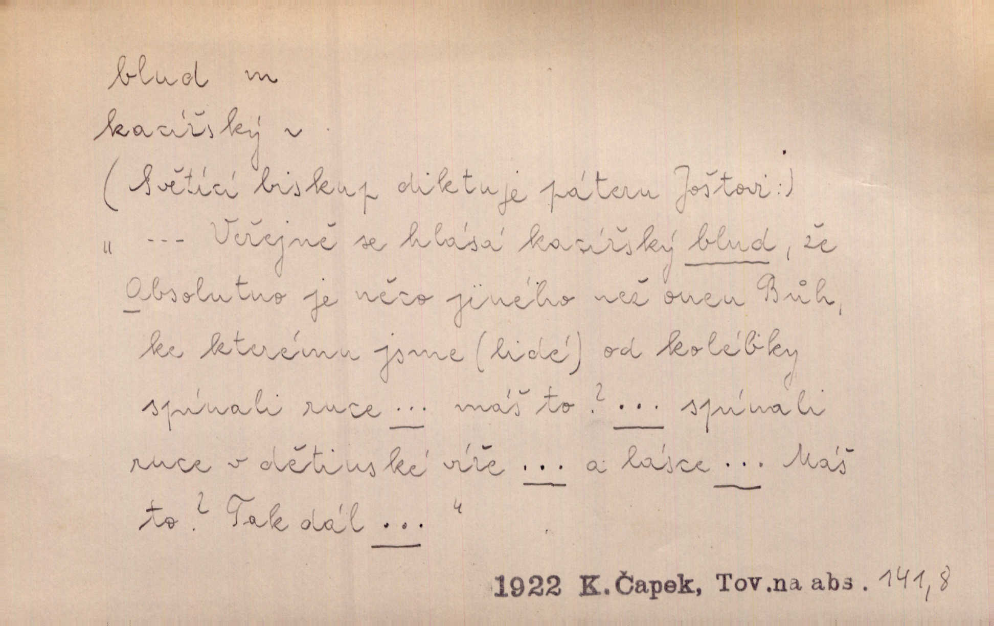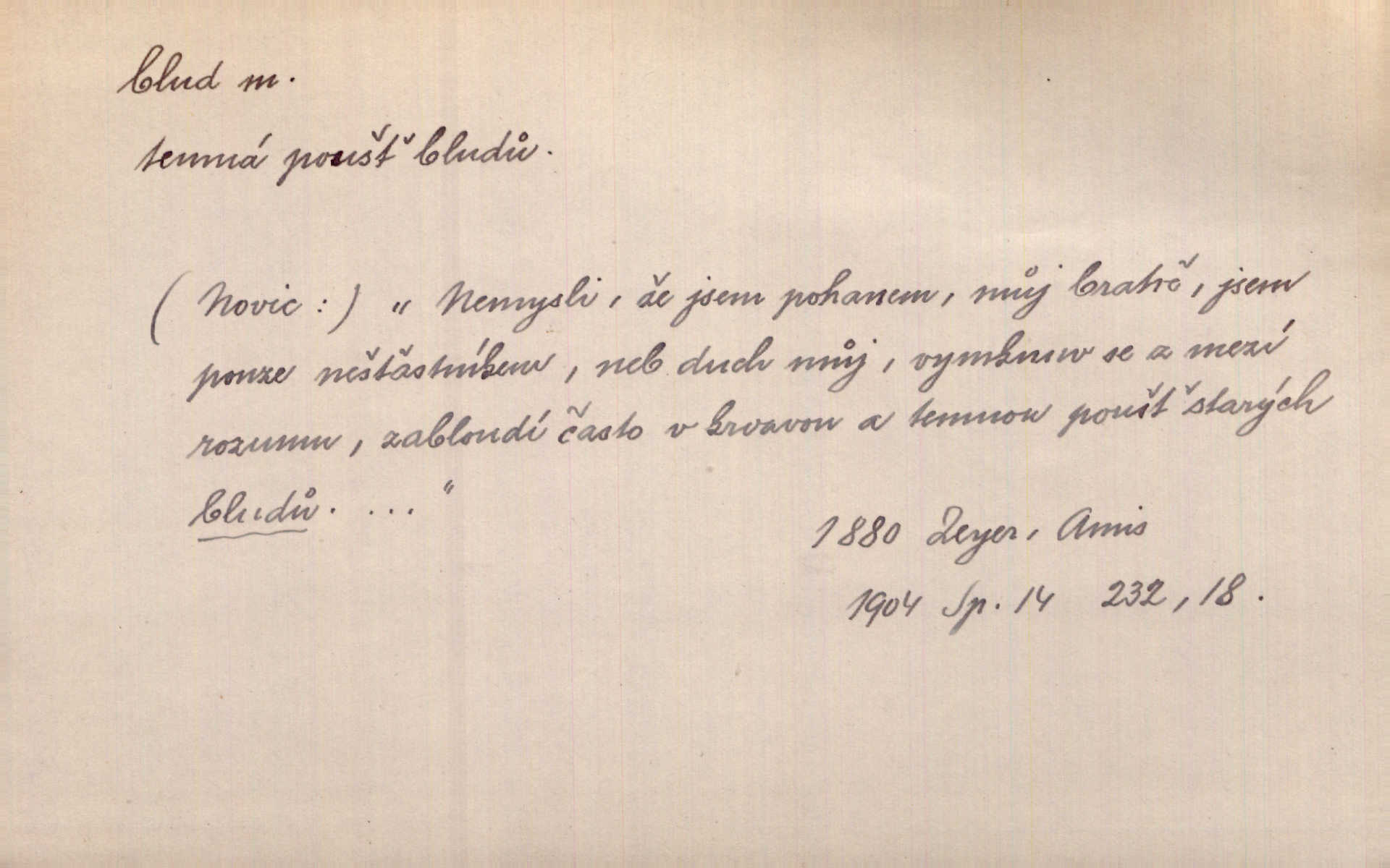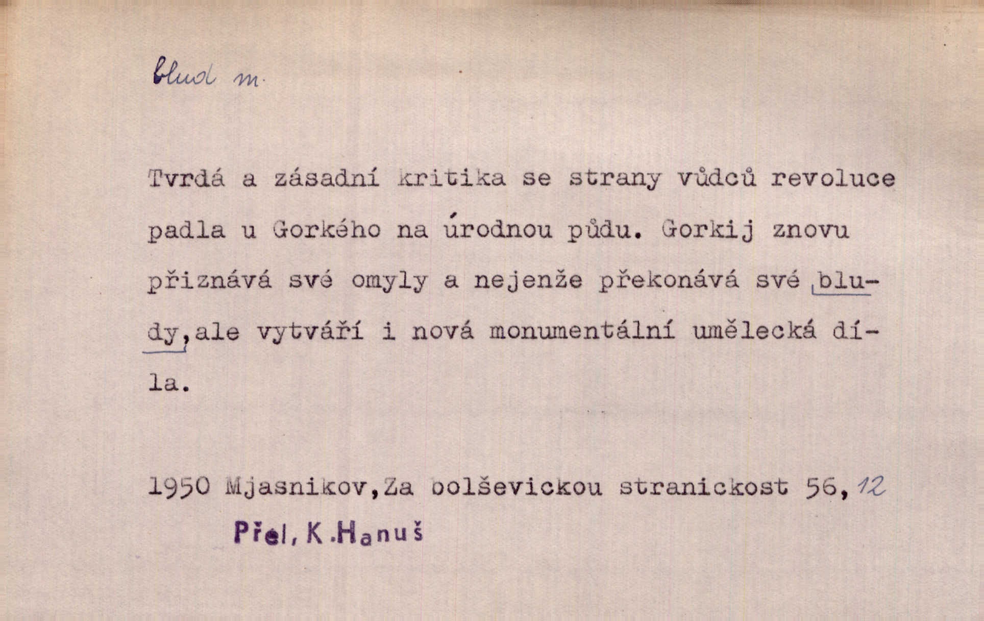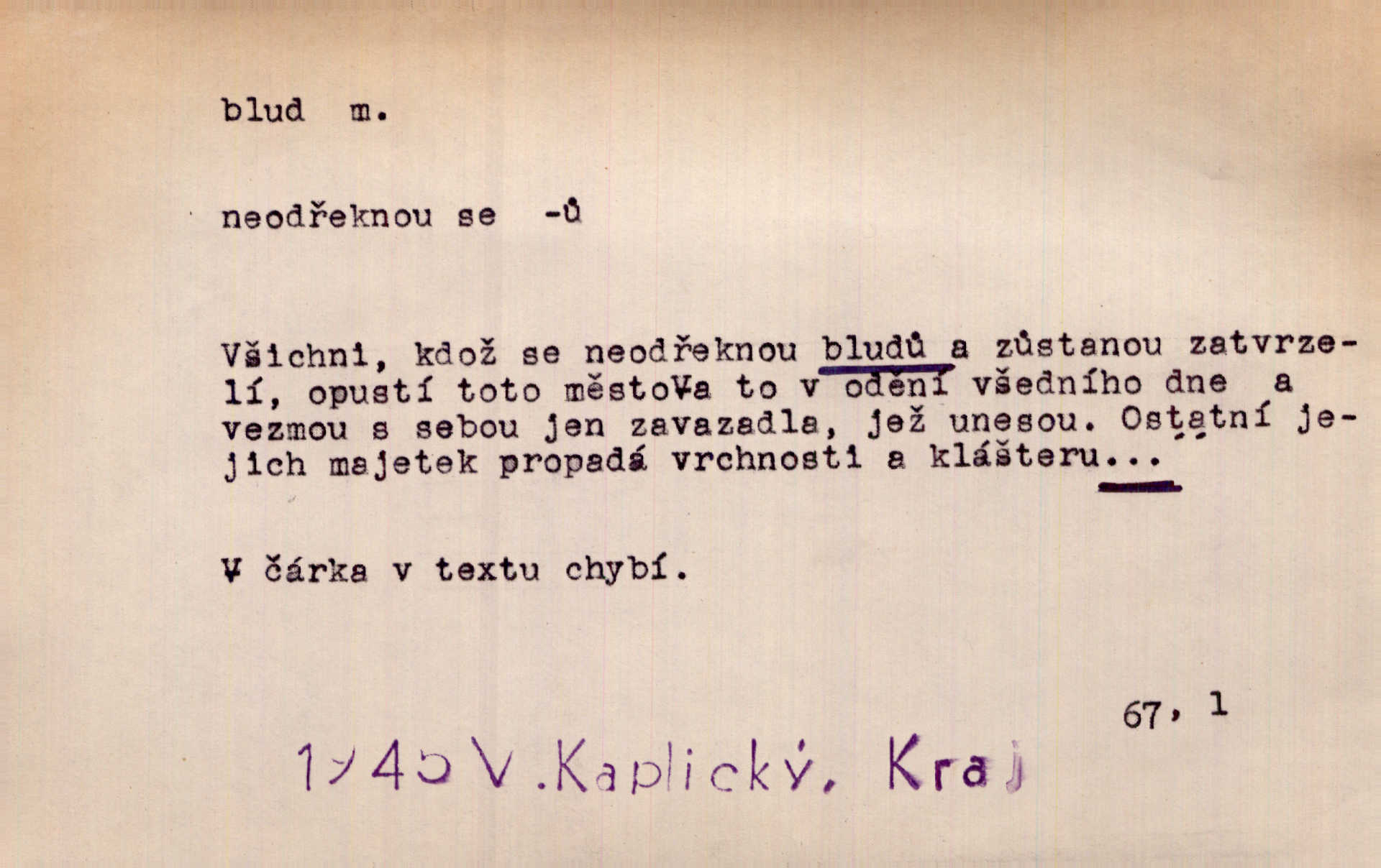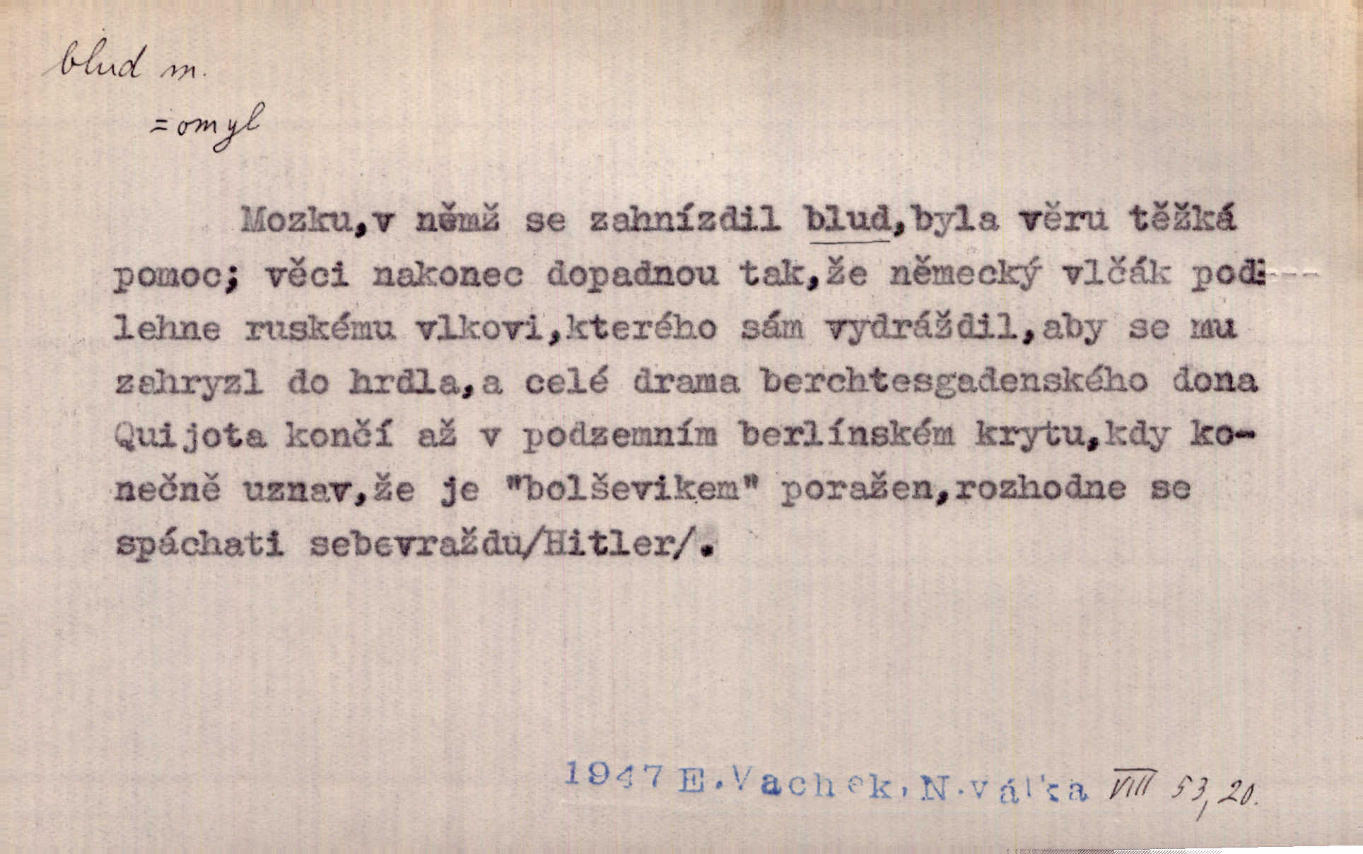 - blud, -u m. nesprávný názor; chyba. Vzdělanost chrání tě před klamy a bludy. Arb. Byl v tom veliký omyl a blud, když se dřív taková svoboda trpěla. Jir. Zavésti někoho v blud, vyvésti z bludu. Upadnouti v blud, poznati svůj blud. D Círk. odchylné přesvědčení ve věcech víry. Bludy Táborů. Lék. chorobný úsudek.