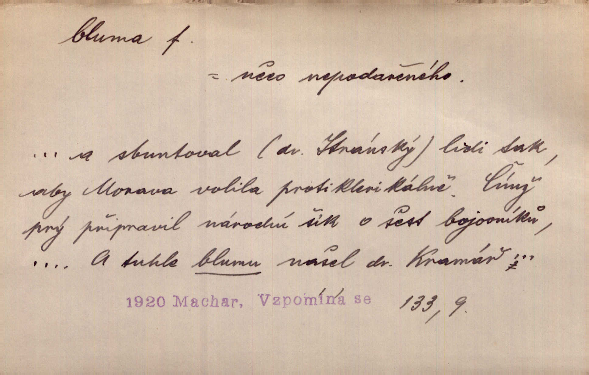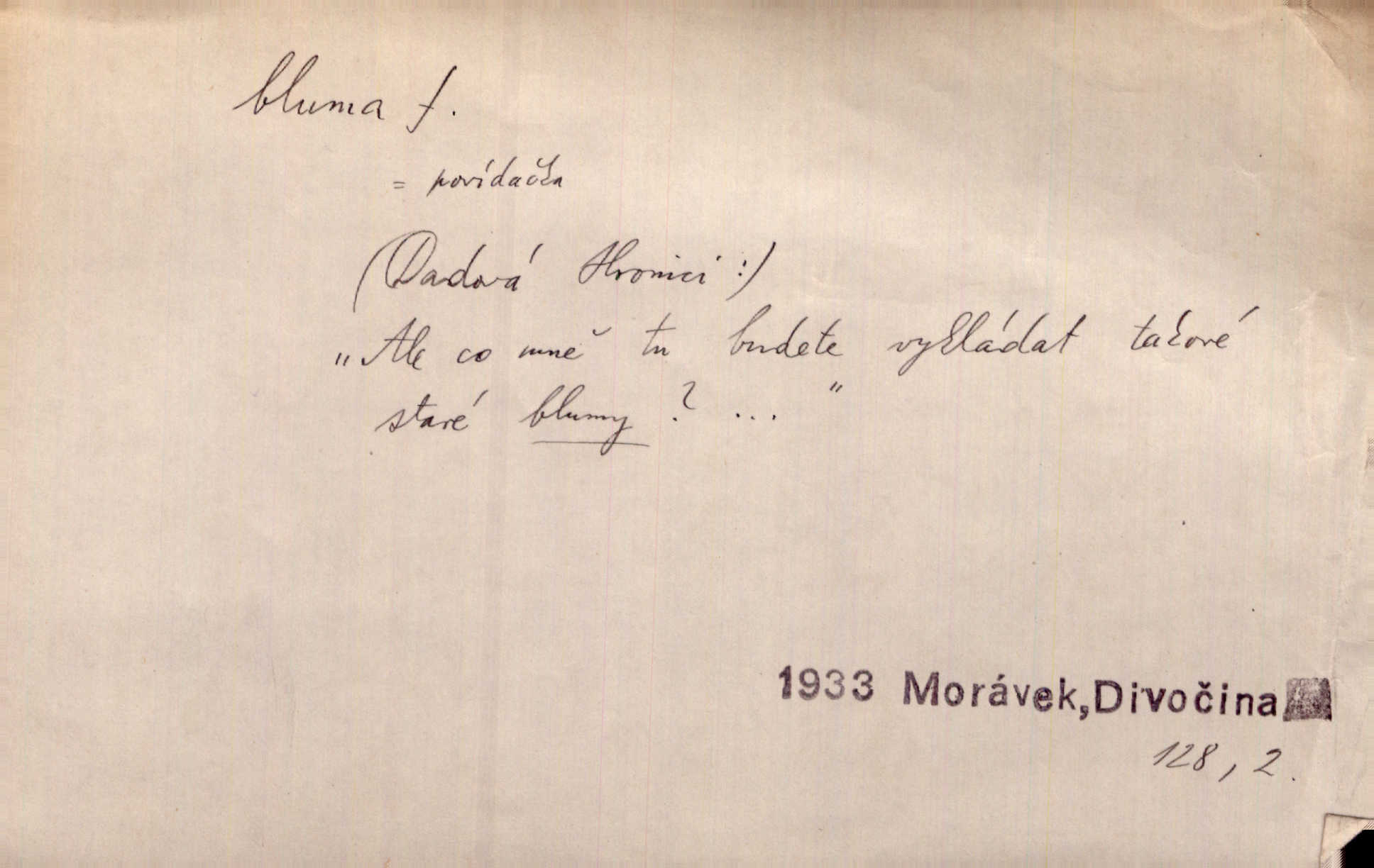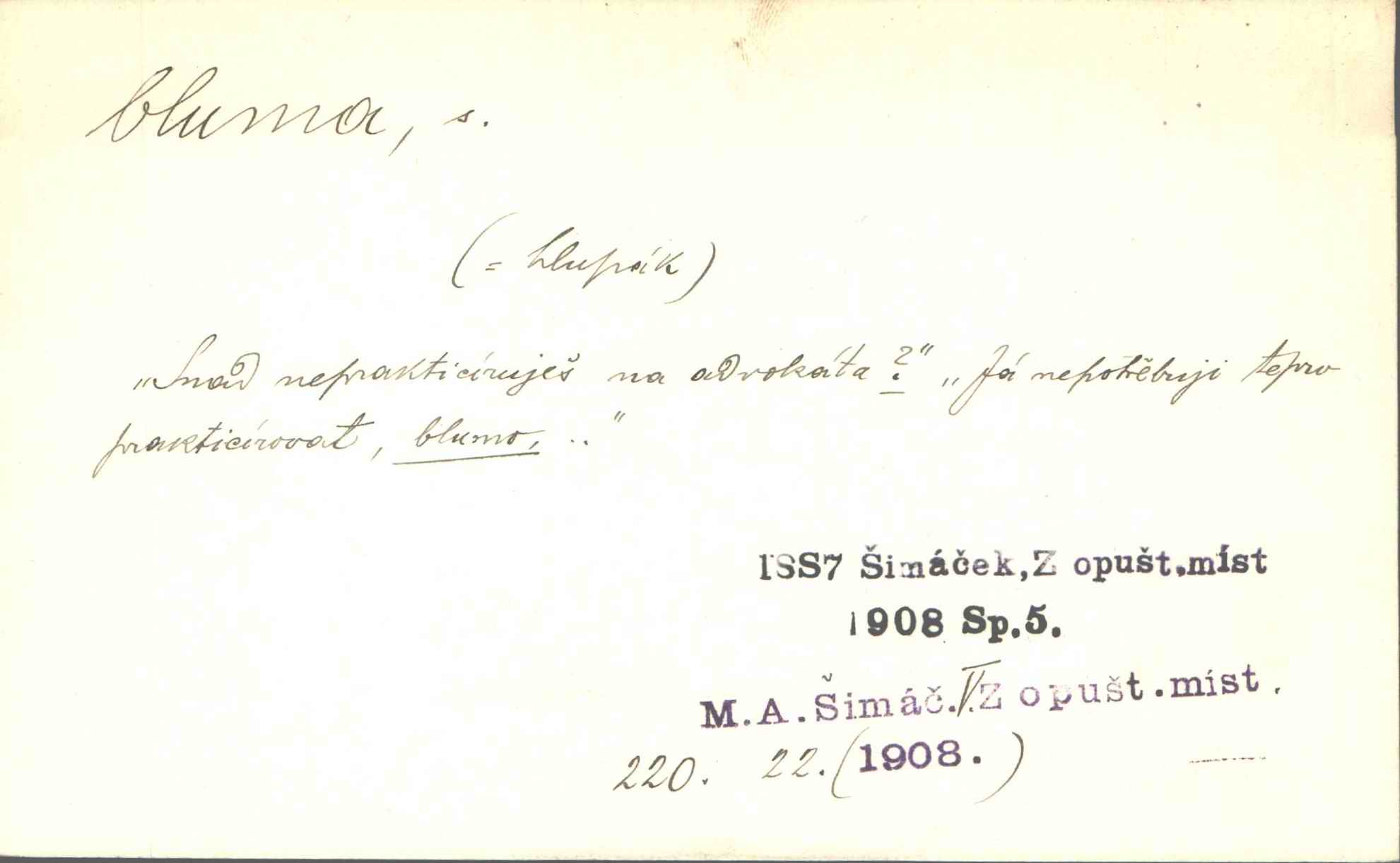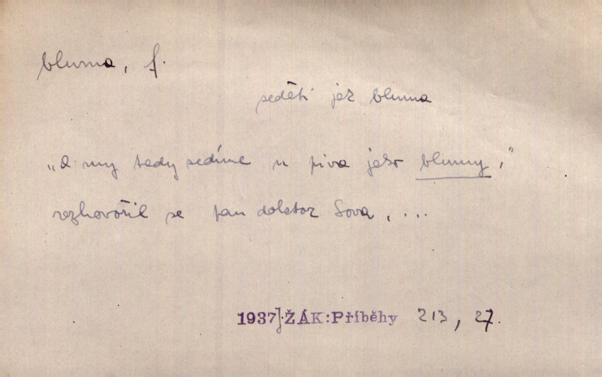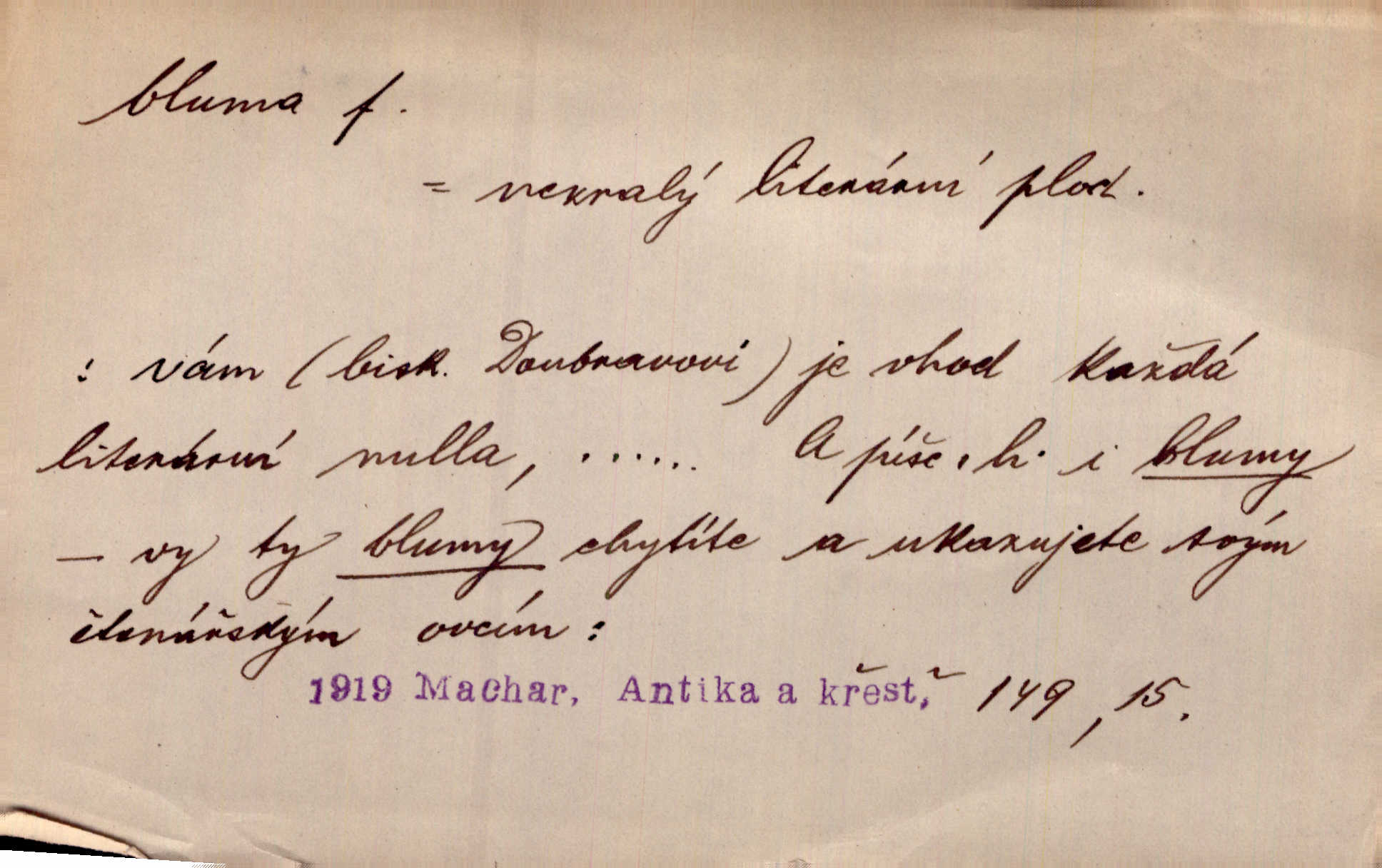 - bluma, -y f. velká švestka (zakulaceného tvaru); strom nesoucí takové švestky. D Lid. budižkničemu, váhal, hlupák. Měla zlost na Josífka, že je bluma a nechá se bránit od děvčete. Něm.