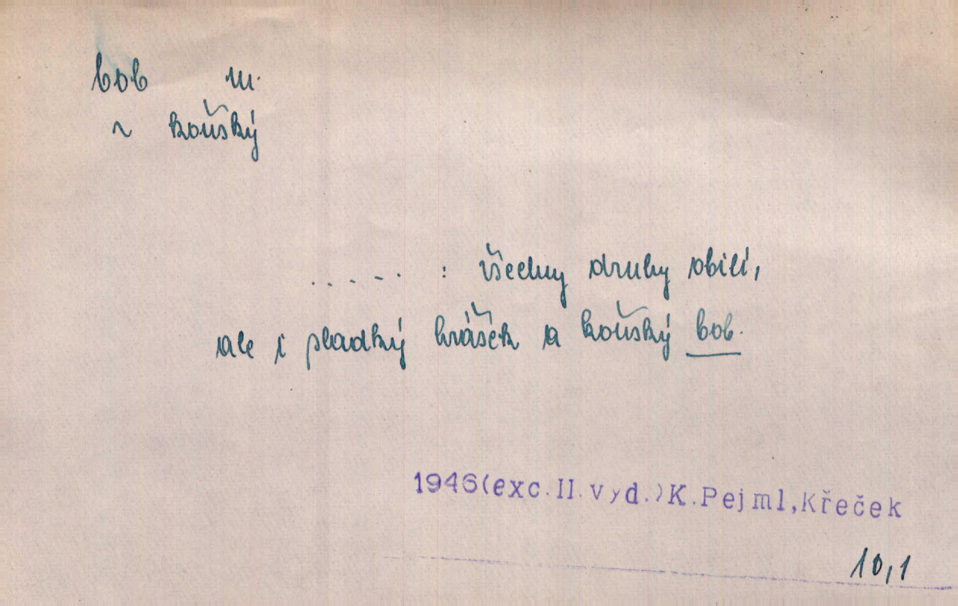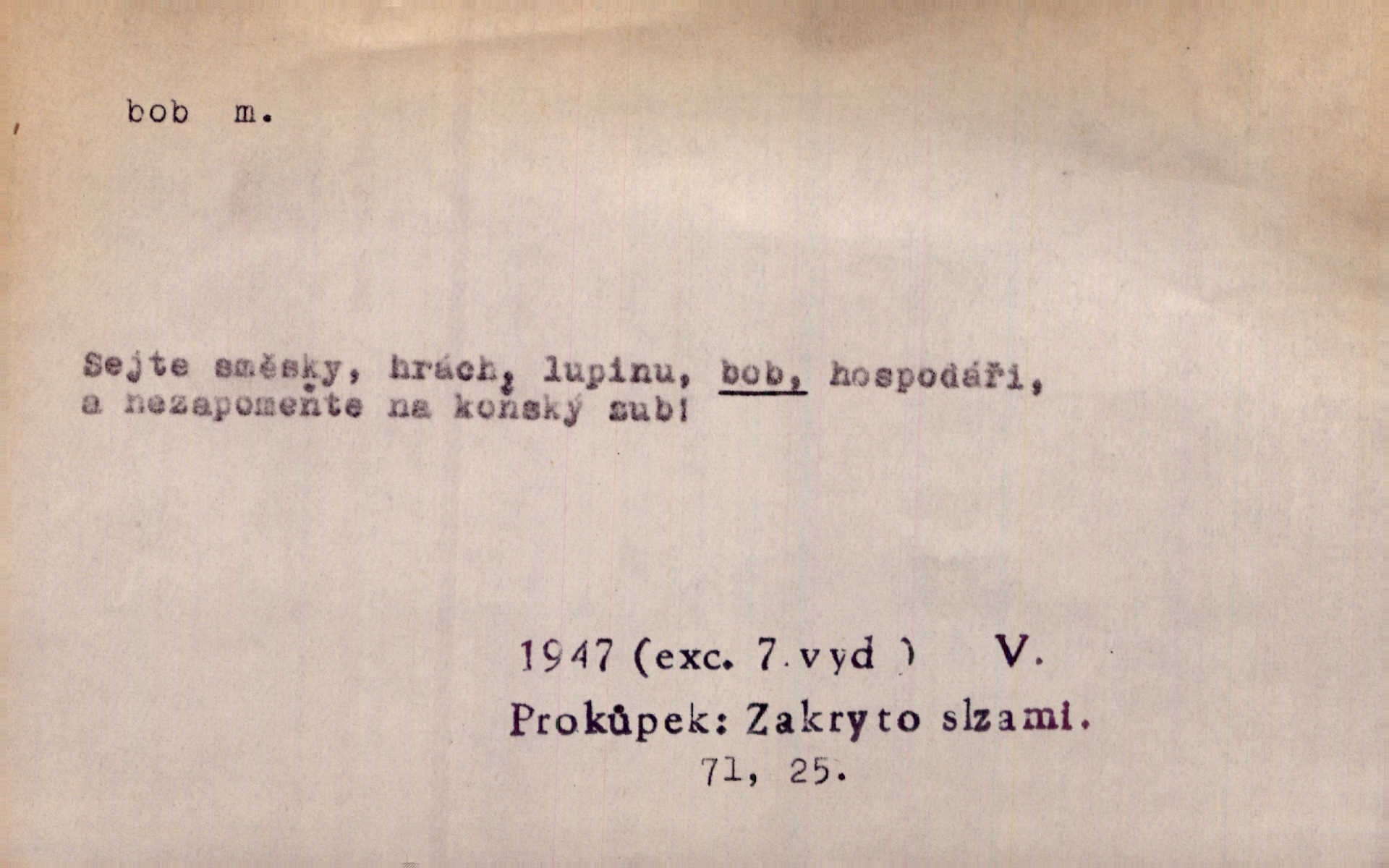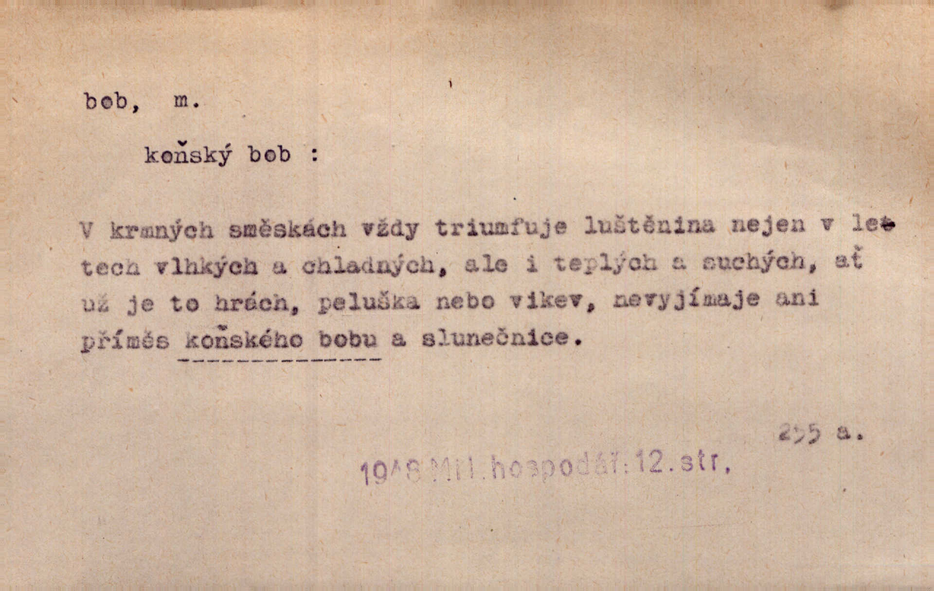 rostlina z čeledi motýlokvětých (Vicia Faba); zrno z jejího plodu.