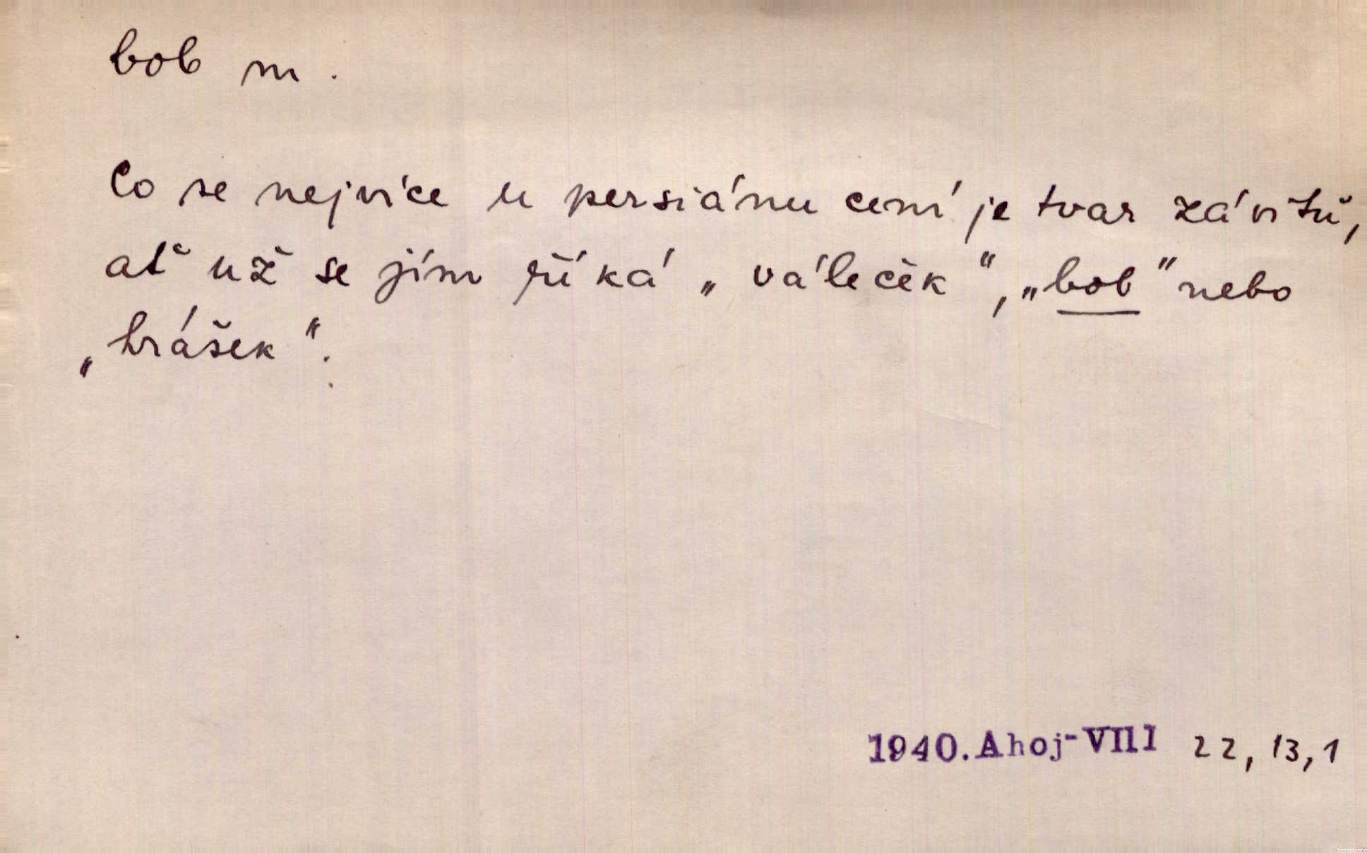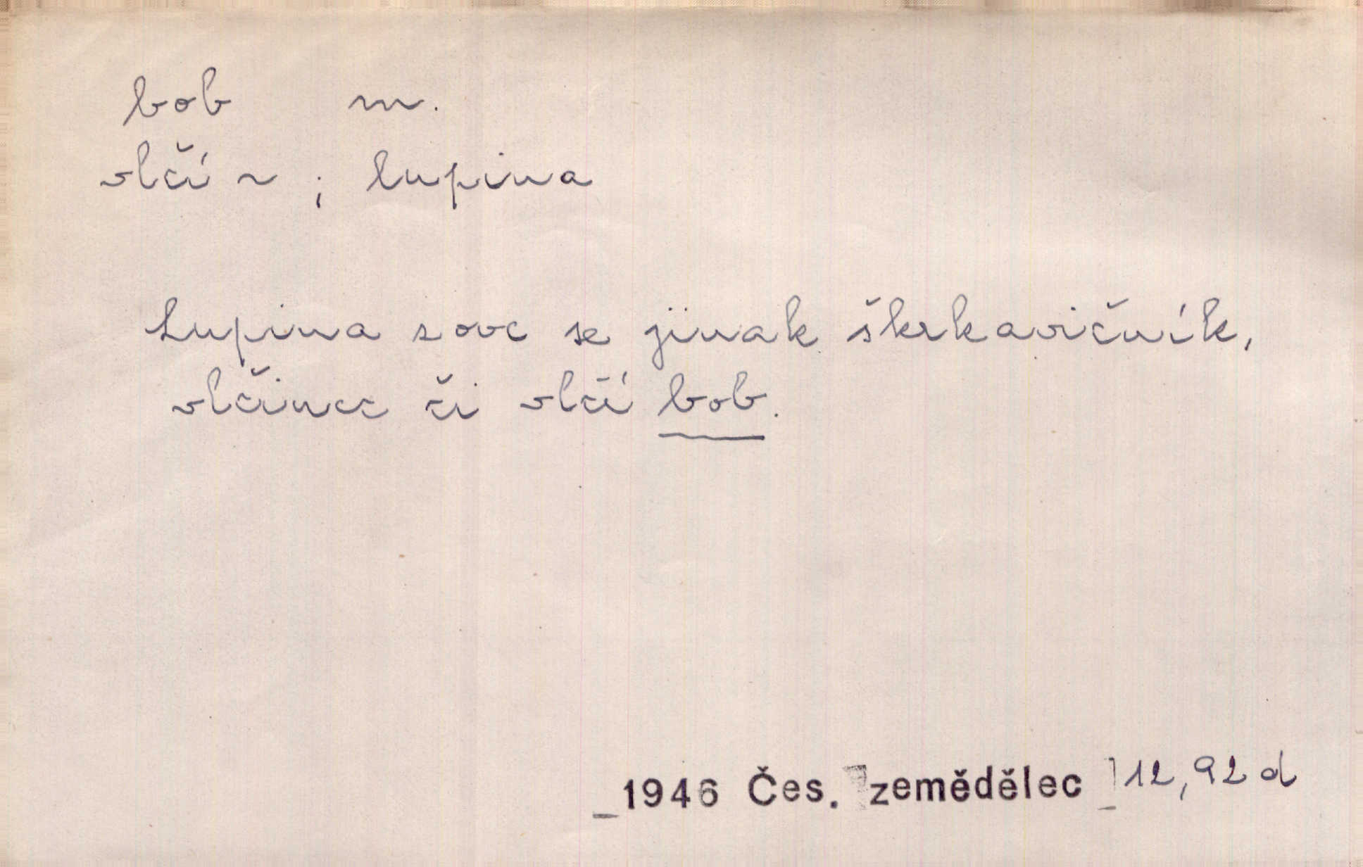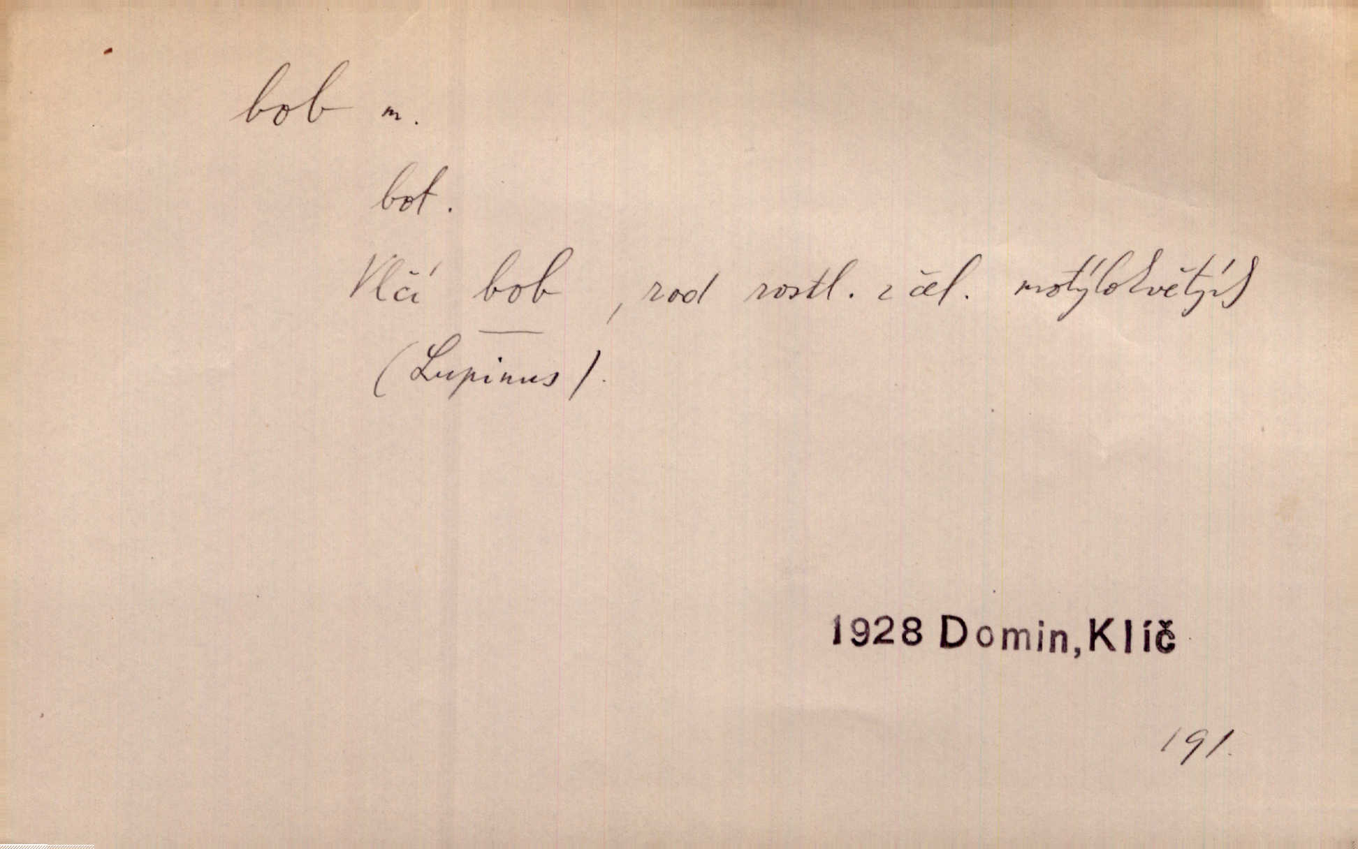 rostlina z čeledi motýlokvětých (Vicia Faba); zrno z jejího plodu.