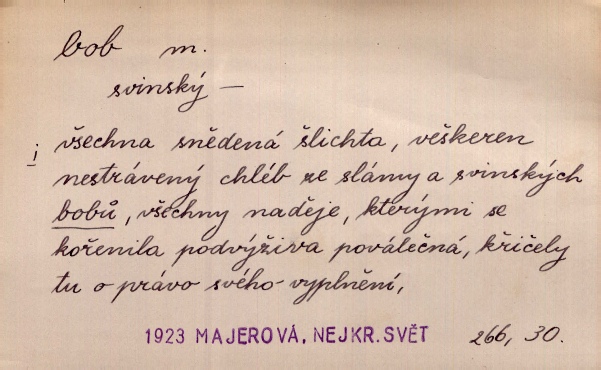Mé glosy mu leží v žaludku jako nabobtnalé boby.