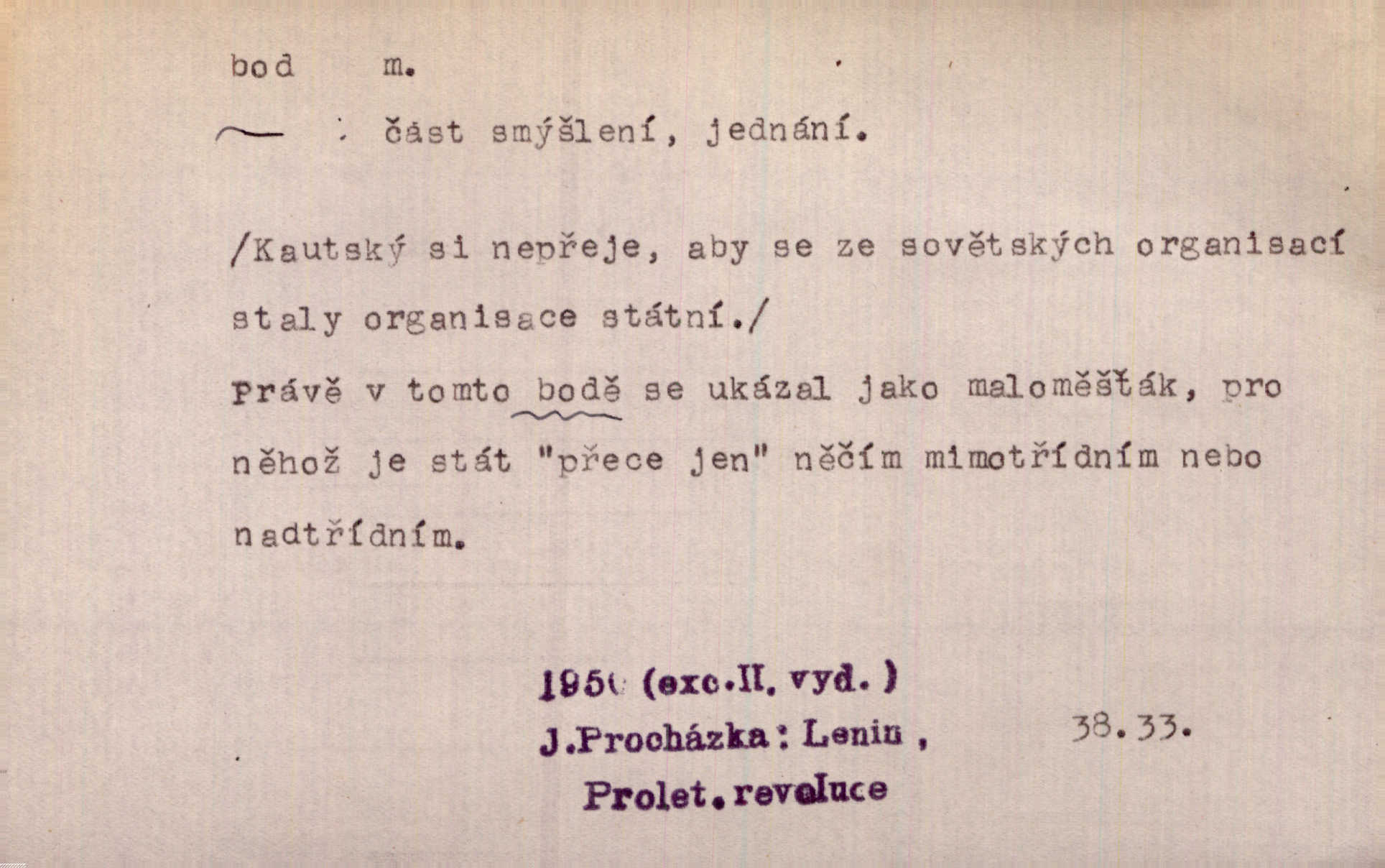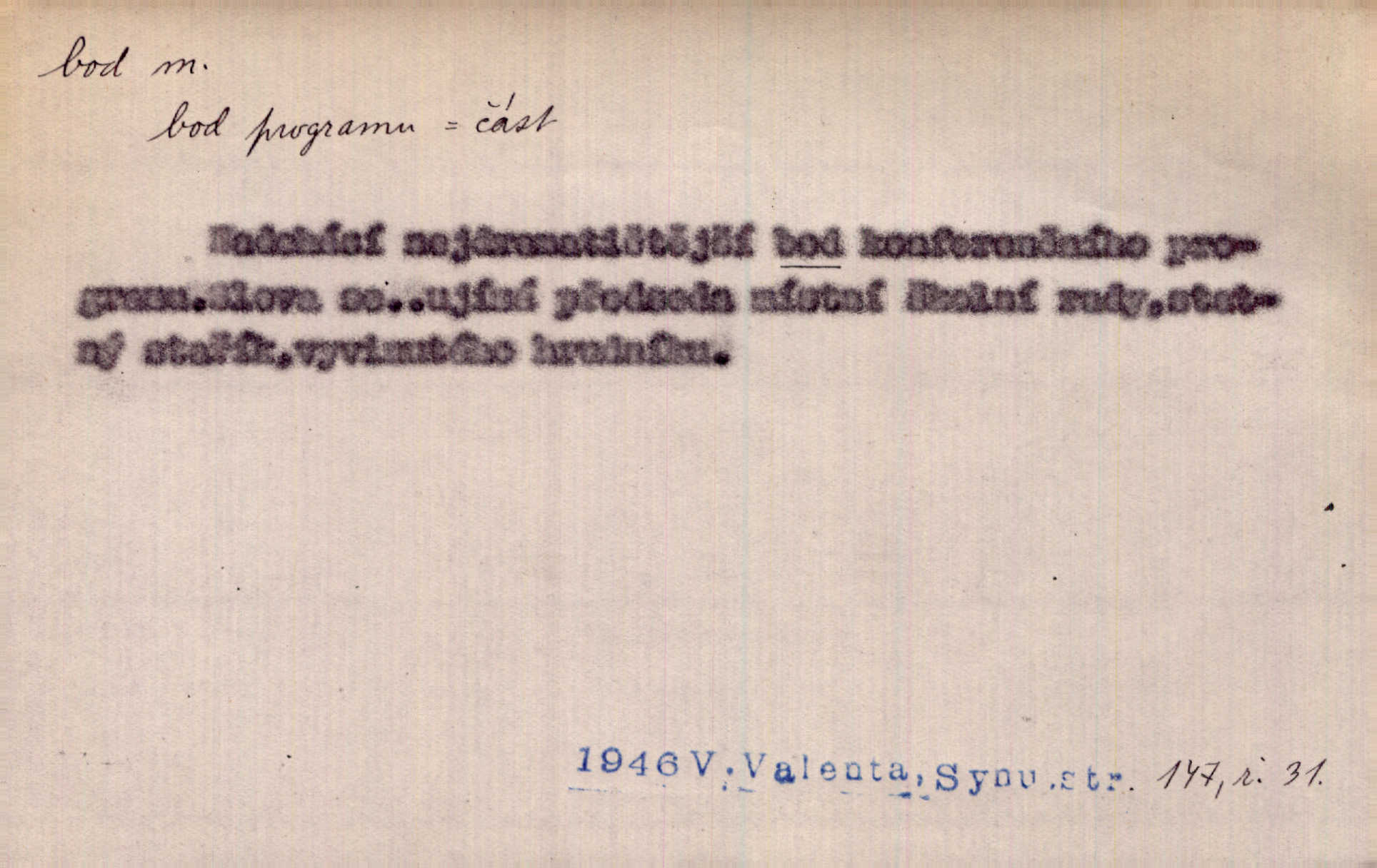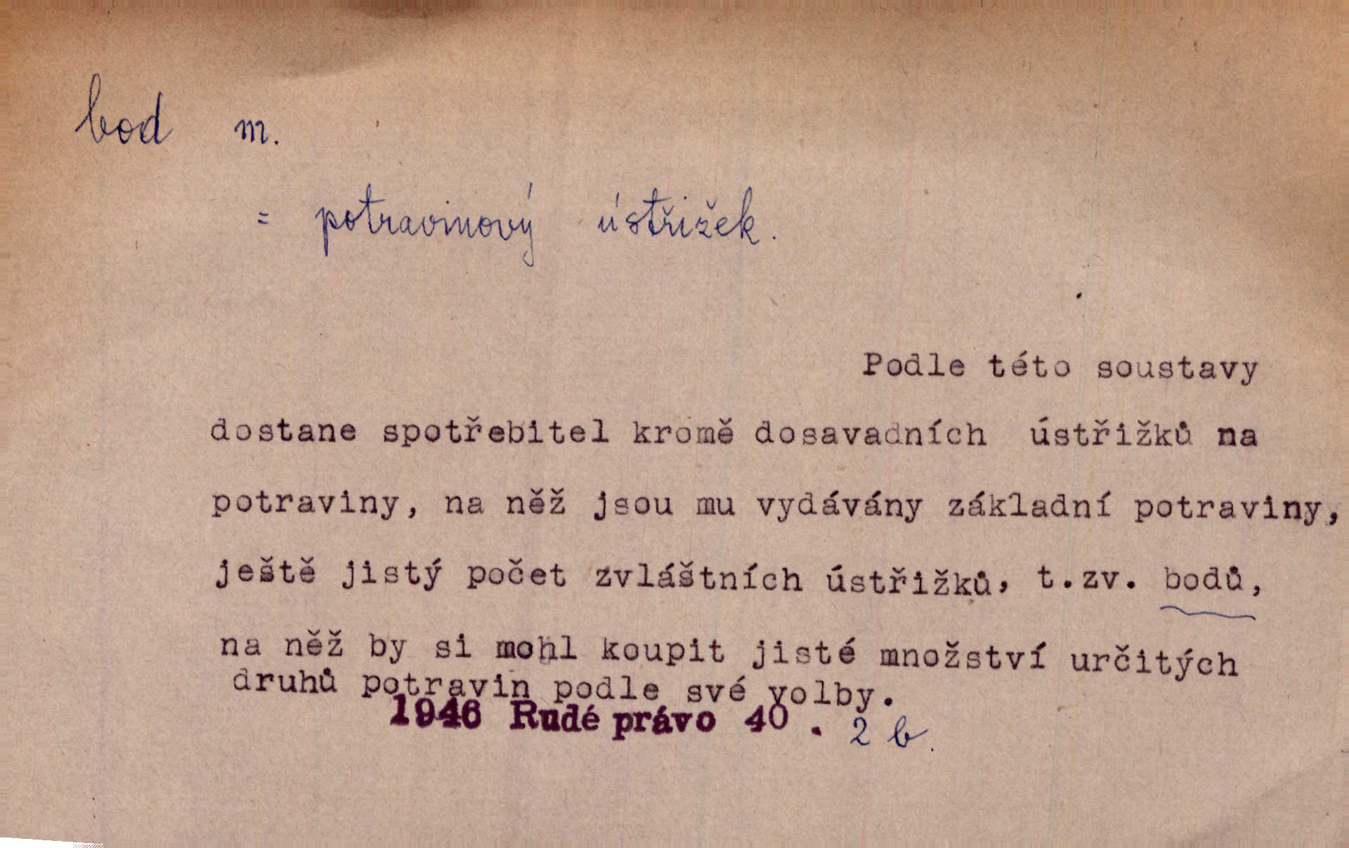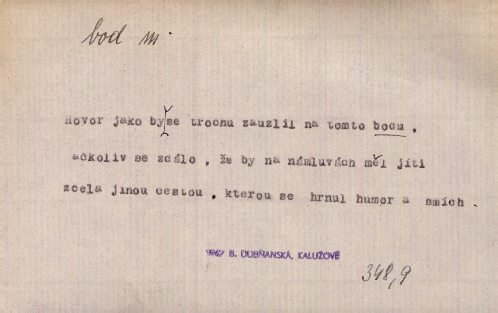 - bod, -u m. mat. nejjednodušší geometrický útvar, znázorňovaný tečkou, průsečíkem dvou čar a p., nejmenší místo v ploše, v prostoru. Astron. bod jarní a bod podzimní průsečíky dráhy sluneční a rovníku nebeského za jarní a podzimní rovnodennosti. Fys. bod tání, bod mrazu, bod tuhnutí hranice, mez, při níž taje látka tuhá n. tuhne kapalina; bod varu hranice, mez, při níž kapalina vře. Bod obratu kdy mechanismus mění smysl svého pohybu. Mrtvý bod přechodná nehybnost některé části mechanismu; přen. přechodné ustání nějakého děje. Dnes je naše i cizí hudba na mrtvém bodu. Smet. Obch. vývozní zlatový bod nejvyšší kurs devisy, nad kterým se vyplácí posílati do ciziny zlato. Dovozní zlatový bod nejnižší kurs, při kterém se vyplácí posílati zlato do ciziny. D tečka n. zcela nepatrná plocha jevící se jako tečka. Místo výkresu spatřil jsem na listech pouhé body a přímé čáry, jež jen tu a tam spojeny byly několika křivkami. Arb. Je klamem vaše písmo od počátku až do konce, až na poslední bod! Heyd. Zřím hory, nivy, zřídla jak temné čáry, města jako body. Vrch. Ondřej myslil, že posud lze rozeznati černý bod, o němž se domníval, že jest povozem. Zey. Sem tam kmitaly se zářivé body rudých světel. Jir. Filat. body na poštovních známkách, aby se znesnadnilo padělání. D malá část plochy, prostoru n. krajiny: malé místo n. místo vůbec. V jeden bod když velké upřeš oči, hned v touze k tobě vztahují se ruce. Vrch. Ostrov Bourbon je nejkrásnější bod Indického oceánu co do bujné vegetace tropické. Vrch. Sad barcelonský byl krásný sad či zahrada, spočívající na bohatých sloupech na nejvyšším bodu města. Vrch. Voj. opěrný bod místo v terénu, které je svými vlastnostmi za boje důležité; přen. Pro tento případ nemám ve svých theoriích nijakého opěrného bodu opory, pomoci. Vach. D Méně správně ve význ. část, oddíl, prvek něčeho. Nejskvělejší bod slavnosti. Čap. Ch. U tohoto bodu svých úvah pan rada vždycky vzdychl. Čap. Ch. Starosta mohutným hlasem vpadl a opakoval jednotlivé body debaty. Baar. Já se své strany připojím ke kritice svých předřečníků ještě body další a neméně důležité. Olb. D Přen. stránka, vlastnost něčeho. Vylíčili jsme si svá dětská léta a našli v nich mnoho styčných bodů. Mach. V životě mém málo světlých bodů radostných okamžiků, chvil. Holý. Veškerá jeho morálka balansovala na dvou bodech: na pravdomluvnosti a snaze dostáti danému slovu. Arb. Lehce se přehoupl přes to, co by v každém jiném manželství bylo nejchoulostivějším bodem. Vrch. D Sport. jednotka k měření úspěchu ve hře a zápase. Míti nejvíce bodů. Spočítati své body. Vyhráti (prohráti) na body (při boxu) (op. vyhráti knock out). D zasažení bodnou zbraní n. podobným nástrojem, bodnutí. Teď na sek a teď na bod meč svůj chystá. Vrch. Napřáhl kordík k smrtivému bodu. Třeb. Jako body pronikala slova její mé srdce. Bozd. Lék. vykonati bod punkci.