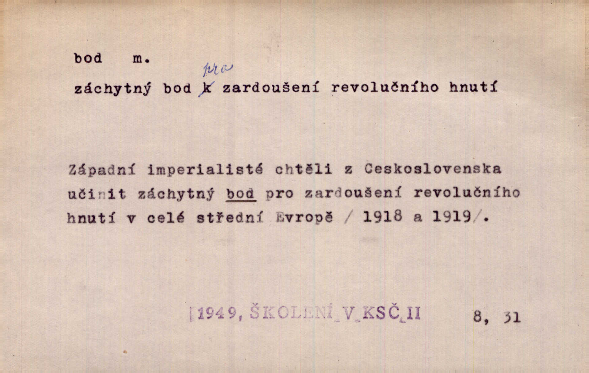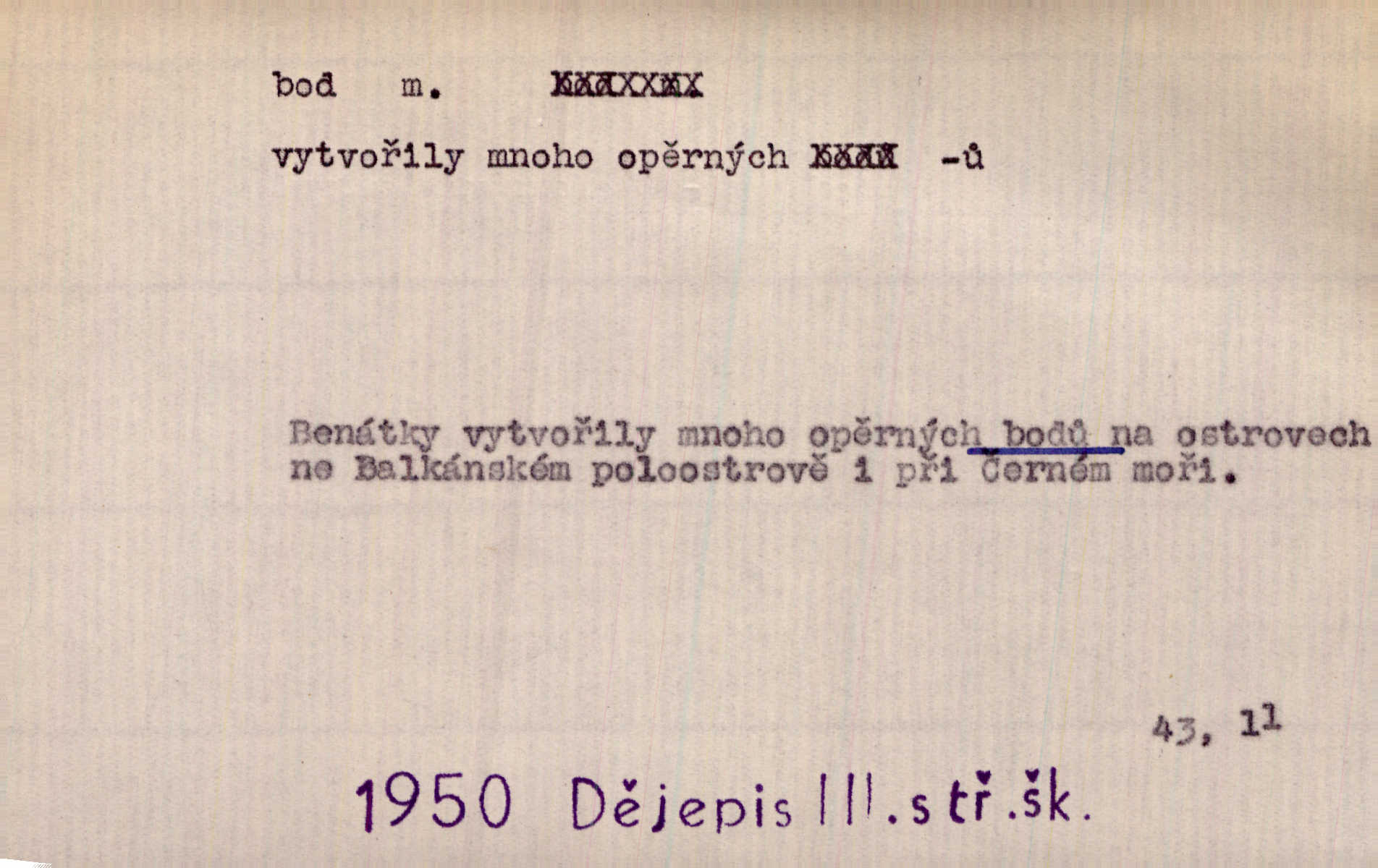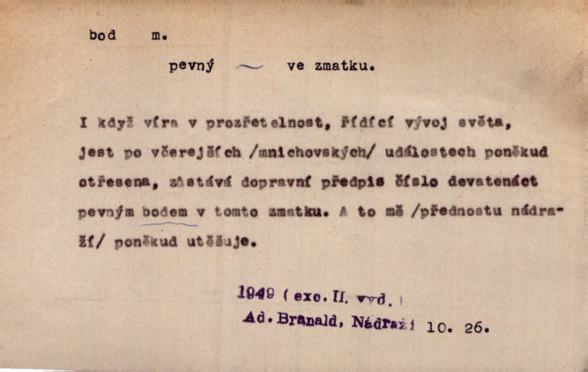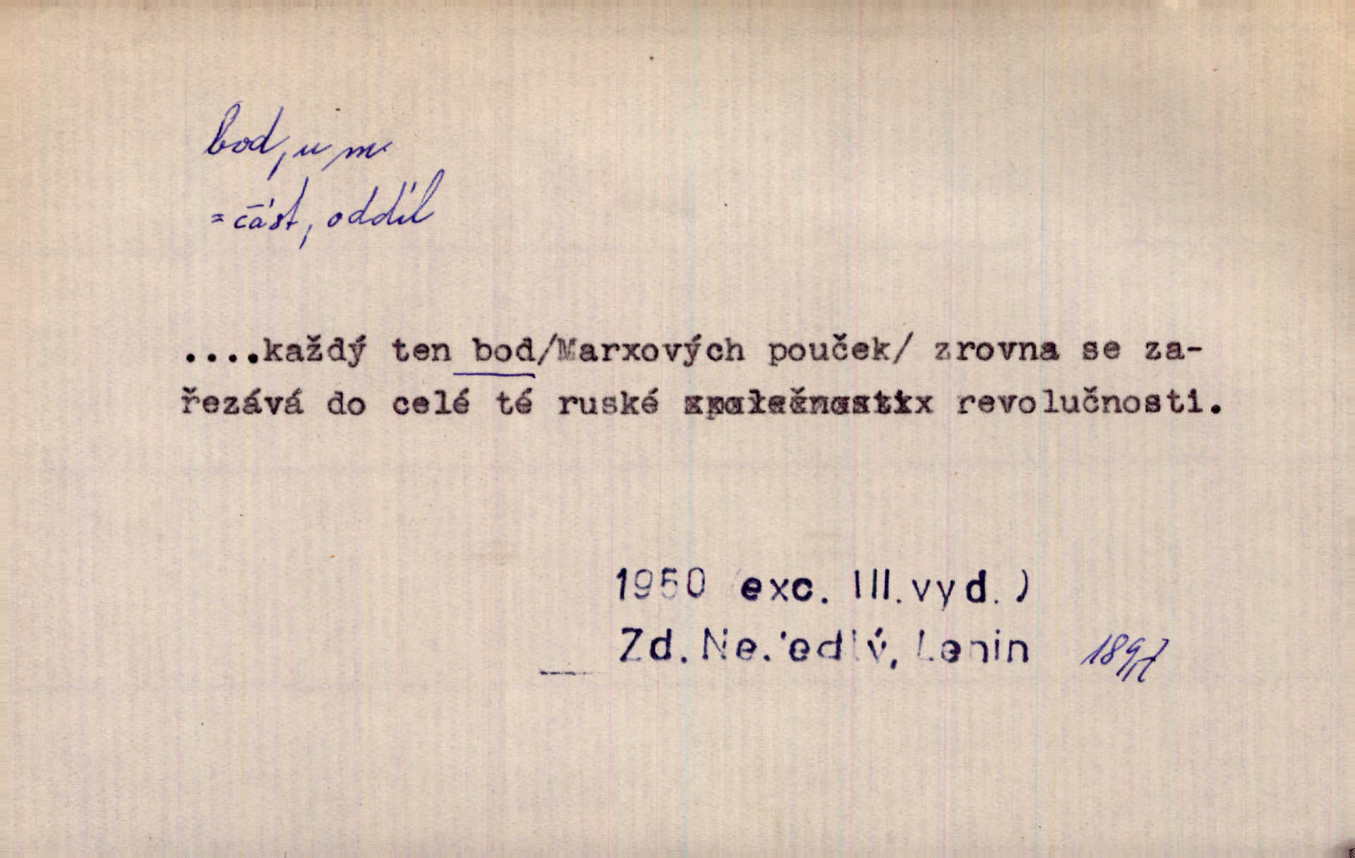 - bod, -u m. mat. nejjednodušší geometrický útvar, znázorňovaný tečkou, průsečíkem dvou čar a p., nejmenší místo v ploše, v prostoru. Astron. bod jarní a bod podzimní průsečíky dráhy sluneční a rovníku nebeského za jarní a podzimní rovnodennosti. Fys. bod tání, bod mrazu, bod tuhnutí hranice, mez, při níž taje látka tuhá n. tuhne kapalina; bod varu hranice, mez, při níž kapalina vře. Bod obratu kdy mechanismus mění smysl svého pohybu. Mrtvý bod přechodná nehybnost některé části mechanismu; přen. přechodné ustání nějakého děje. Dnes je naše i cizí hudba na mrtvém bodu. Smet. Obch. vývozní zlatový bod nejvyšší kurs devisy, nad kterým se vyplácí posílati do ciziny zlato. Dovozní zlatový bod nejnižší kurs, při kterém se vyplácí posílati zlato do ciziny. D tečka n. zcela nepatrná plocha jevící se jako tečka. Místo výkresu spatřil jsem na listech pouhé body a přímé čáry, jež jen tu a tam spojeny byly několika křivkami. Arb. Je klamem vaše písmo od počátku až do konce, až na poslední bod! Heyd. Zřím hory, nivy, zřídla jak temné čáry, města jako body. Vrch. Ondřej myslil, že posud lze rozeznati černý bod, o němž se domníval, že jest povozem. Zey. Sem tam kmitaly se zářivé body rudých světel. Jir. Filat. body na poštovních známkách, aby se znesnadnilo padělání. D malá část plochy, prostoru n. krajiny: malé místo n. místo vůbec. V jeden bod když velké upřeš oči, hned v touze k tobě vztahují se ruce. Vrch. Ostrov Bourbon je nejkrásnější bod Indického oceánu co do bujné vegetace tropické. Vrch. Sad barcelonský byl krásný sad či zahrada, spočívající na bohatých sloupech na nejvyšším bodu města. Vrch. Voj. opěrný bod místo v terénu, které je svými vlastnostmi za boje důležité; přen. Pro tento případ nemám ve svých theoriích nijakého opěrného bodu opory, pomoci. Vach. D Méně správně ve význ. část, oddíl, prvek něčeho. Nejskvělejší bod slavnosti. Čap. Ch. U tohoto bodu svých úvah pan rada vždycky vzdychl. Čap. Ch. Starosta mohutným hlasem vpadl a opakoval jednotlivé body debaty. Baar. Já se své strany připojím ke kritice svých předřečníků ještě body další a neméně důležité. Olb. D Přen. stránka, vlastnost něčeho. Vylíčili jsme si svá dětská léta a našli v nich mnoho styčných bodů. Mach. V životě mém málo světlých bodů radostných okamžiků, chvil. Holý. Veškerá jeho morálka balansovala na dvou bodech: na pravdomluvnosti a snaze dostáti danému slovu. Arb. Lehce se přehoupl přes to, co by v každém jiném manželství bylo nejchoulostivějším bodem. Vrch. D Sport. jednotka k měření úspěchu ve hře a zápase. Míti nejvíce bodů. Spočítati své body. Vyhráti (prohráti) na body (při boxu) (op. vyhráti knock out). D zasažení bodnou zbraní n. podobným nástrojem, bodnutí. Teď na sek a teď na bod meč svůj chystá. Vrch. Napřáhl kordík k smrtivému bodu. Třeb. Jako body pronikala slova její mé srdce. Bozd. Lék. vykonati bod punkci.