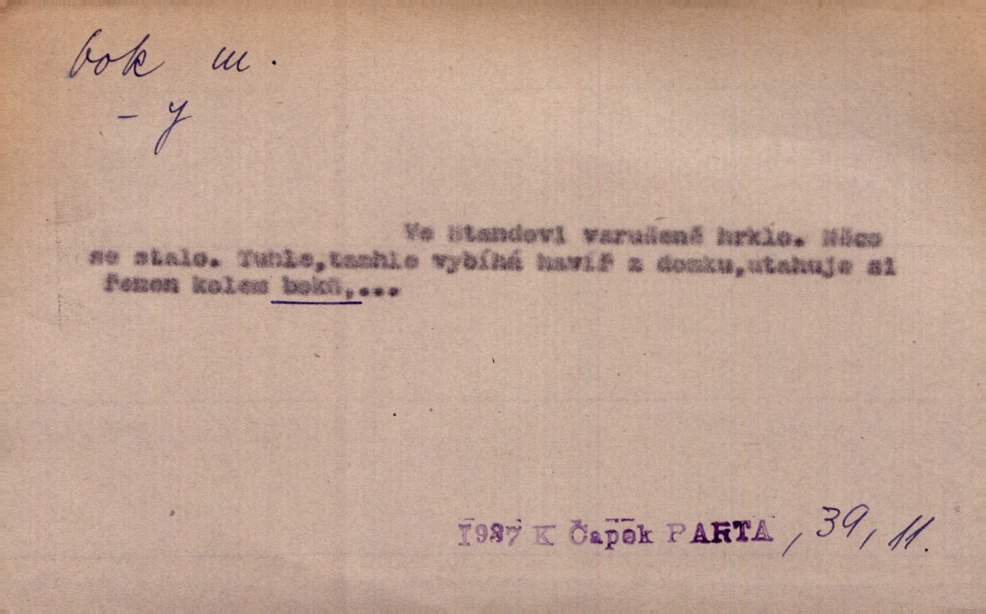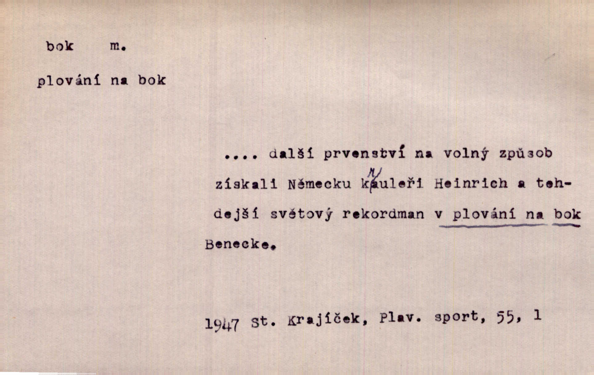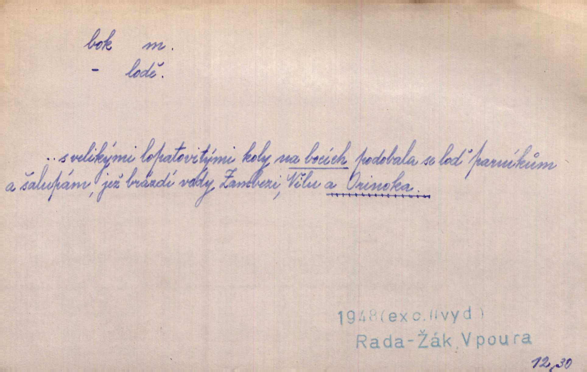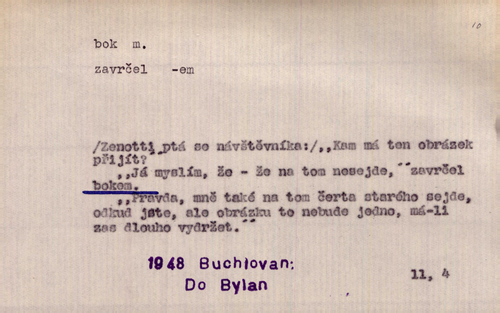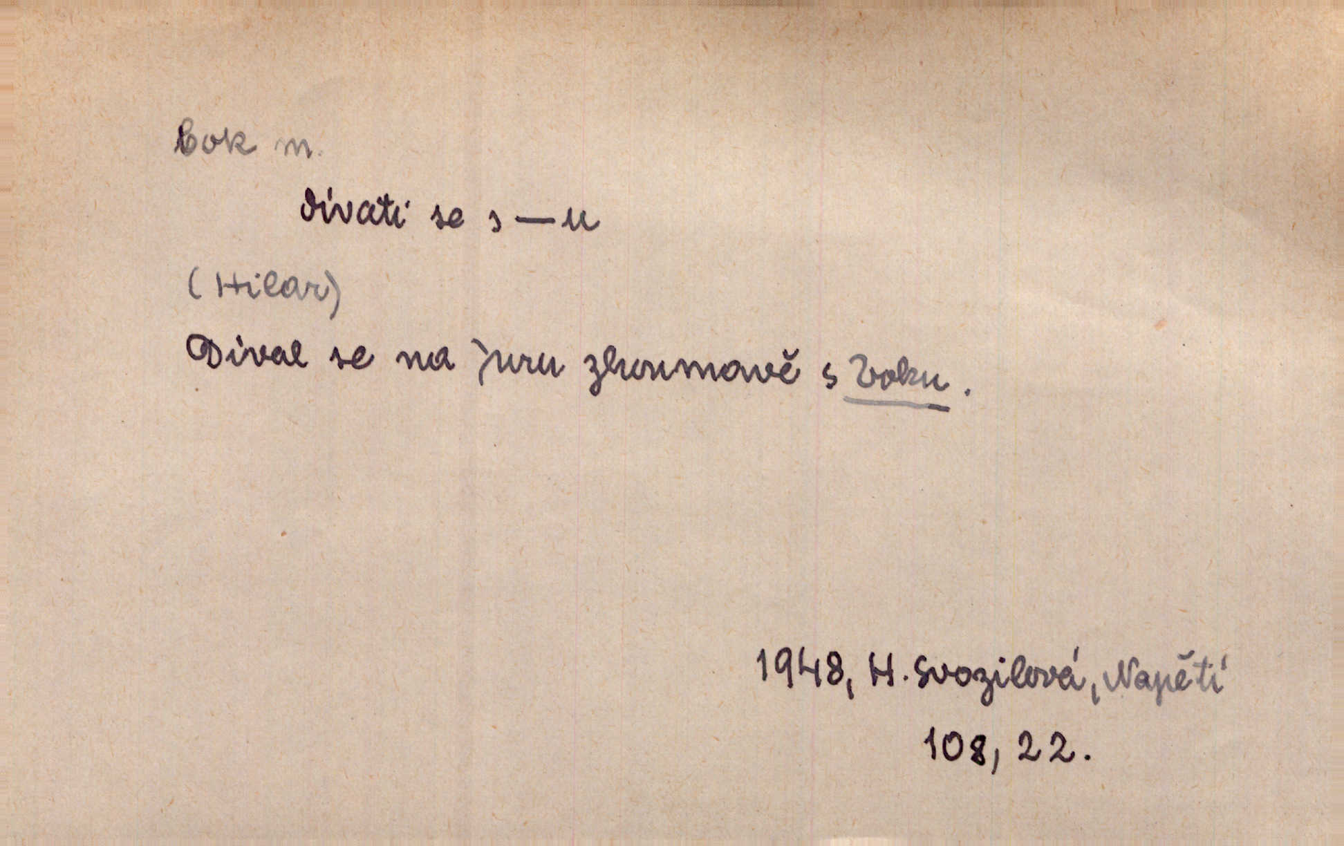 - bok, -u m. postranní část těla omezená obloukem žeber a hřebenem kyčle. Olšovský objal dívku okolo boků. Pfleg. Koňům od udidel i s boků prchala bílá pěna. Jir. Měla na sobě šaty modré, kolem boku spjaté atlasovým pasem. V. Mrš. Po boku se mu houpal kordík. Svět. Míti píchání v boku, lehnouti si na bok, podepříti si boky, založiti ruce v boky, obraceti se s boku na bok. Smál se, až se za boky bral. Plování na bok. Bok po boku těsně vedle sebe. Po boku, po bok vedle, ve společnosti, ve společenství, ve spojitosti a j. Dáma po boku štíhlého jonáka. Mácha. Rytířovi po boku mnich used’ v loubí stinném. Vrch. Postavil se jí po bok. Jir. Trávila věk svůj po boku muže chorobného. Svět. Jen krása vše tu měří, jíž pravda v boku jde. Vrch. Státi komu po boku pomáhati. Čechové i Moravané stáli sobě věrně po boku. Pal. Když poznala hořkost osudu, tu stála jí matka po boku s posilou a radou. Podl. Stavěti po bok na roveň stavěti. Básník, jemuž z nyní žijících nikoho po bok stavěti nemůžeme. Neb. Národ náš důstojně postaviti se mohl po bok národům jiným. Šmil. S boku, z boku, bokem stranou, šikmo, přen. úkosem. Strojil se s boku na hosta parohem udeřiti. Hol. Pošilhávala naň s boku. Staš. Krabi bokem utíkali do vody. Maj. Helena bokem hleděla před sebe. V. Mrš. Nepravím slov křivých v ucho, nechyl hlavy, nehleď bokem, nerdi se mi, ty děvucho! Bezr. Dítě z levého boku nemanželské. D strana, postranní stěna nějakého předmětu (op. předek, fronta). Již lze zříti lichoběžné boky a pestrá nároží předměstských domů. Vanč. Po boku povozu šel párek manželů. Rais. Boky lodi, klenby. Voj. těl. vpravo v bok, vlevo v bok! otoč se vpravo, vlevo. Bok vojska. Krýti bok, napadnouti s boku. Odkrytý bok. Rozvinouti v bok. D Geogr. úbočí, svah, stráň. Šerá hora Kunětická v rovině rozkládala rozdrásané boky. Rais. Boky úzkého údolí byly zarostlejší. Jir. Jako ostrov v zeleném moři, jehož boky vzedmuté vlny ještě polévají, tak tu stojí fara až po pás porostlá vínem. Baar.