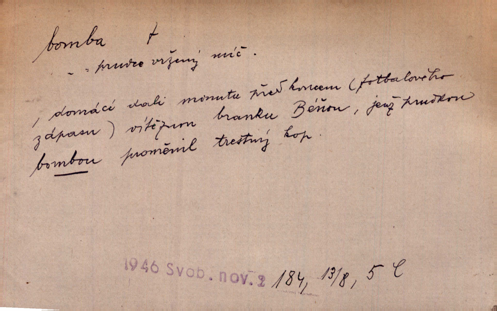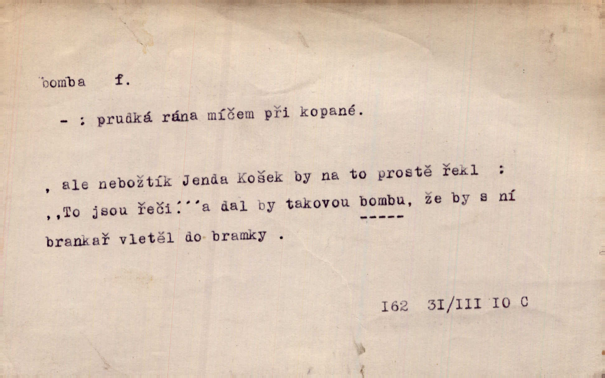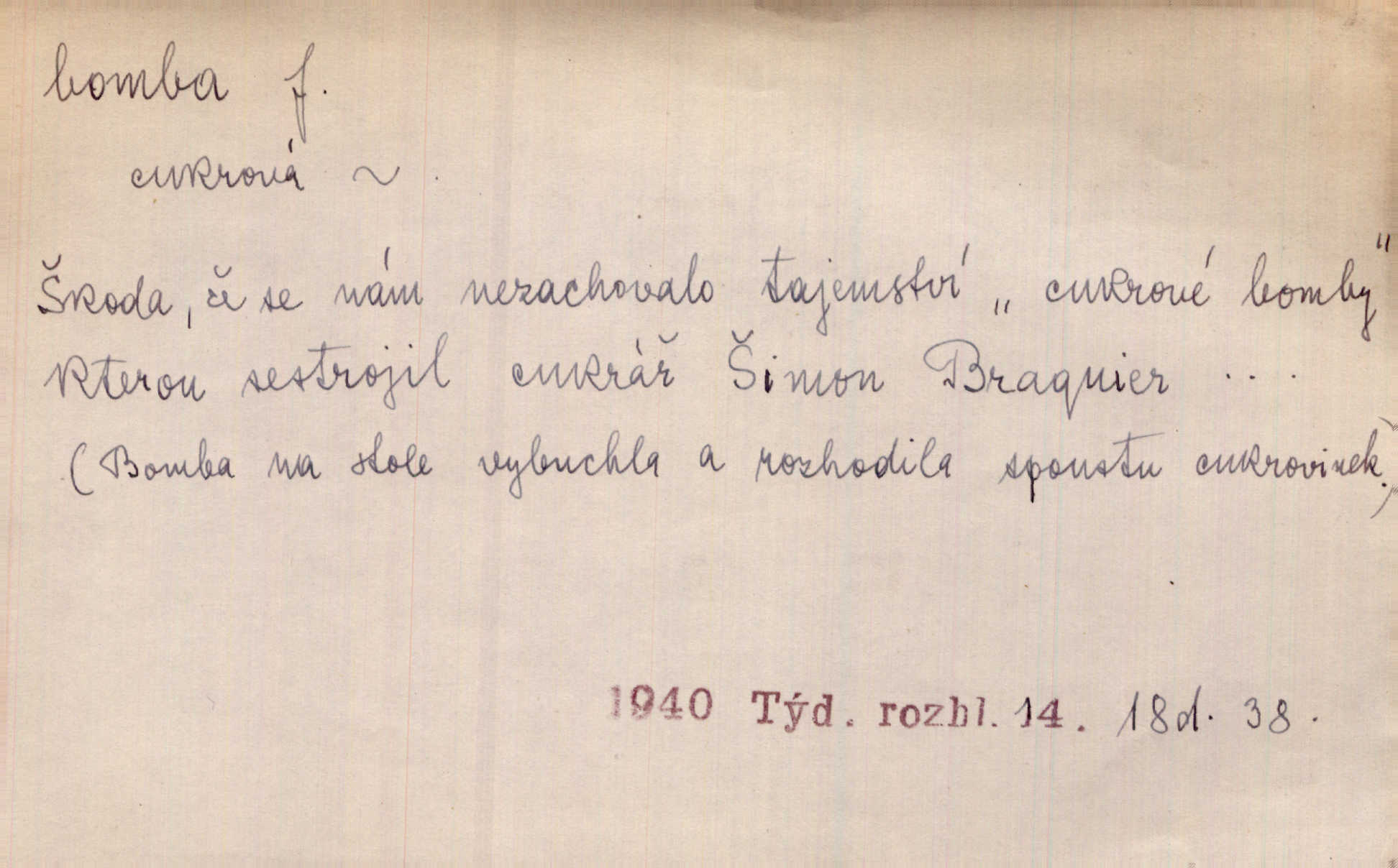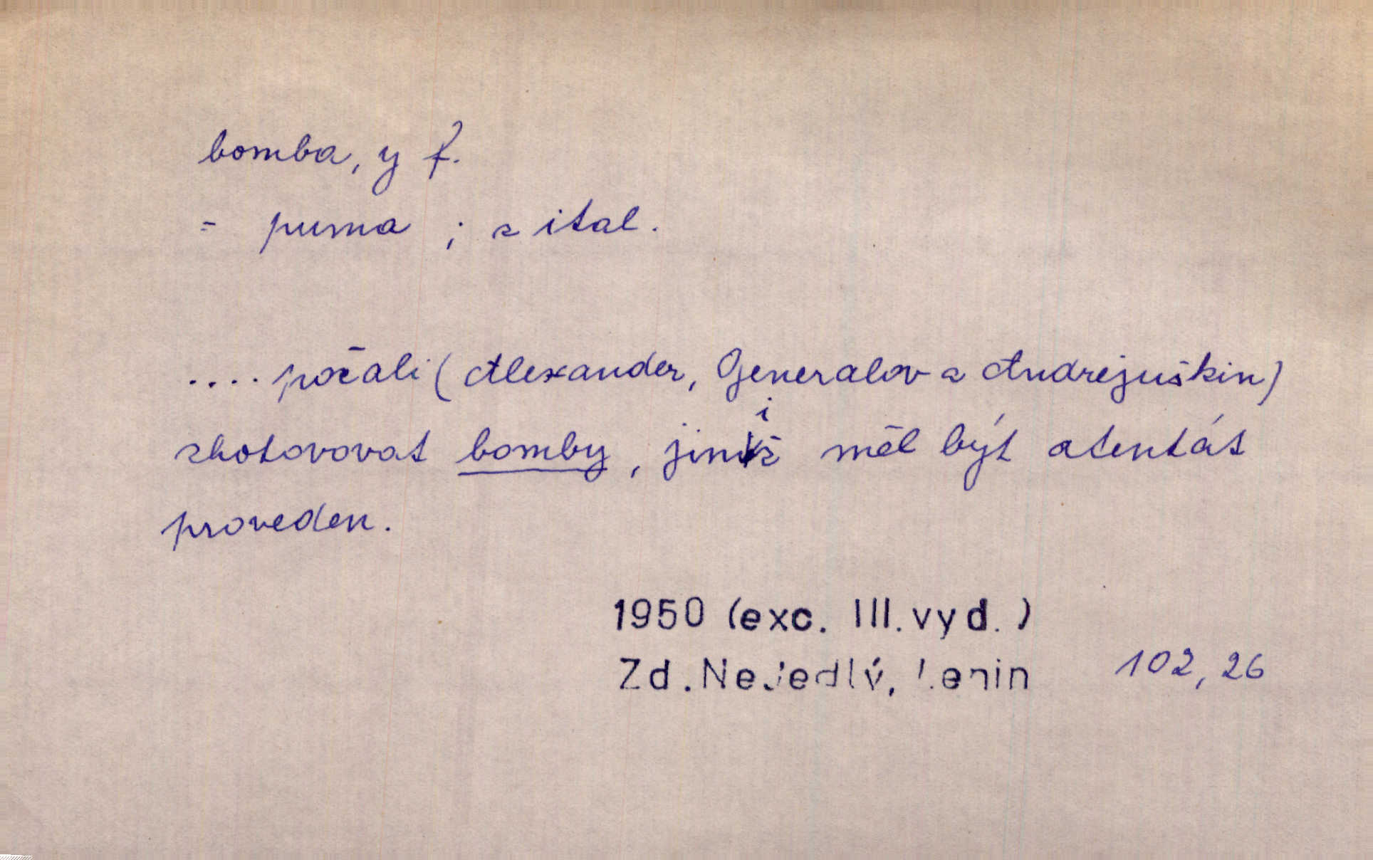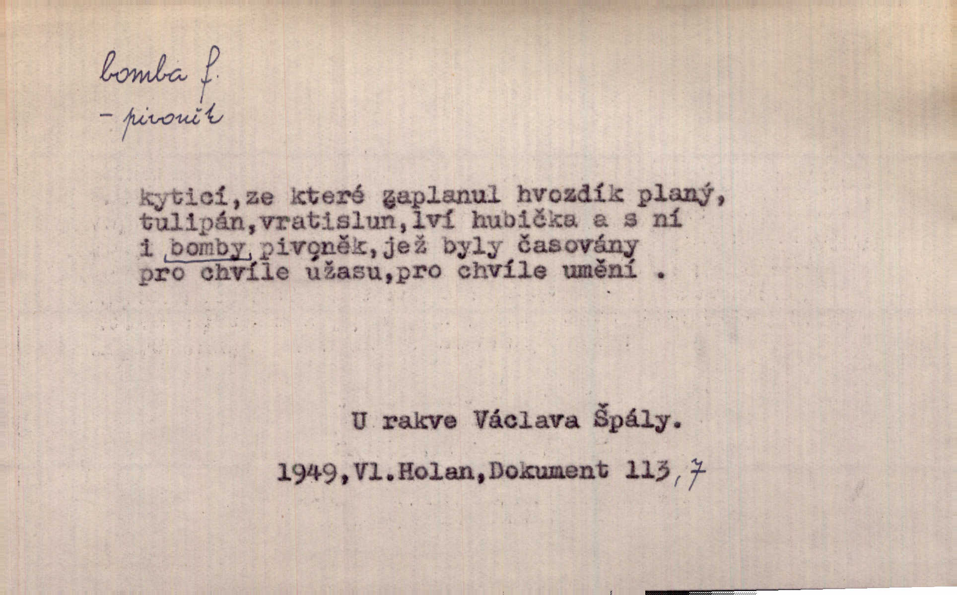 - bomba, -y f. výbušná koule, puma. Kdyby byla praskla bomba uprostřed náměstí, nemohly býti Zubřany překvapeny více. Vrba. Letecká bomba. D kovová nádoba na plyny. Bomba kyslíku. D Kuch. zmrzlina mražená v kulovitém tvořítku.