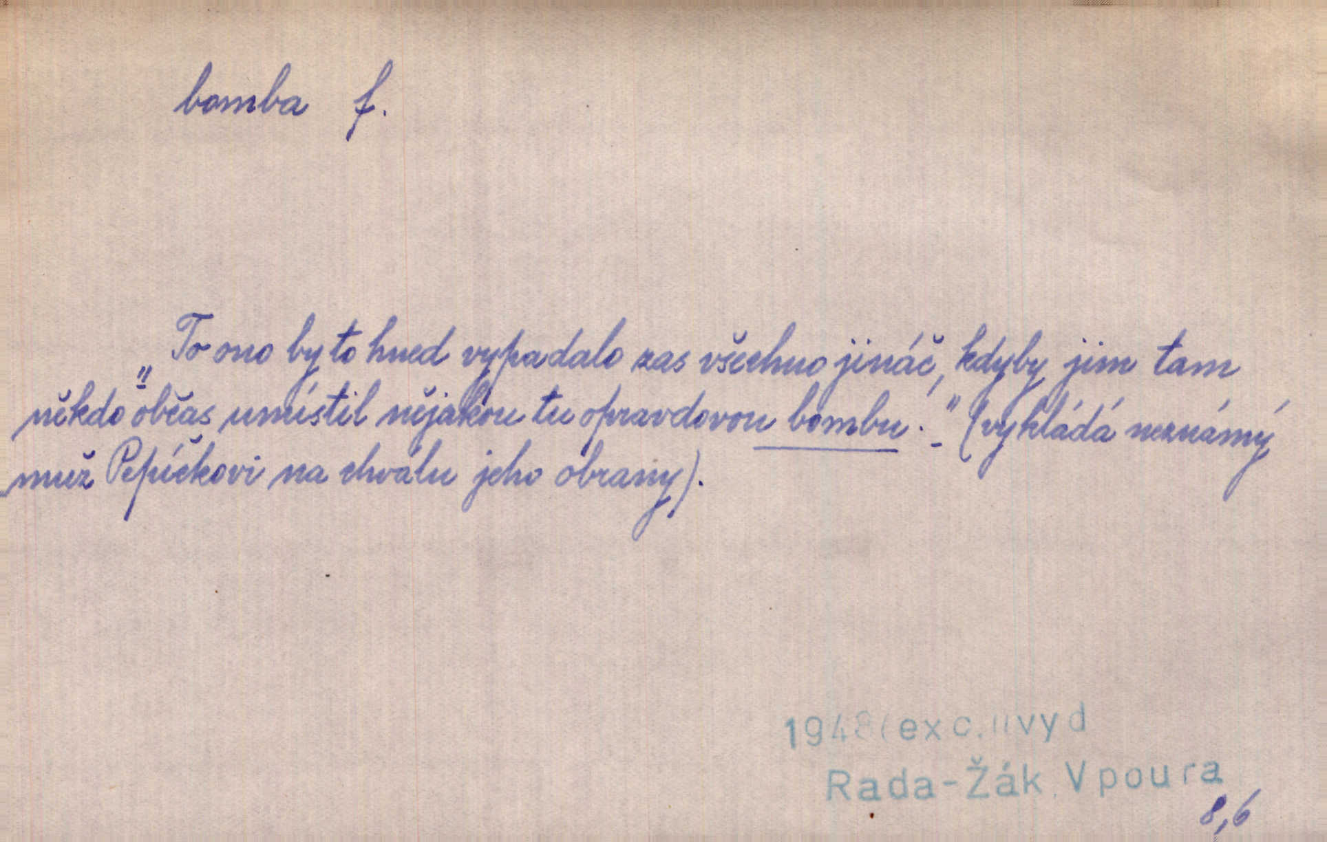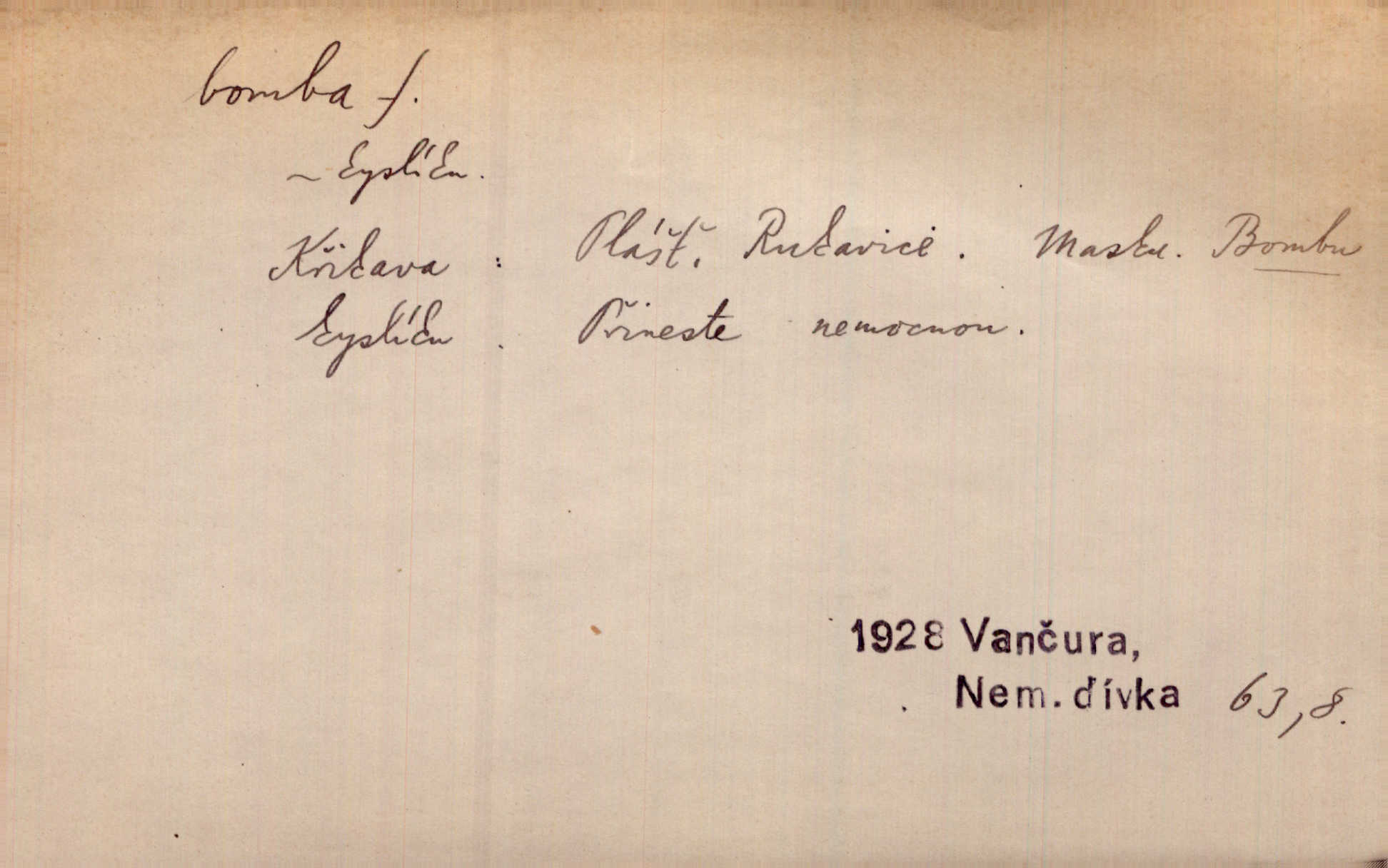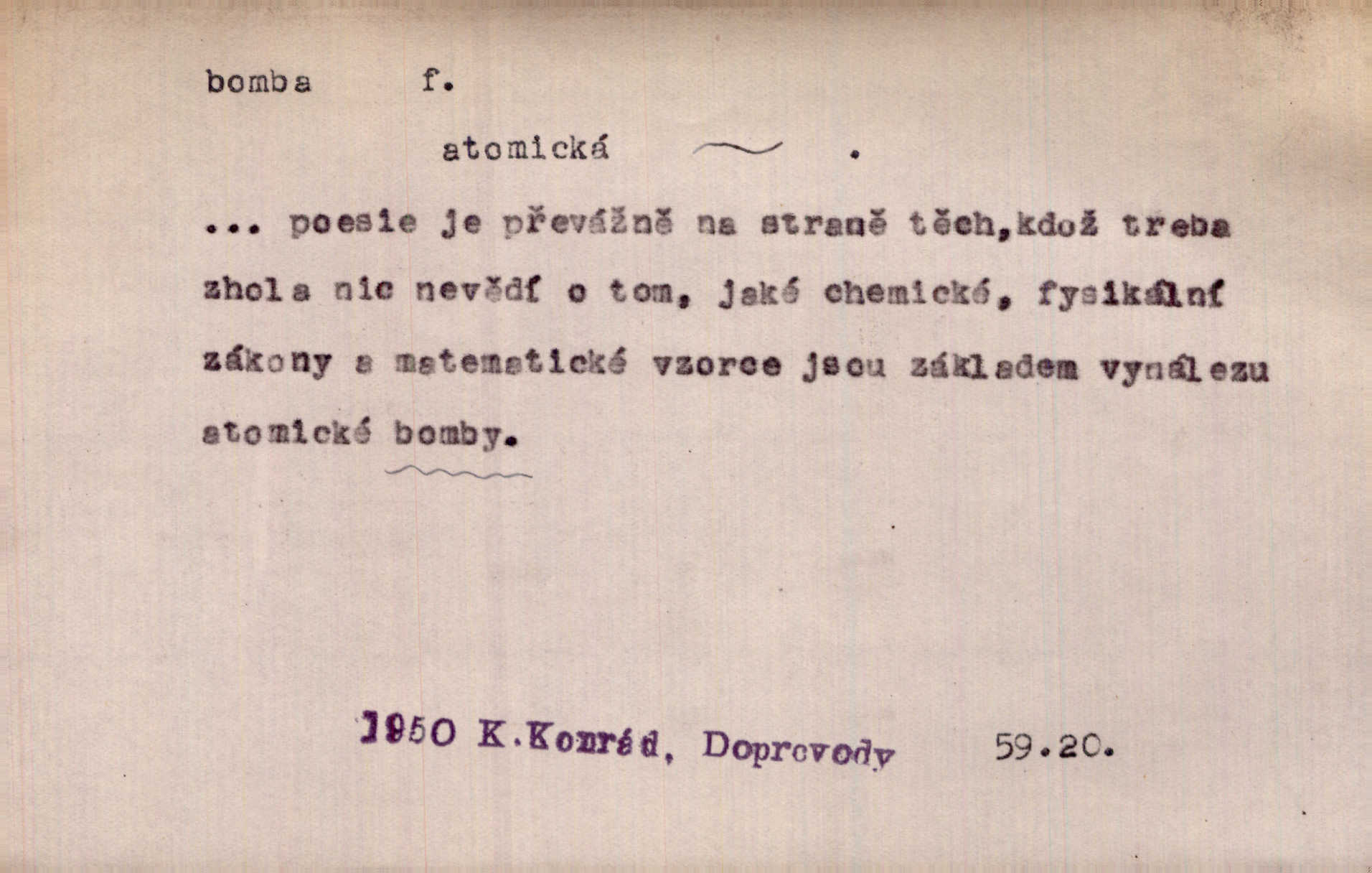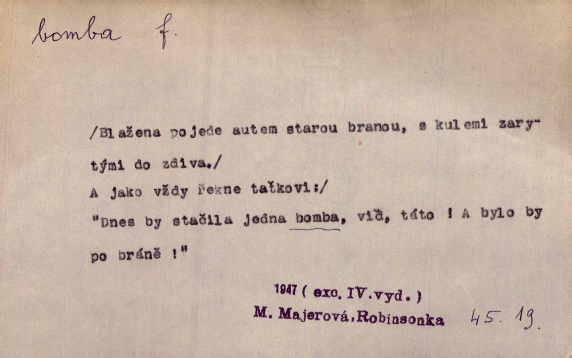 - bomba, -y f. výbušná koule, puma. Kdyby byla praskla bomba uprostřed náměstí, nemohly býti Zubřany překvapeny více. Vrba. Letecká bomba. D kovová nádoba na plyny. Bomba kyslíku. D Kuch. zmrzlina mražená v kulovitém tvořítku.