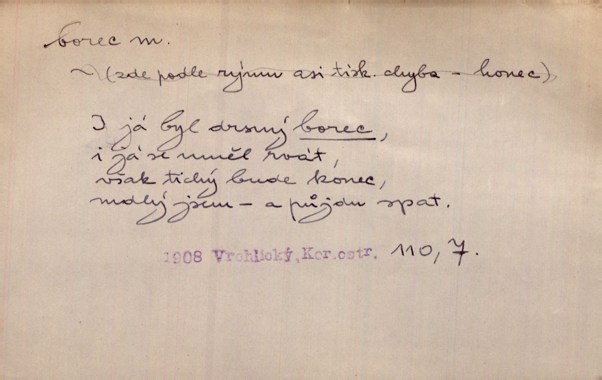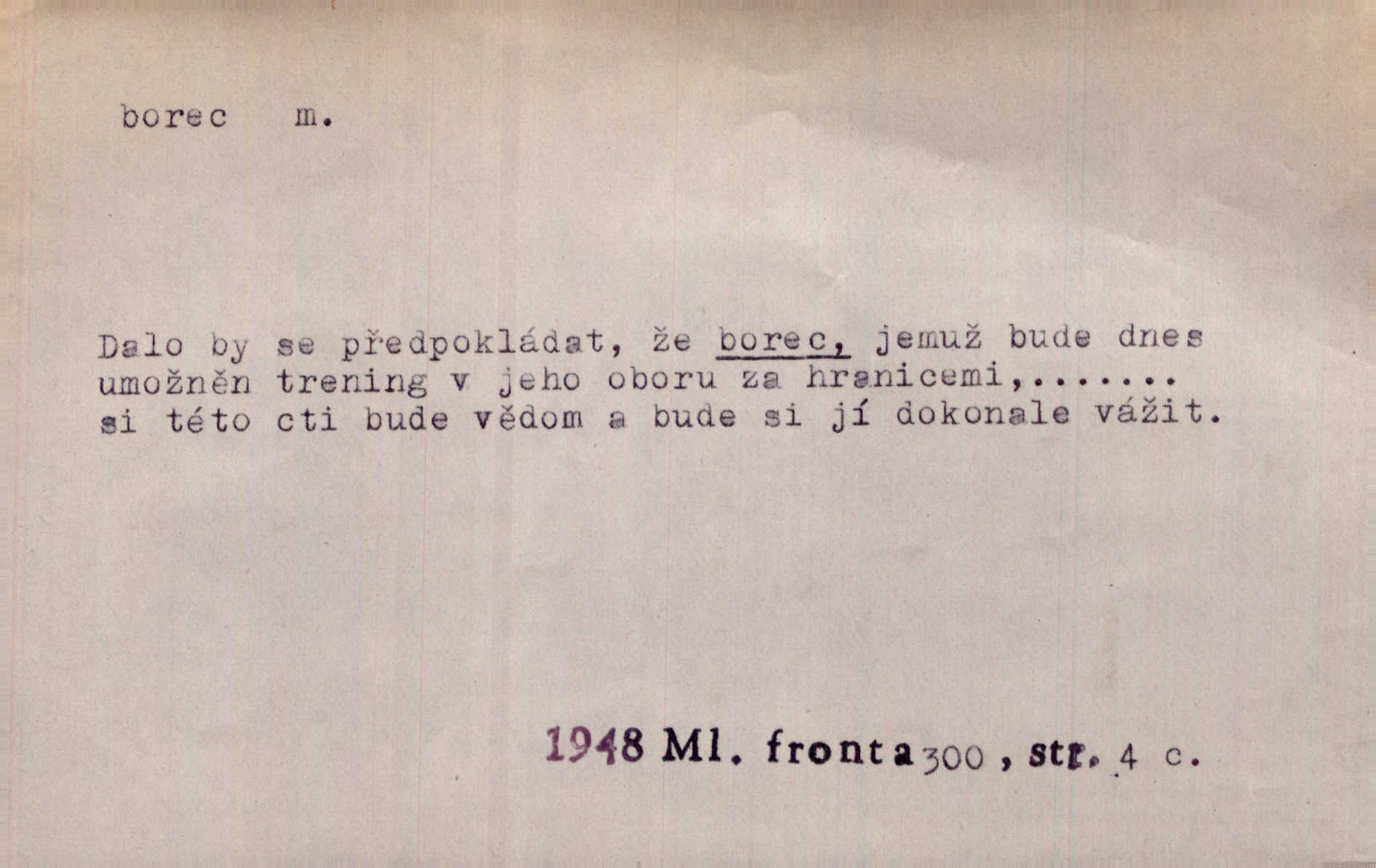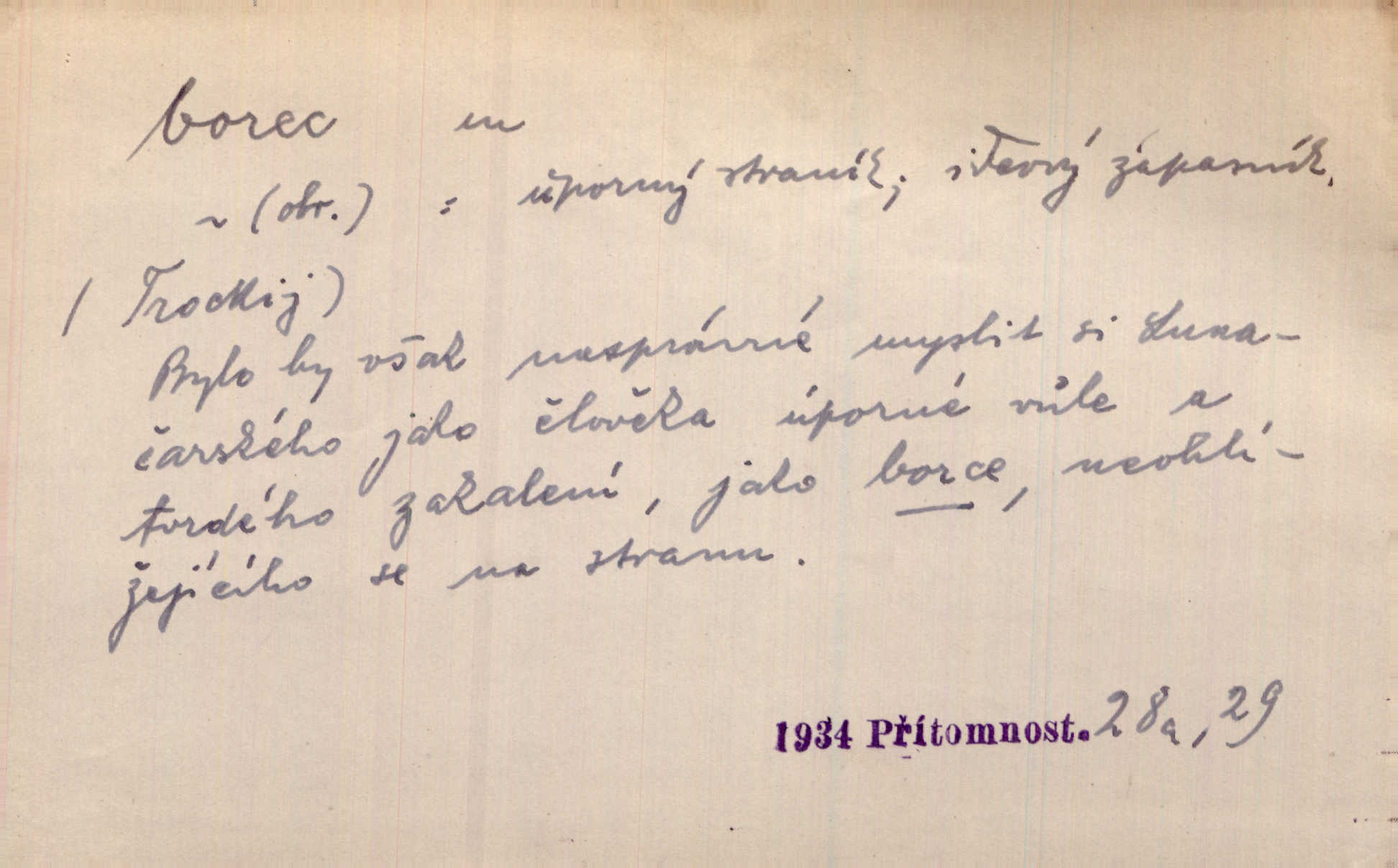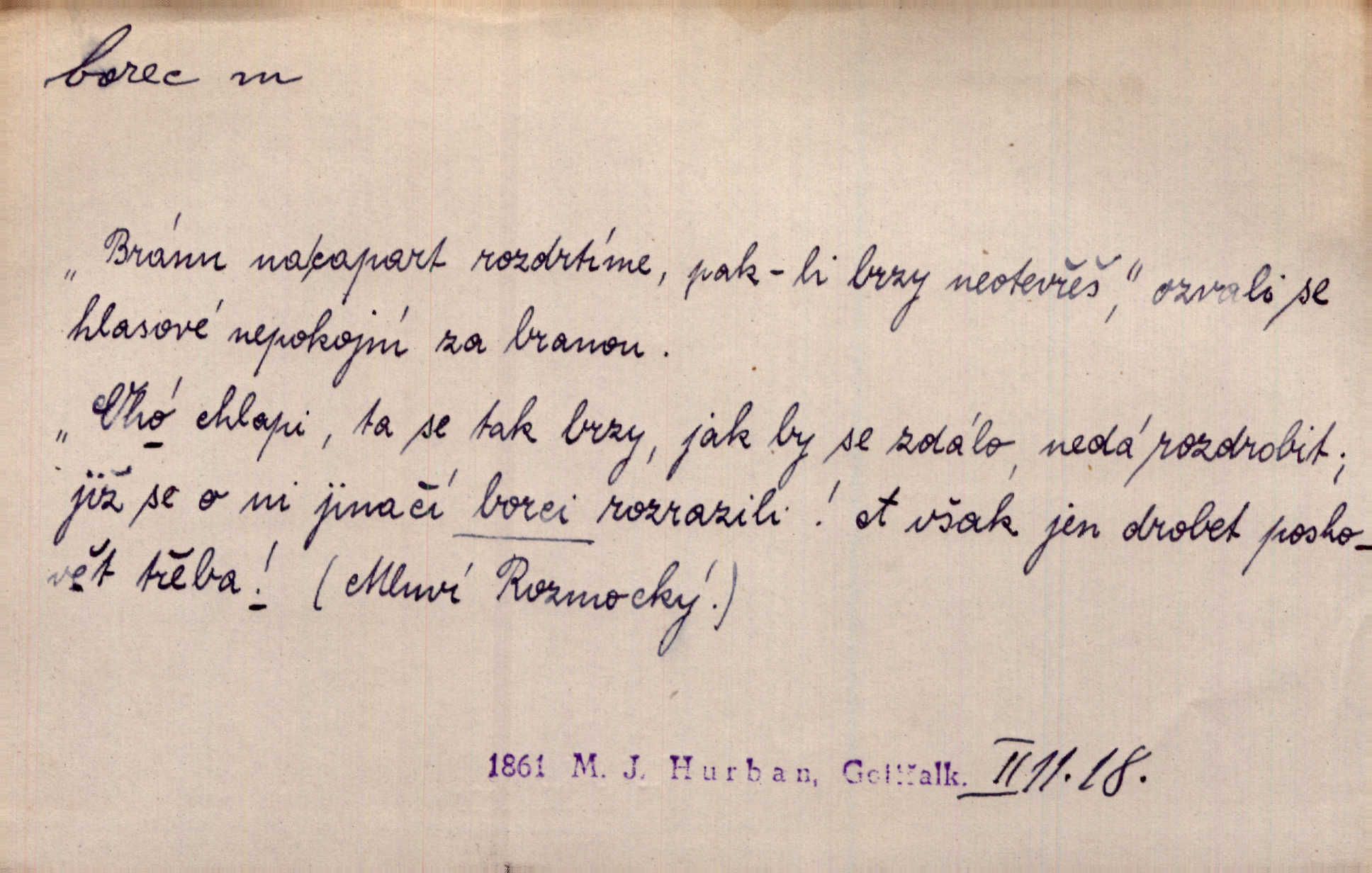 - borec, -rce m. zápasník, pěstitel tělocviku. Tak na světě bývá, že teprve druzí se pevnou nohou postaví, kde první borec padl. Staš. Celé snažení „borců“ jest, aby jeden druhého do žeber pod paží udeřil pěstních zápasníků. Havl.