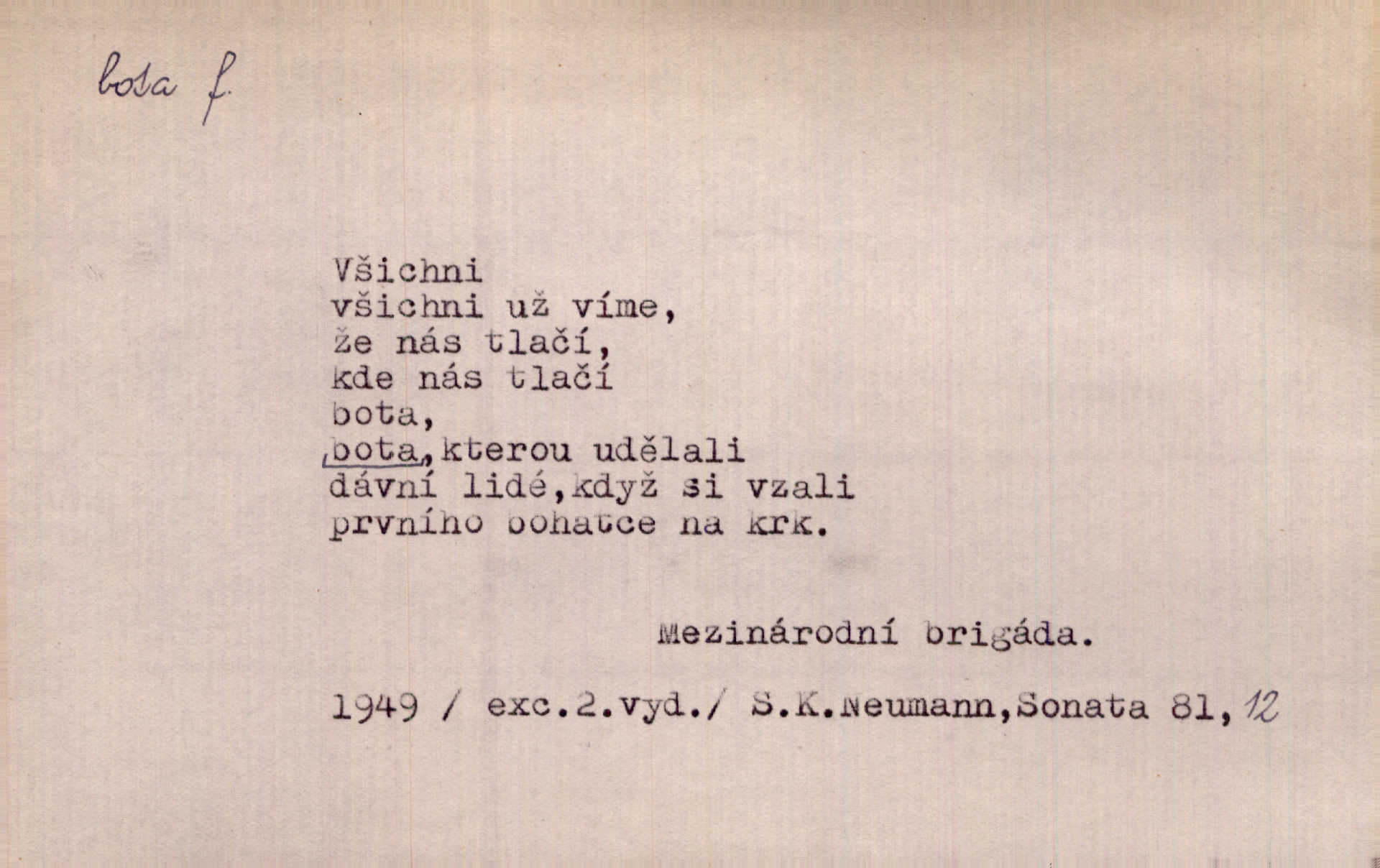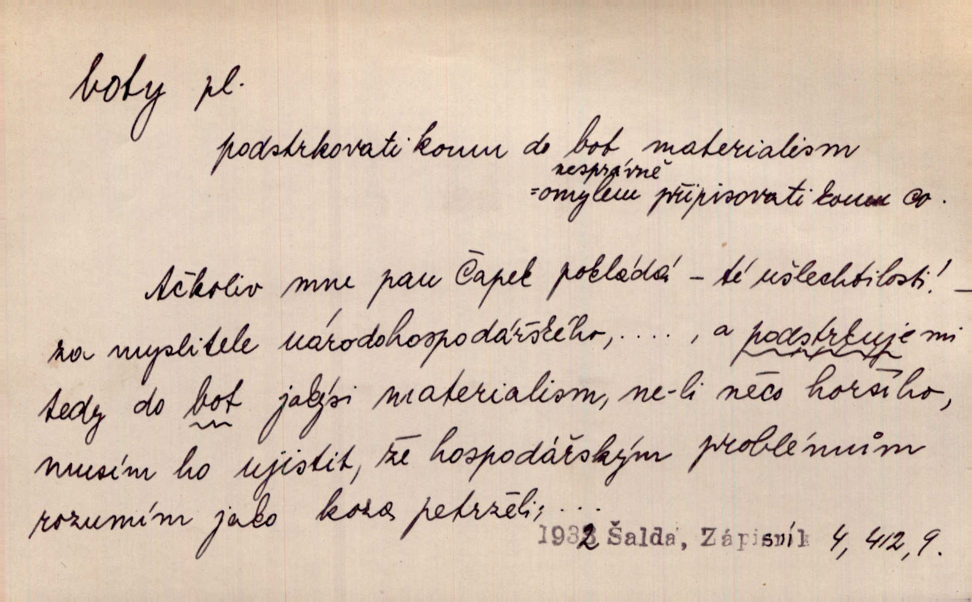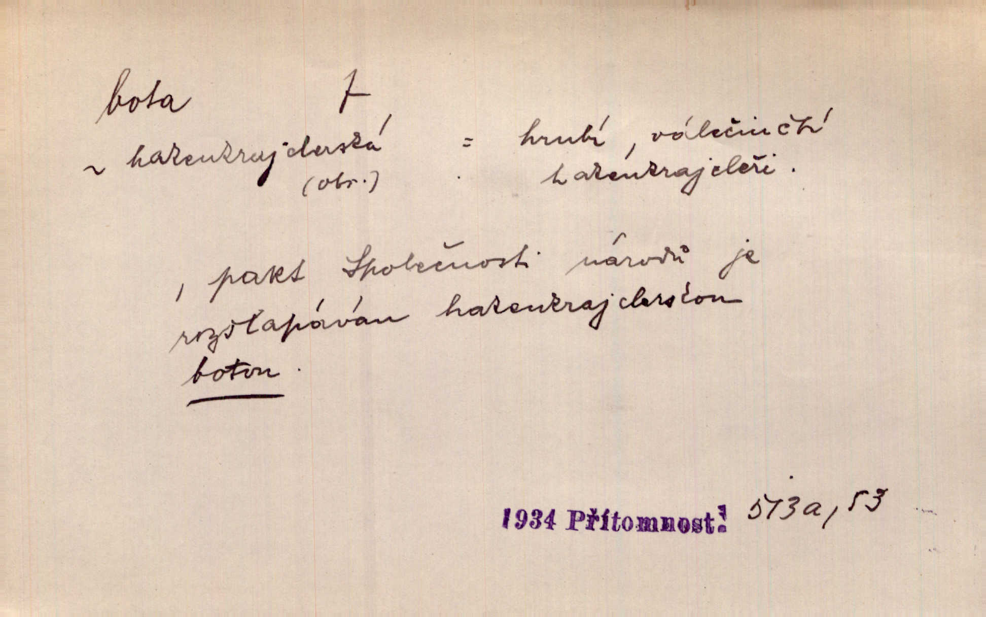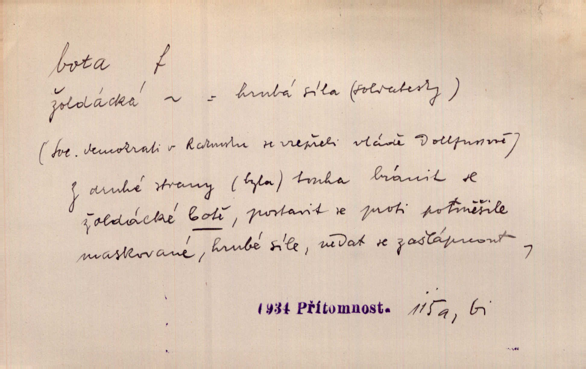 - bota, -y f. kožená obuv. Jen když já mám zdravé nohy, k tomu dobré boty. Čel. Boty (si) obouvati, zouvati, přezouvati. Boty podraziti, podrážeti. Nakuřoval pěnovku pak po dvacet let, až byla černá jako bota. Ner. Hloupé je to jako farářovy boty a otíralo by se to o medicinu. Šal. „Frantíku, botu si nedáš?“ pobízel přes stůl kontrolor nádoba na pivo v podobě boty. Šlej. Kuchyňka vážně rozehnal boty po zmrzlých hroudách dal se do rychlé chůze. A. Mrš. Tak jste pak boty v kole netrhal netancoval mnoho. Jir. Maicnerovi věřili, že v botách nevleze do vody neudělá nic neprozřetelného, nedá se napálit. Herb. V Páchlíčkovi hrklo a srdce mu spadlo do boty pozbyl odvahy. Čap. Ch. Hale huž tě teky do svých bot obouli převedli tě na svou stranu. Něm. „Neseděly mu [nakladateli] pevně ty boty, abych řekl obrazně nebyl dobrý nakladatel. Herrm. Nyní je ten Mates, kterému čouhá sláma z bot, panem kancelářským na němž je znáti selský původ. Herb. Sláma mi z každé boty kouká. Rais. Není-li ochoten shoditi k vůli tobě selskou halenu a vyhodit z bot slámu, neber si ho zanechati sedlačiny. Staš. My každý cítíme, že nás bota tlačí a kde nás tlačí máme obtíže. Mas. Každý nejlépe ví, kde ho bota skřípá. Svět. Byly nám kolikrát boty moc ouzké bylo nám zle. Šim. Pan Jirát žil a veselil se stále jako dříve, jako by ani necítil, že se mu boty ouží hrozí mu pohroma. Šim. Pokročiti sedmimílovými (mílovými) botami, míti mílové boty a p. pokračovati velmi rychle. Prásknouti do bot hum. utéci. Teče mu voda do bot je mu zle. Lid. vyndati někomu boty vyhoditi někoho, propustiti ze služby. Což pak ti u Markyty vyndali boty? vypověděli tě z práce. Herrm. Lid. znát někoho jako své boty dokonale. Totě do boty litý Němec, ten Meklenburák kovaný Němec. Jir. D španělské boty druh mučidel. Do krajzlů a španělských bot kacíře zlé svírá. Vrch. D označuje věc n. osobu, jejíž hodnotu snižujeme. Poznal, že je to [písnička] stará bota, naražená na nové kopyto. Hol. Nikdo neříkej, že ta báseň nemá obsahu, neboť bys říkal velikou botu hloupost, nesmysl. Šal. Což nepromluvíte, strýče? Jste opravdu ta bota, za kterou jste vyhlášen daleko široko? bázlivec a p. Klost. D Fys. trubice nad ssací troubou u pumpy na zdviž.