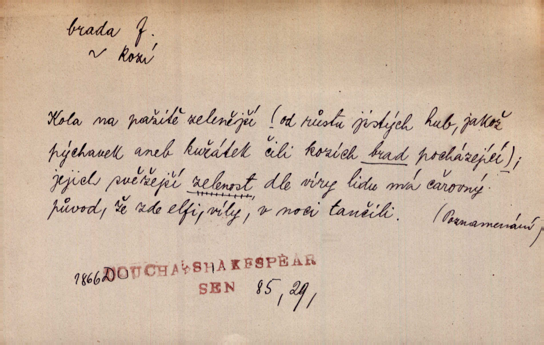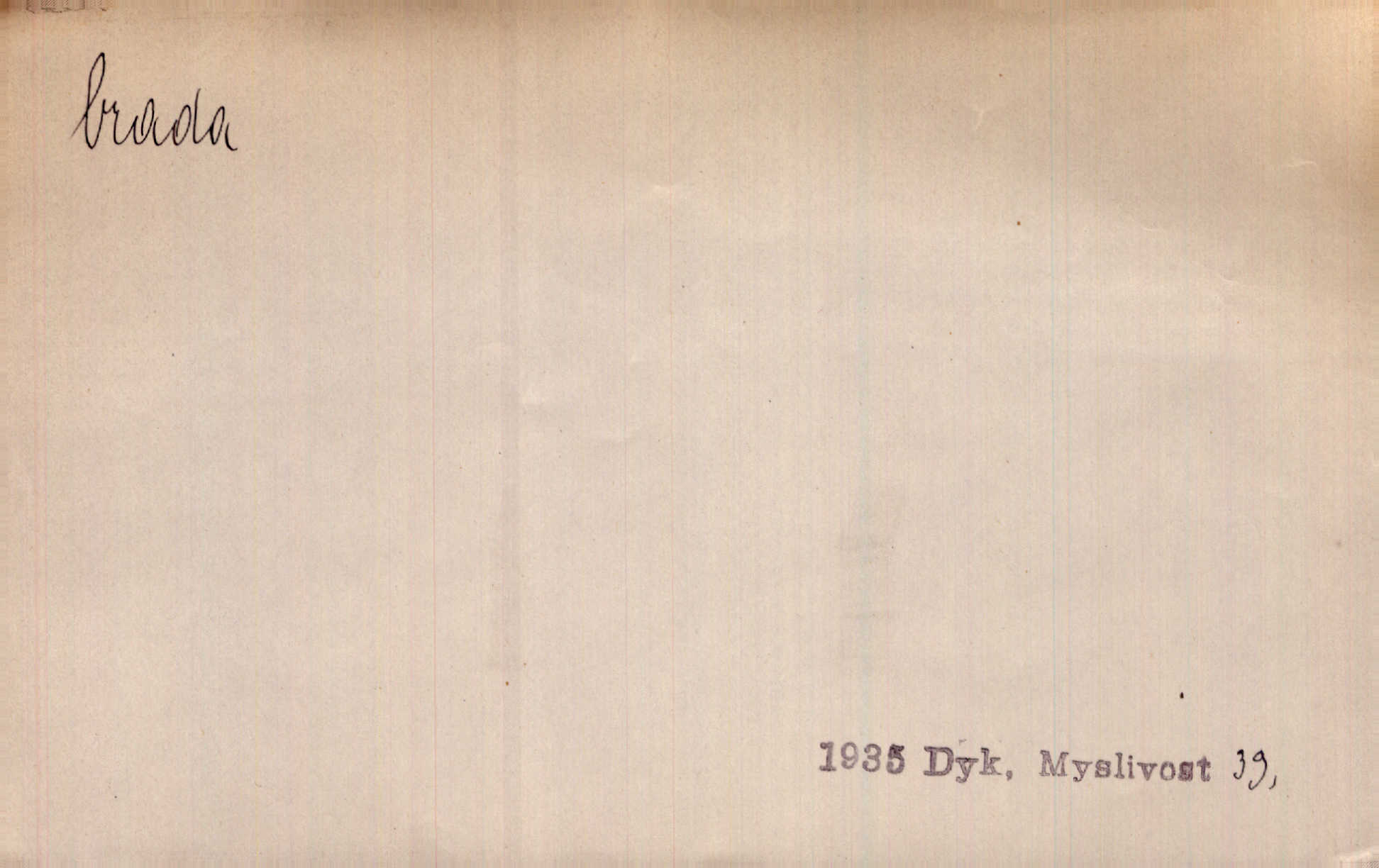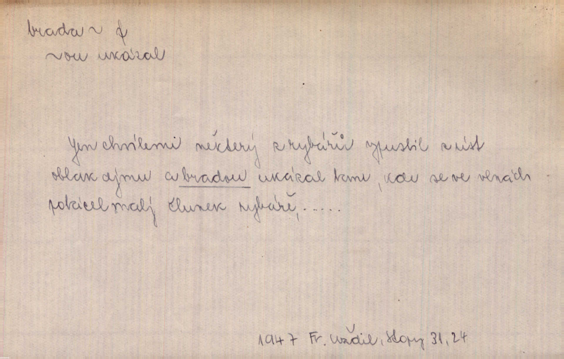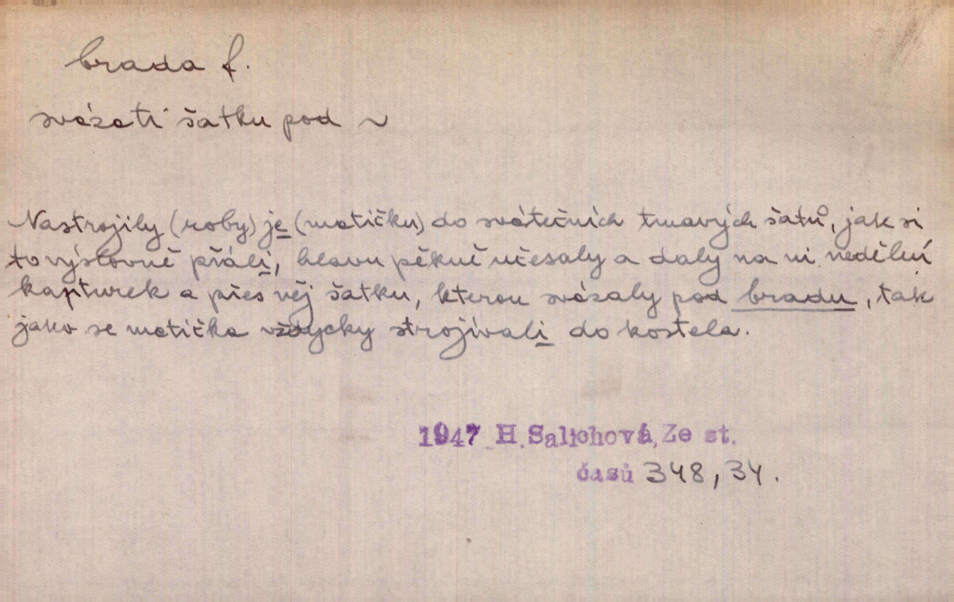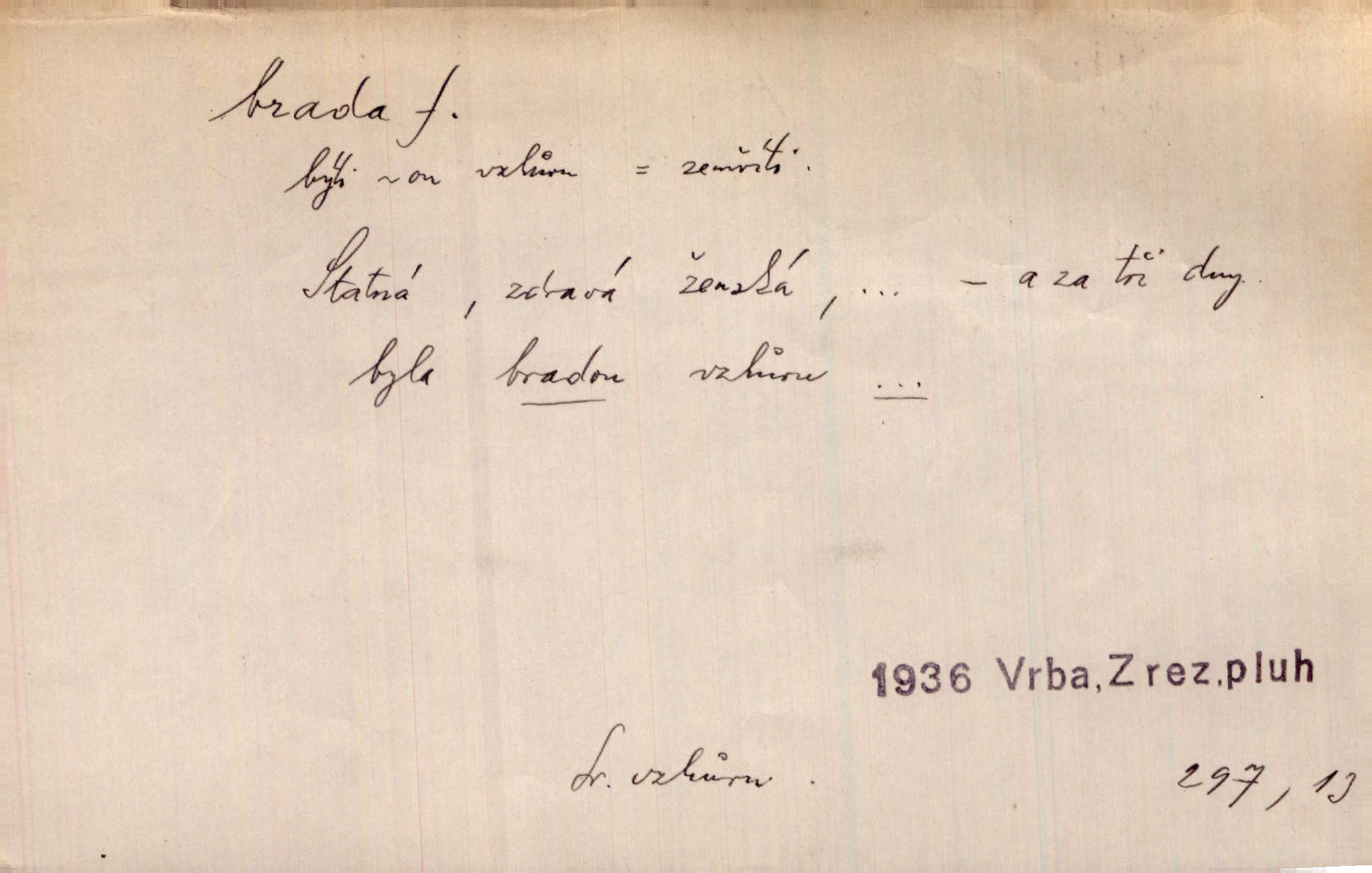 - brada, -y f. vyčnívající část obličeje pod ústy. Hladce oholený, vysedlé brady. Jir. Přen. Nepotkával jsem leč strážníky po bradu ozbrojené silně. Podl. Mít zlata po bradu a zívat při tom velebně dlouhou chvílí mnoho. Jir. Nosíte vy obě bradu vysoko jste pyšné. Herrm. Zítra šturm, a kdo ví, který z vás bude té chvíle bradou vzhůru mrtev. Jir. Mléko mu teče ještě po bradě a mluví, jako by byl už svým pánem je nedospělý, nezkušený. Šmil. D vousy na bradě. Hladě si levou rukou rozcuchanou bradu, seděl prostřed shromáždění. Staš. D Bot. kozí brada rostlina složnokvětá (Tragopogon). Rostlina z řádu pryskyřníkovitých stračka polní (Delphinium consolida). Houba kyjanka, kuřátka (Clavaria).