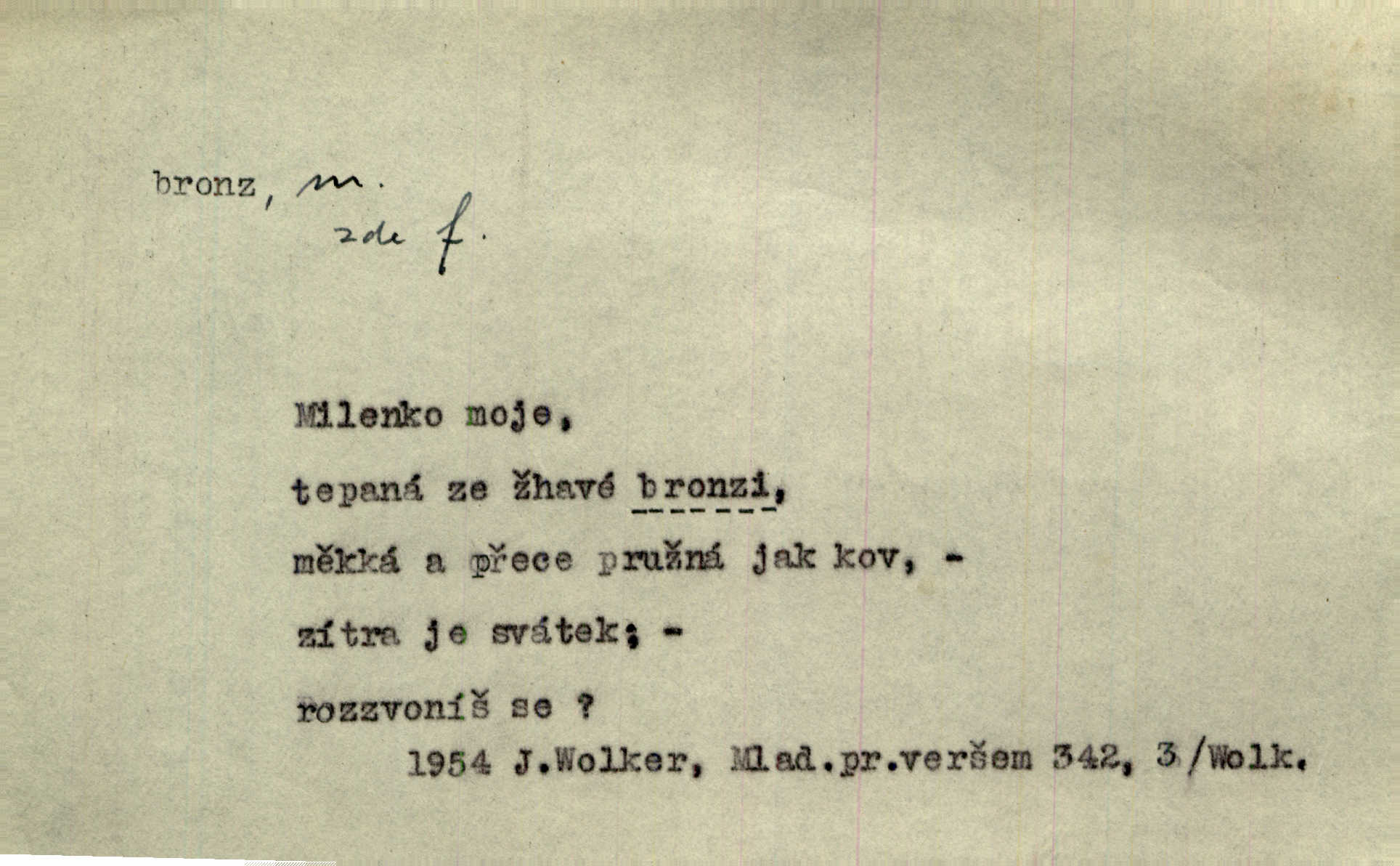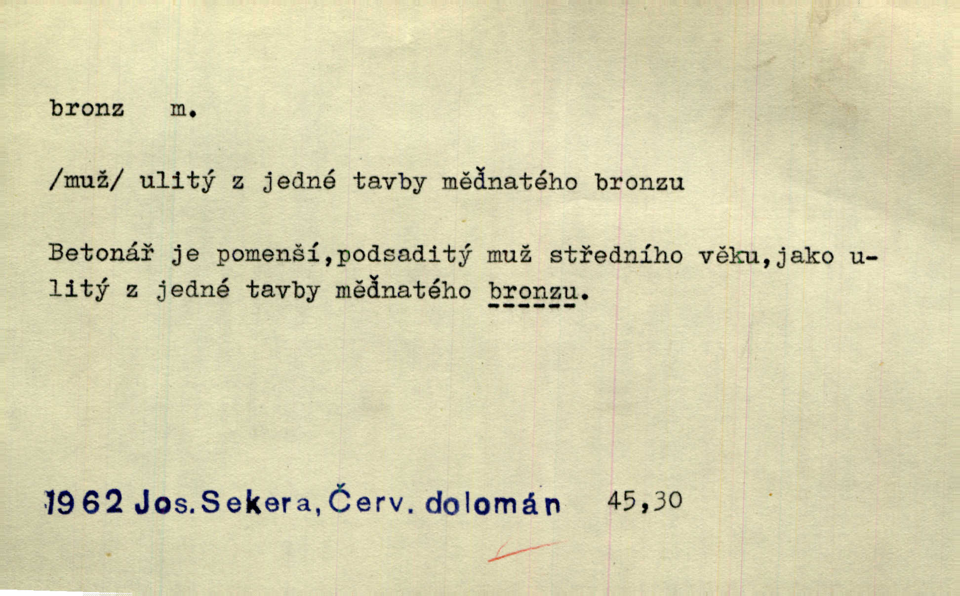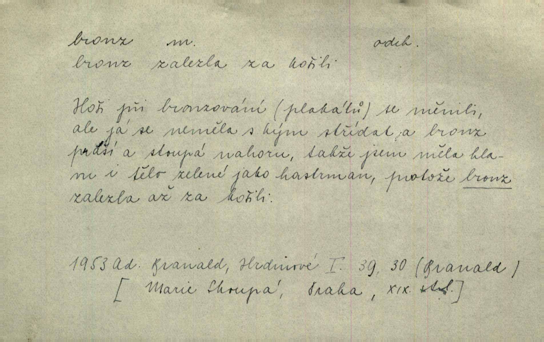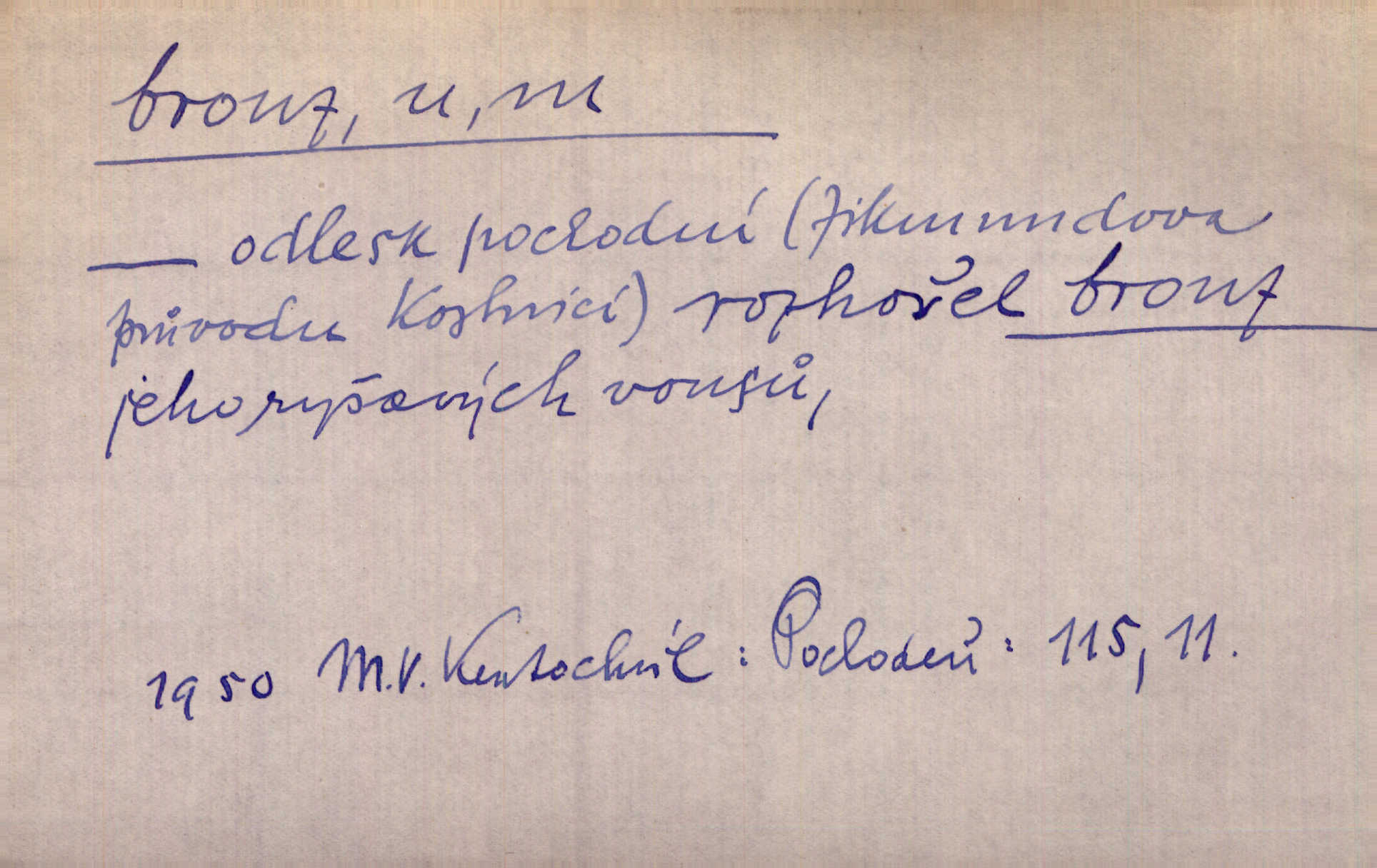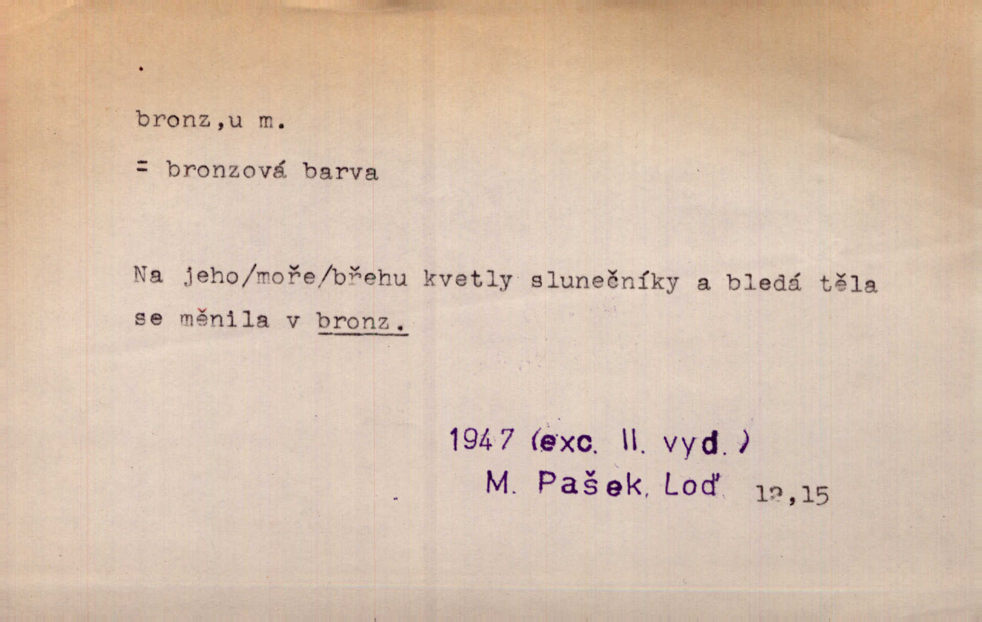 - bronz, -u m. slitina mědi a cínu, spěž. Pomník z bronzu. Umělecký předmět z bronzu. Ten nález starých bronzů, popelnic mi zprvu zdál se věcí nahodilou. Vrch. D bronzová barva. Barva celého těla je čerň a bronz. Mah.