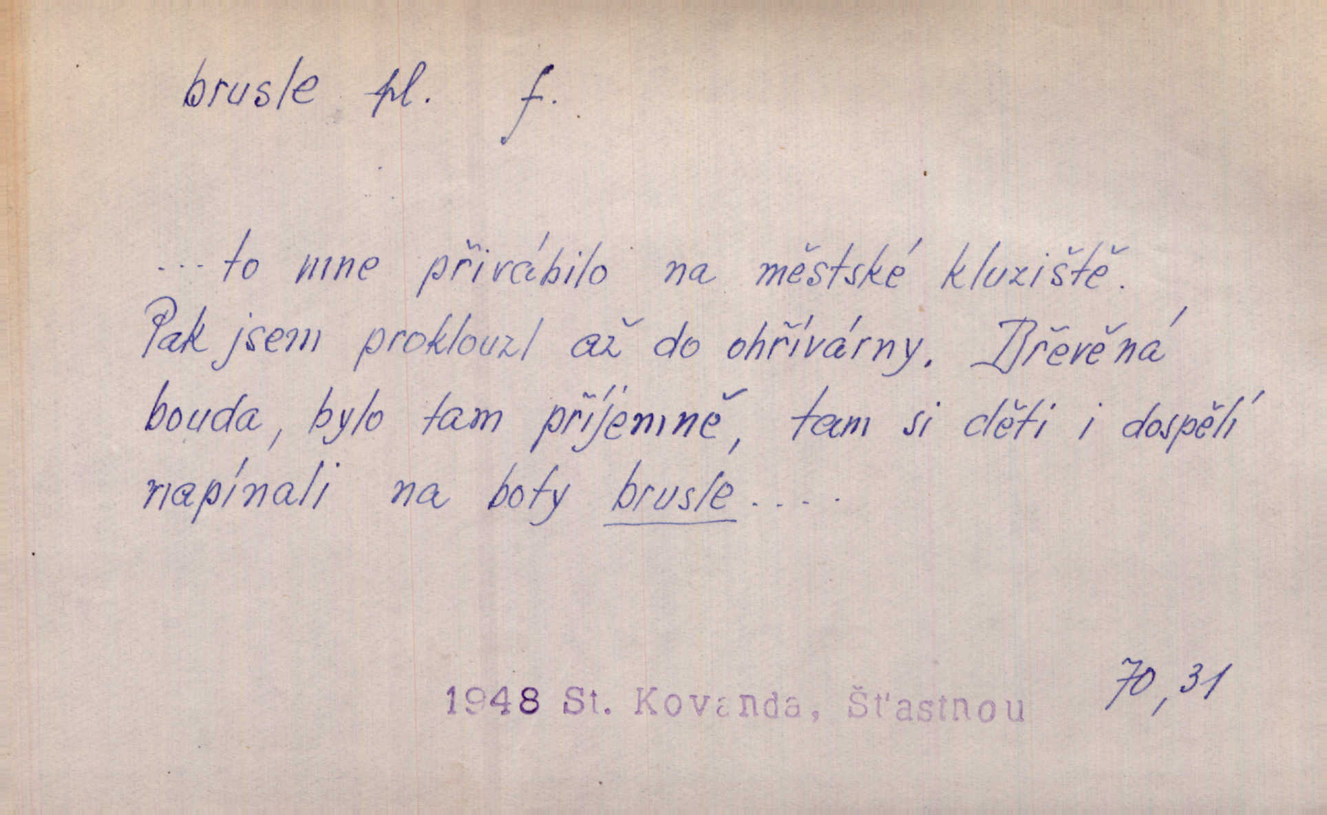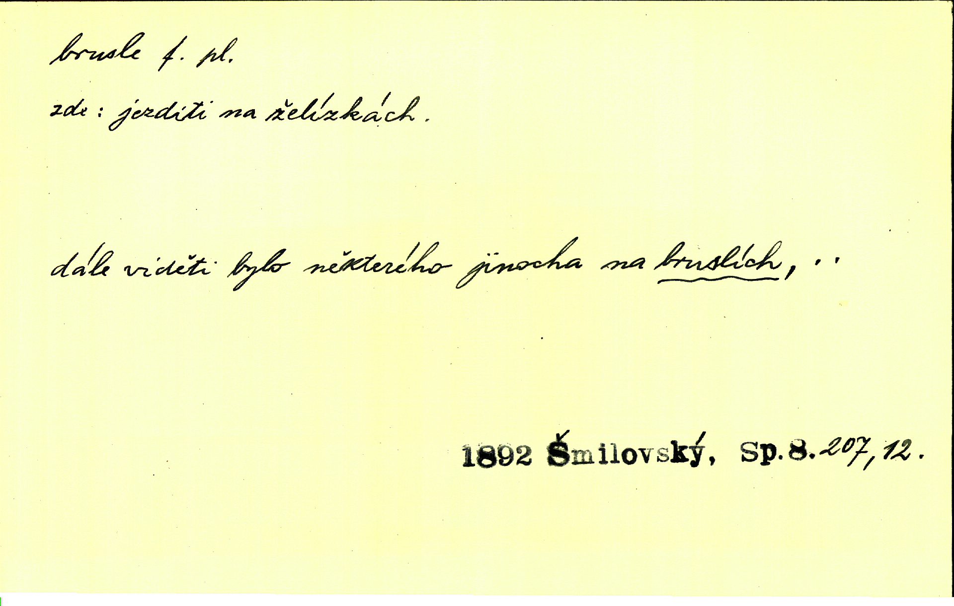 svislé želízko, které se připevňuje na podešev obuvi ke klouzání na ledě.