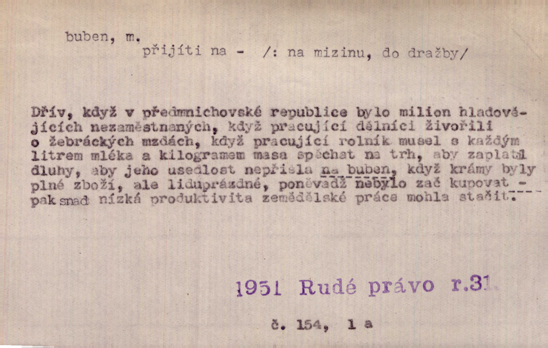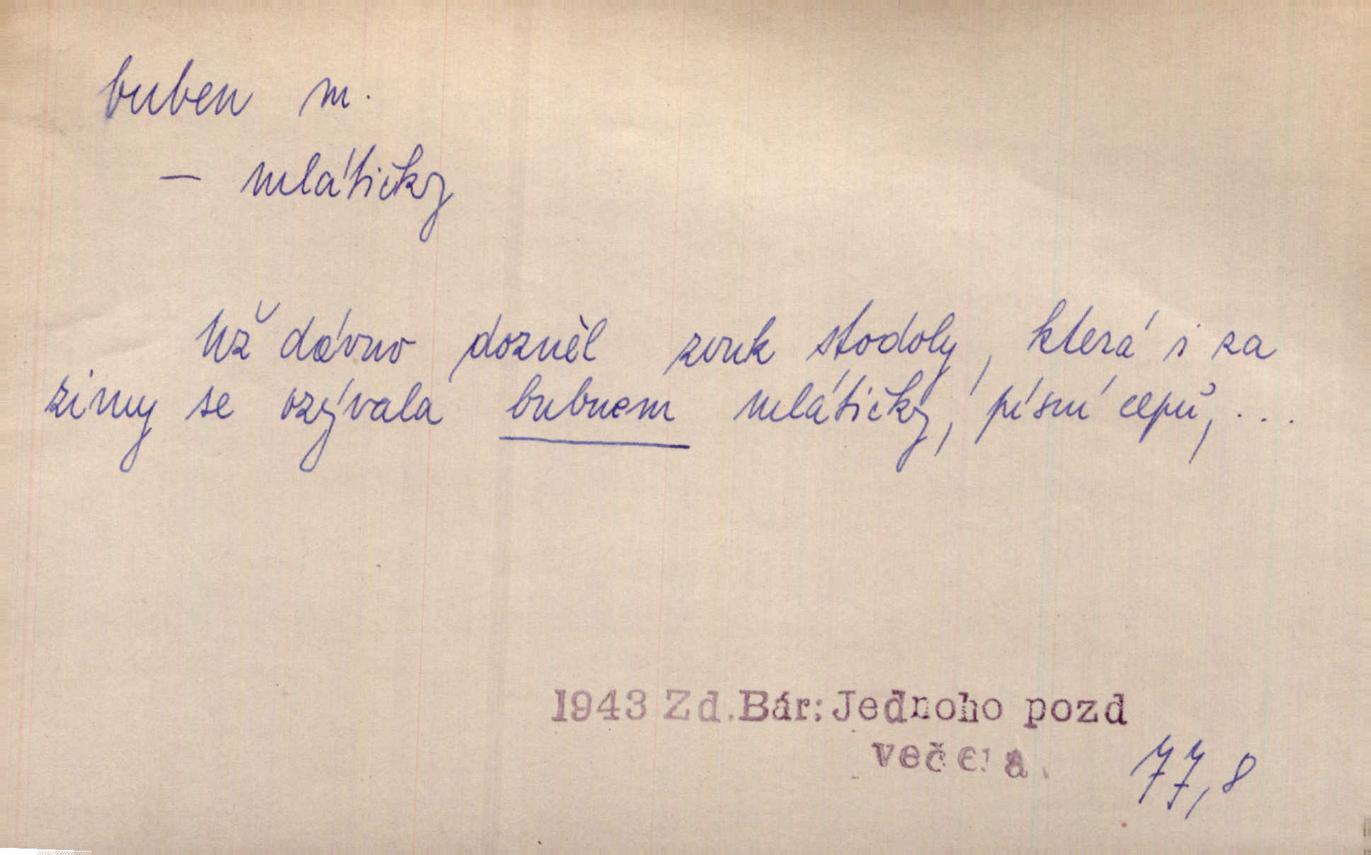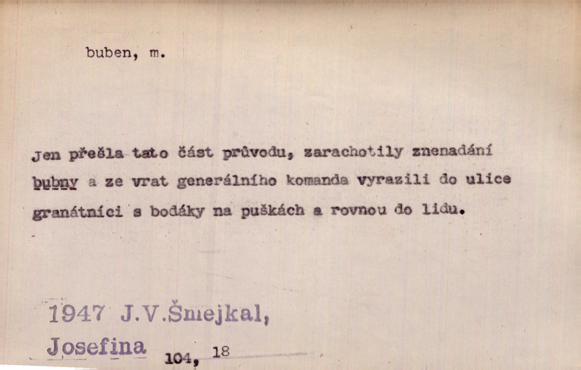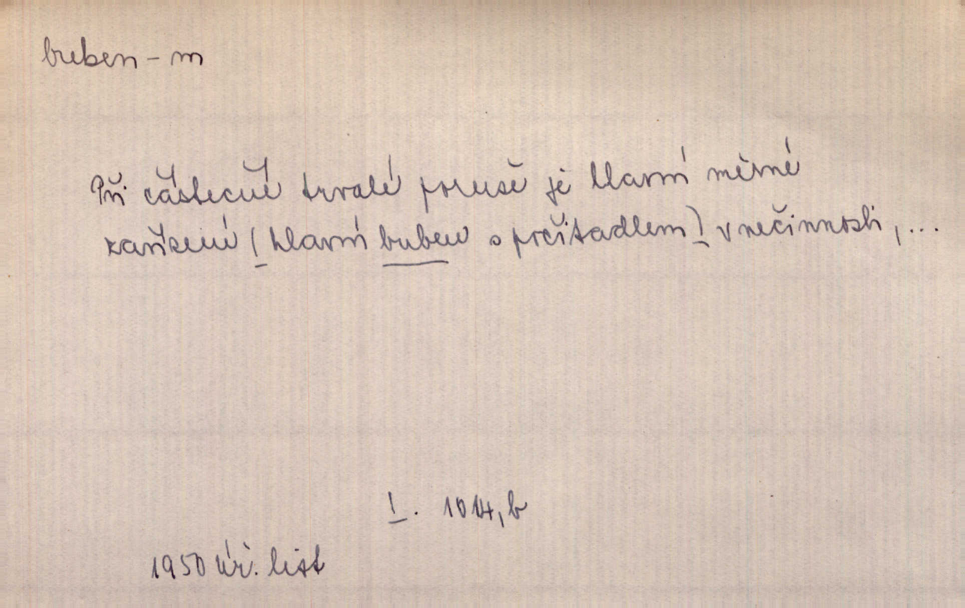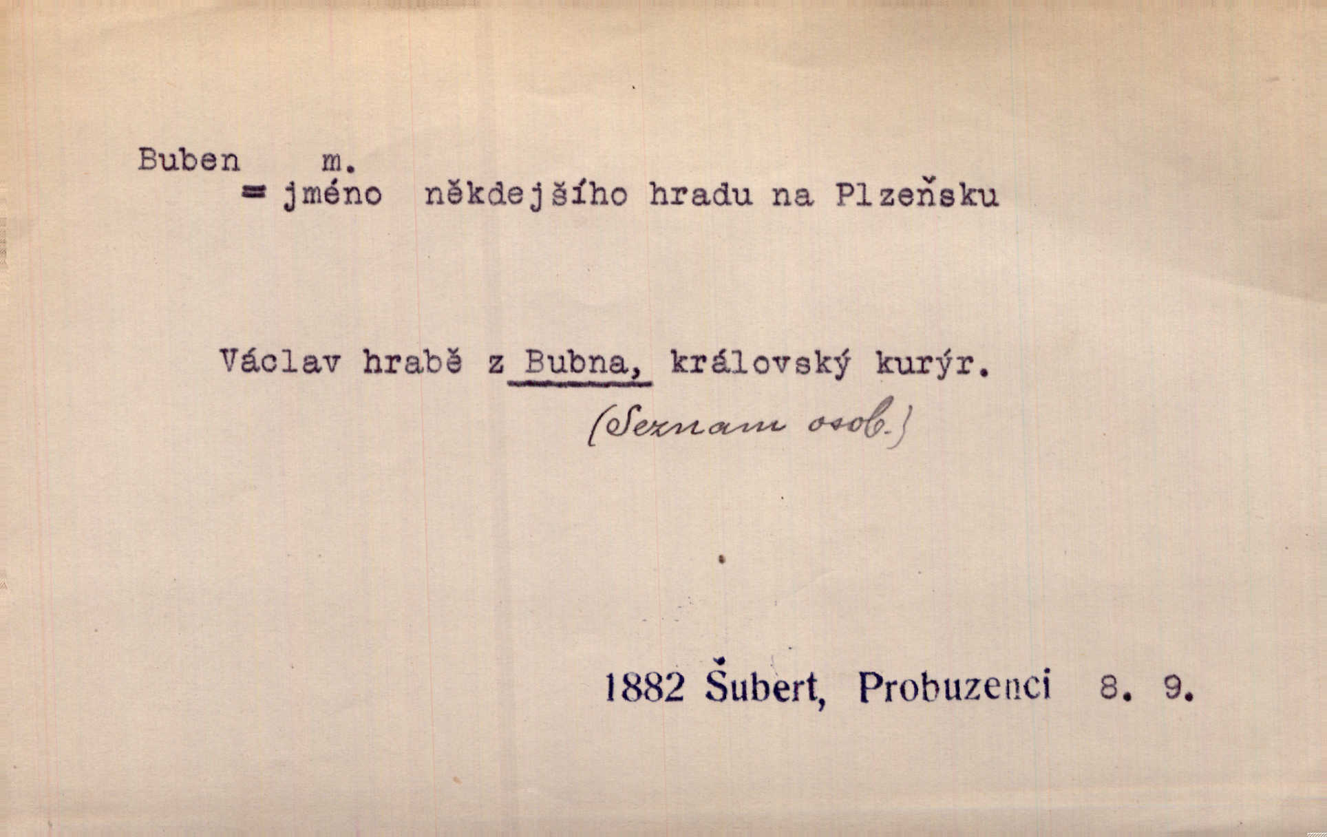 - buben, -bnu m. dutý válcovitý bicí nástroj hudební s napjatou koží na obou základnách. Bubny víří, rozléhá se píseň. Čech. Lid, jak známo, chodí na funusy, kde turecký jej buben očekává. Kam. Špáta do toho mlátil jako do bubnu, ale zajíčka netrefil zběsile na honě střílel. Rais. Ani letošní pytlák nepůjde s bubnem na zajíce, nato já, kozák starý. Šmil. Přen. jíti s bubnem na vrabce, ptáky, zajíce unáhliti se, polekati, vyplašiti koho. Že ale nikdy nechodil na vrabce s bubnem, neříkal ničehož, ani když milenci stanuli před ním. Hol. Když mu řekneš, že je to obchodní tajnost, nedá tě ve vsi na buben nerozhlásí to. Her. Myslil jsem, že překvapím celý zámek, a zatím jest to juž na bubně! Kosm. Po celé vesnici to šlo jak po bubnu. Rais. D o agitování, reklamě. Co světáctví a demokratství lživého, chvastavého tlouklo tu na svůj řvavý buben. Šlej. Řemeslnická prostřednost jde tu ruku v ruce se sterilní plochostí a s bubnem barnumské reklamy. Mach. Tlukouce na buben vlastenectví mrhají v nerovném proti nám boji zbytečně svými silami. Staš. D Přijíti na buben do dražby, na mizinu. Kdybych já to nyní drobet pohromadě nedržel, náš statek by přišel na buben. Staš. D rozličné nástroje a součásti nástrojů podobné bubnu. Vysypav první polovici kávy do bubnu, hotovil se k podpálení dřeva. Herrm. Otáčecí buben, čerpací buben. Hrotový buben u mlátičky ruční, buben lištový u mlátiček motorových a j. D Pl. bubny barva v něm. kartách, kule. Hráli v karty, na kterých pro samou špínu již ani hrubě vidět nebylo, co jsou bubny a co žaludy. Tyl.