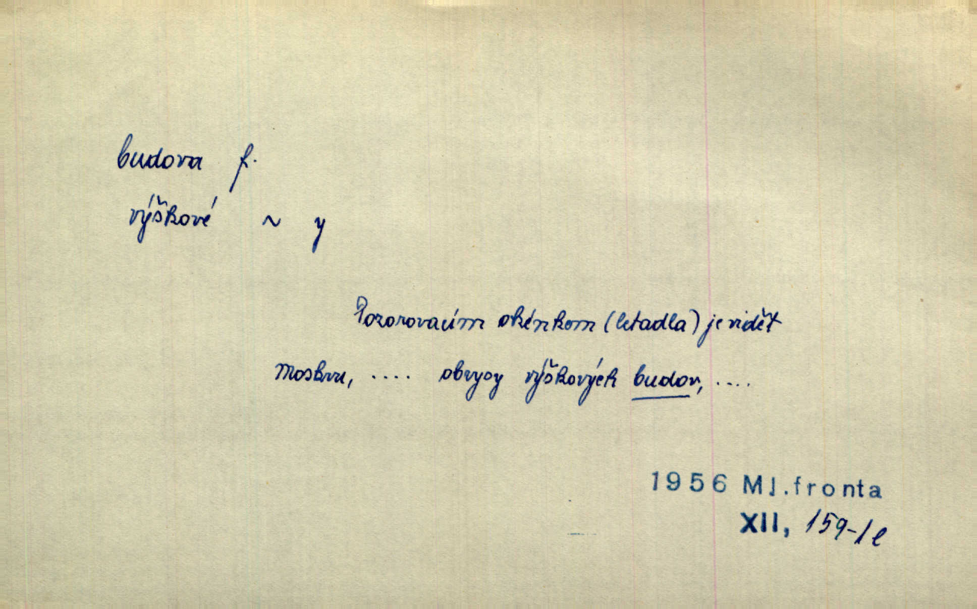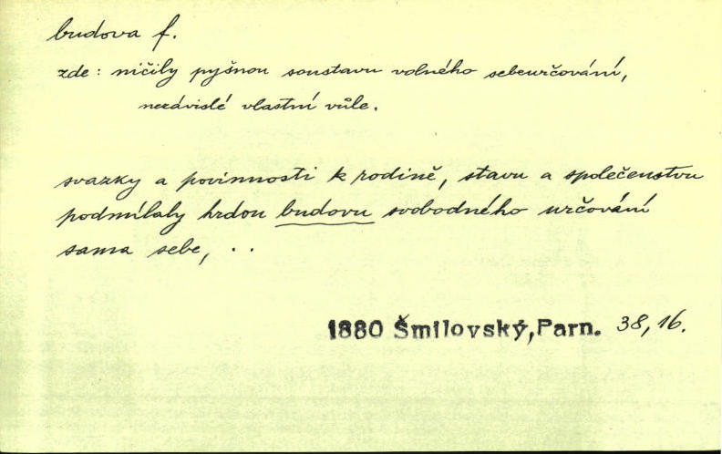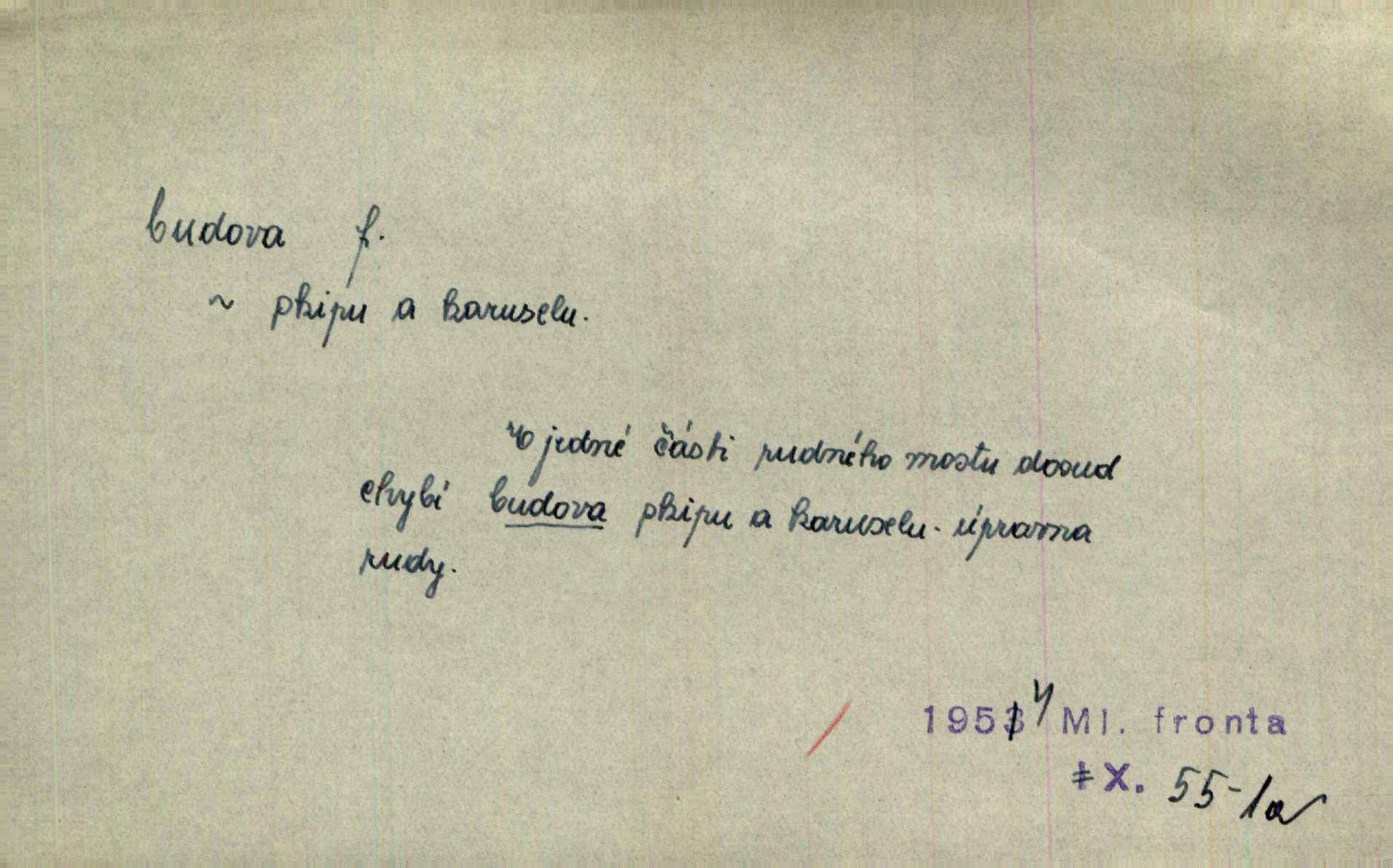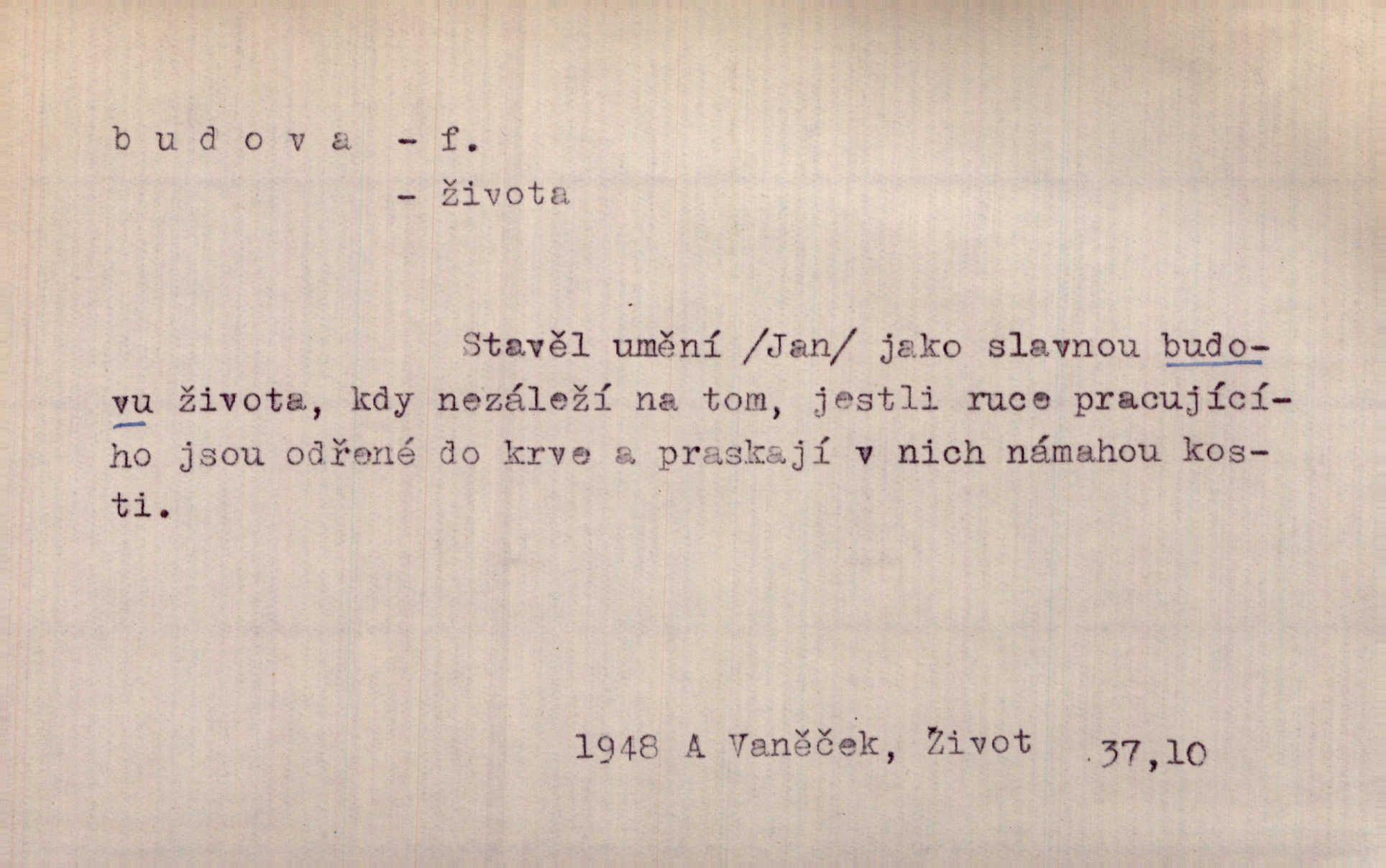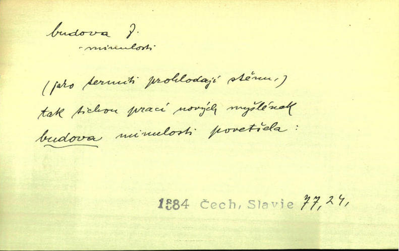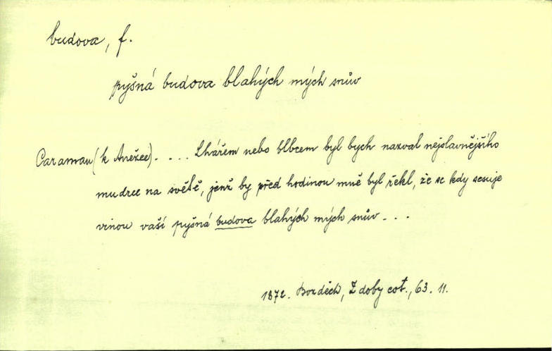 - budova, -y f. dům, stavba, stavení. Budovy rozlehlé, obrovské v tiché se náměstí spjaly. Ner. Přen. o soustavě jako výsledku práce, přemýšlení, organisace. Vítr se opřel o budovu jeho plánů, ale neskácel ji. Dyk. Vinou vaší se sesuje pyšná budova blahých mých snů. Bozd. Poruší se tím základy, na nichž budova státní spočívá. Rez.