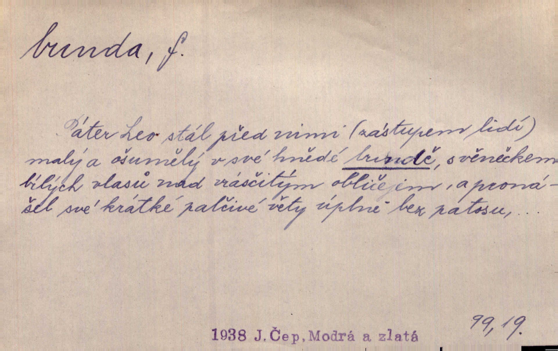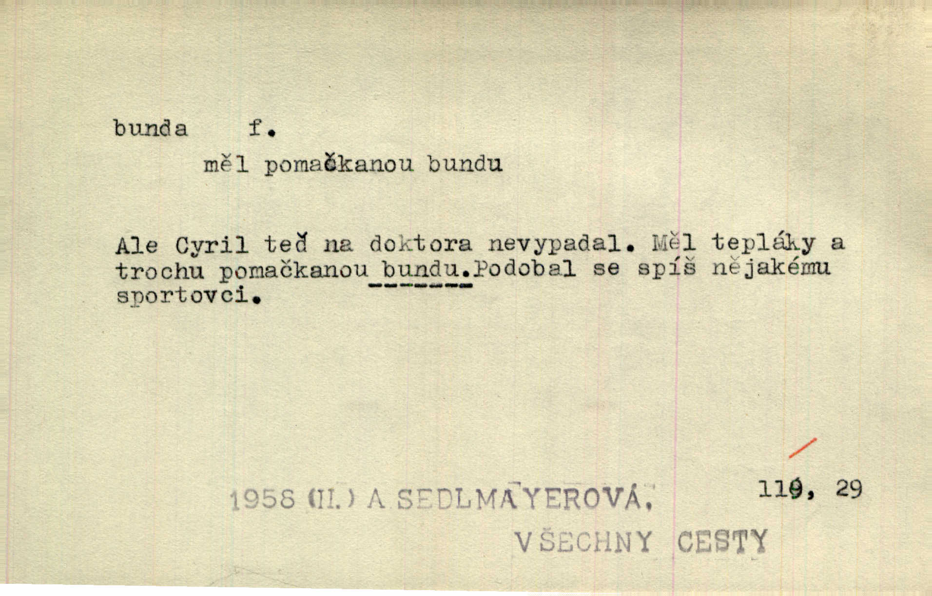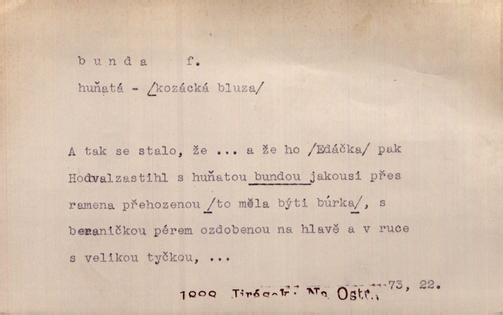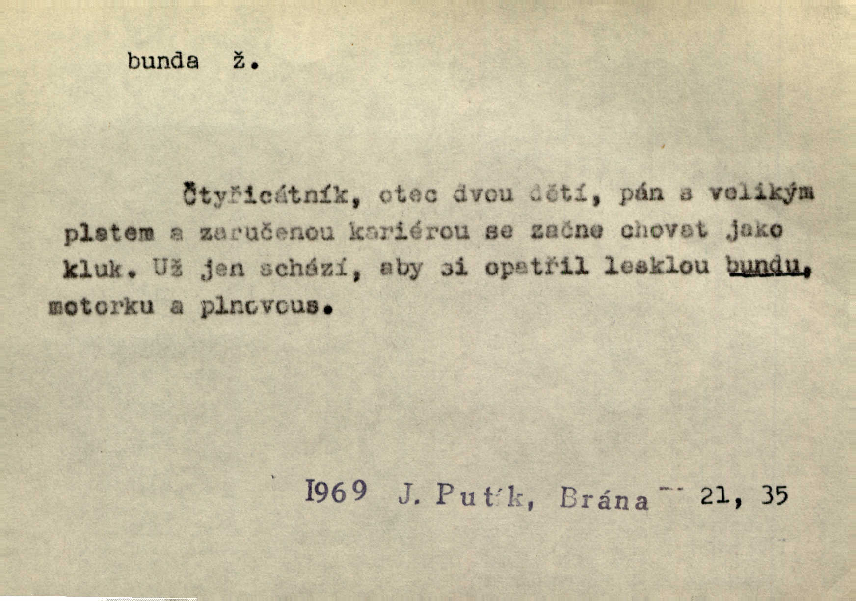 Vlasy splývaly s černé řasnaté bundy pracovního úboru tiskařského.
