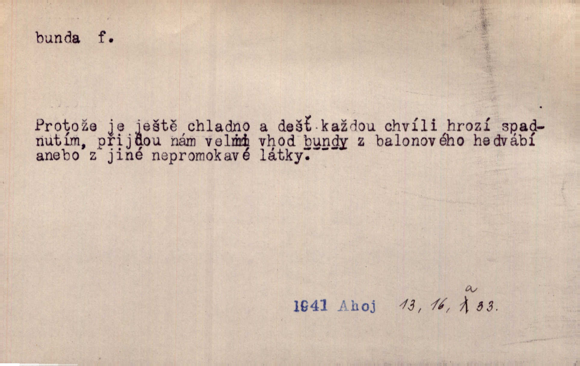 Letím jak jsem byl — jen v bundě, do blízké osady.