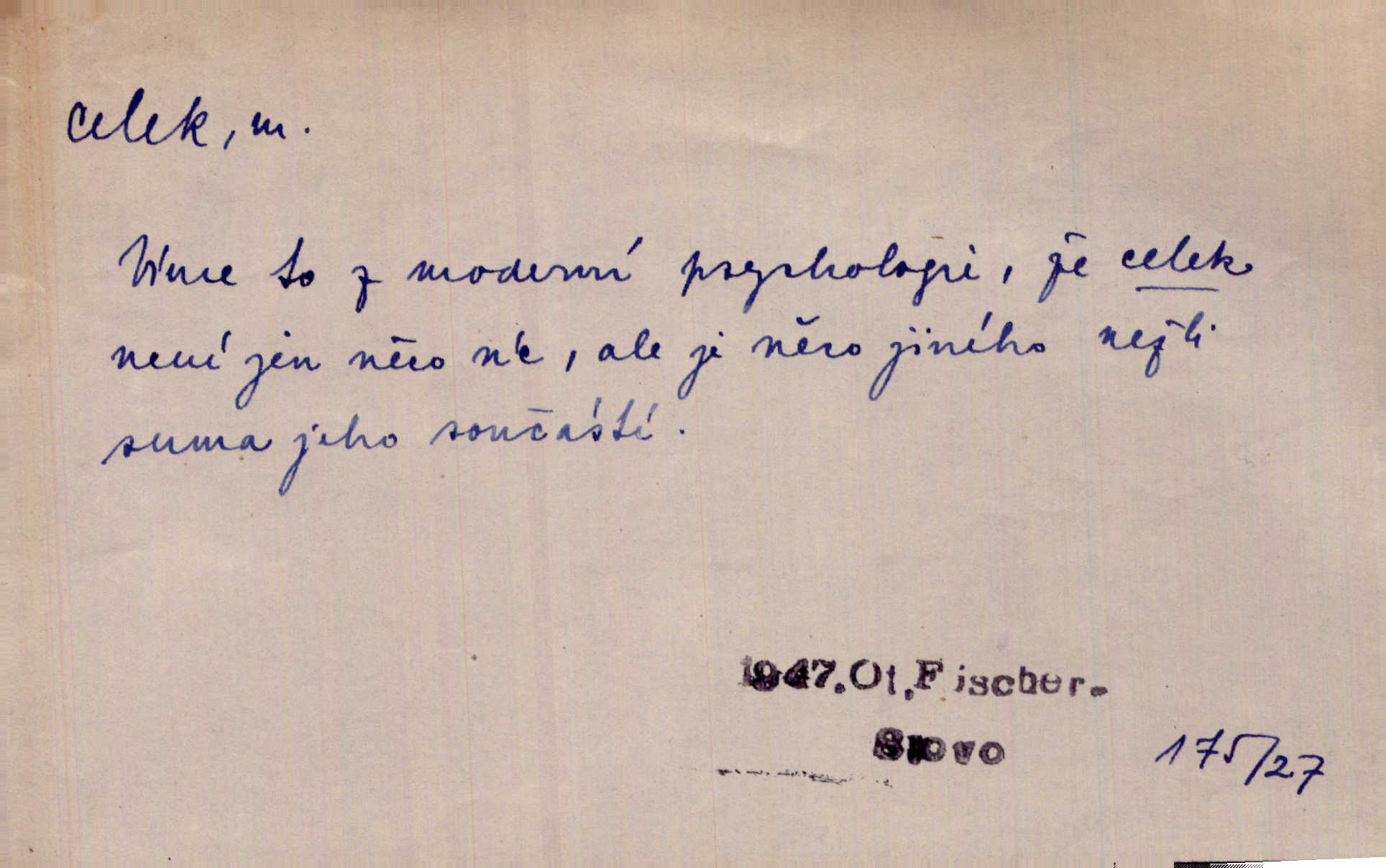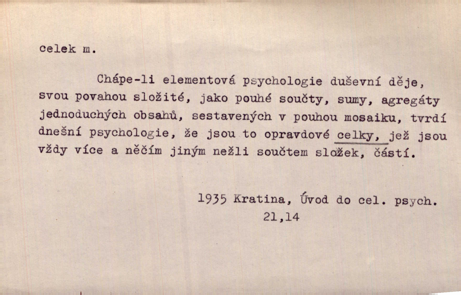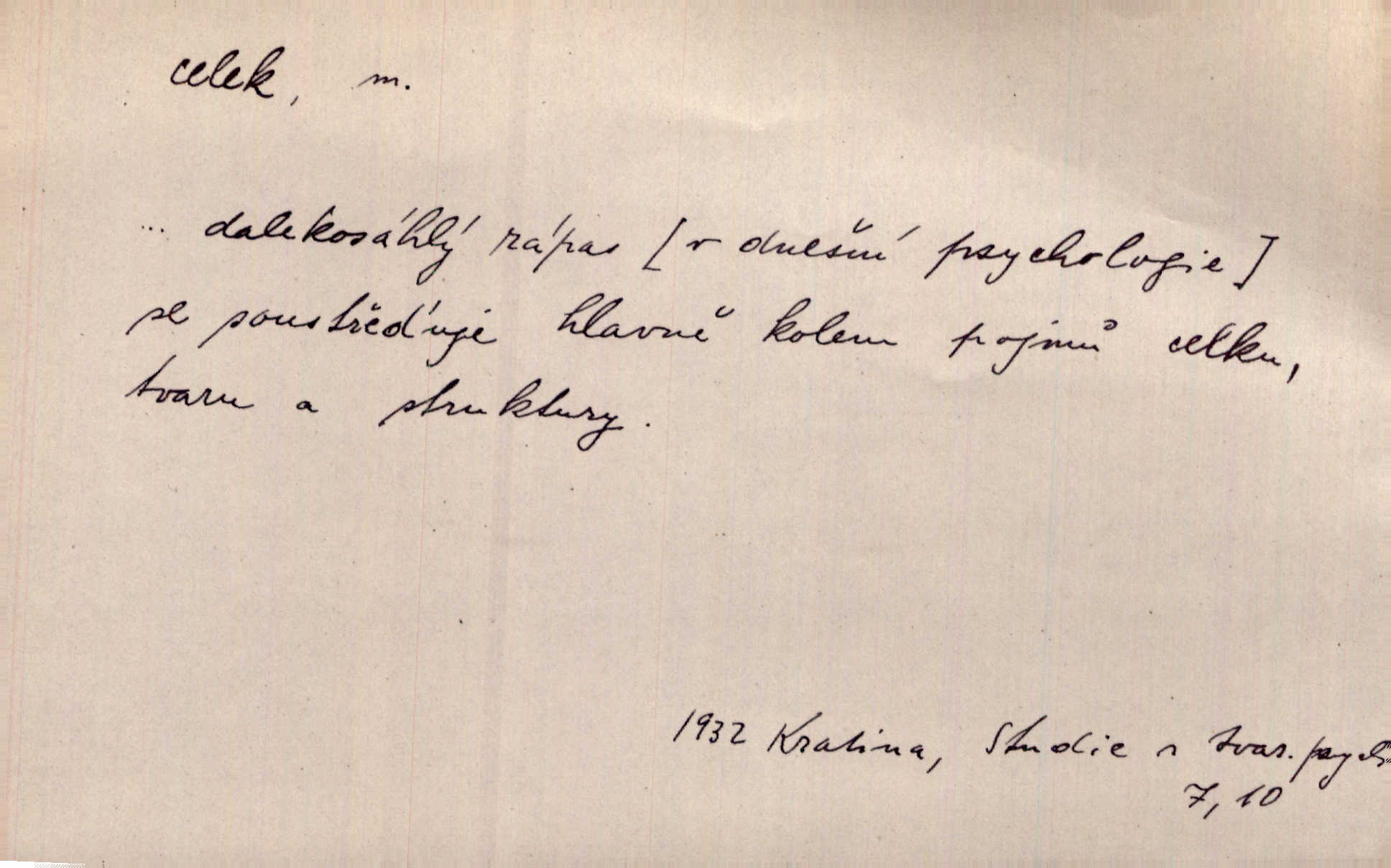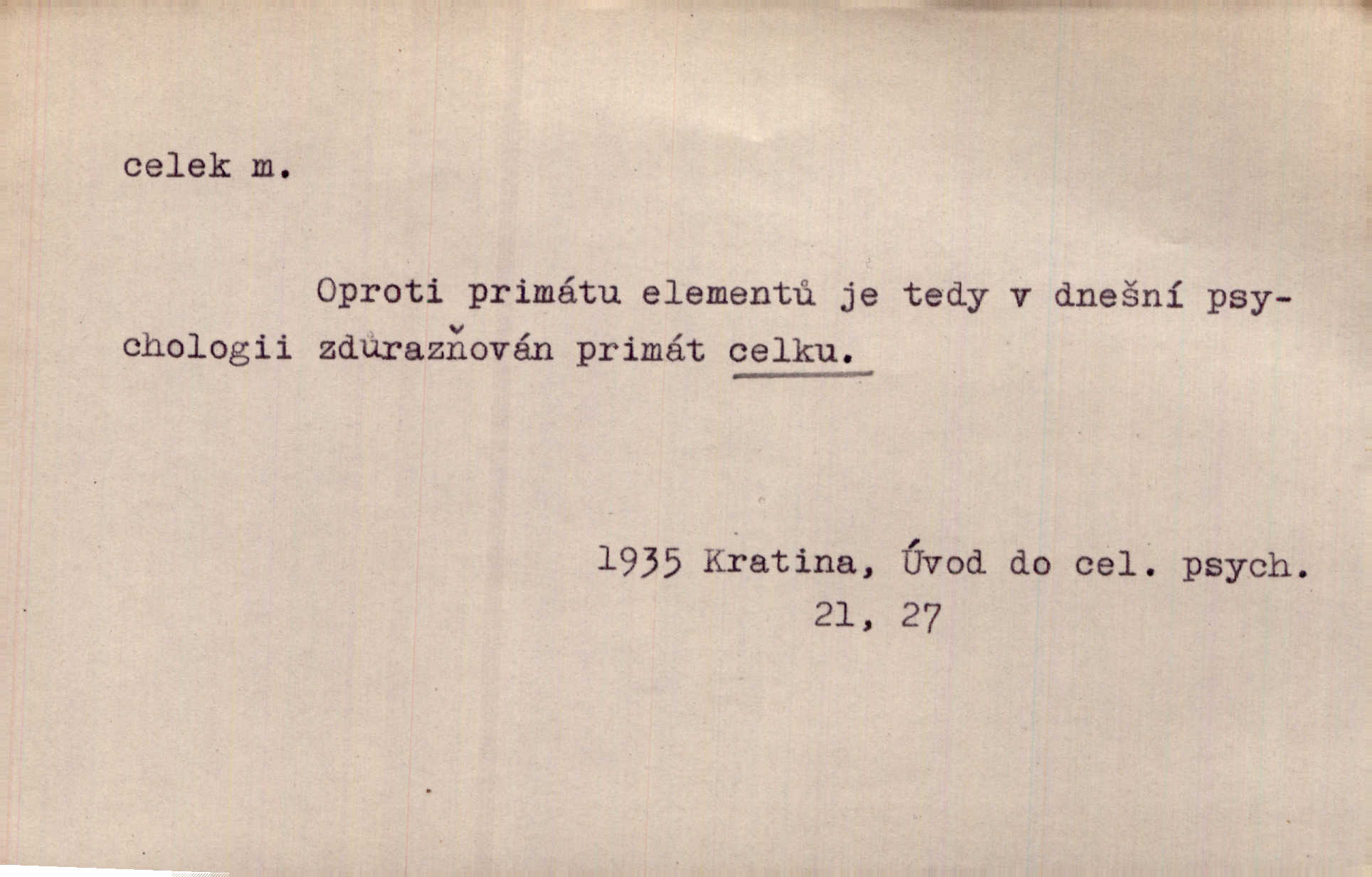 - celek, -lku m. soubor částí n. jednotlivin (op. část, jednotlivina). Mnohdy torso jasněji mluví než velký, do všech detailů propracovaný celek. Mach. Co je štěstí a blaho jednotlivce naproti zájmům velikého celku? Zey. Po kostele šli se všichni do lázní vykoupat, při čemž si starší ženy a muži dávali obyčejně baňky sázet, to patřilo k celku. Něm. Šaty si sama šila a vždycky hladké a v celku ne sukni a kabát zvlášť. R. Svob. Domovní dveře jsou buď v celku nebo se skládají ze dvou volných částí jednokřídlové. Jir. Dámy soudily o případech milostných duchaplně i v celku spravedlivě celkem. Ner.