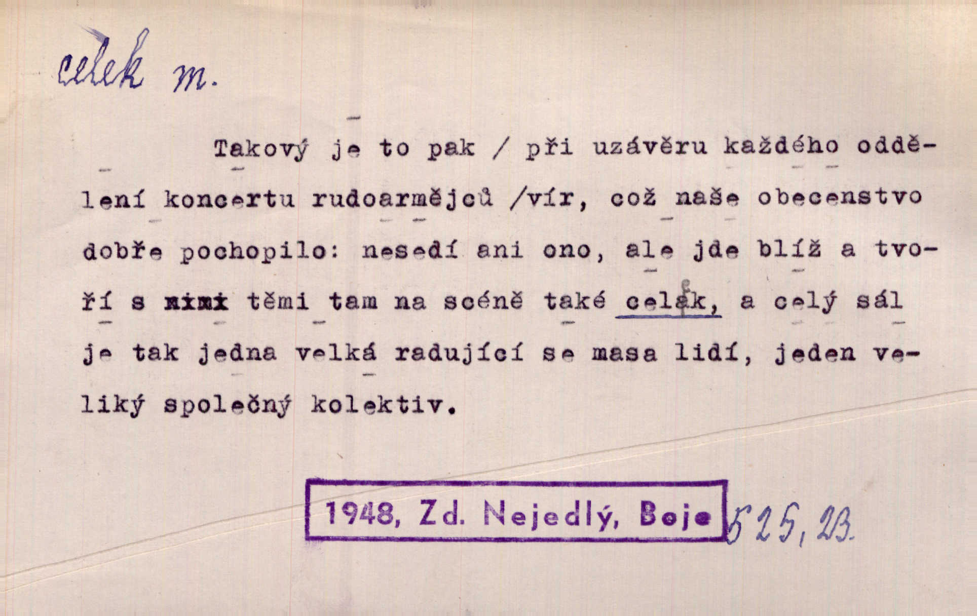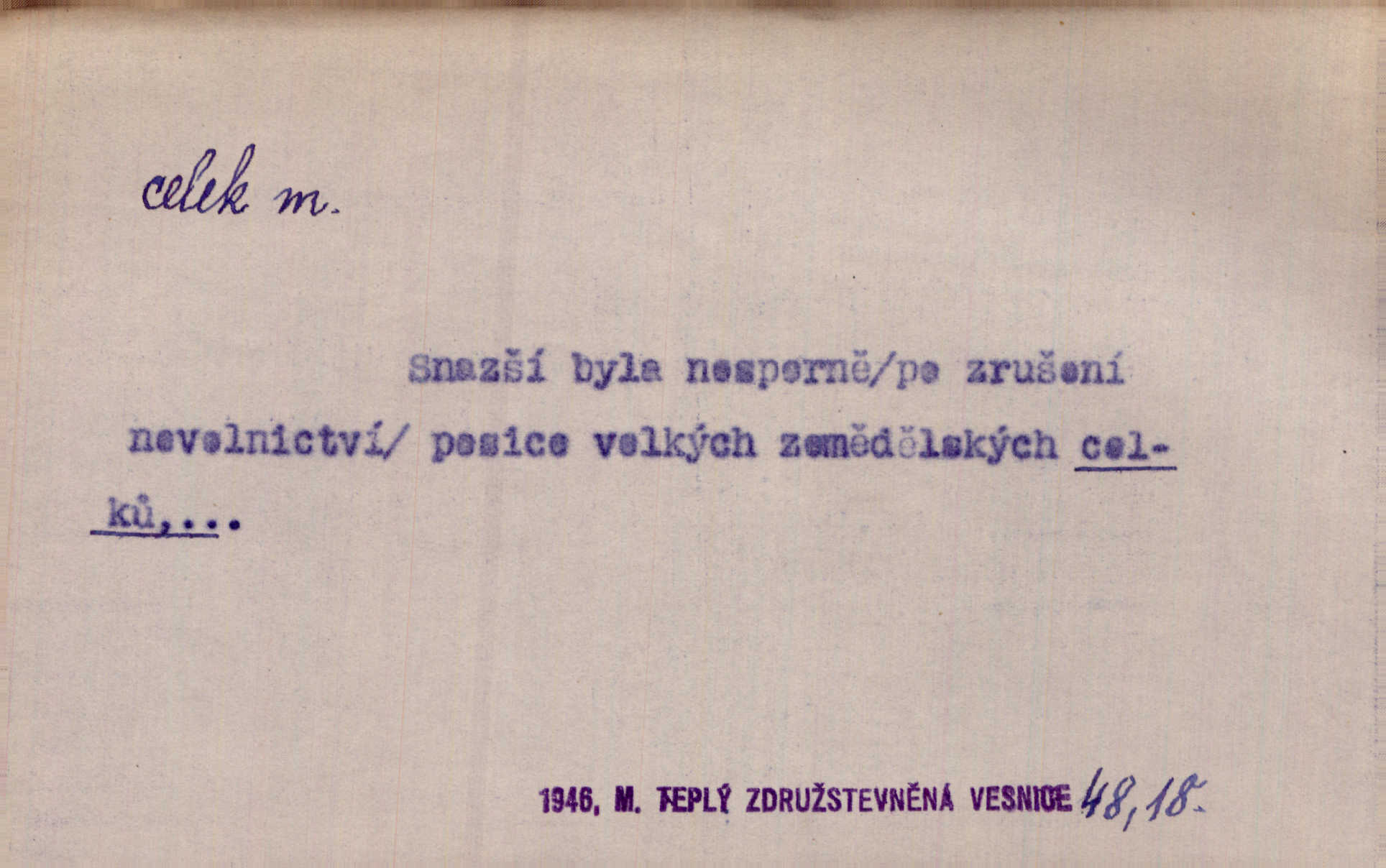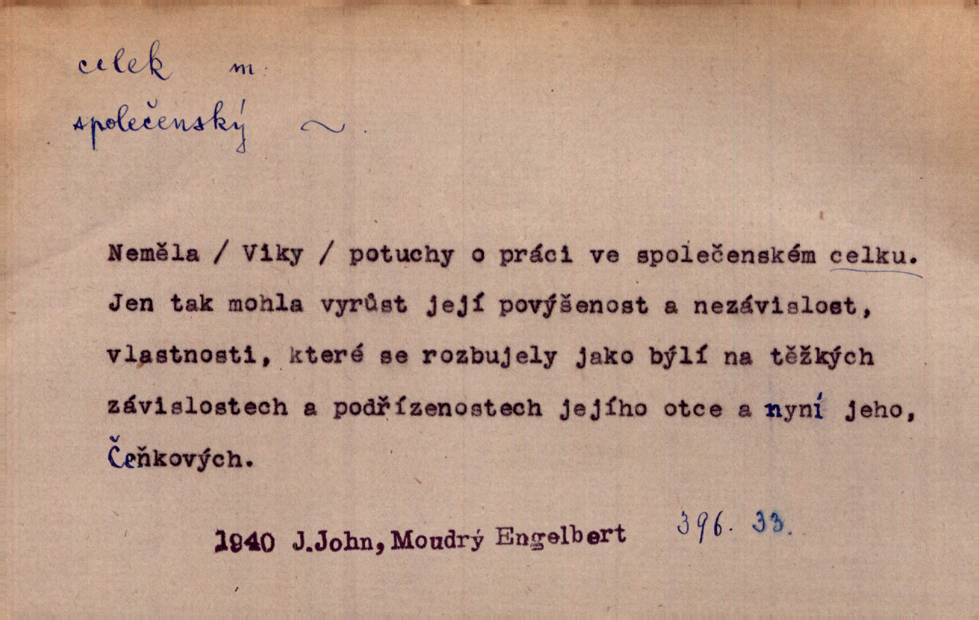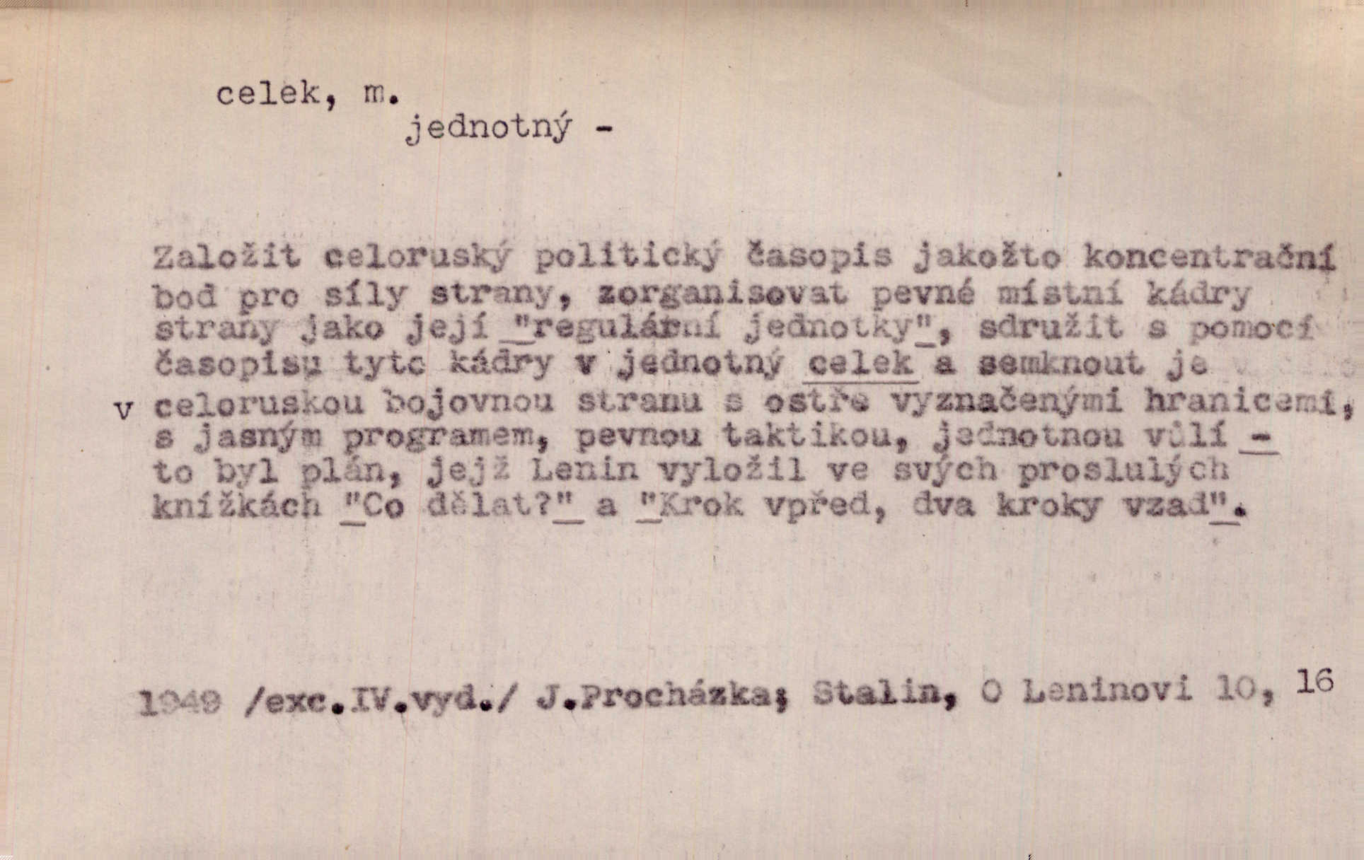 - celek, -lku m. soubor částí n. jednotlivin (op. část, jednotlivina). Mnohdy torso jasněji mluví než velký, do všech detailů propracovaný celek. Mach. Co je štěstí a blaho jednotlivce naproti zájmům velikého celku? Zey. Po kostele šli se všichni do lázní vykoupat, při čemž si starší ženy a muži dávali obyčejně baňky sázet, to patřilo k celku. Něm. Šaty si sama šila a vždycky hladké a v celku ne sukni a kabát zvlášť. R. Svob. Domovní dveře jsou buď v celku nebo se skládají ze dvou volných částí jednokřídlové. Jir. Dámy soudily o případech milostných duchaplně i v celku spravedlivě celkem. Ner.